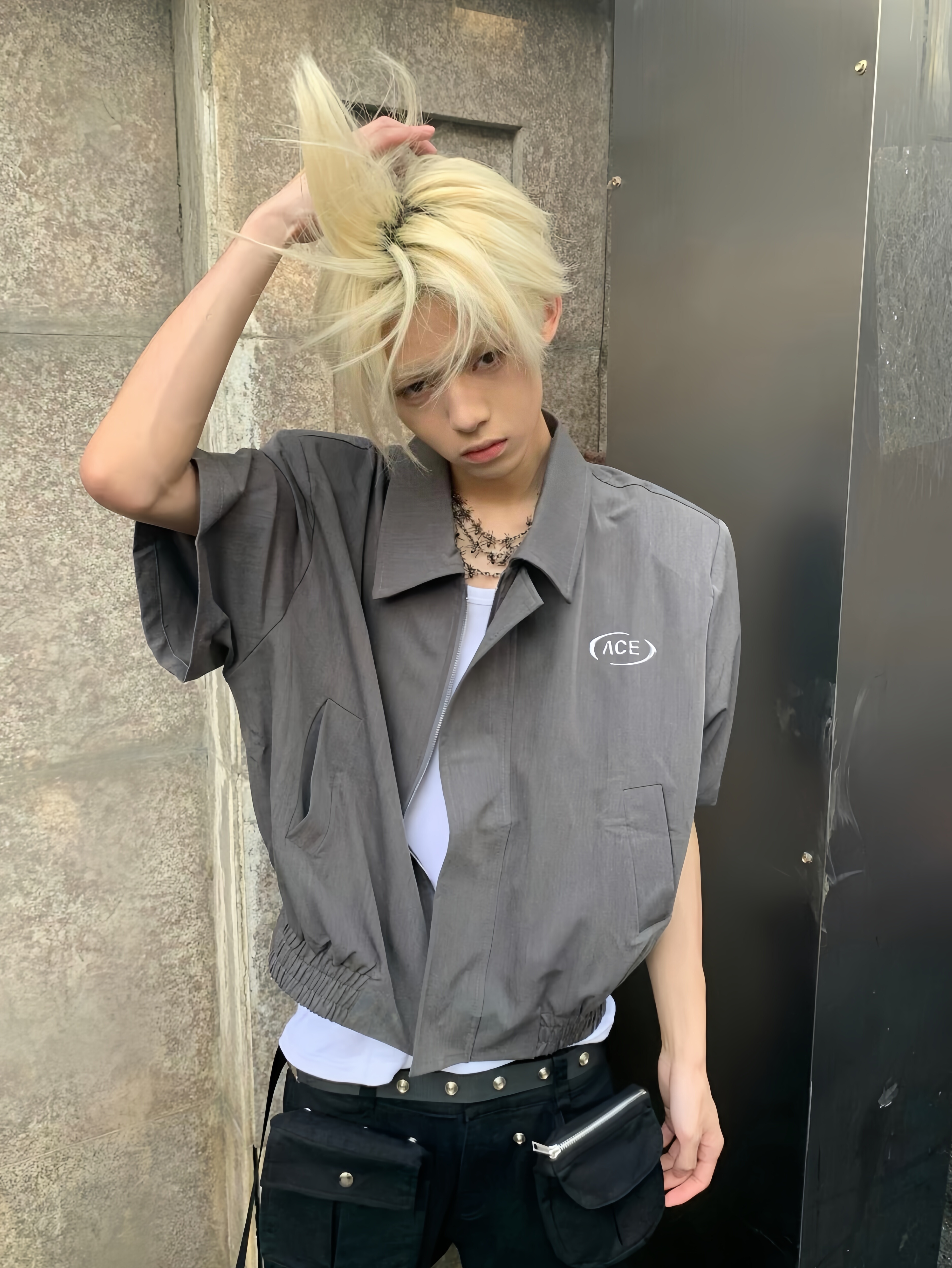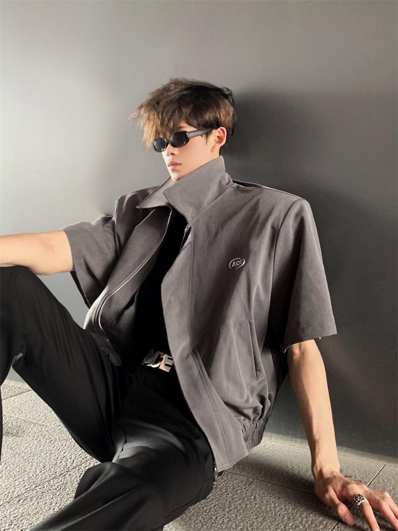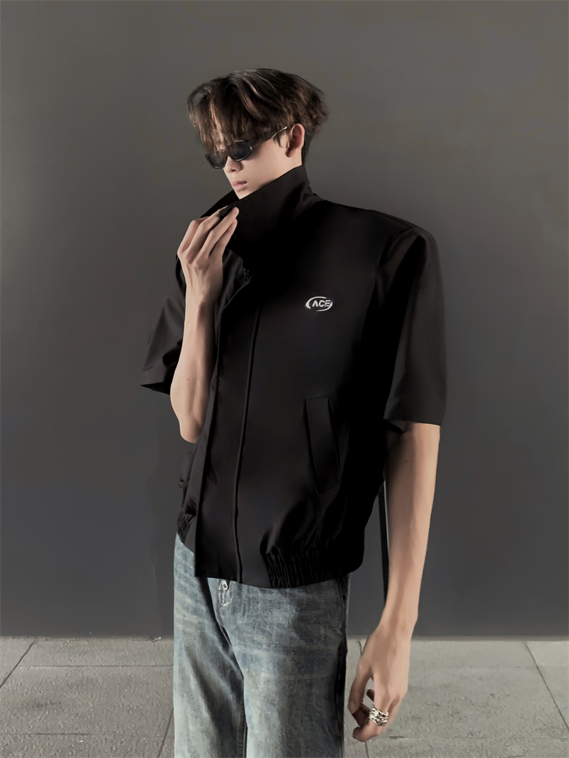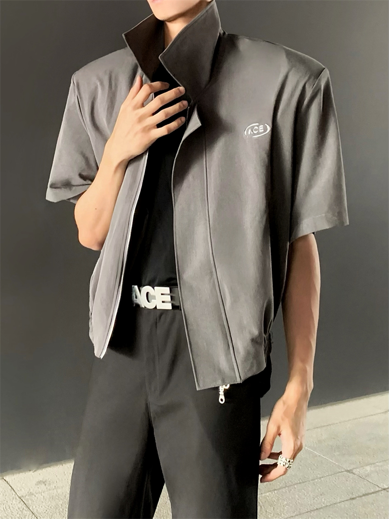 Deconstructed Oversized Lapel Shoulder-Pad Zipper Jacket WN20041