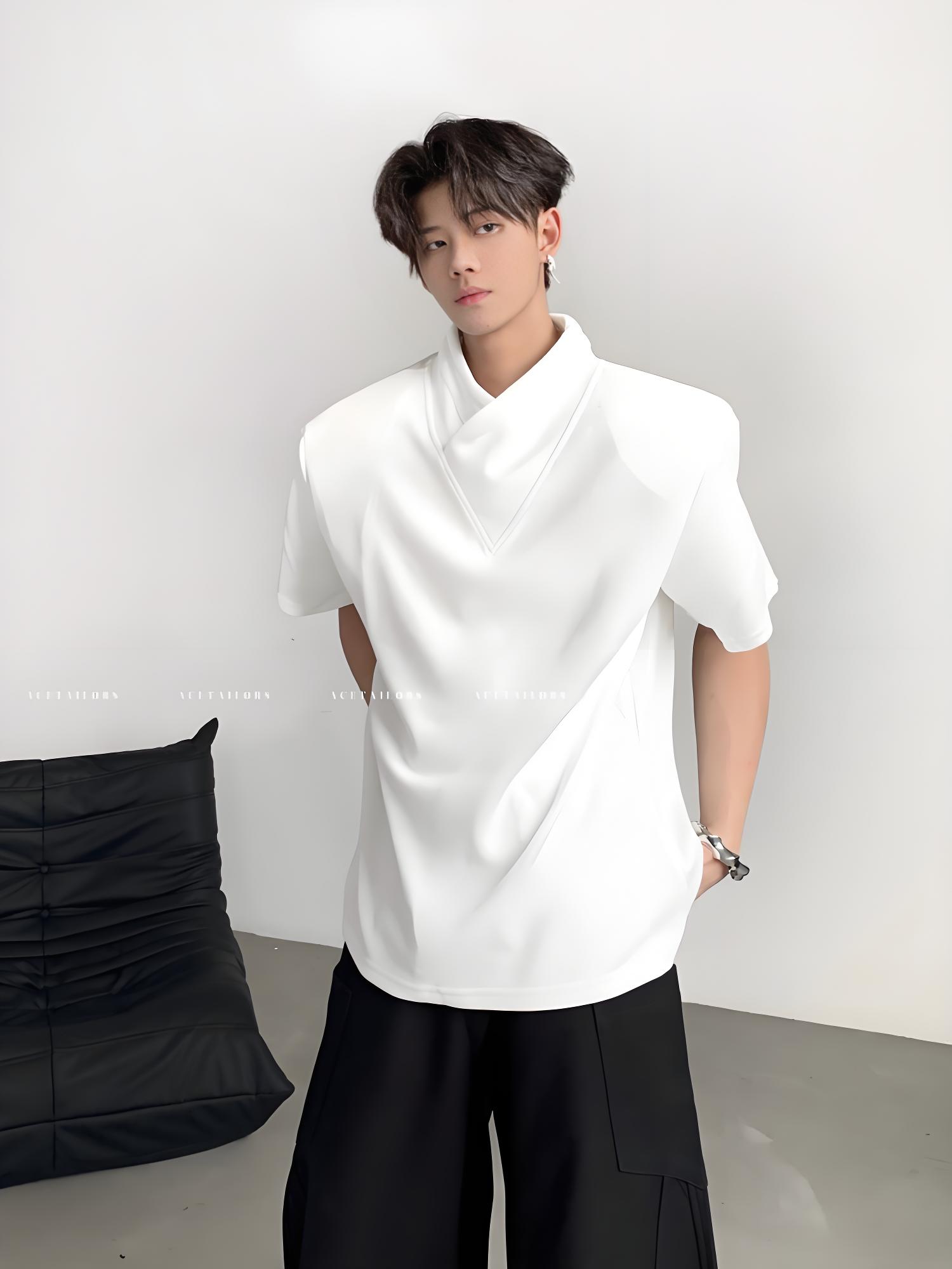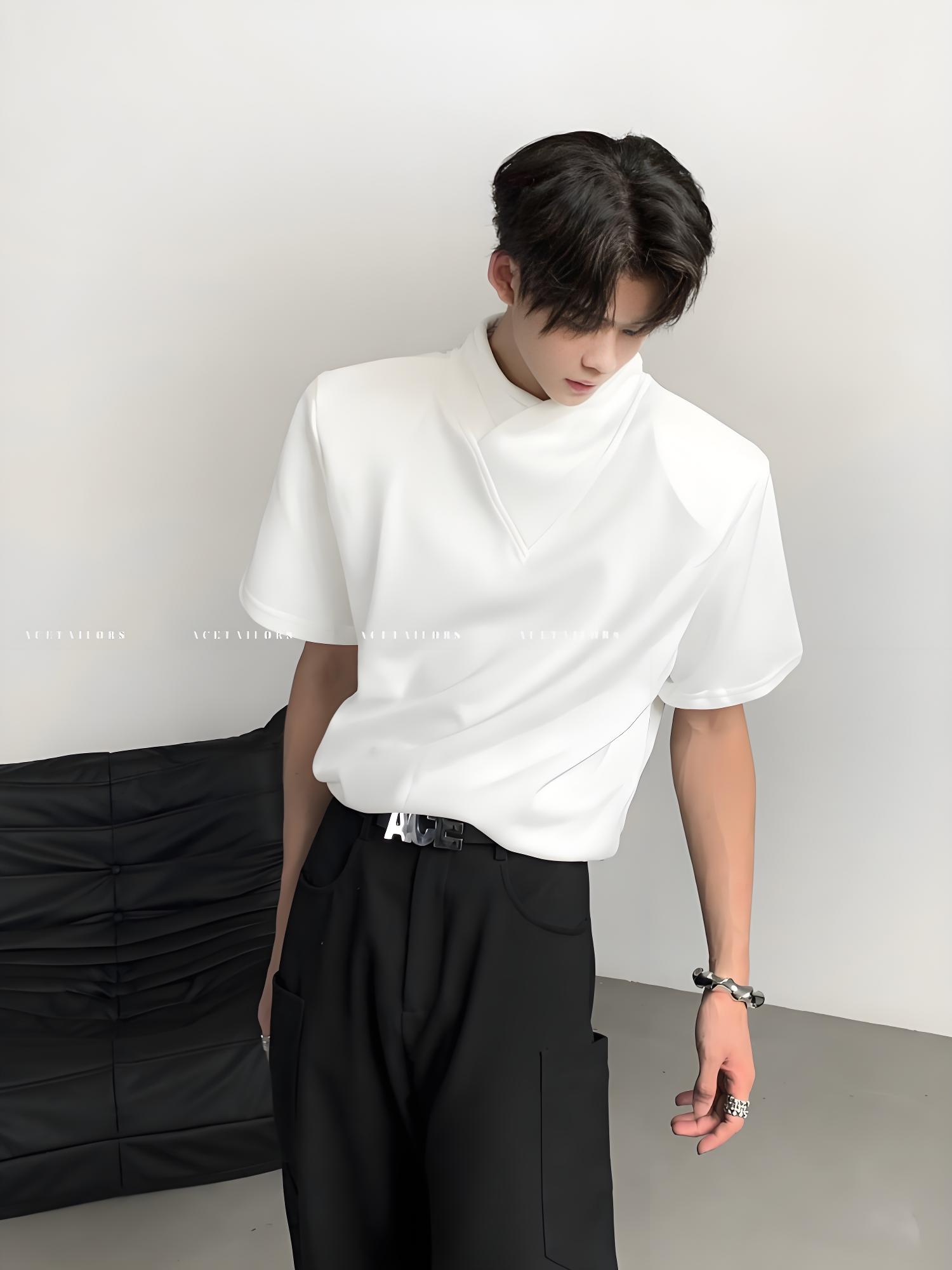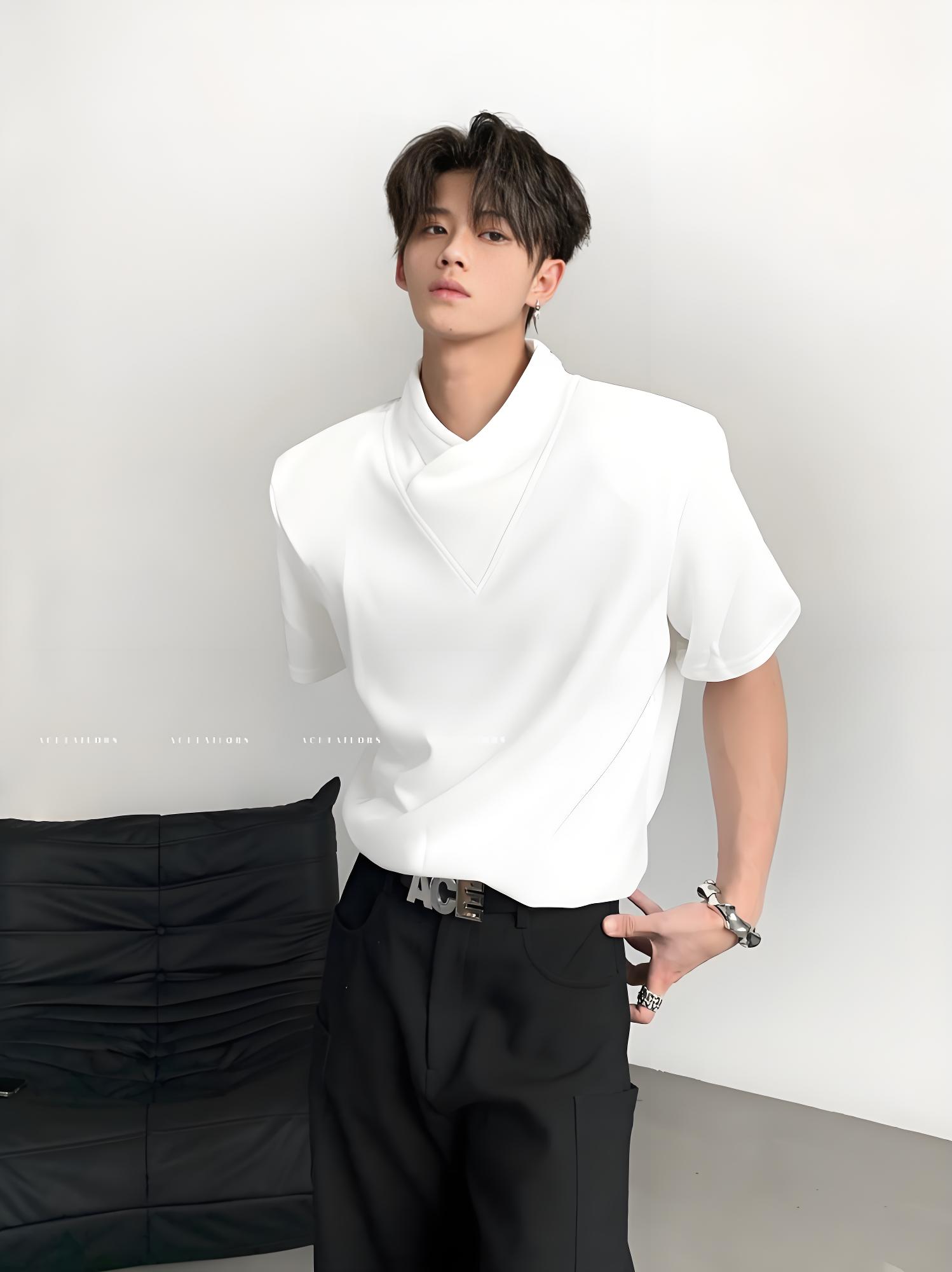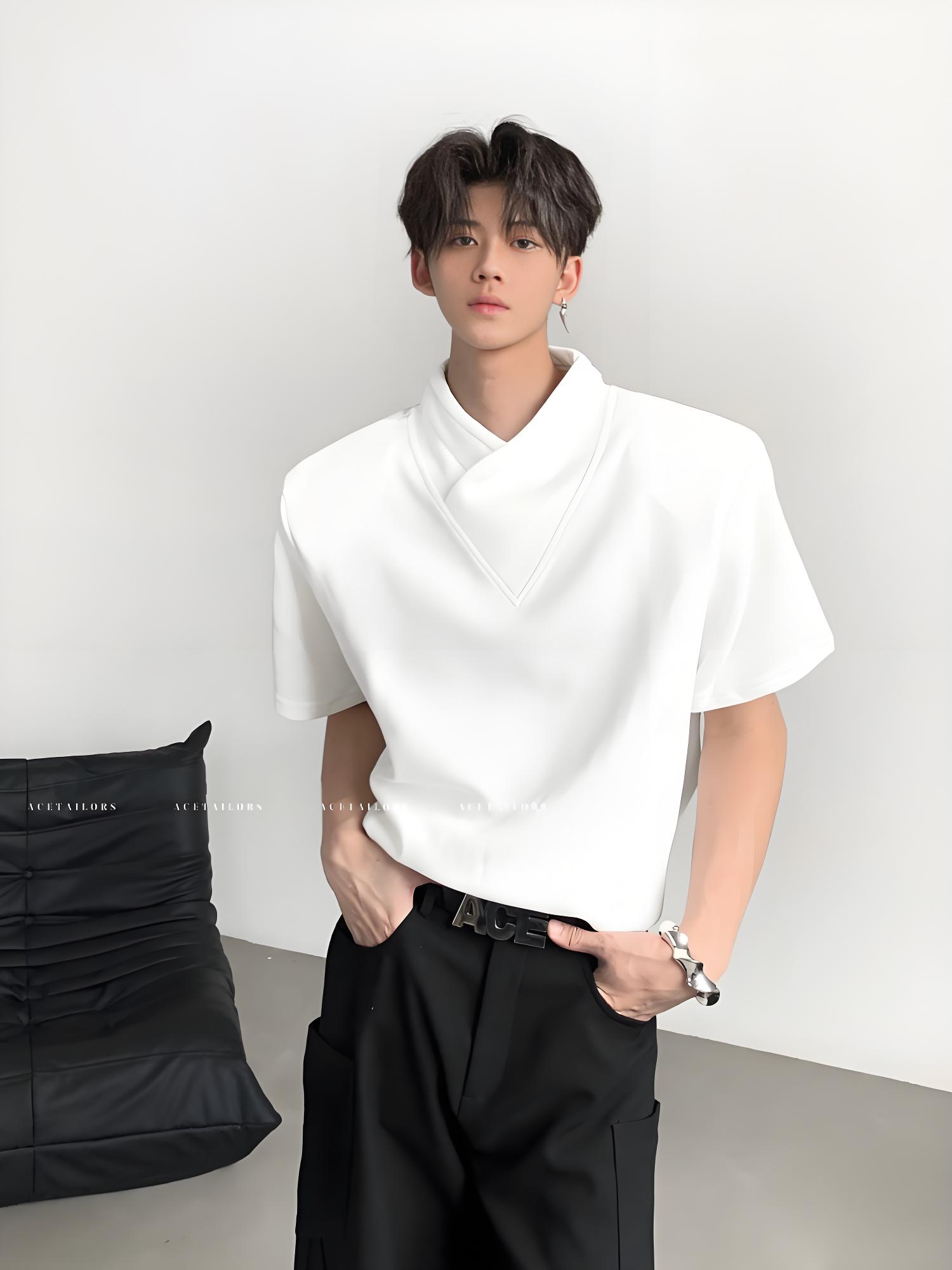 Double-Layer V-Neck Short Sleeve T-Shirt WN20078