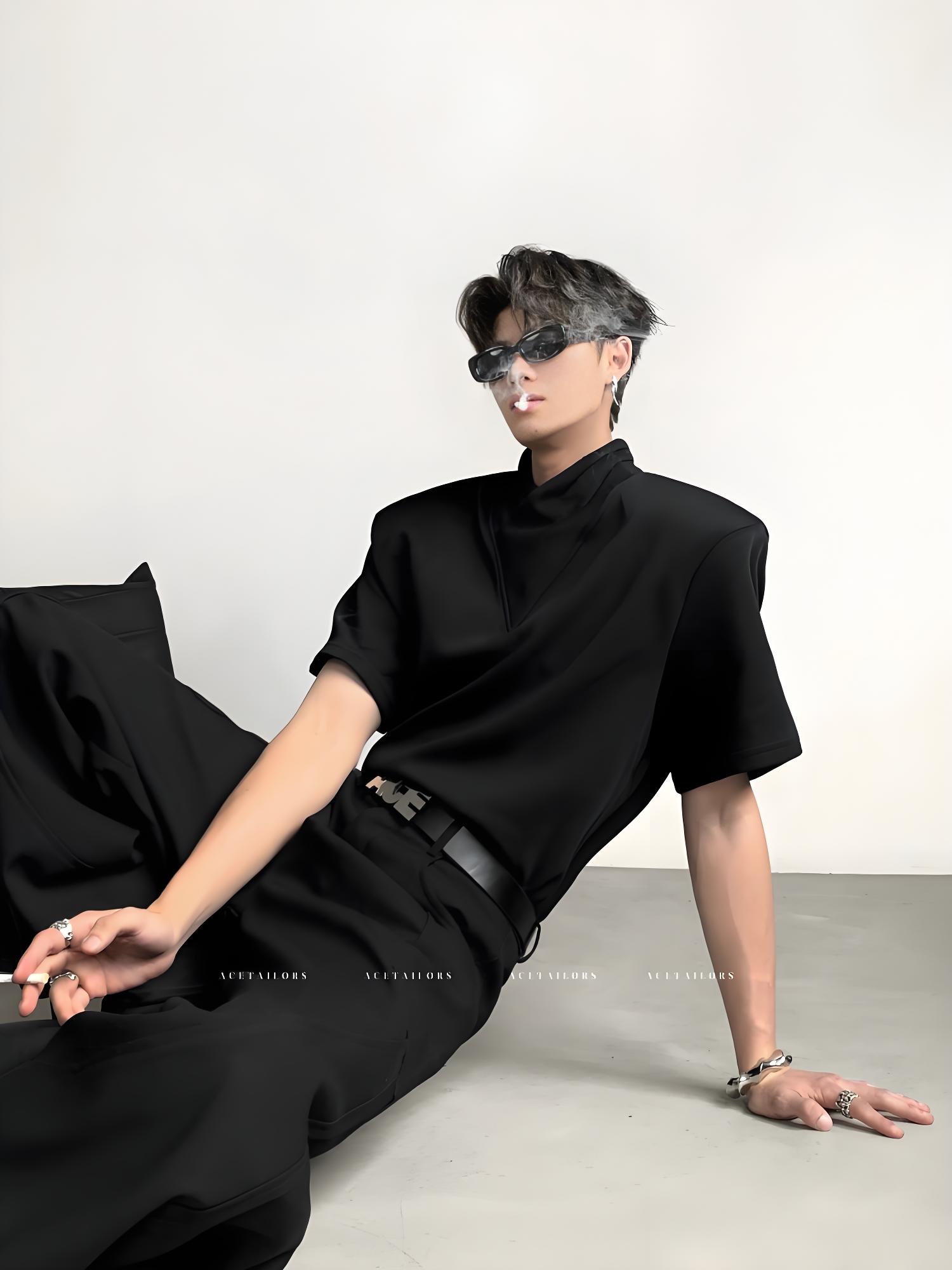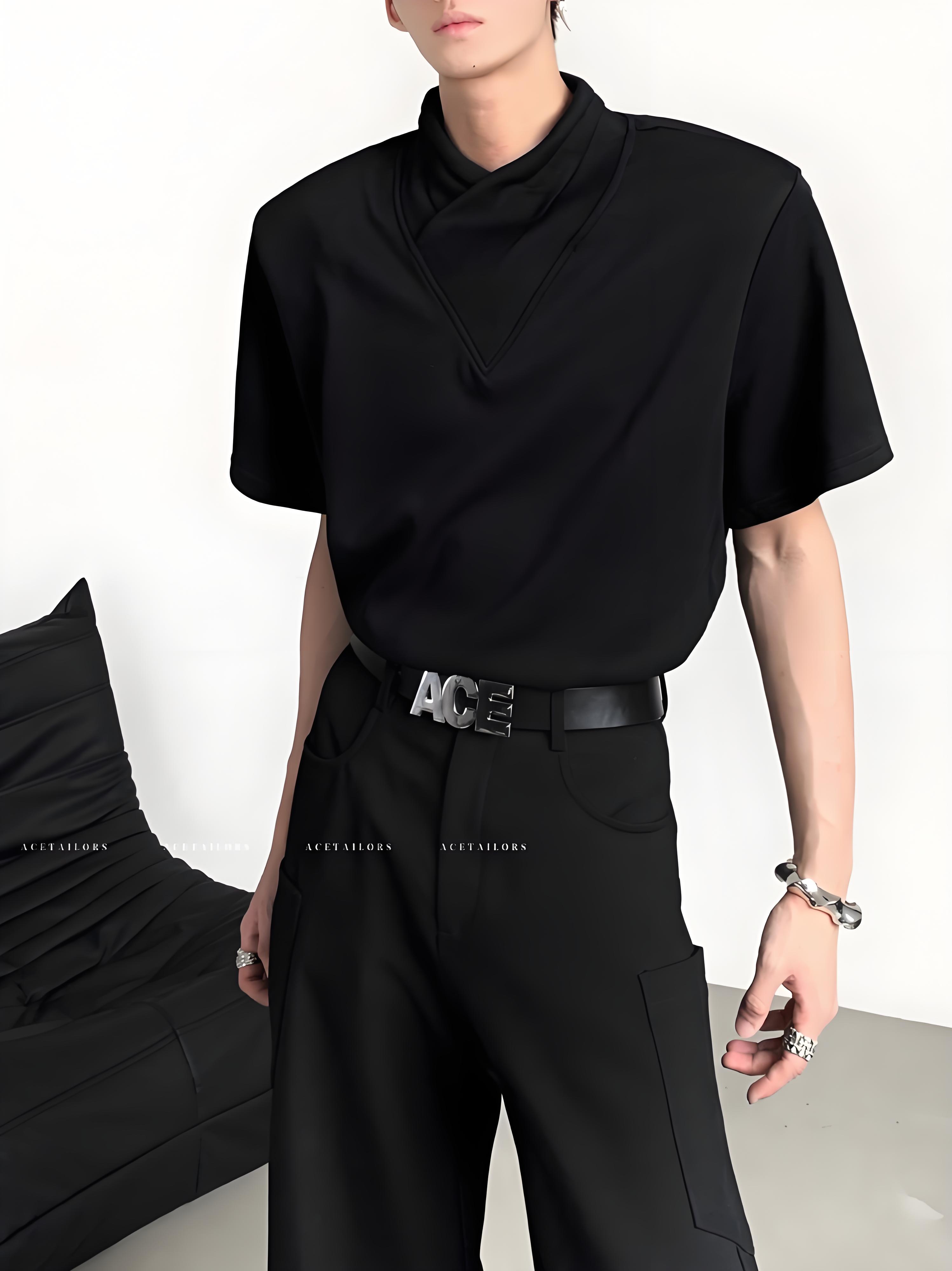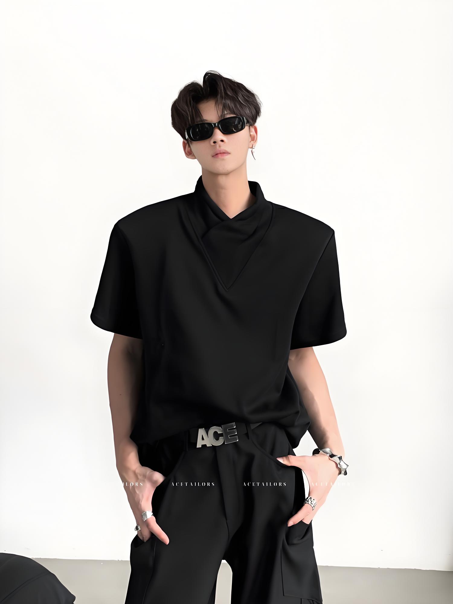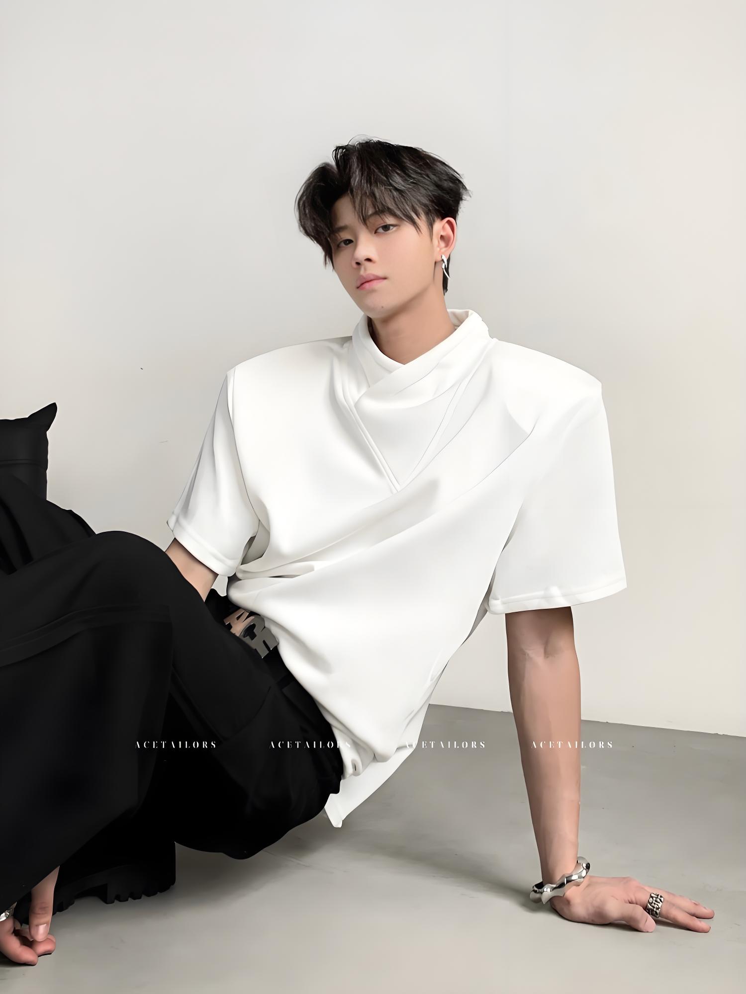 Double-Layer V-Neck Short Sleeve T-Shirt WN20078