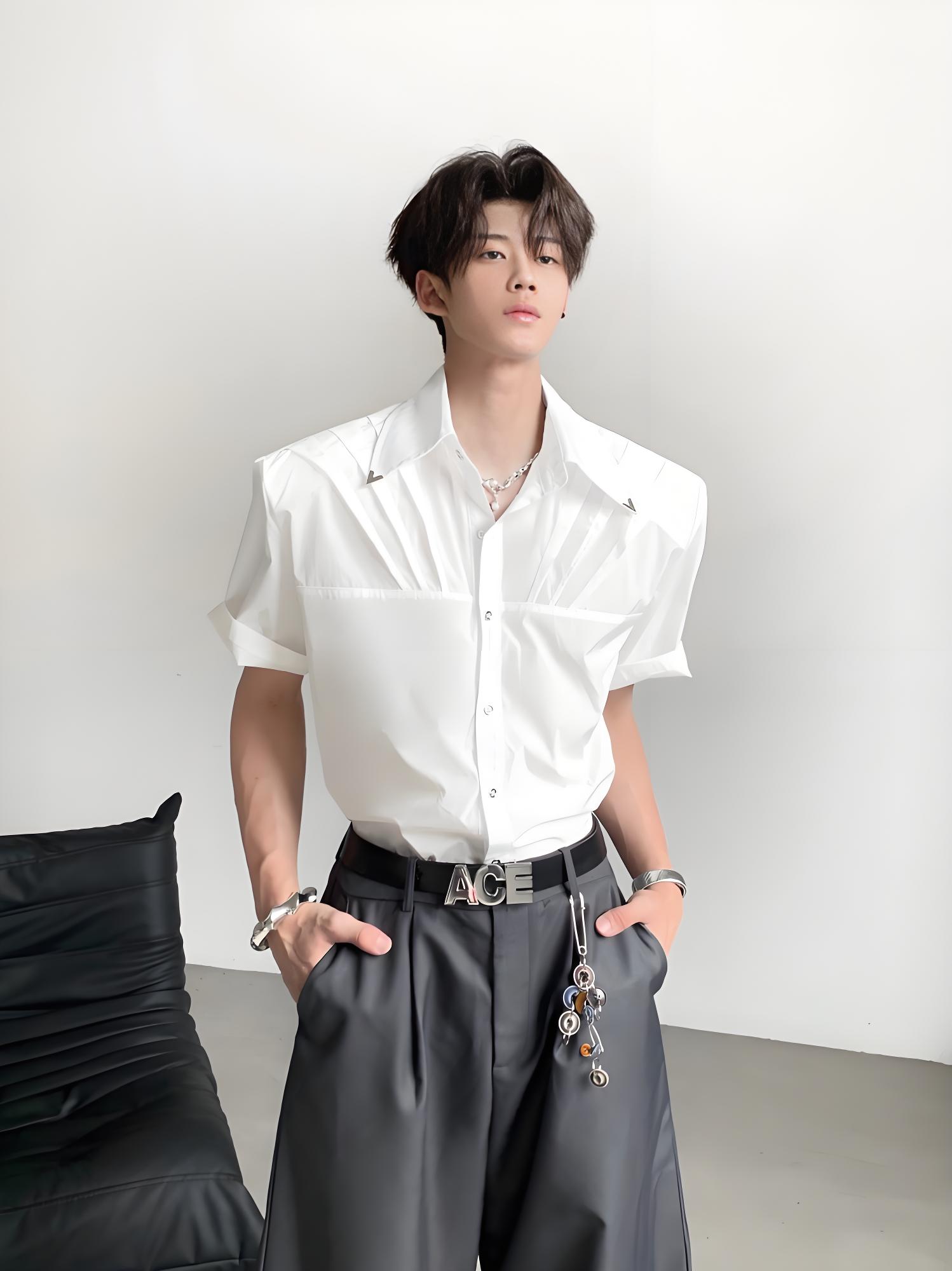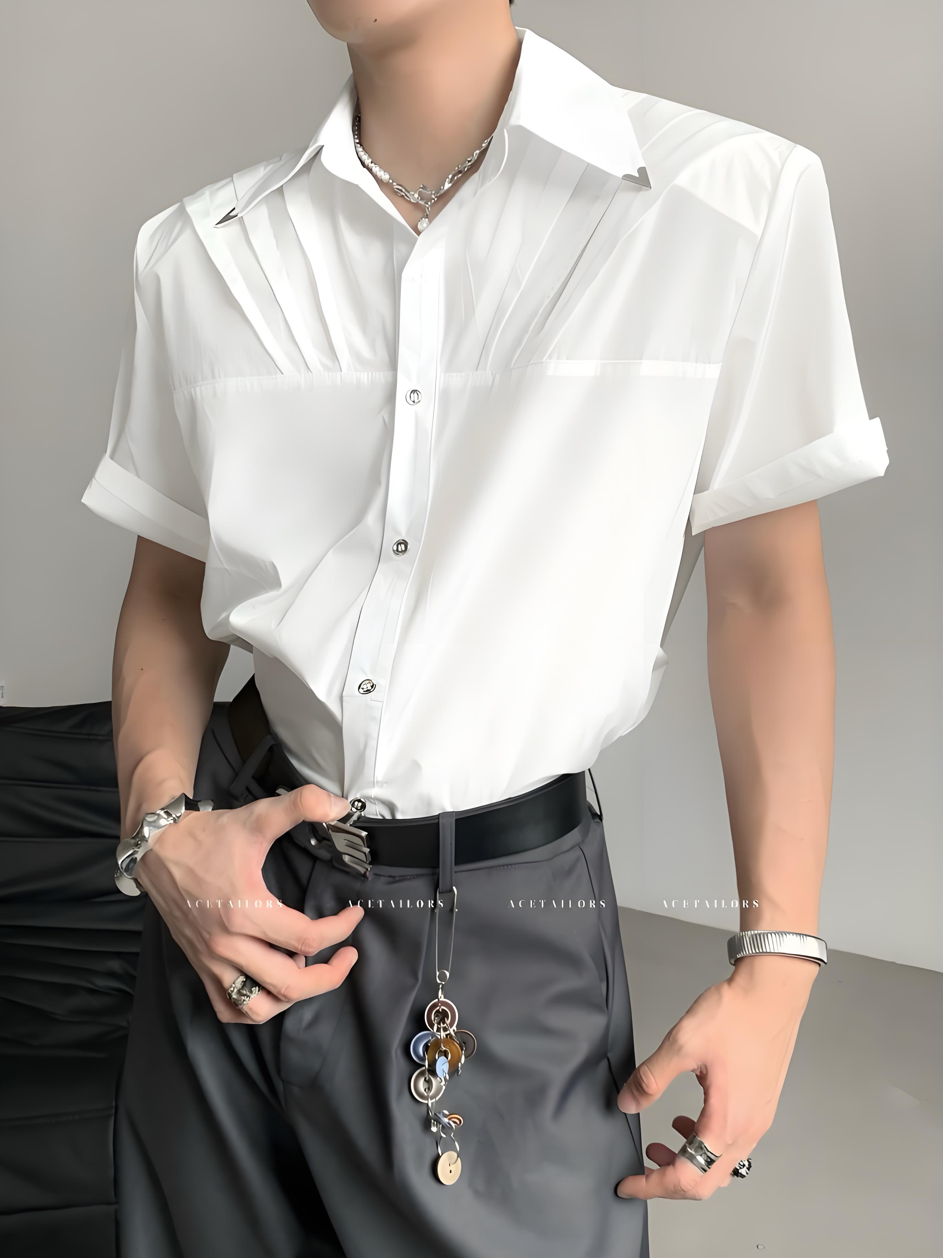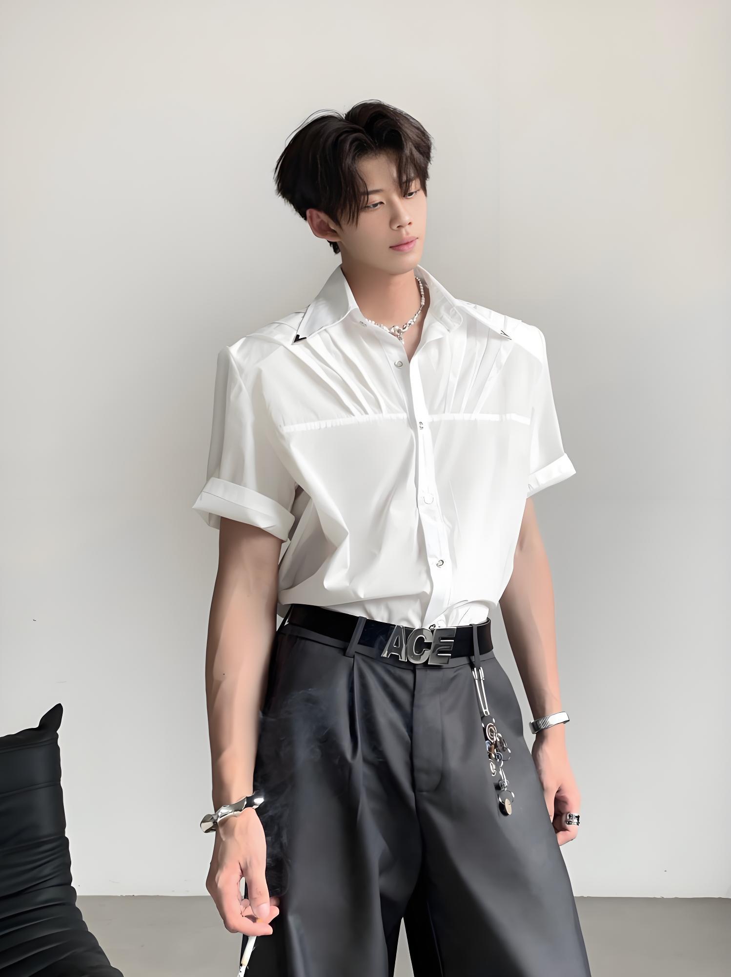 Pleated Wrinkle-Free Short Sleeve Shirt WN20089