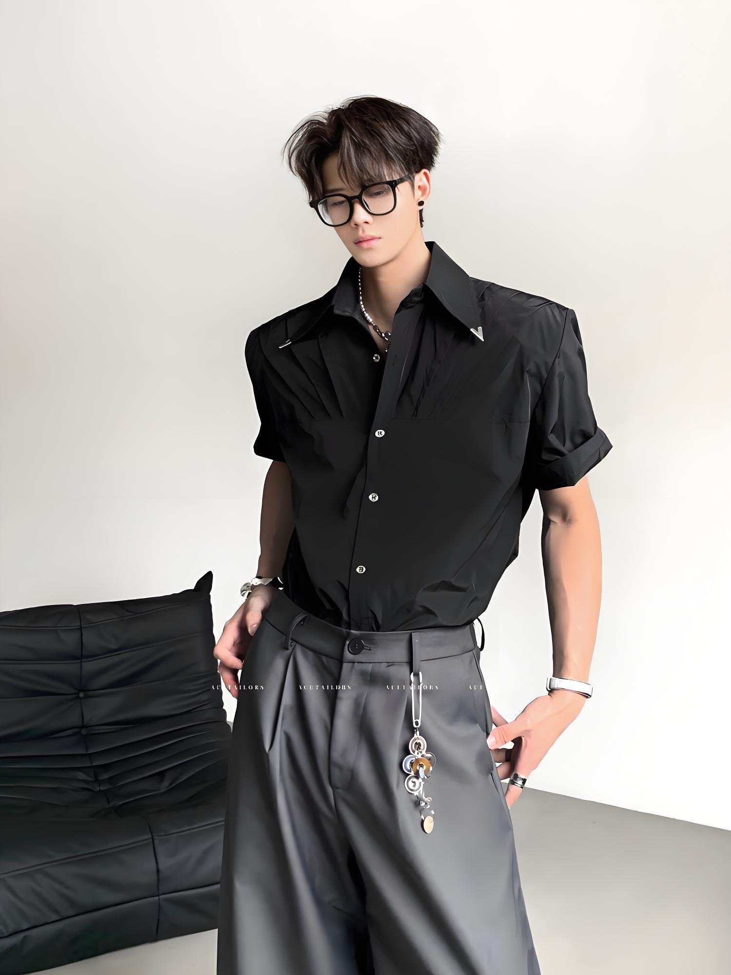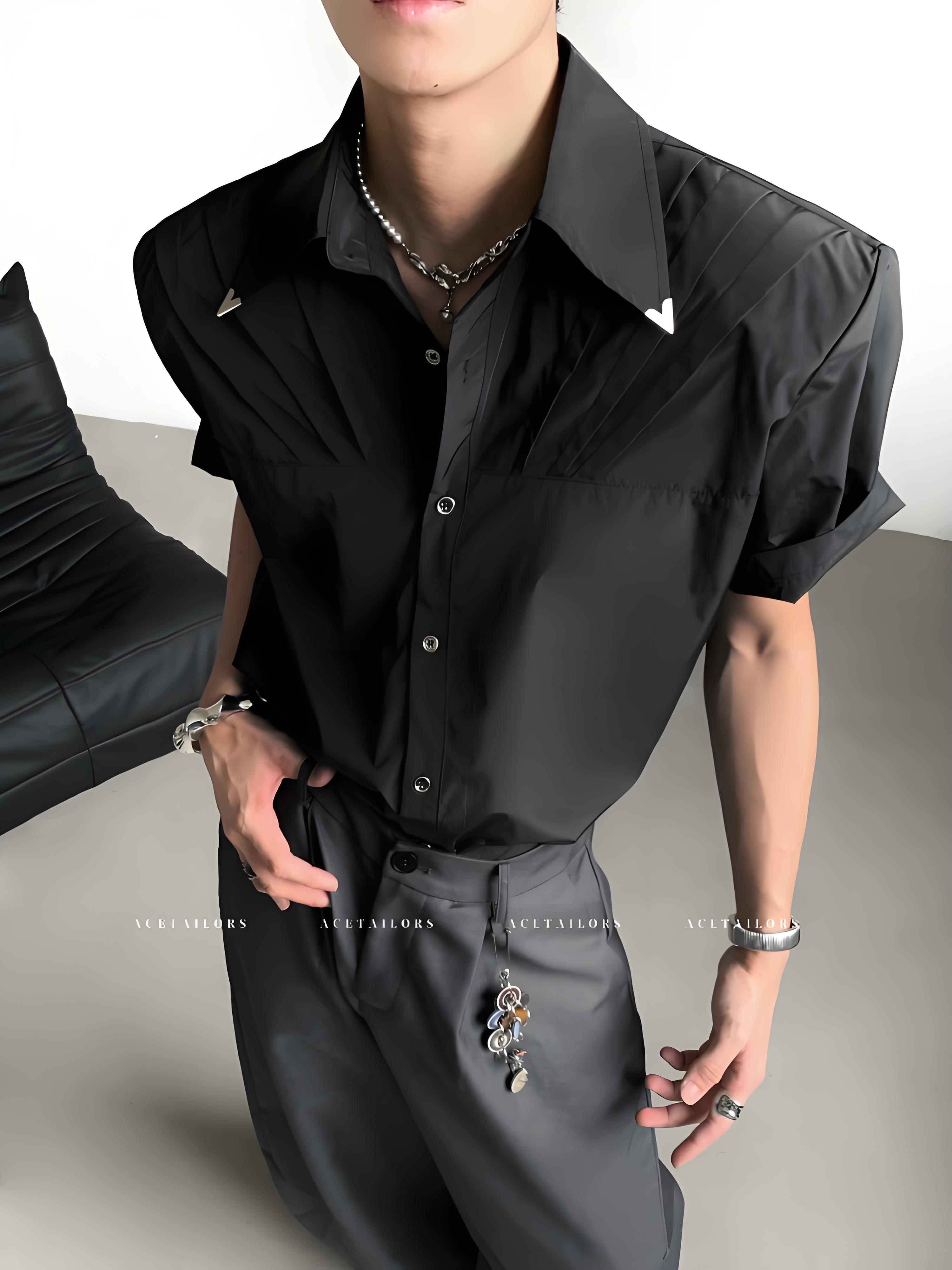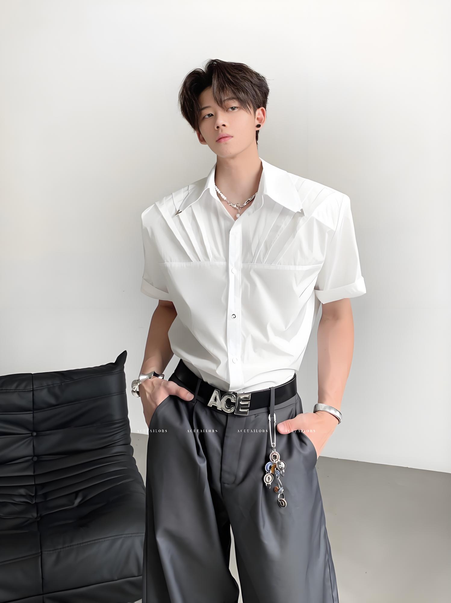 Pleated Wrinkle-Free Short Sleeve Shirt WN20089