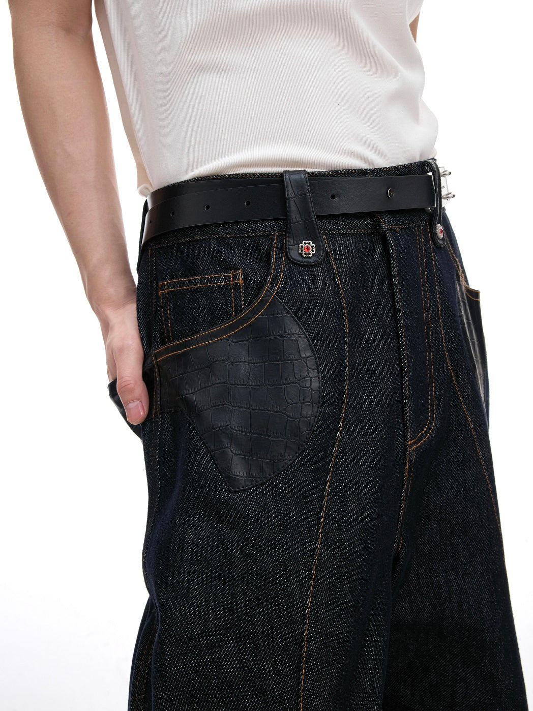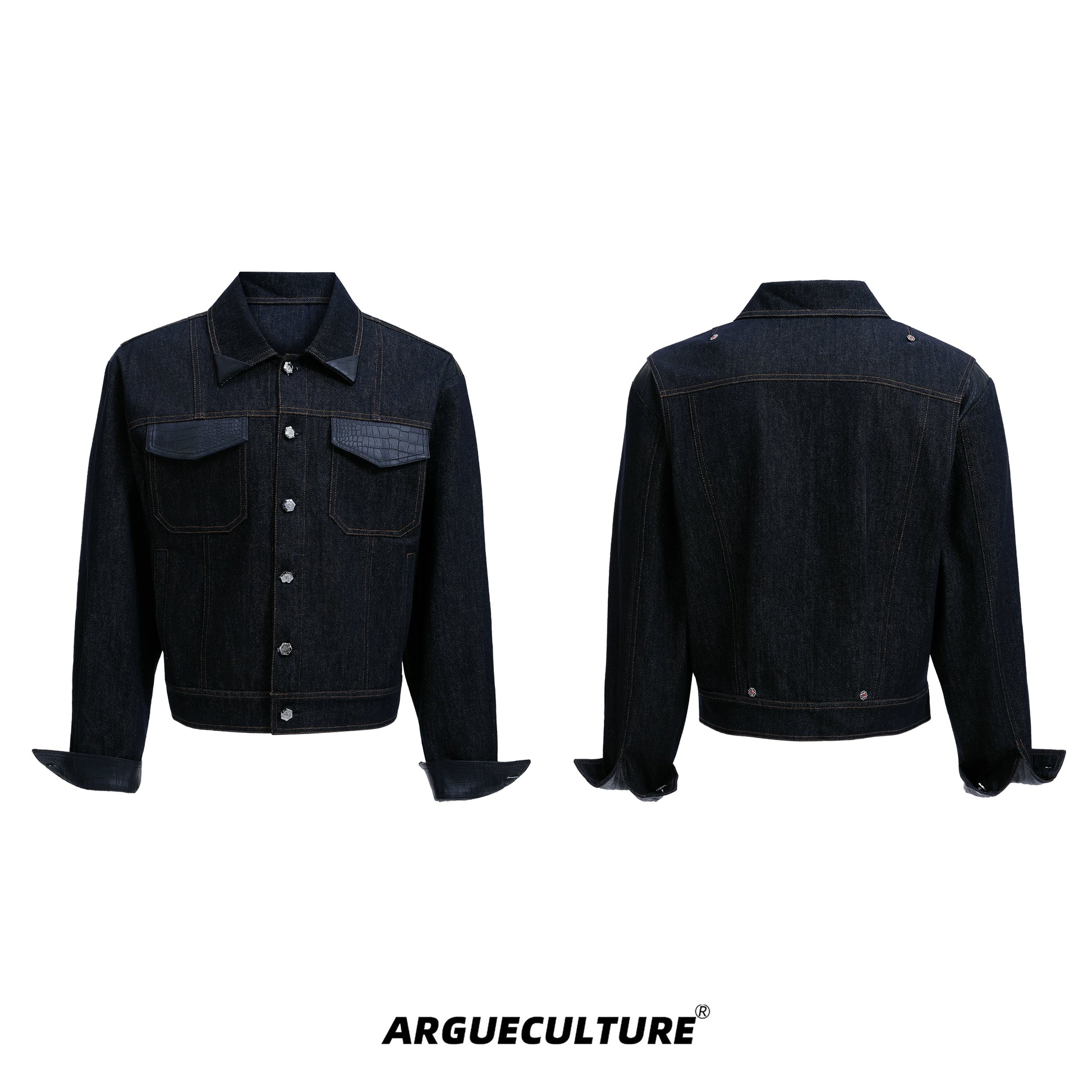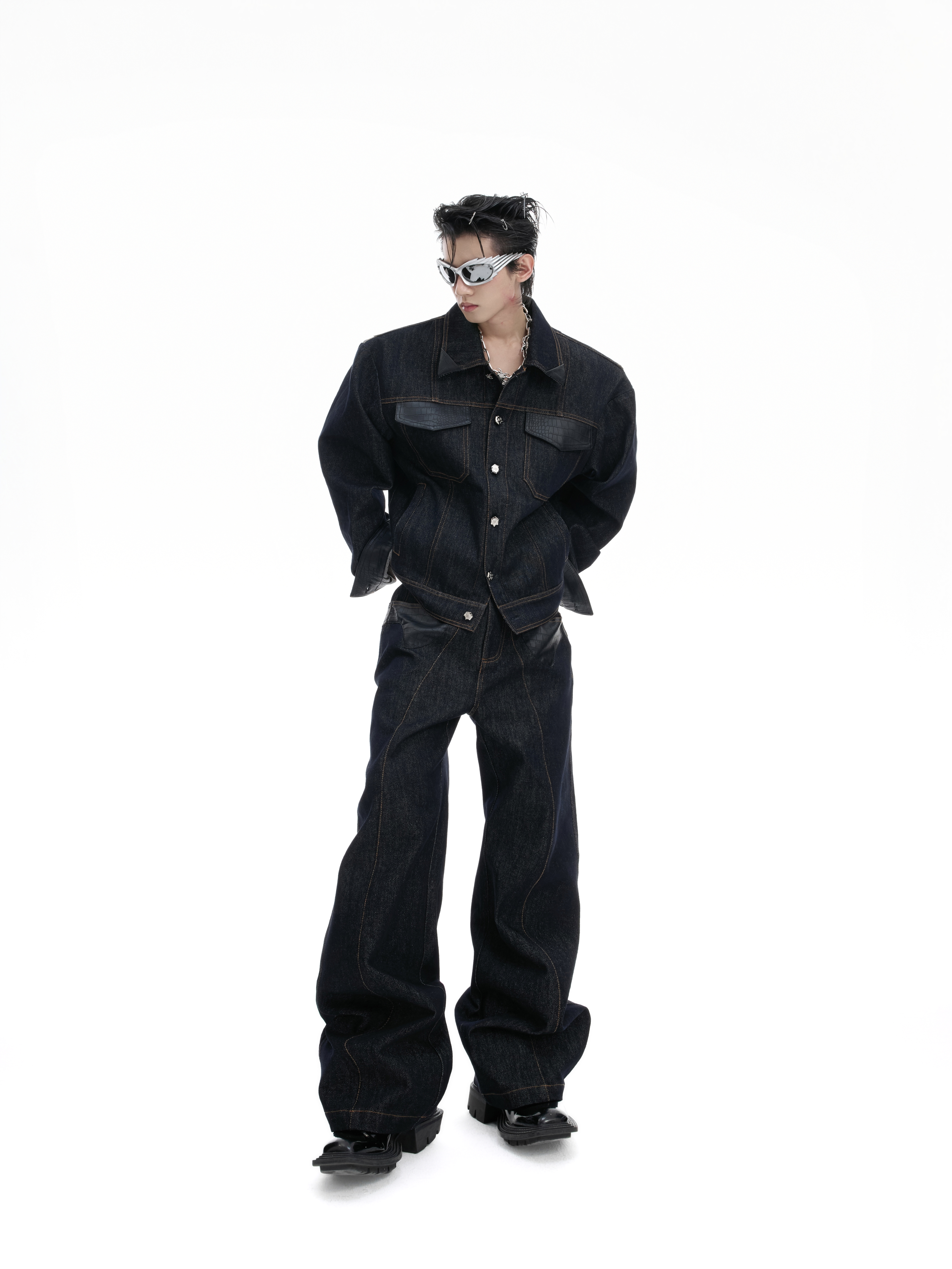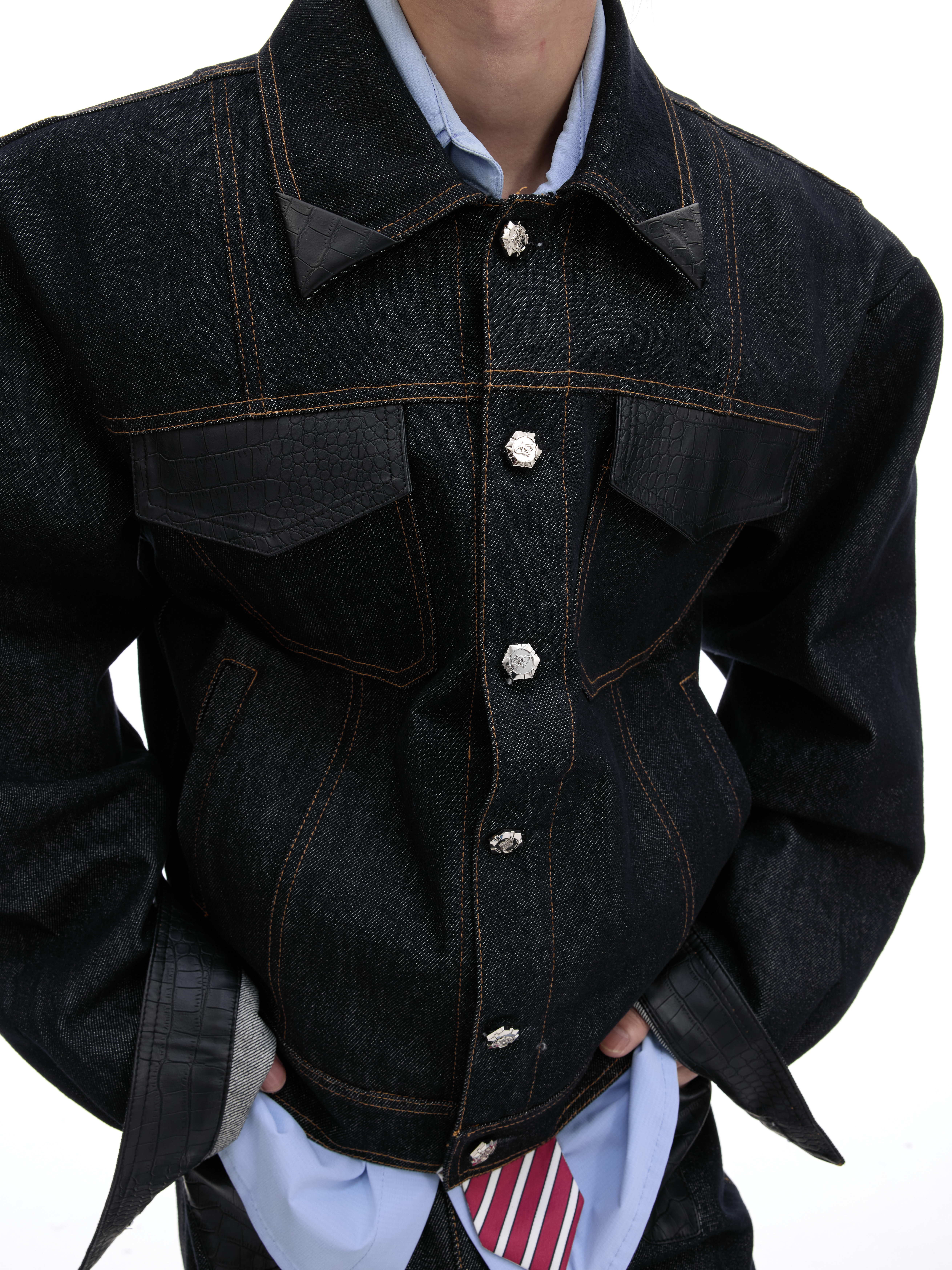 Crocodile Pattern PU Leather Mix Denim Jacket & PU Leather Mix Denim Jeans Setup WN20524