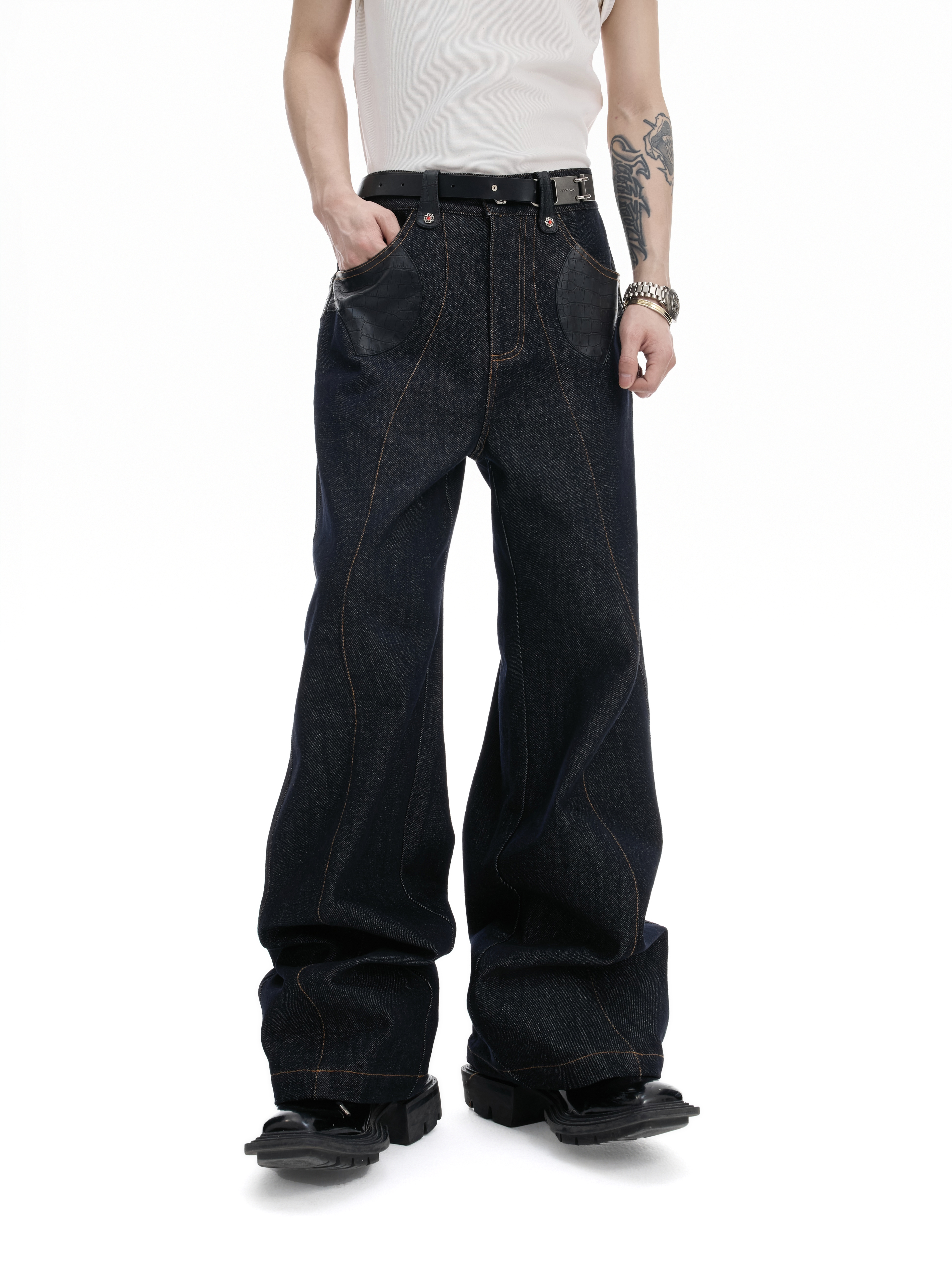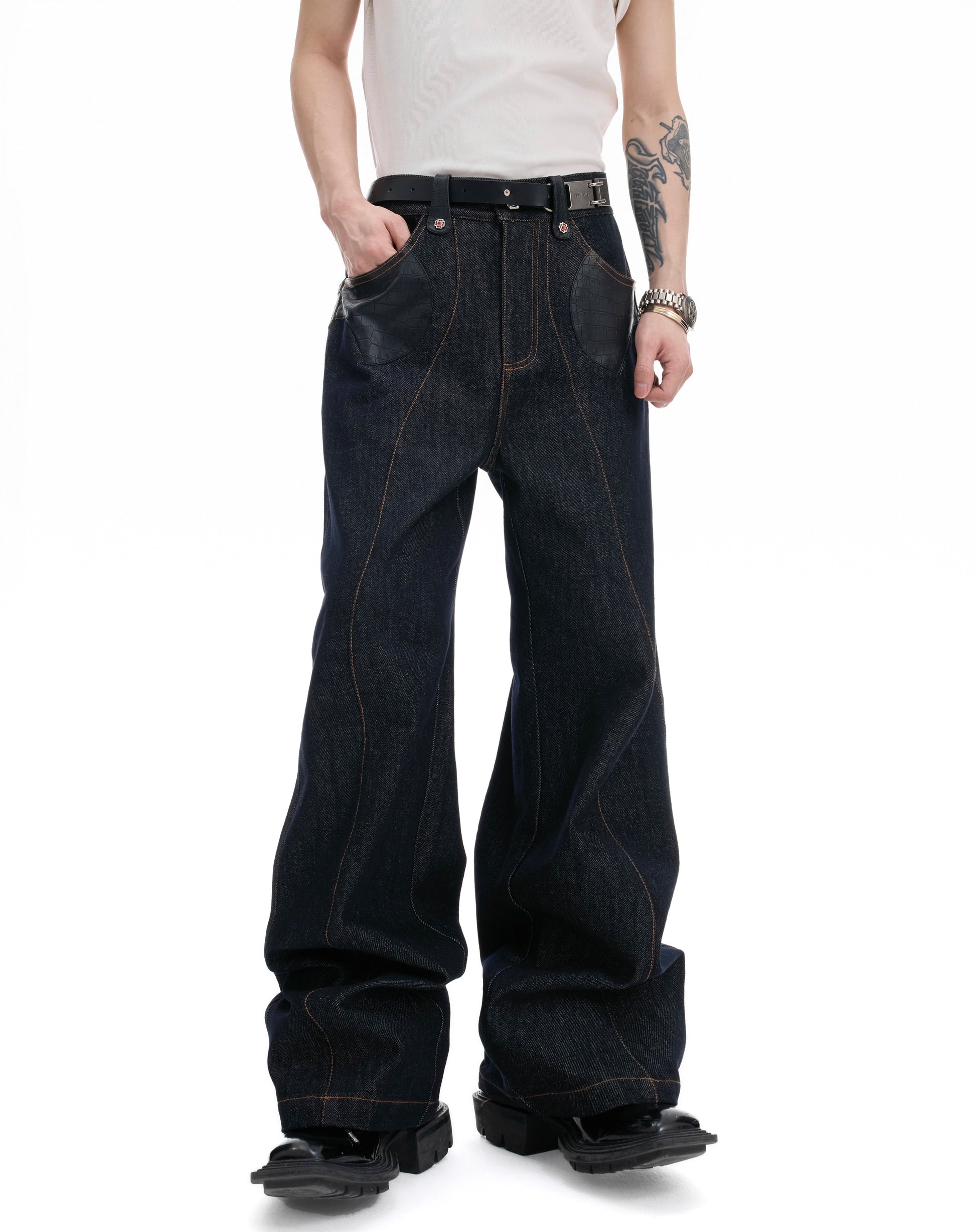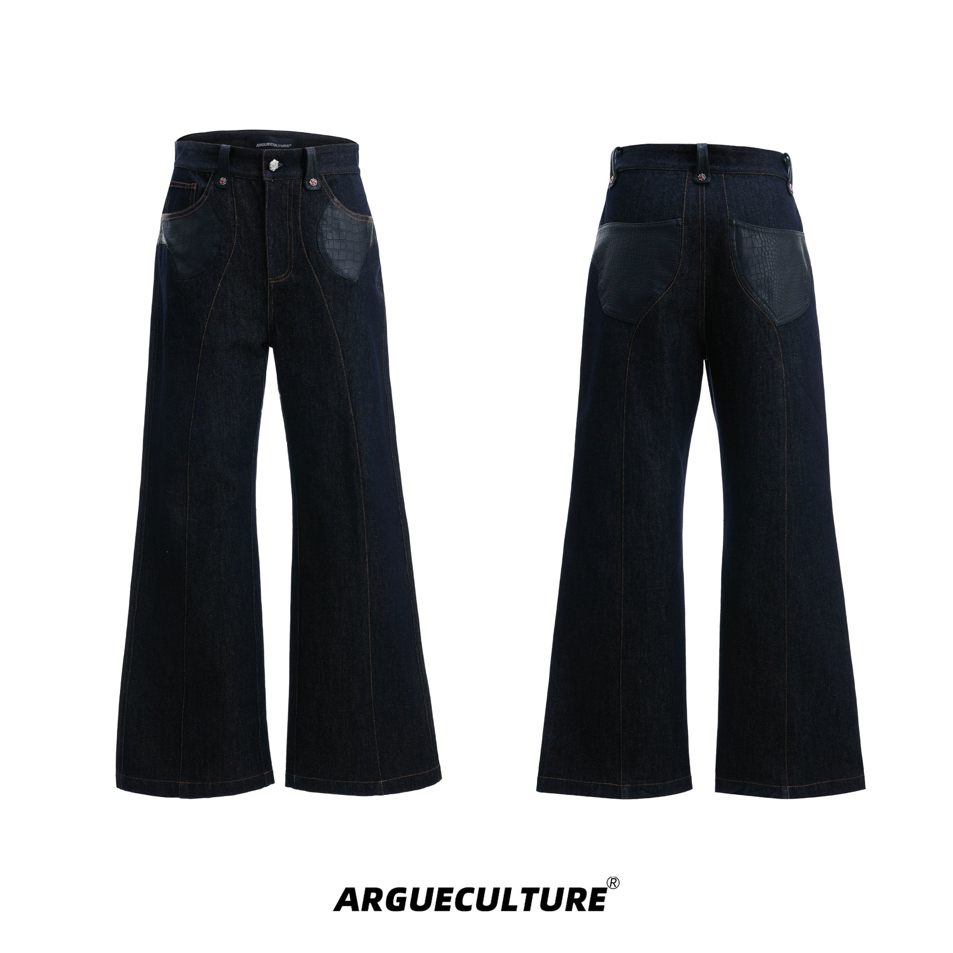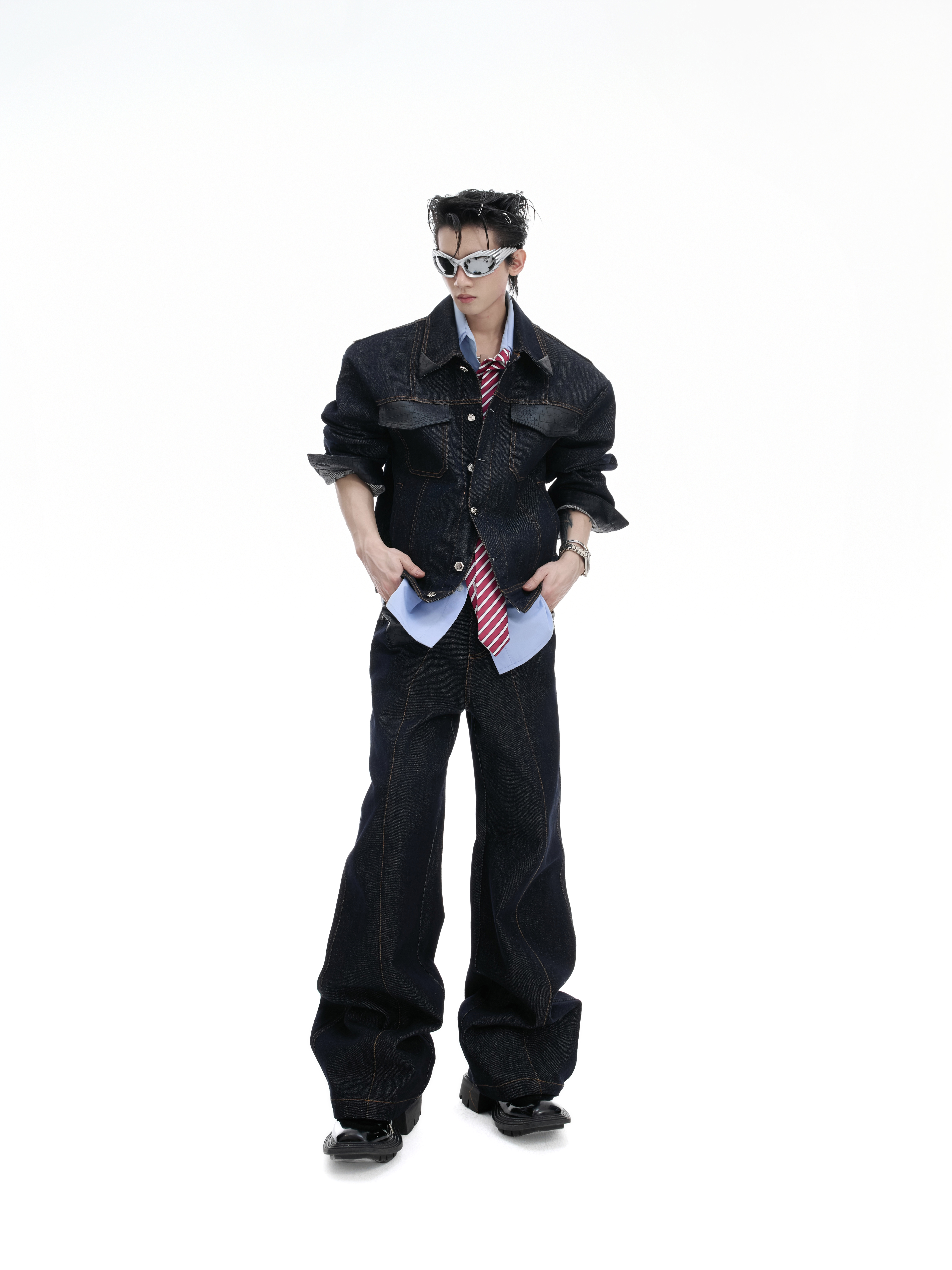 Crocodile Pattern PU Leather Mix Denim Jacket & PU Leather Mix Denim Jeans Setup WN20524