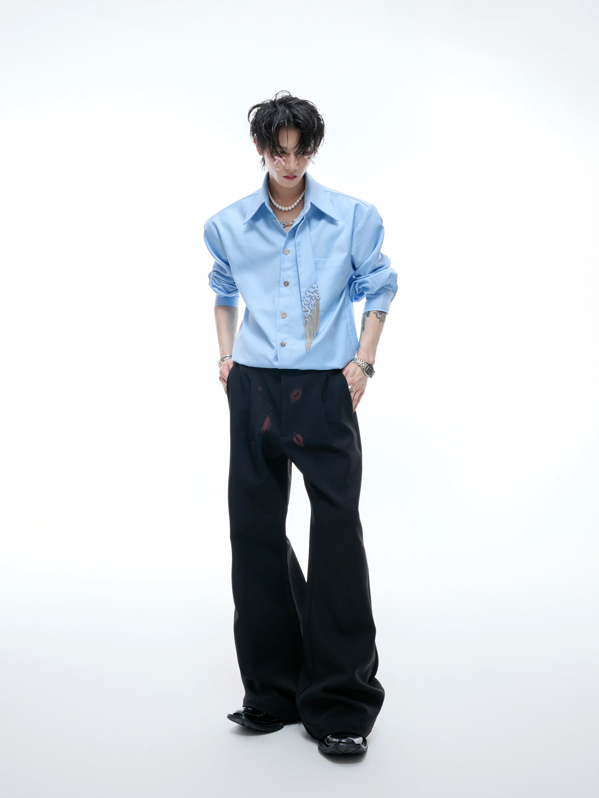 Plain Color Long Sleeve Shirt & Tie WN20536