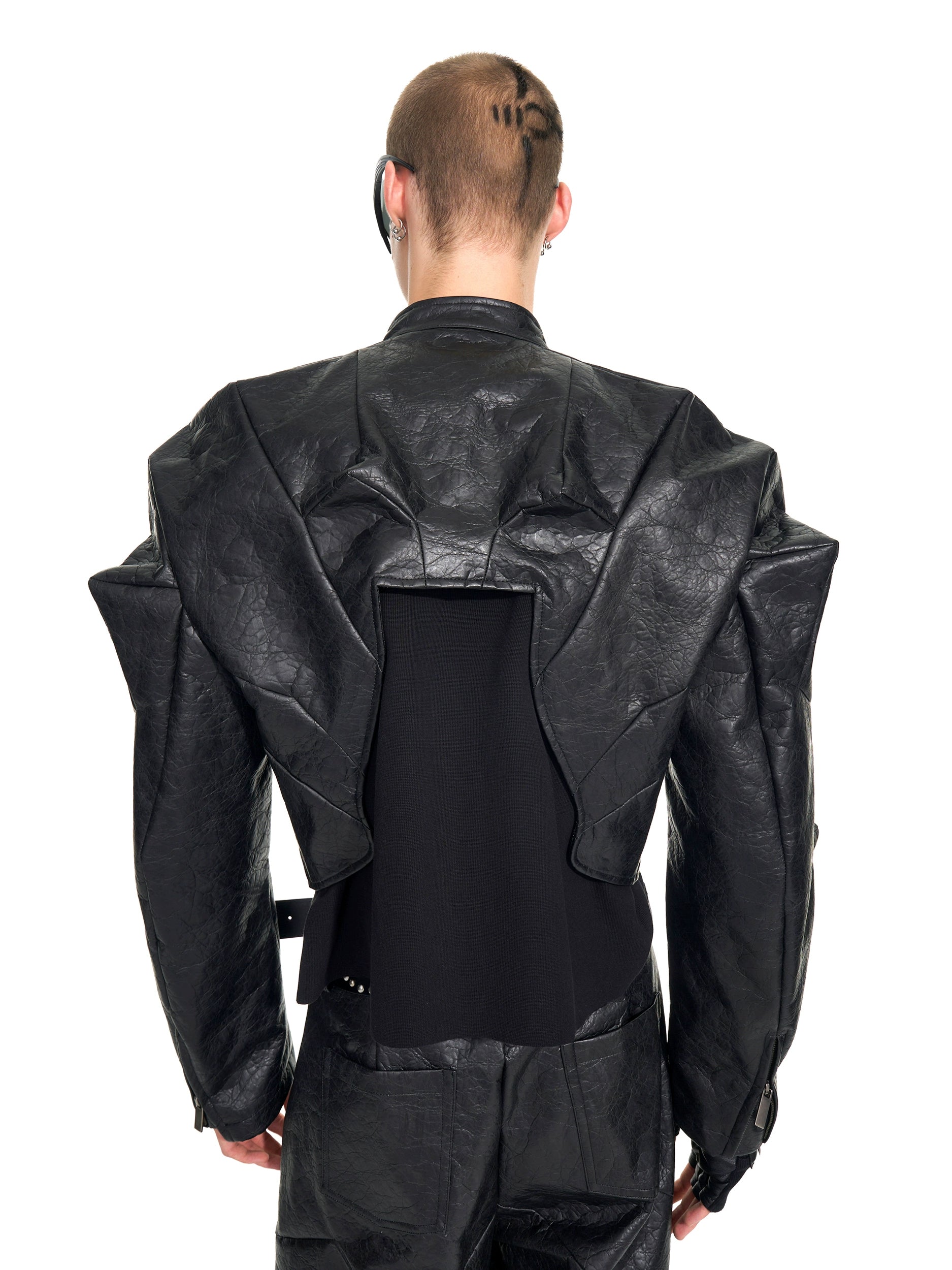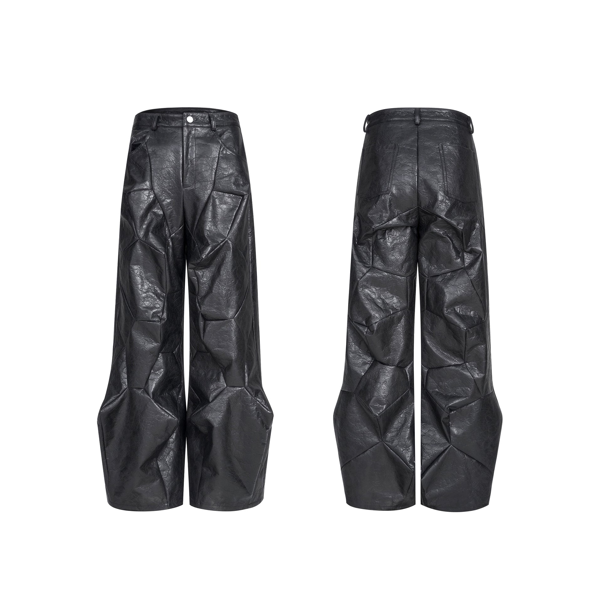 Deconstruction PU Leather Jacket & Wide Leg Pants Setup WN20949