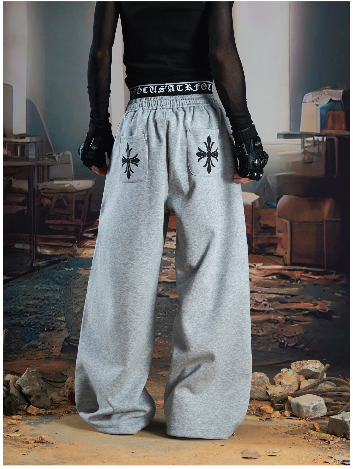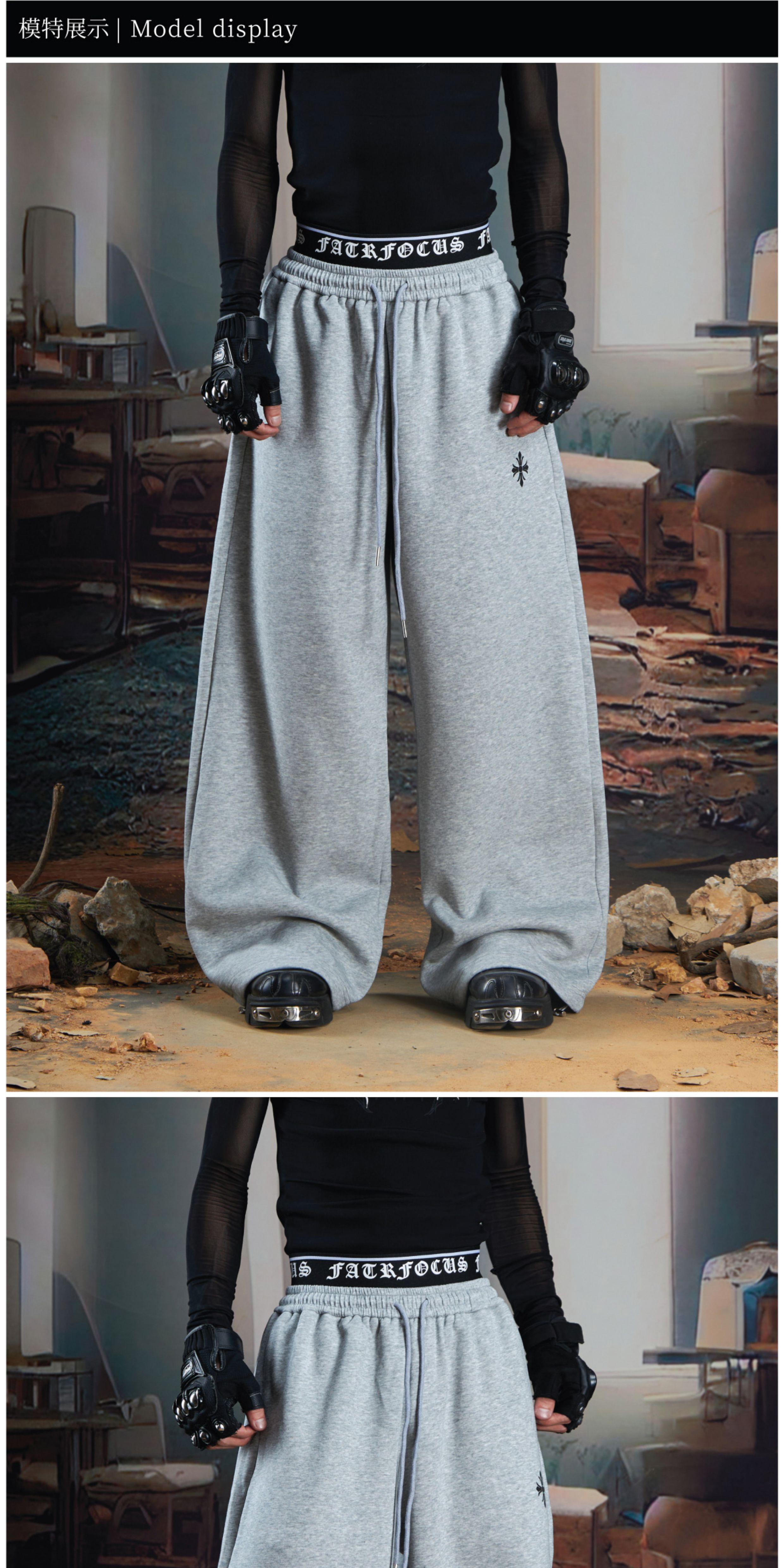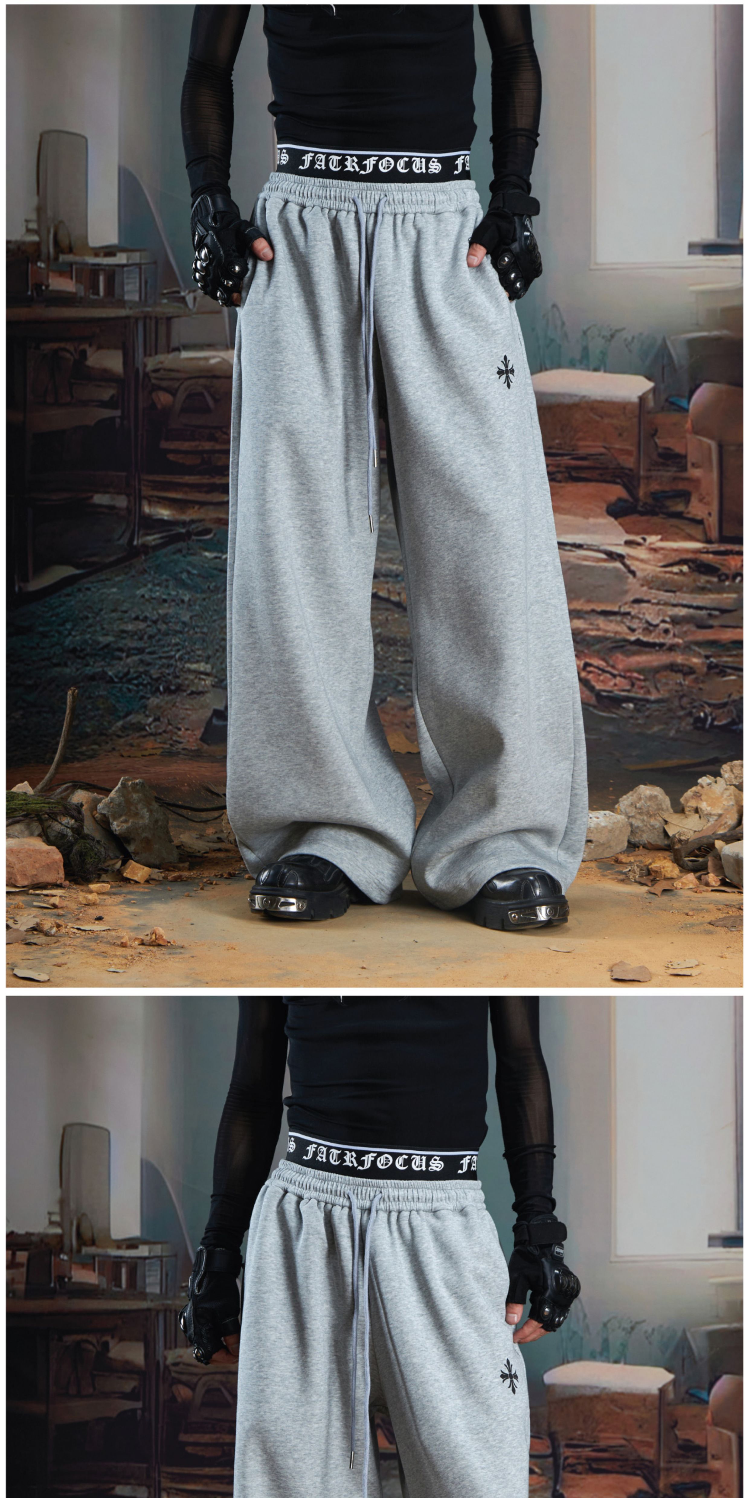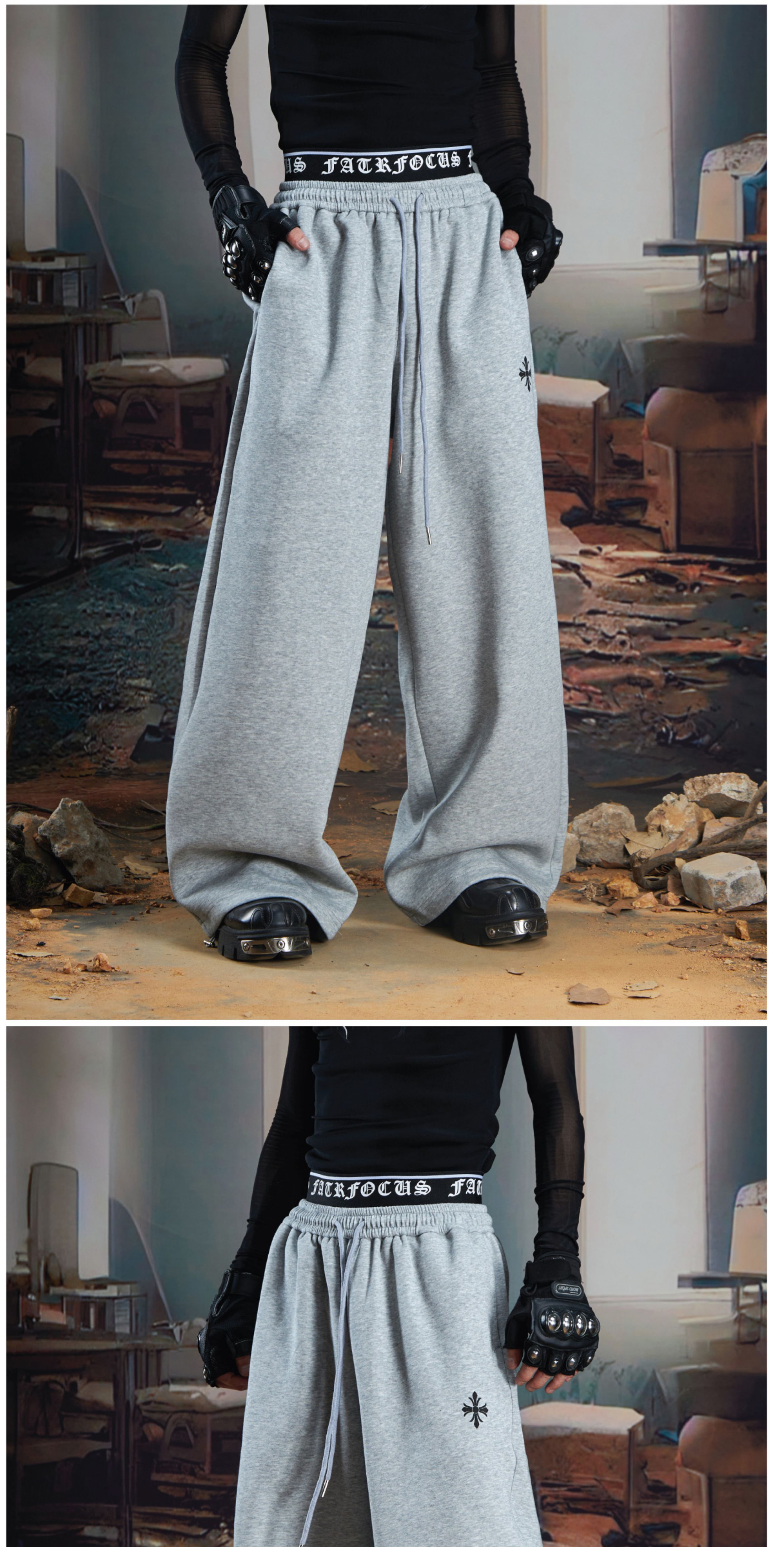 Double-Waistband Embroidery Sporty Pants WN21345