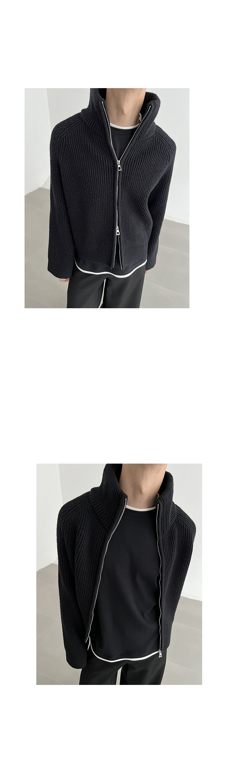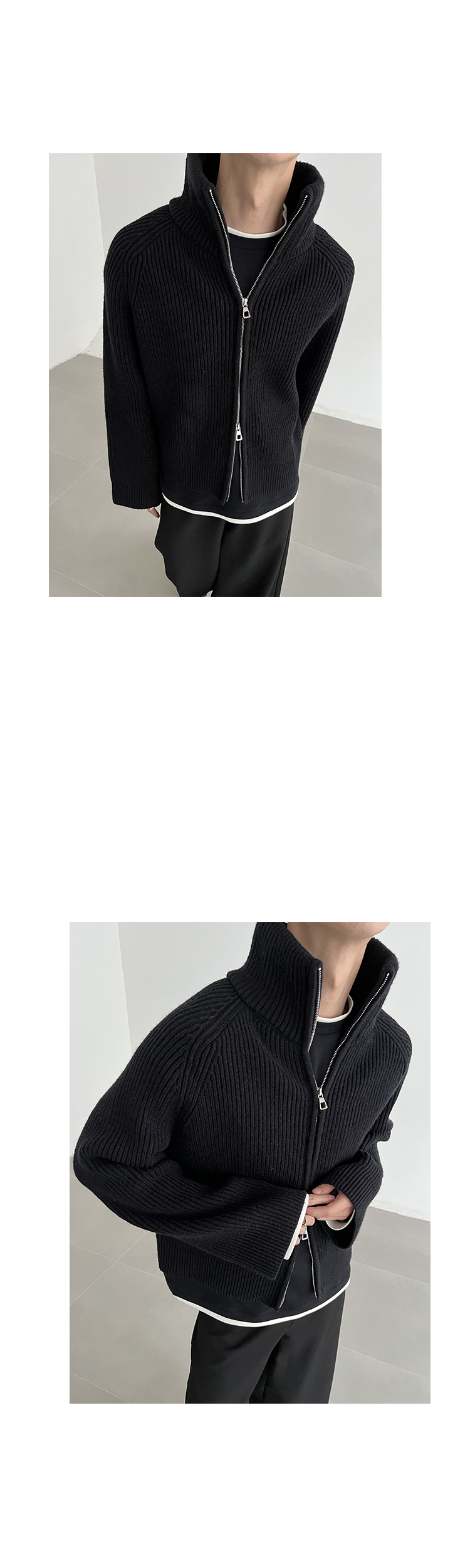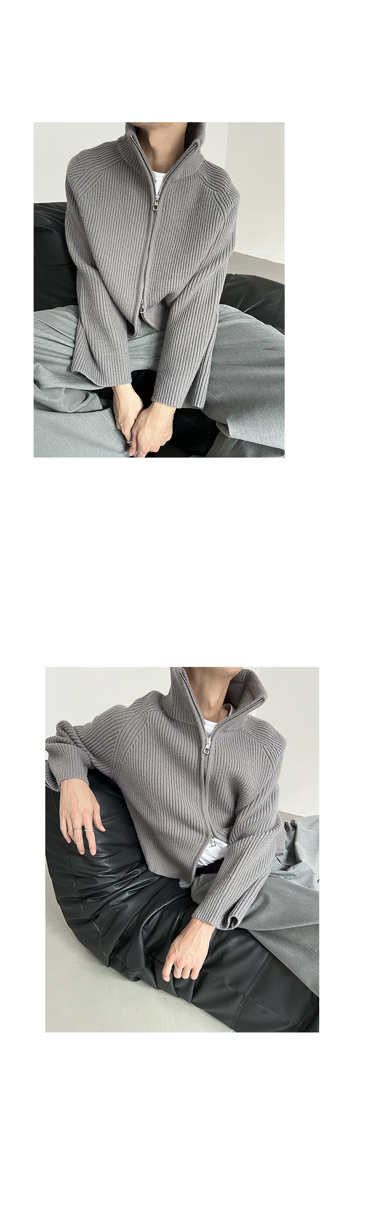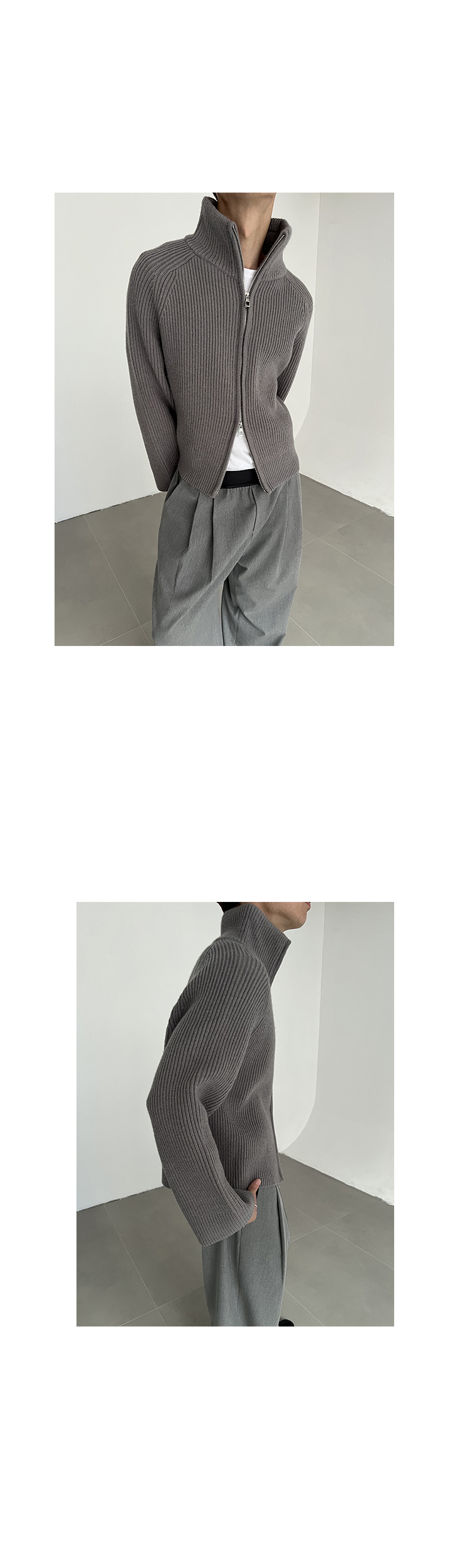 Thick Zipper Stand Neck Knit Cardigan WN21673