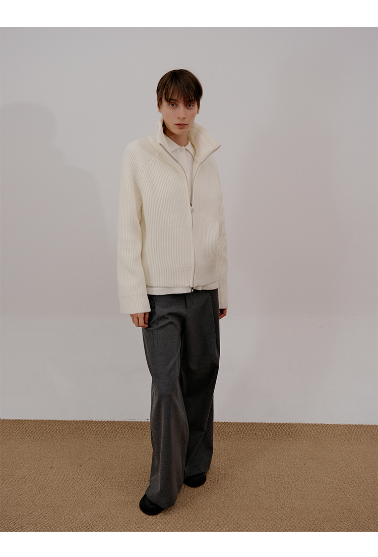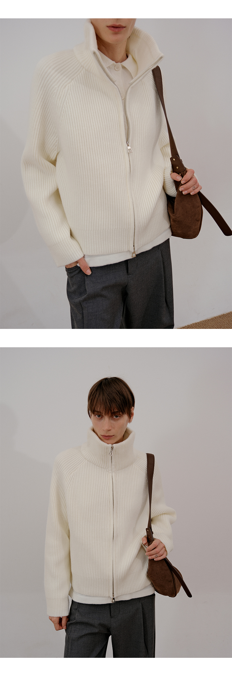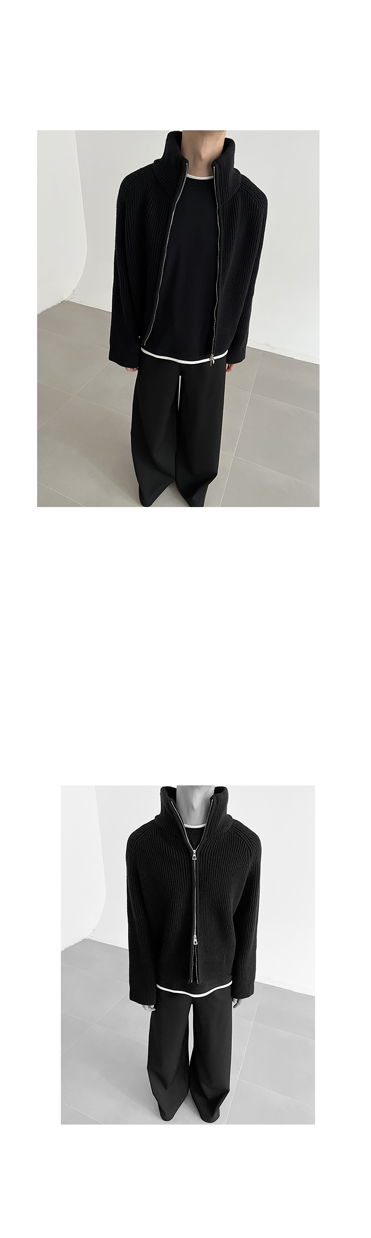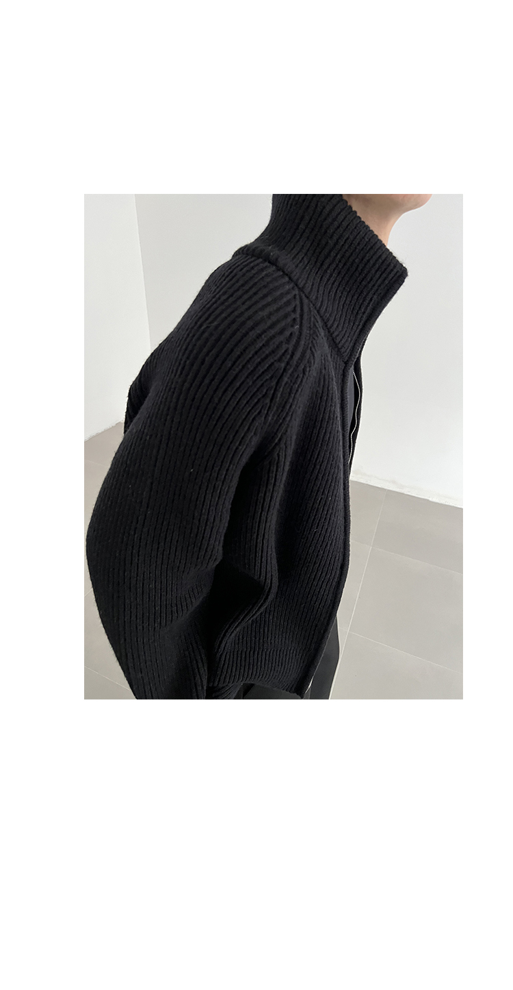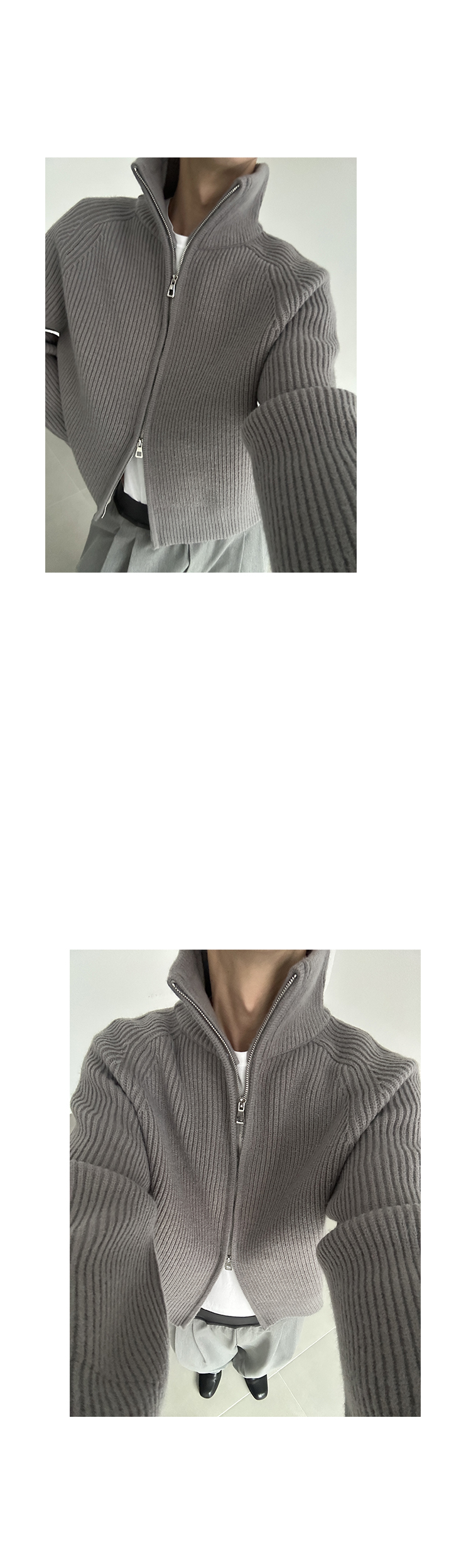 Thick Zipper Stand Neck Knit Cardigan WN21673