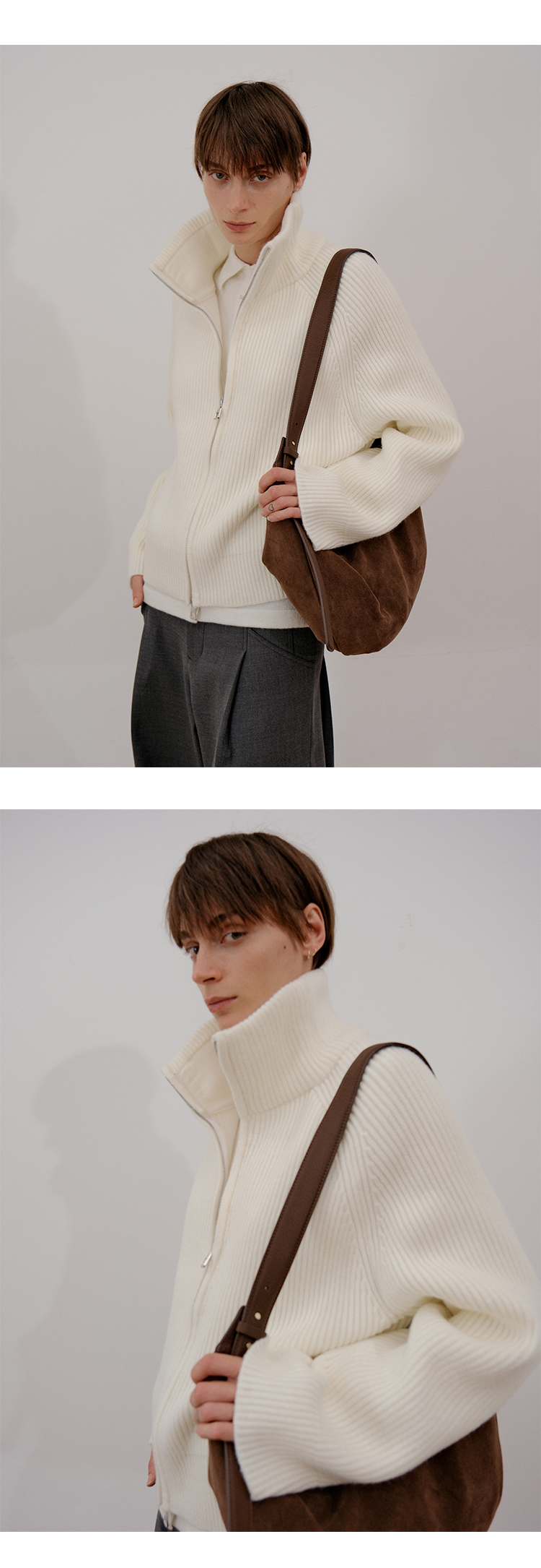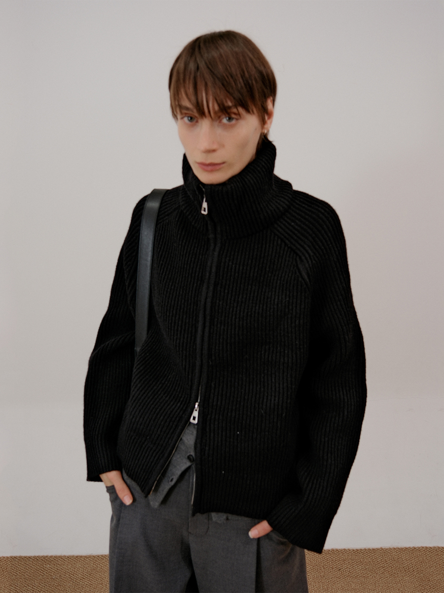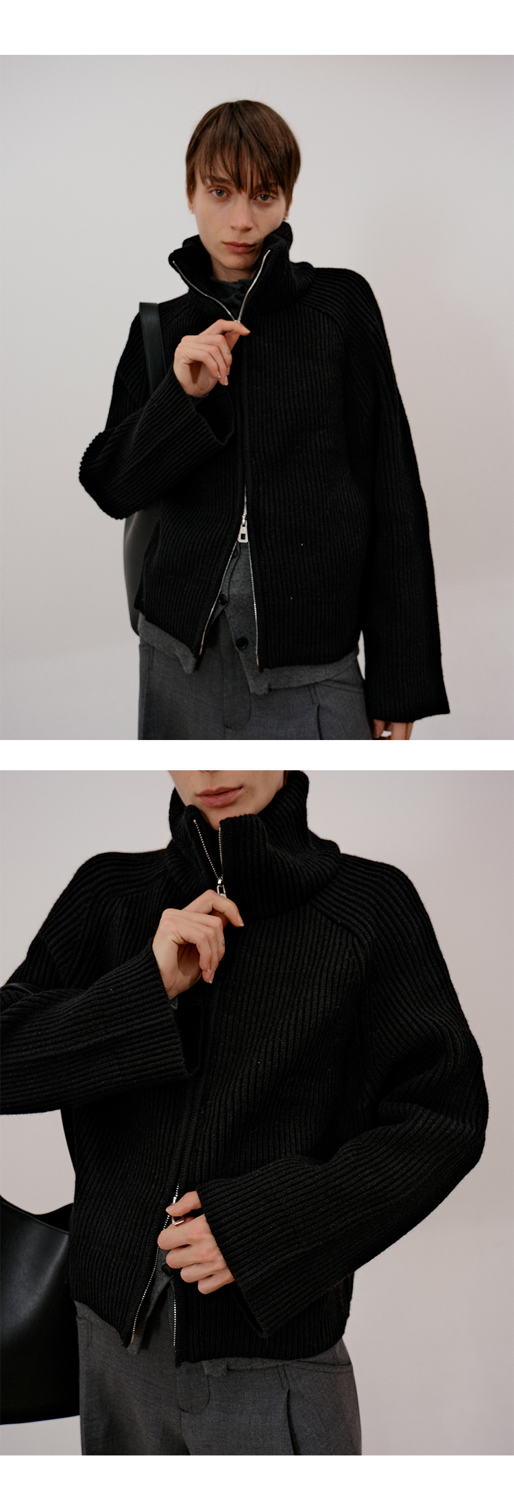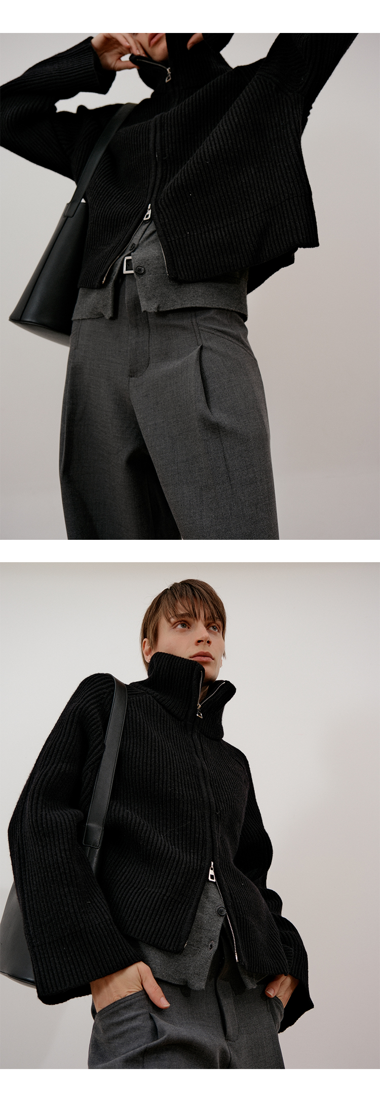 Thick Zipper Stand Neck Knit Cardigan WN21673