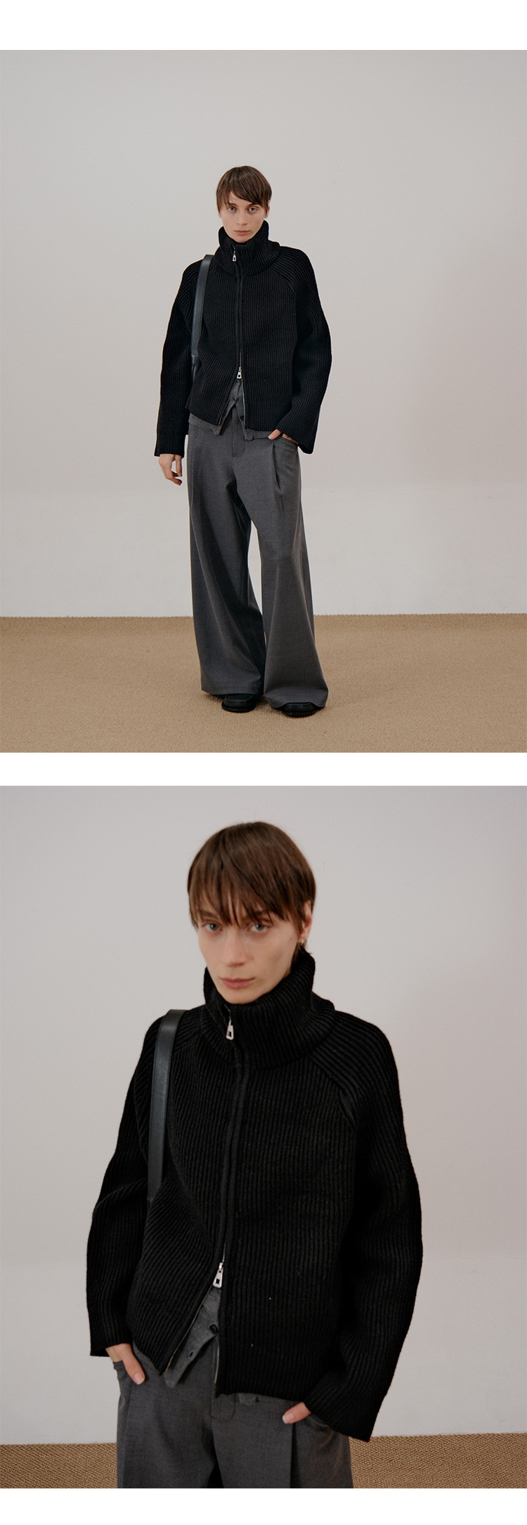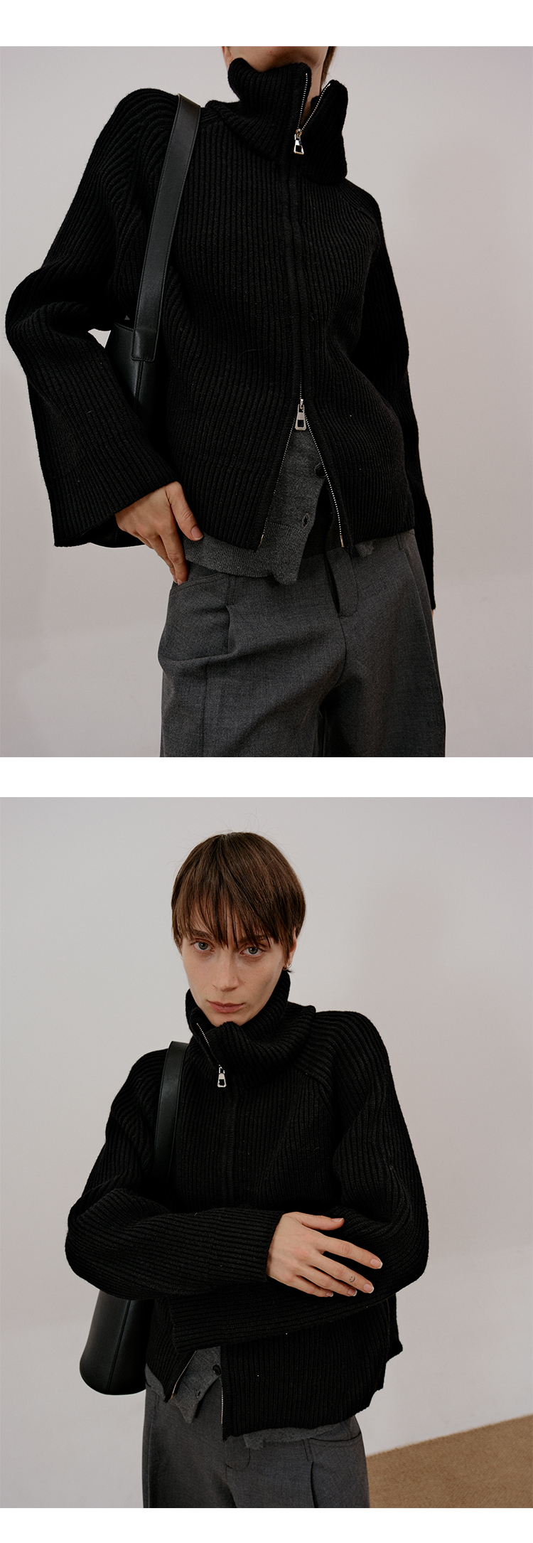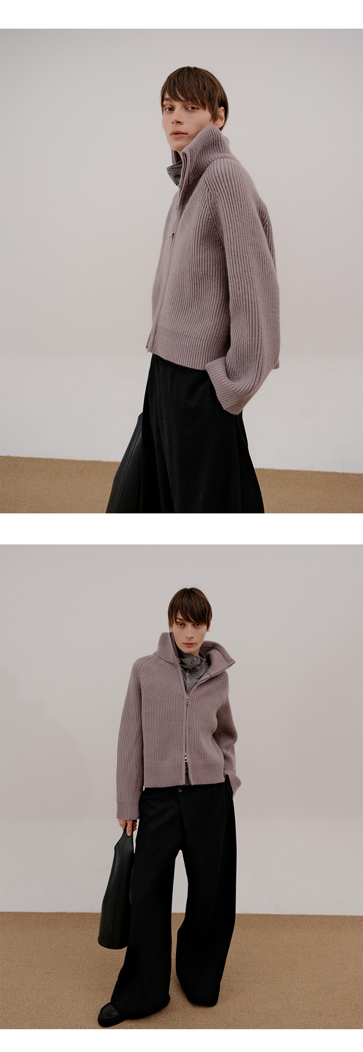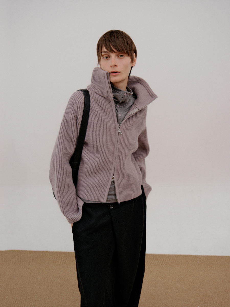 Thick Zipper Stand Neck Knit Cardigan WN21673