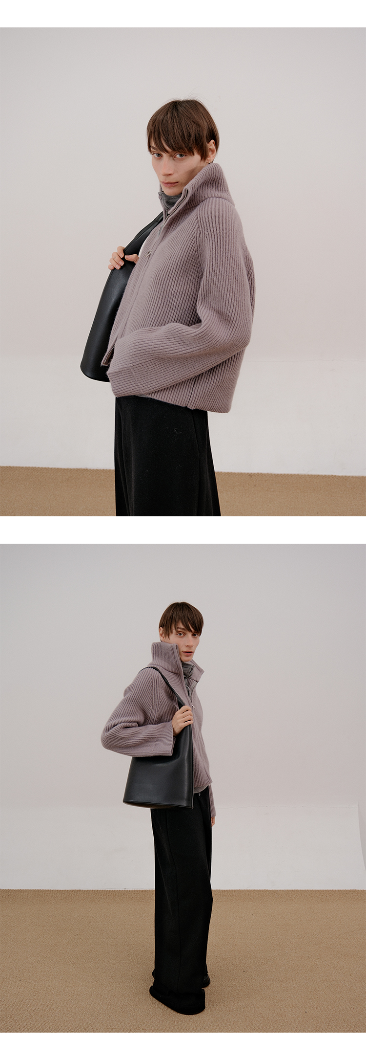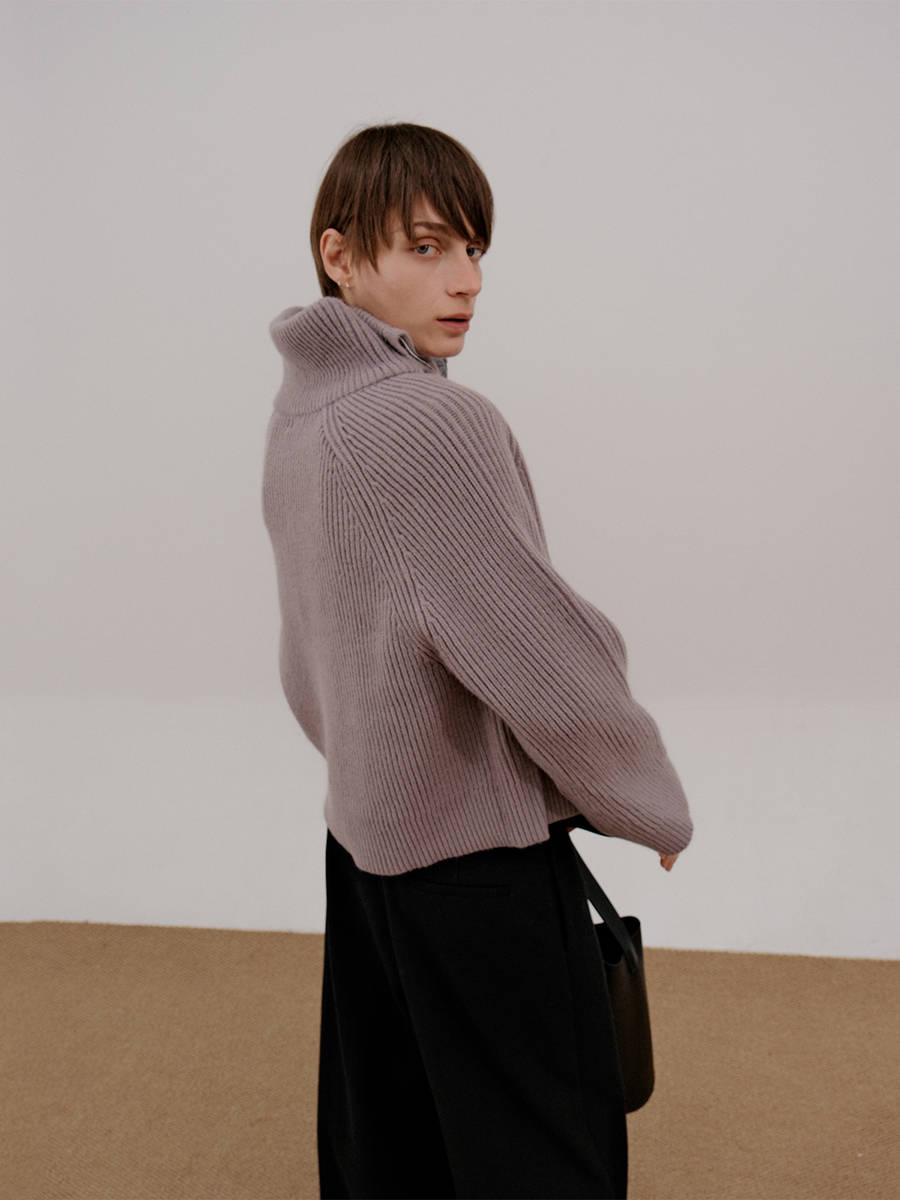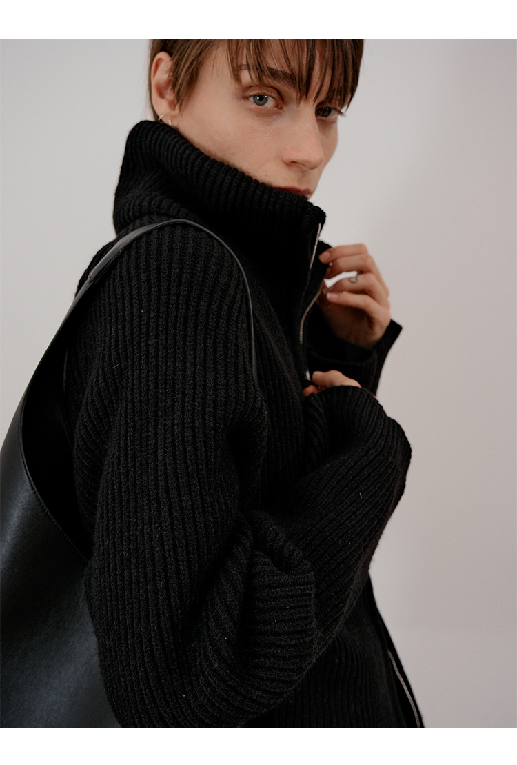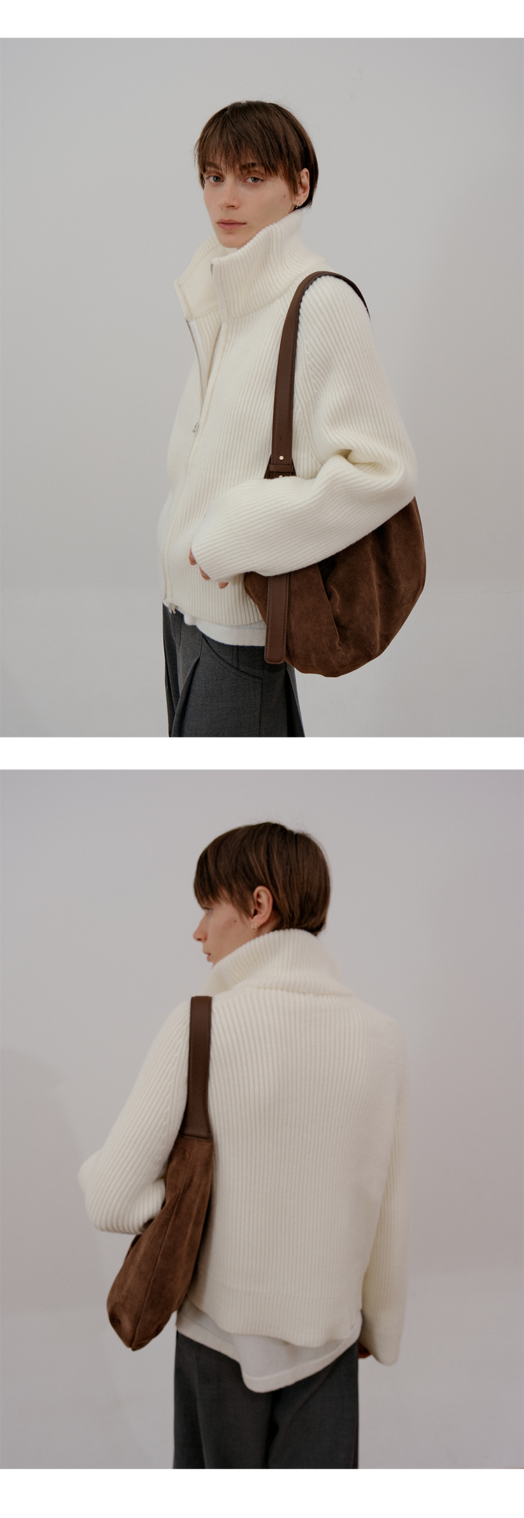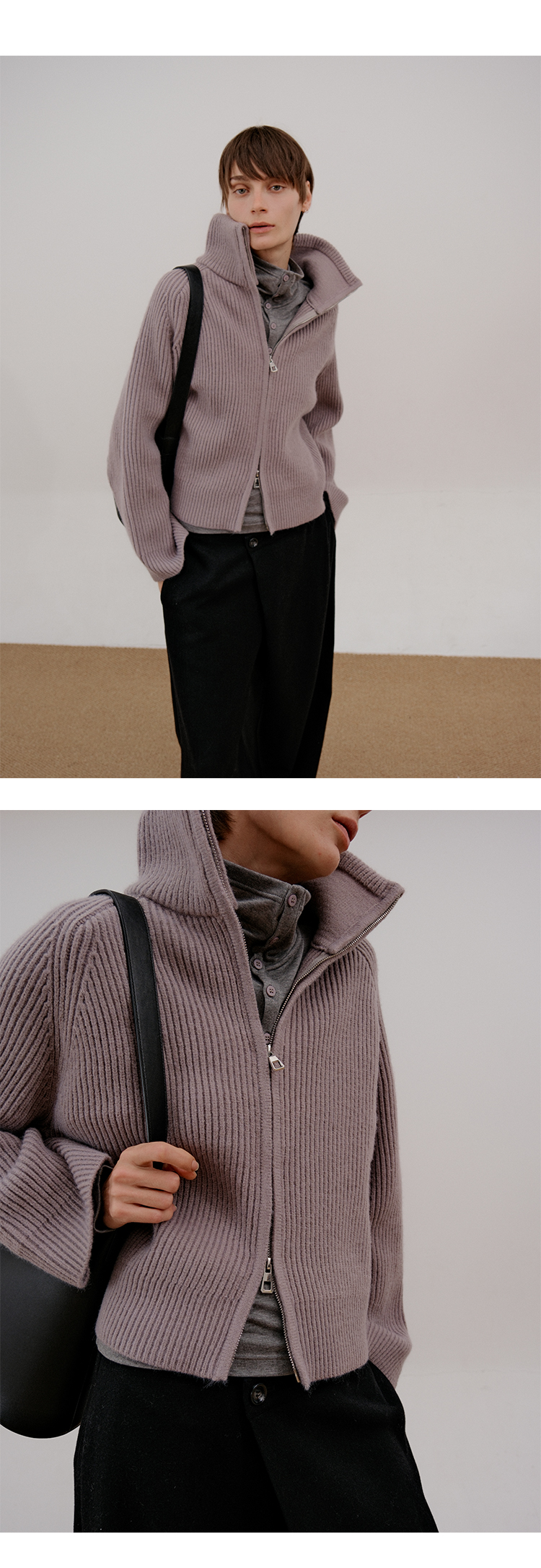 Thick Zipper Stand Neck Knit Cardigan WN21673