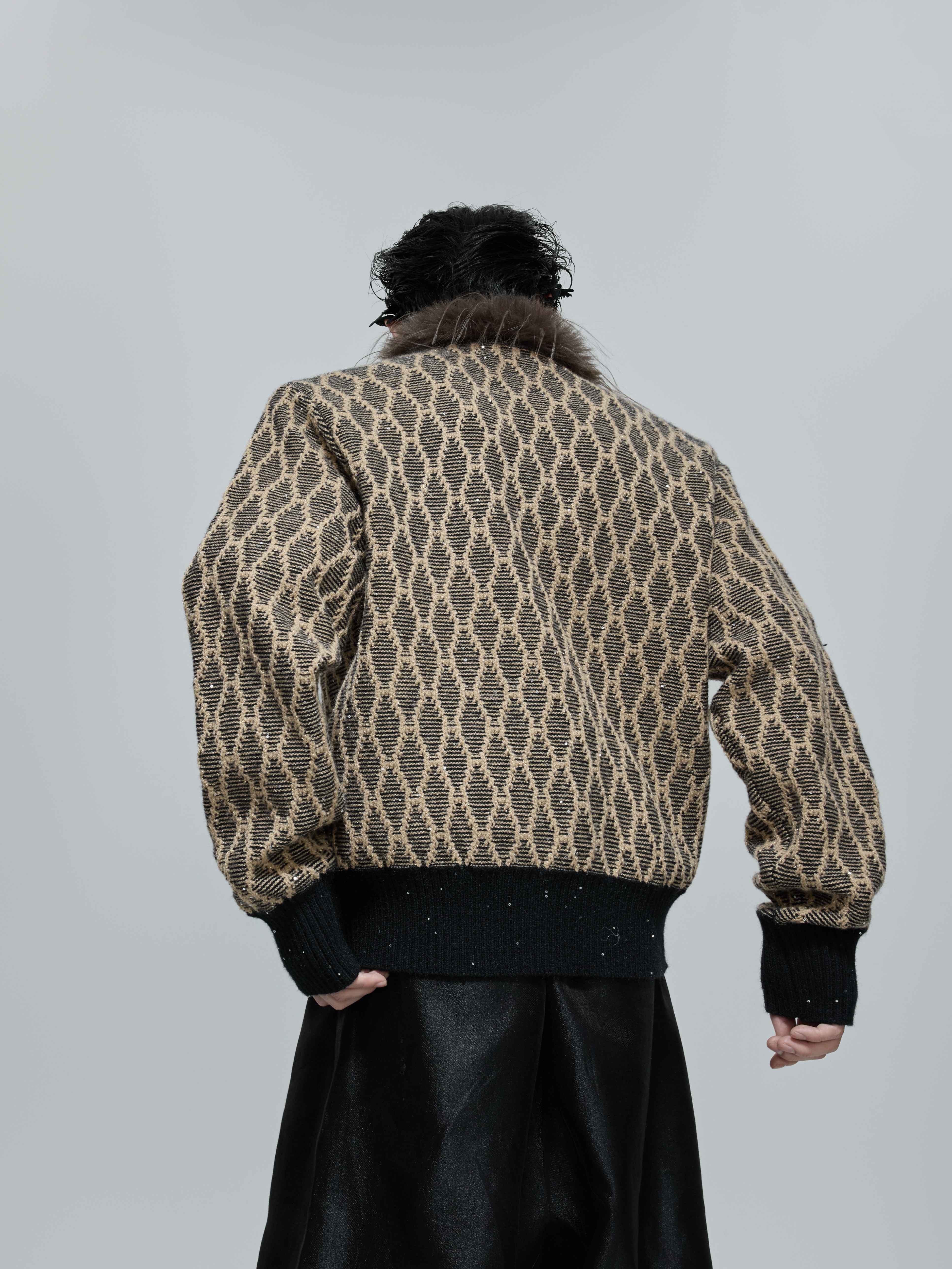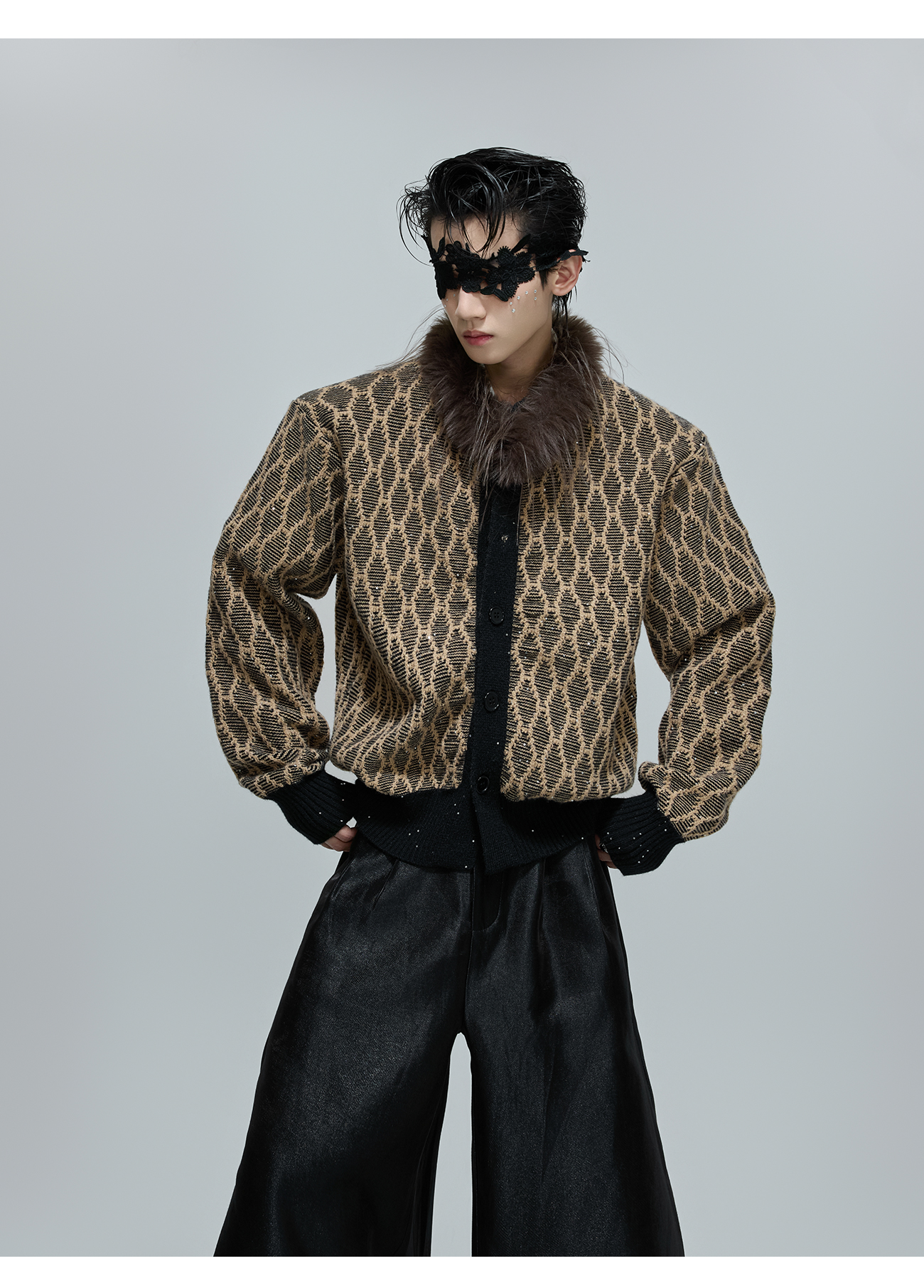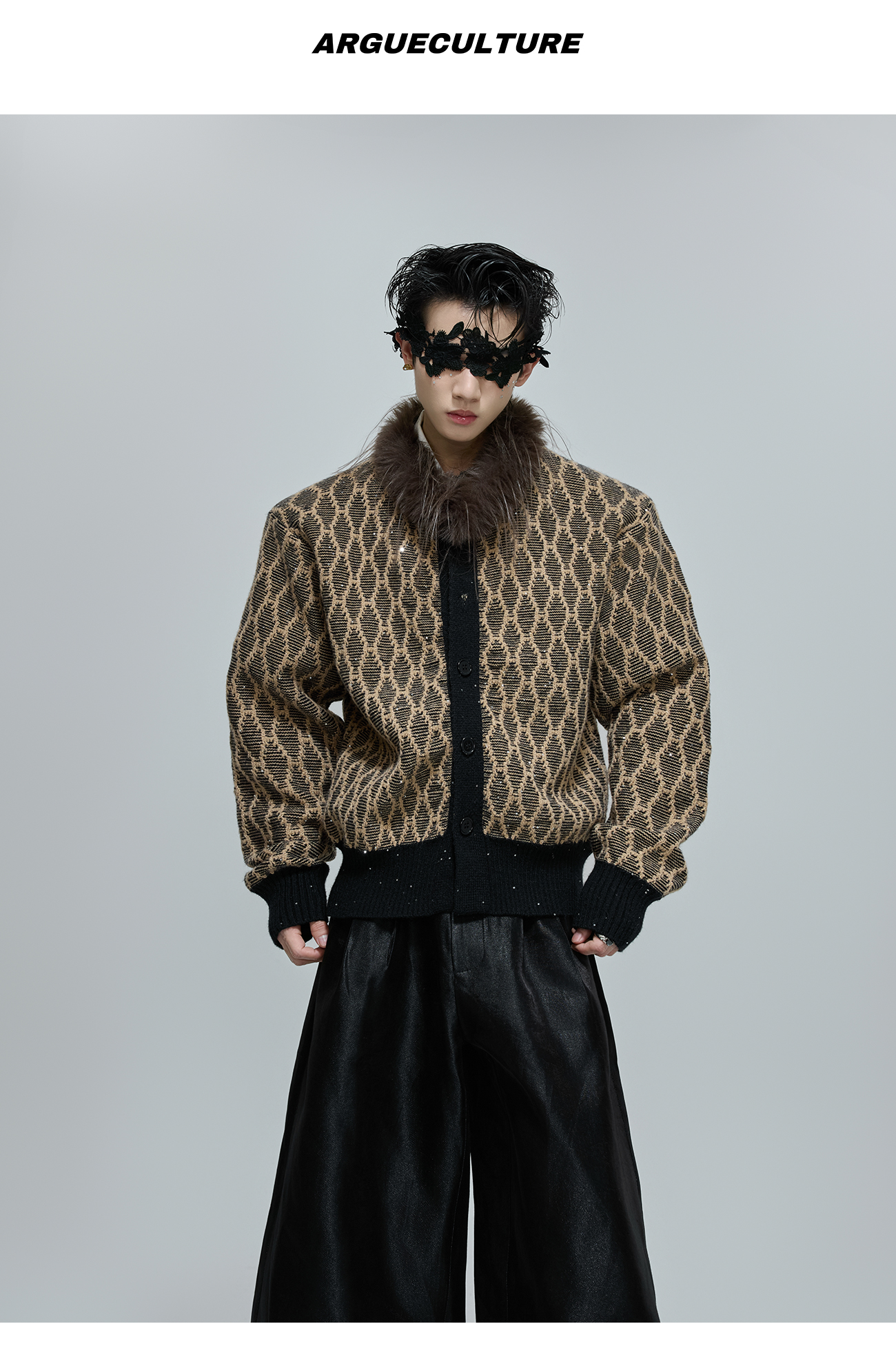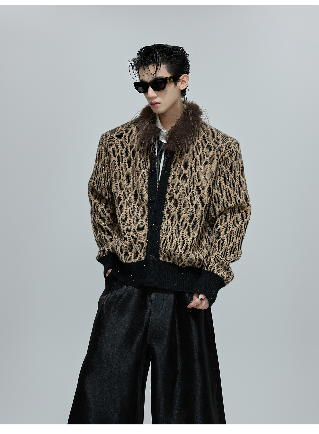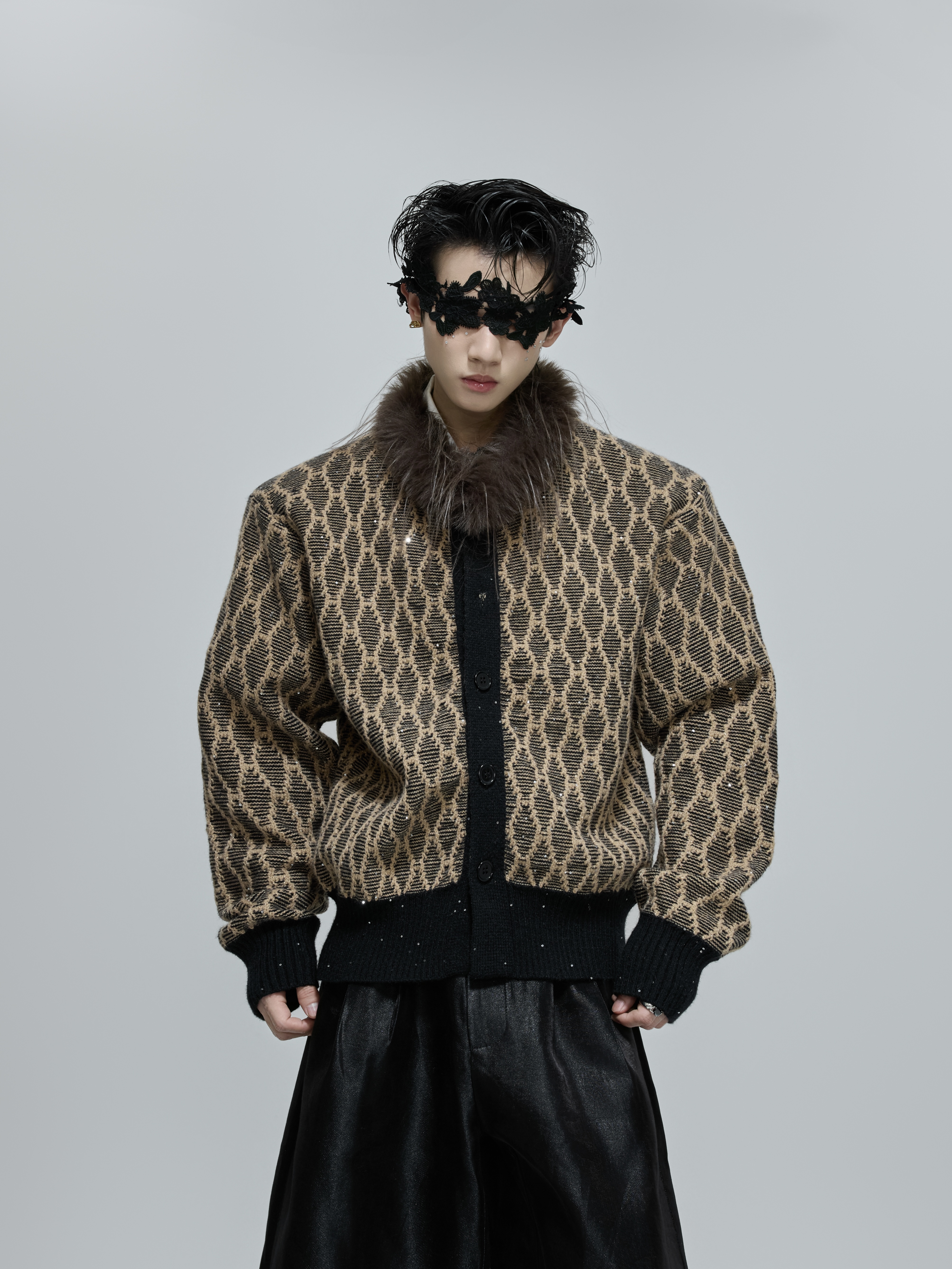 Fur Collar Sequin Textured Knit Cardigan WN21693
