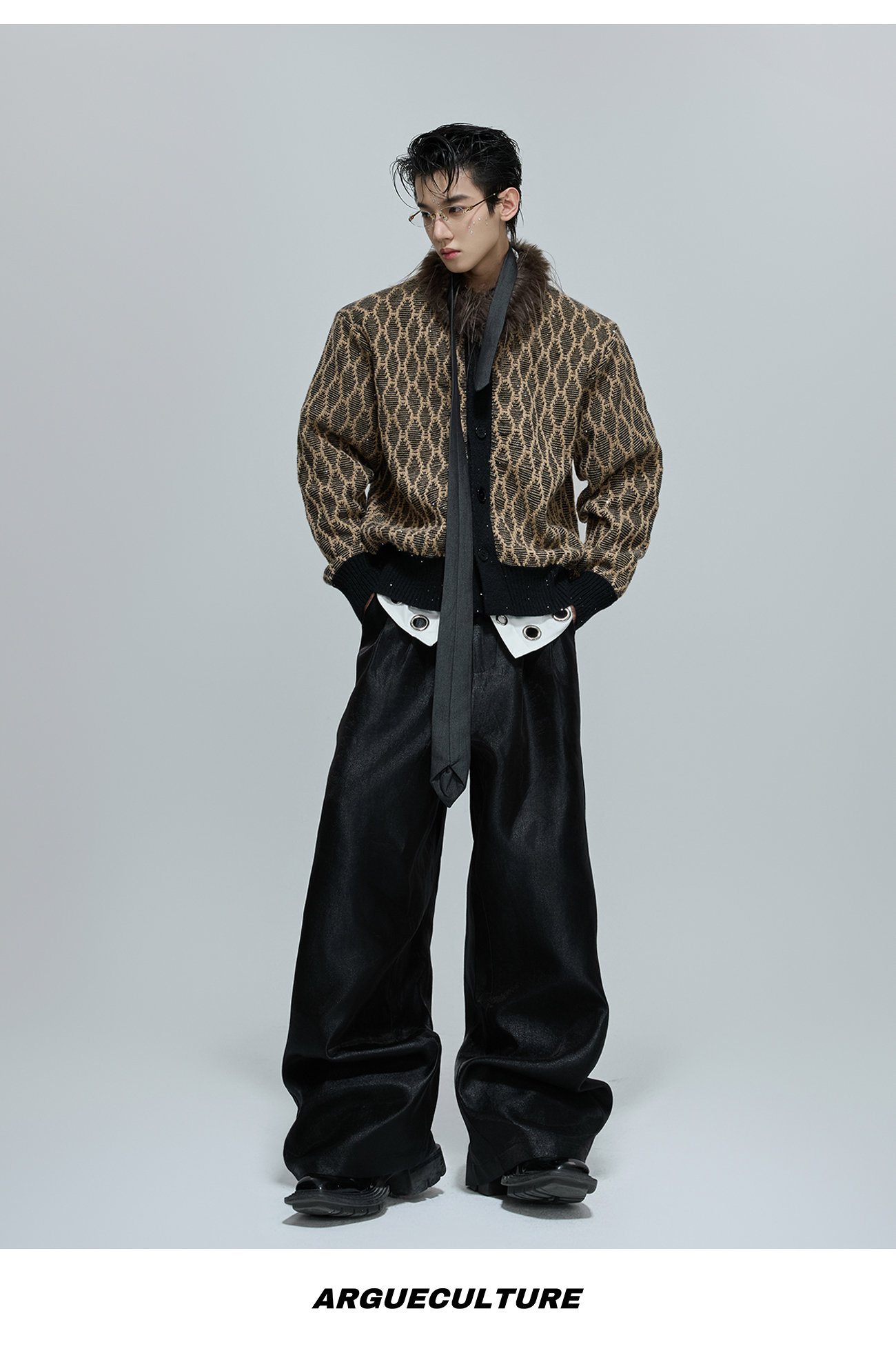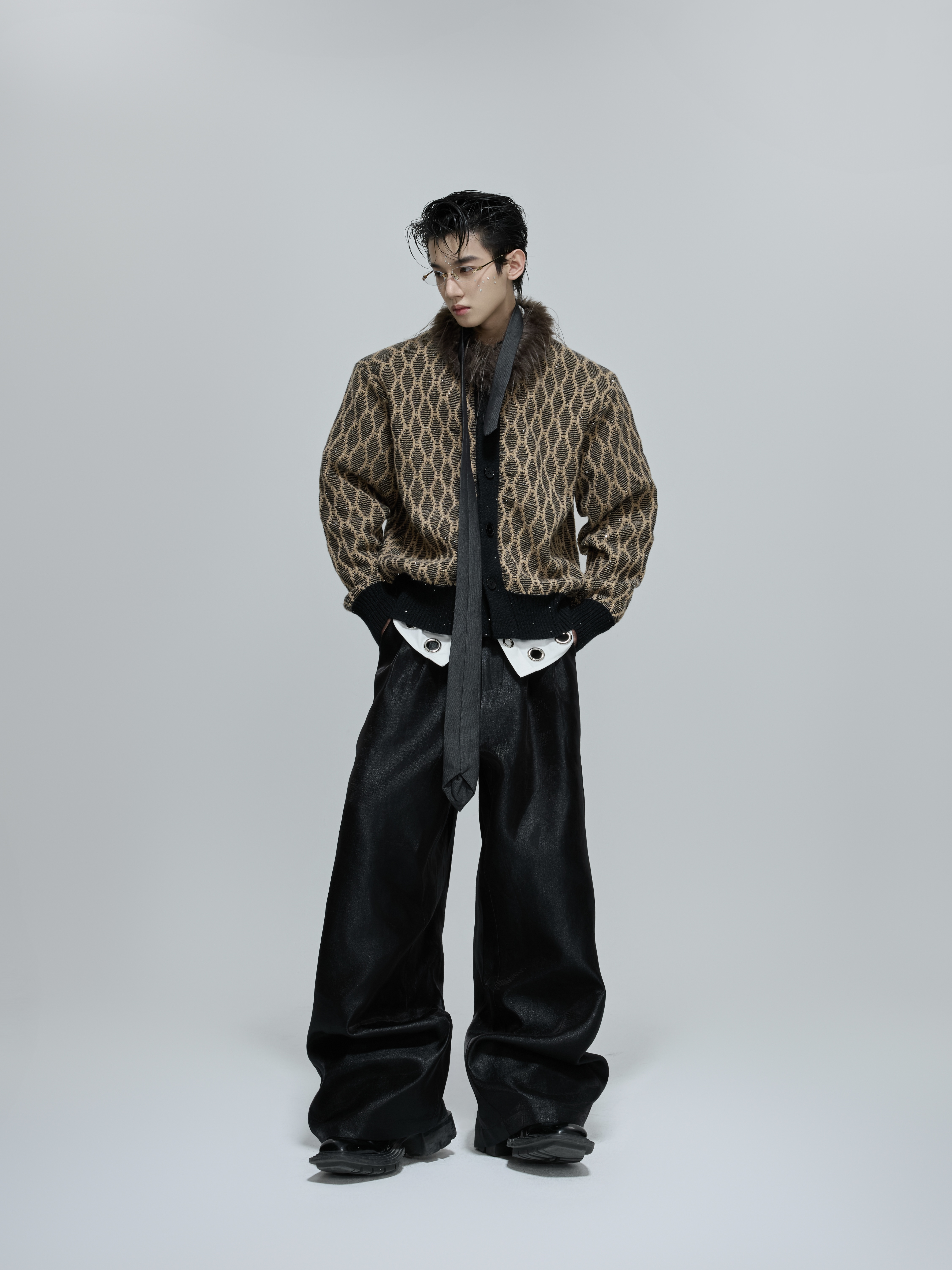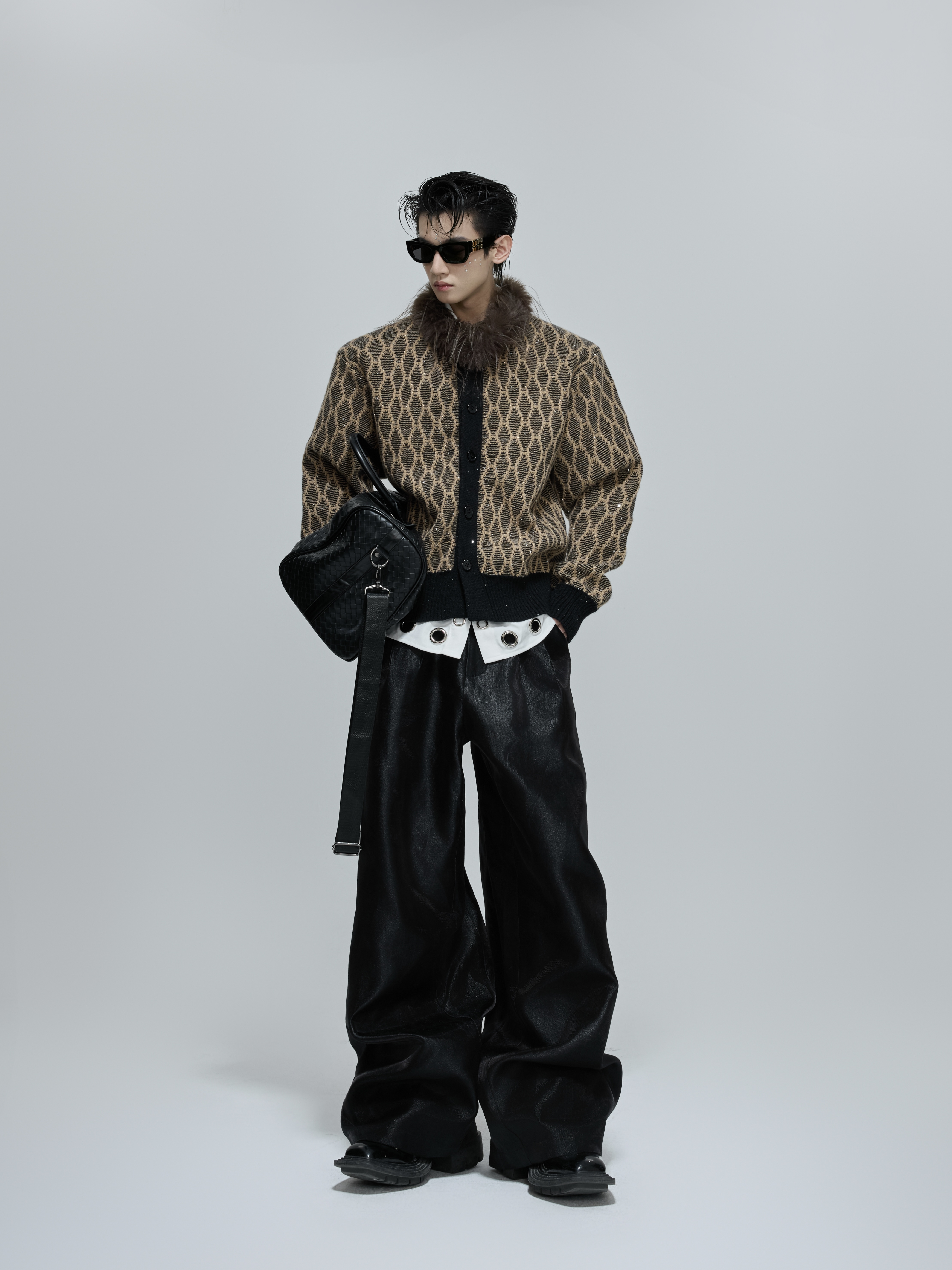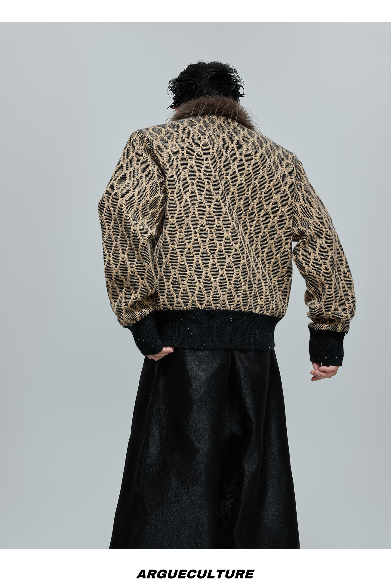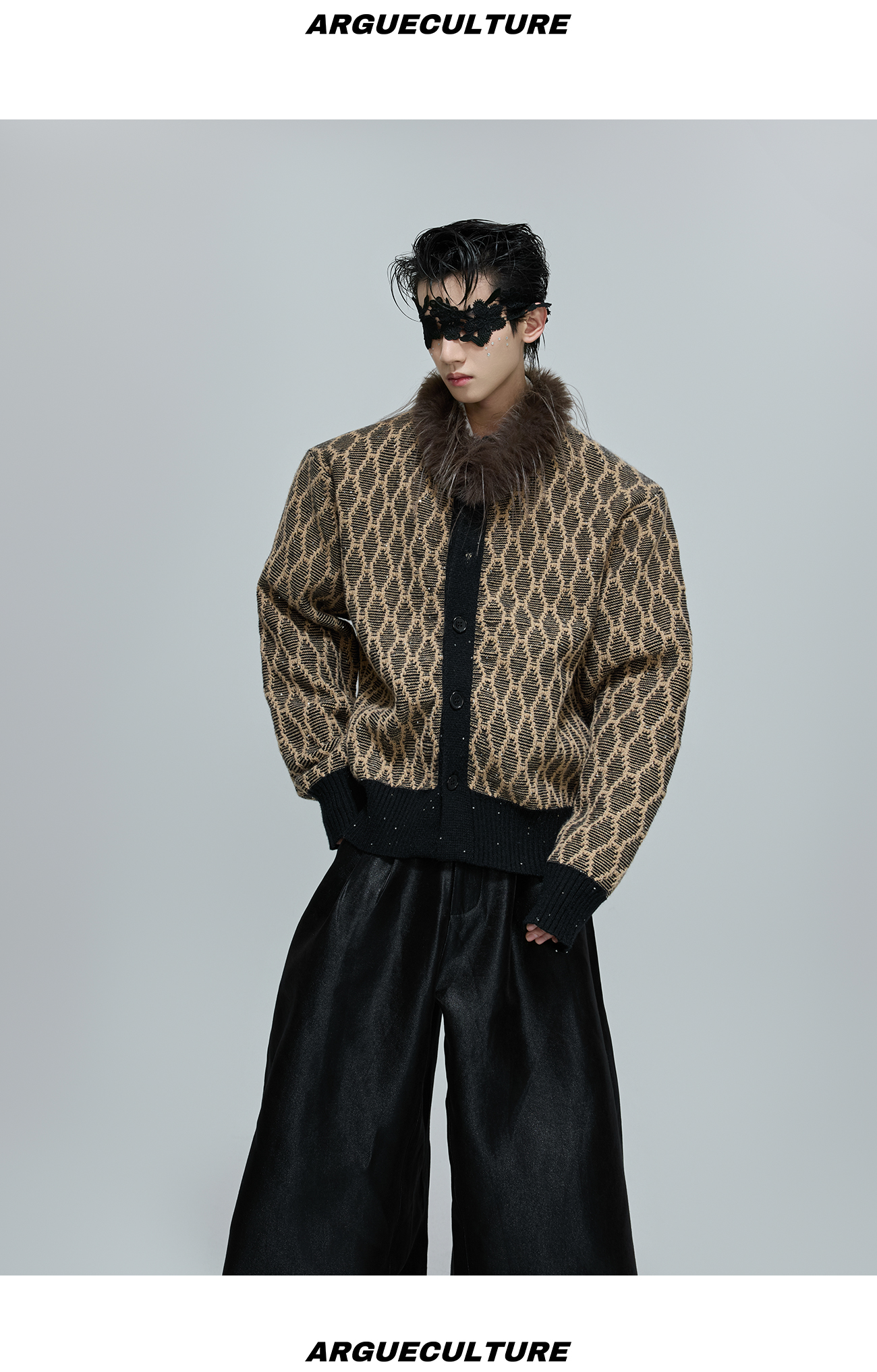 Fur Collar Sequin Textured Knit Cardigan WN21693