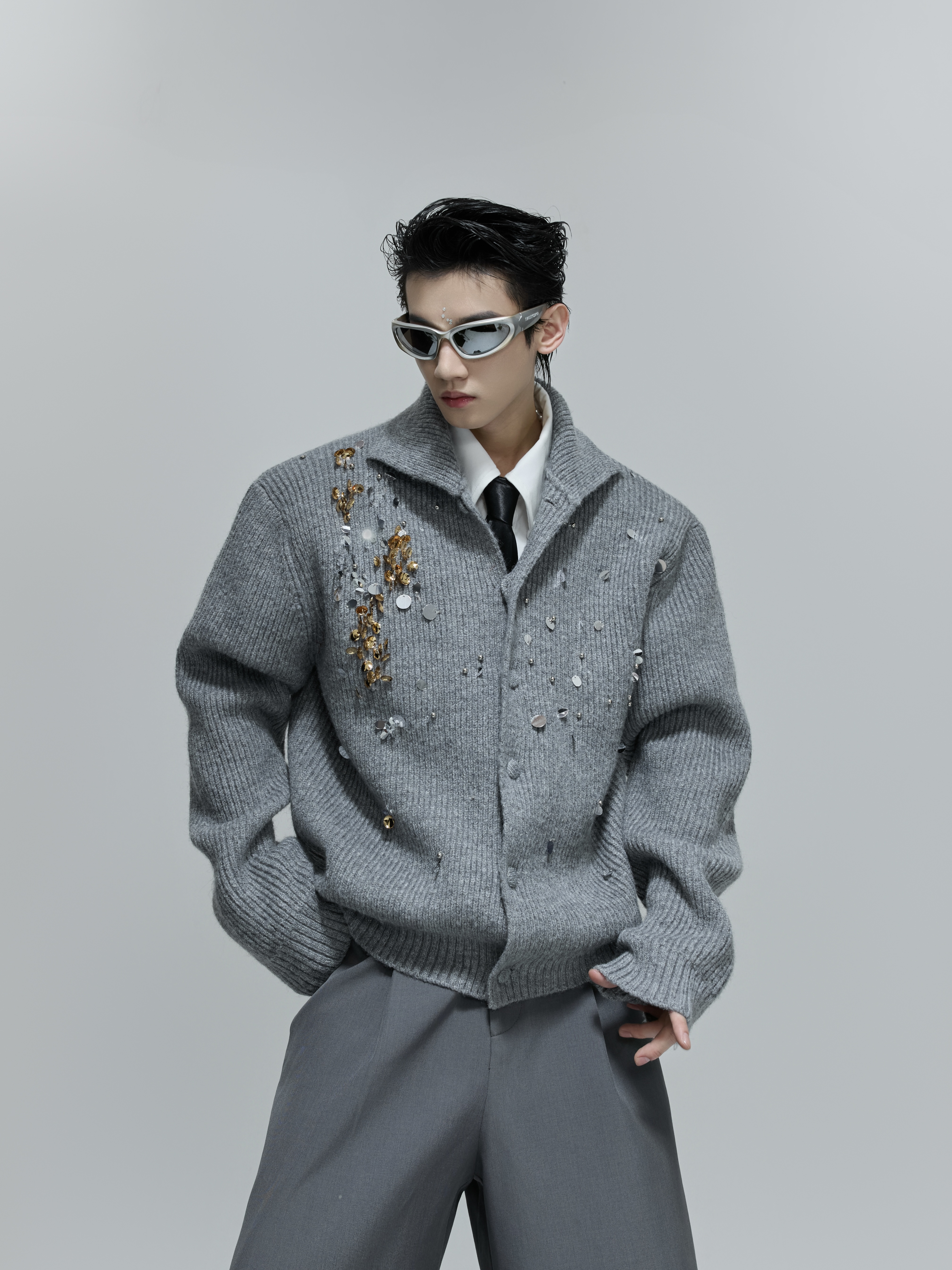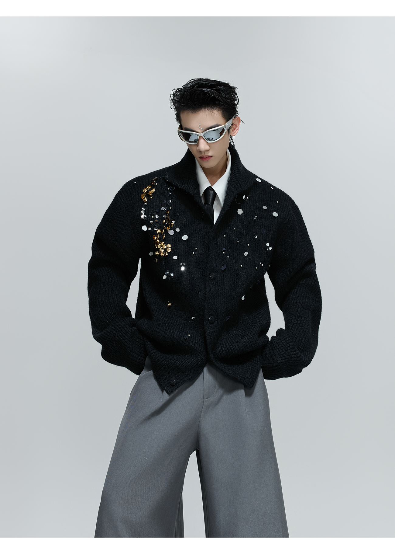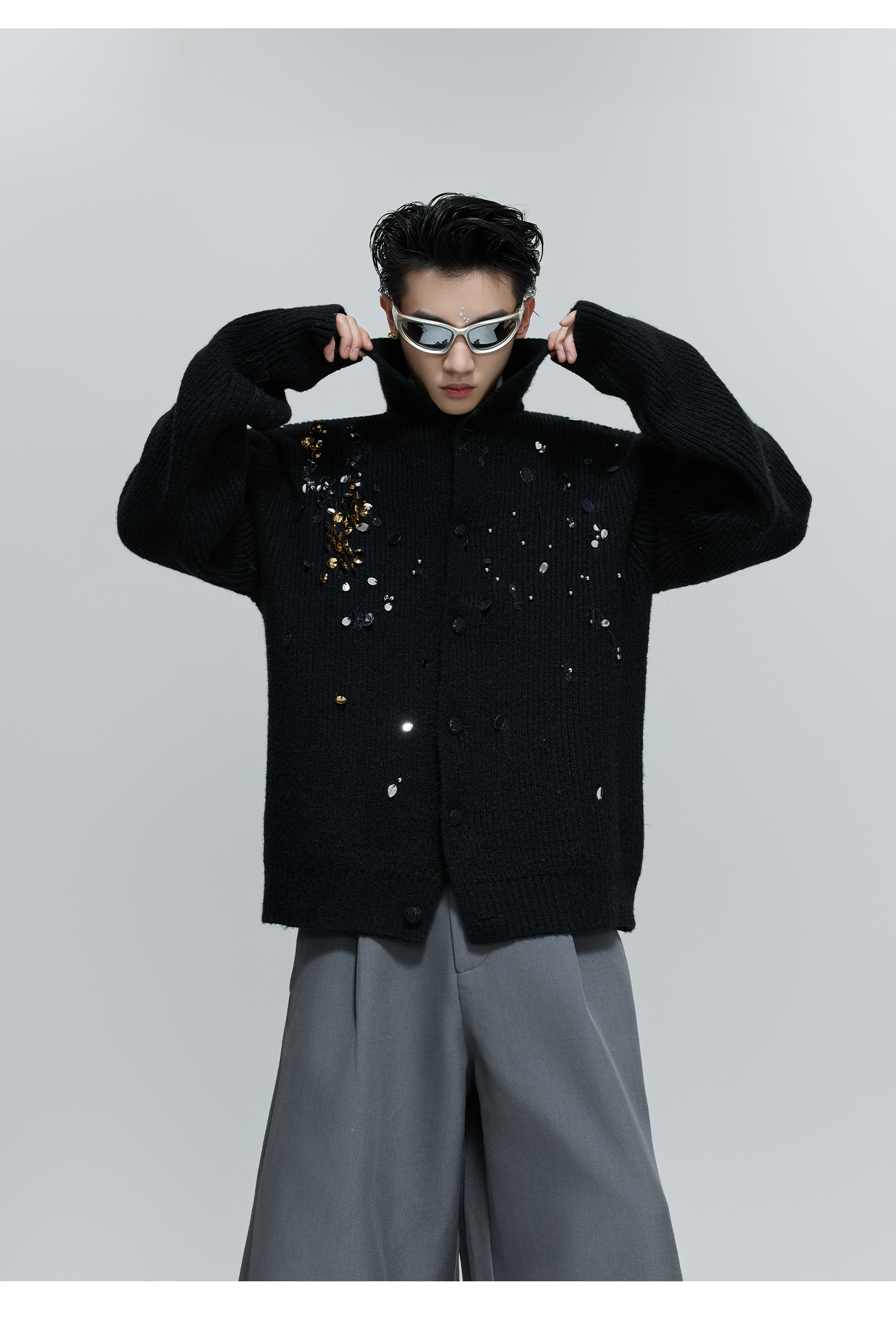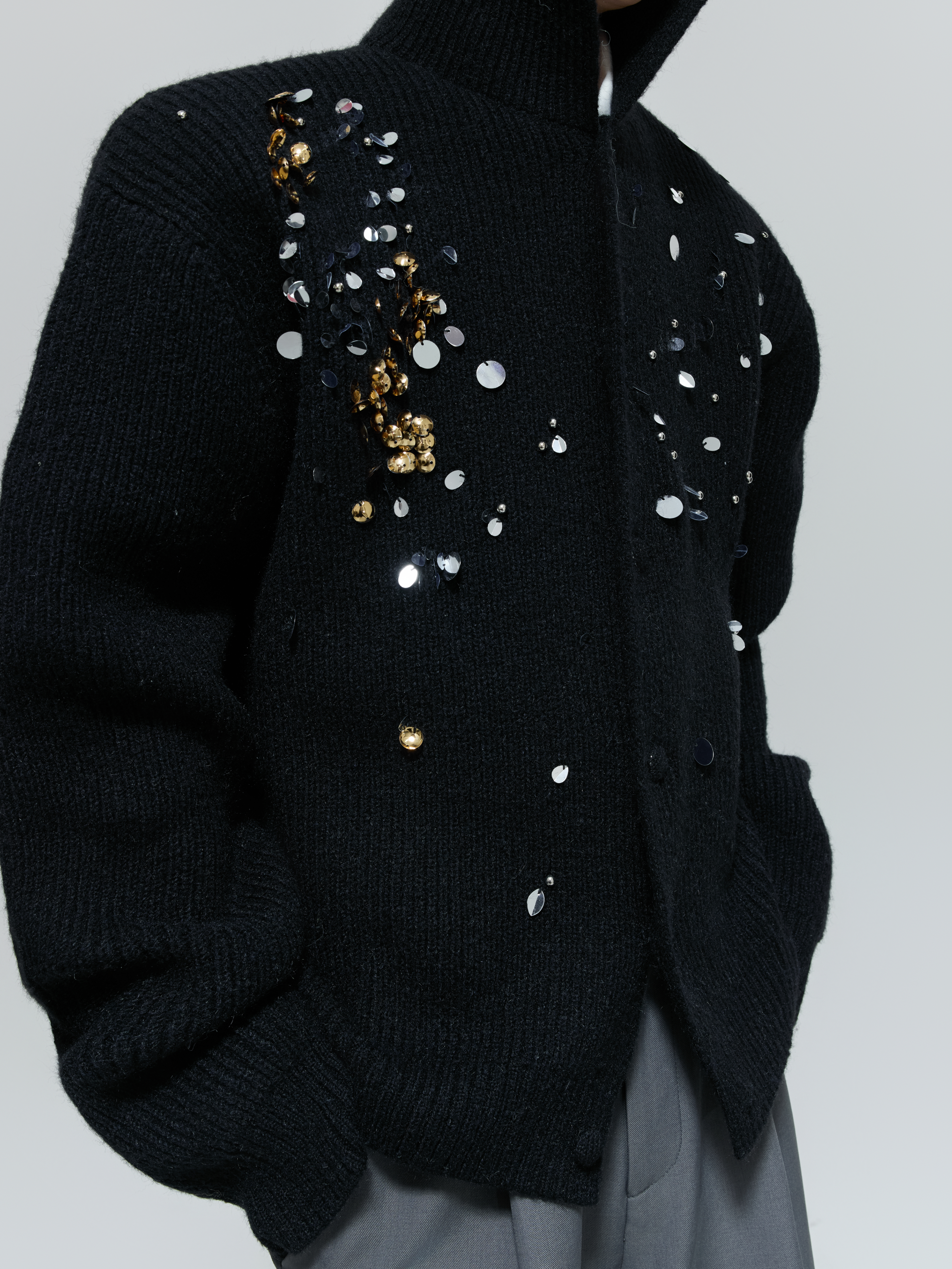 Sequin High-Neck Ribbed Knit Cardigan WN21700