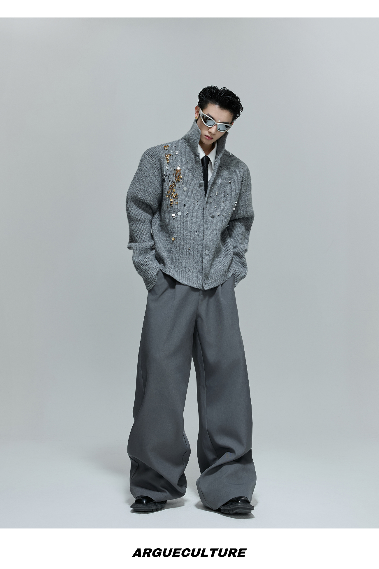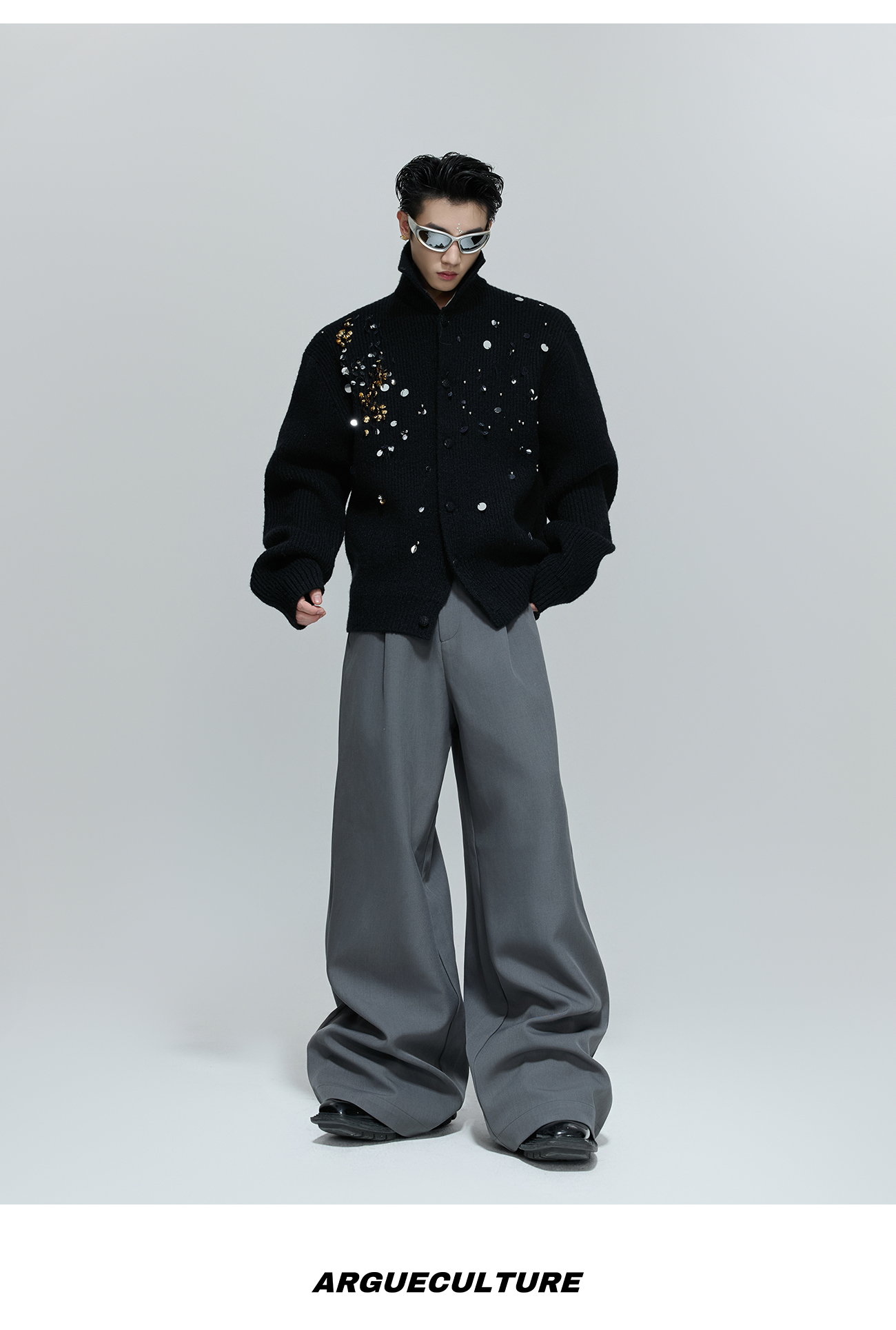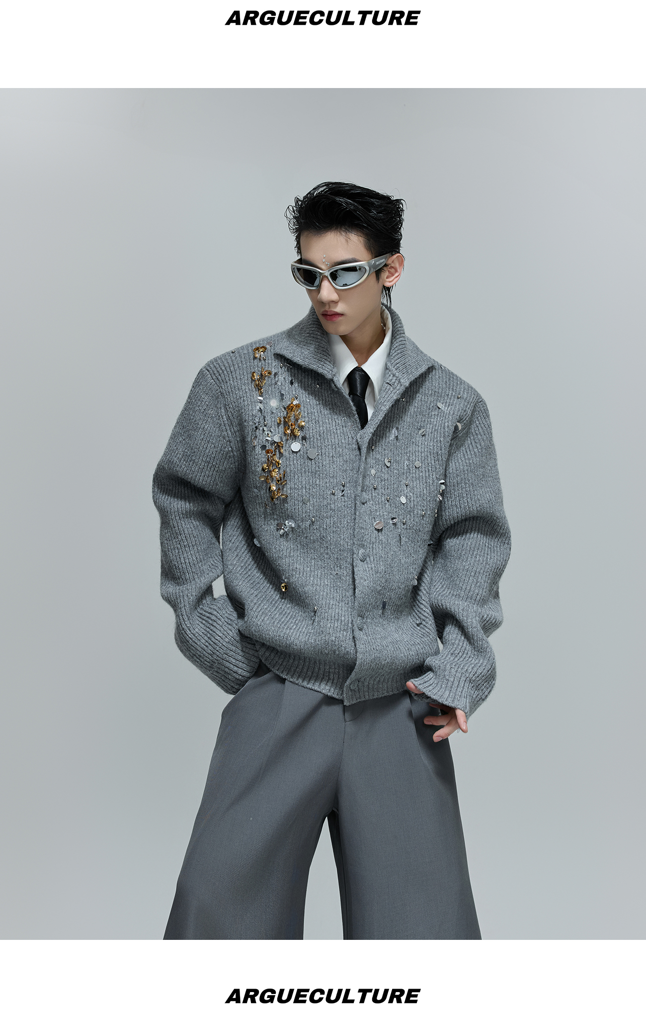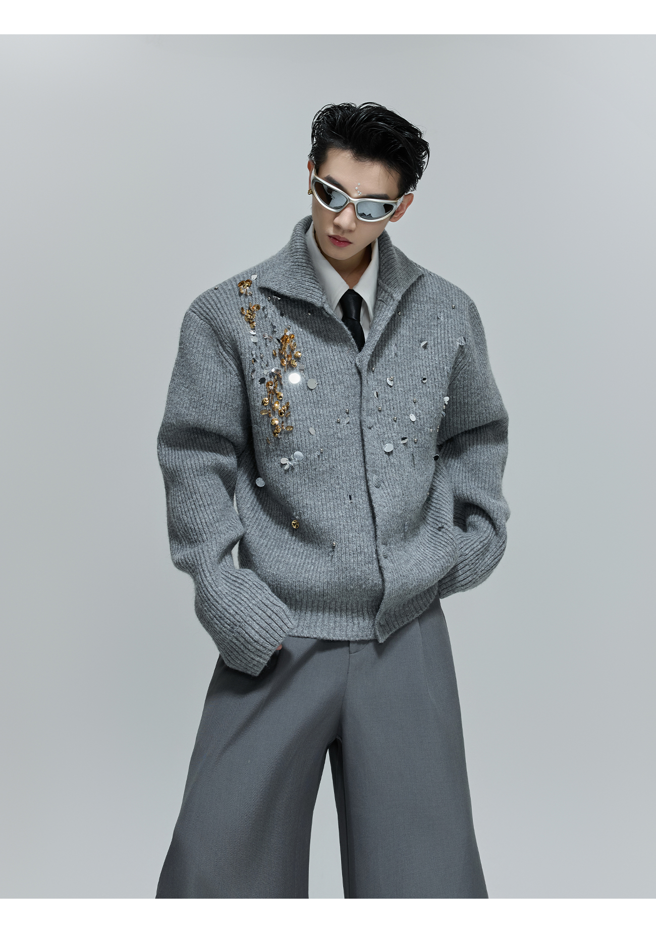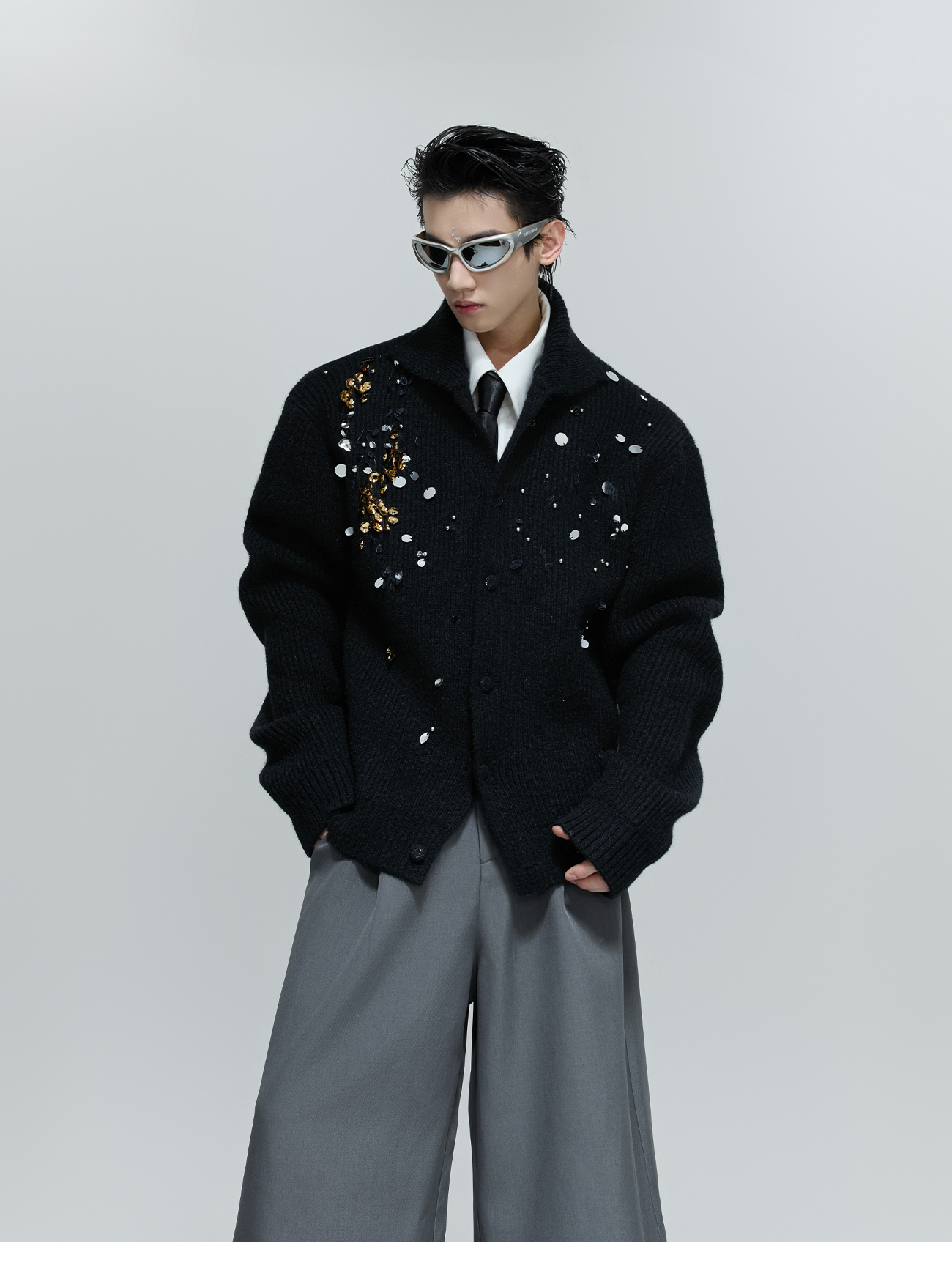 Sequin High-Neck Ribbed Knit Cardigan WN21700