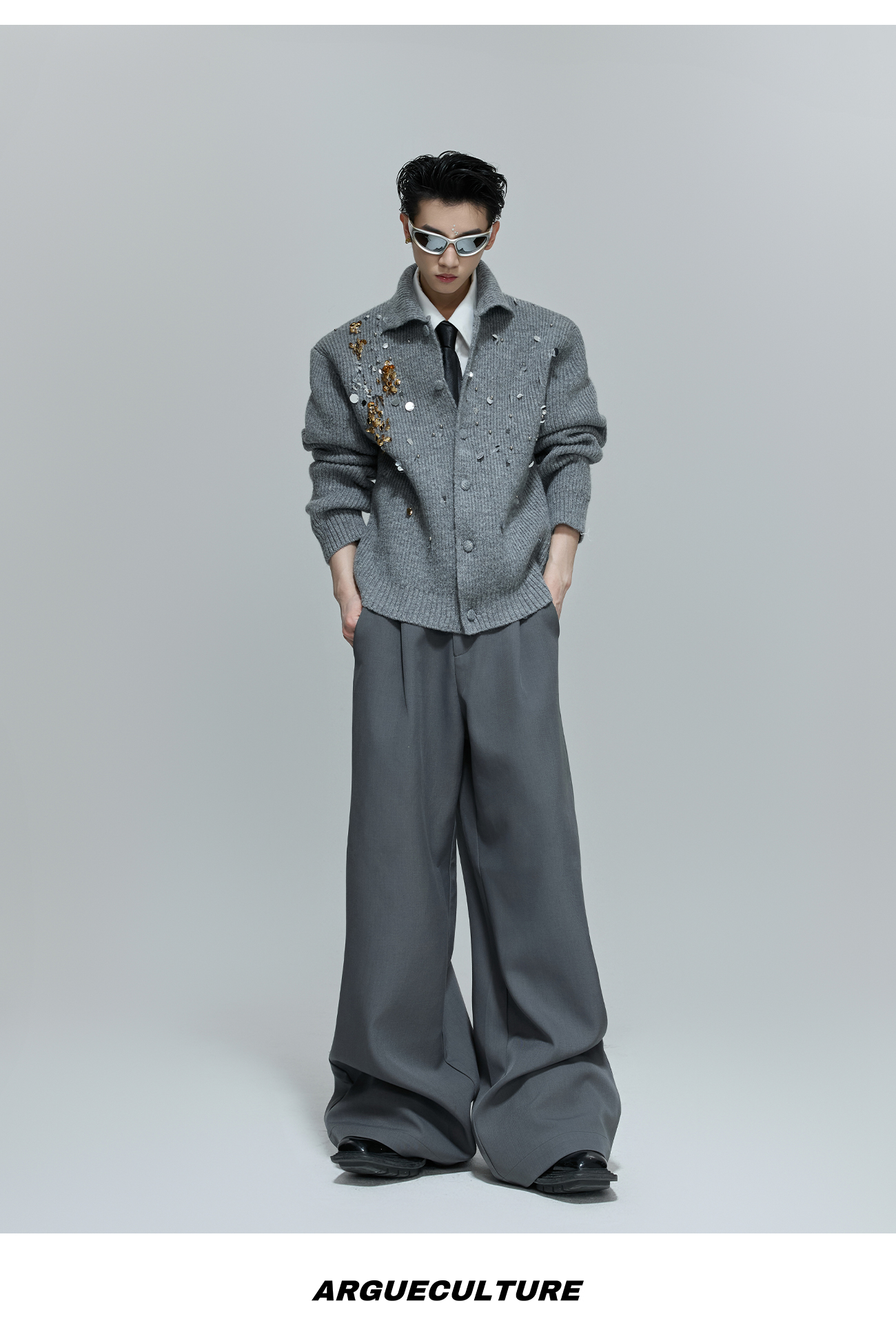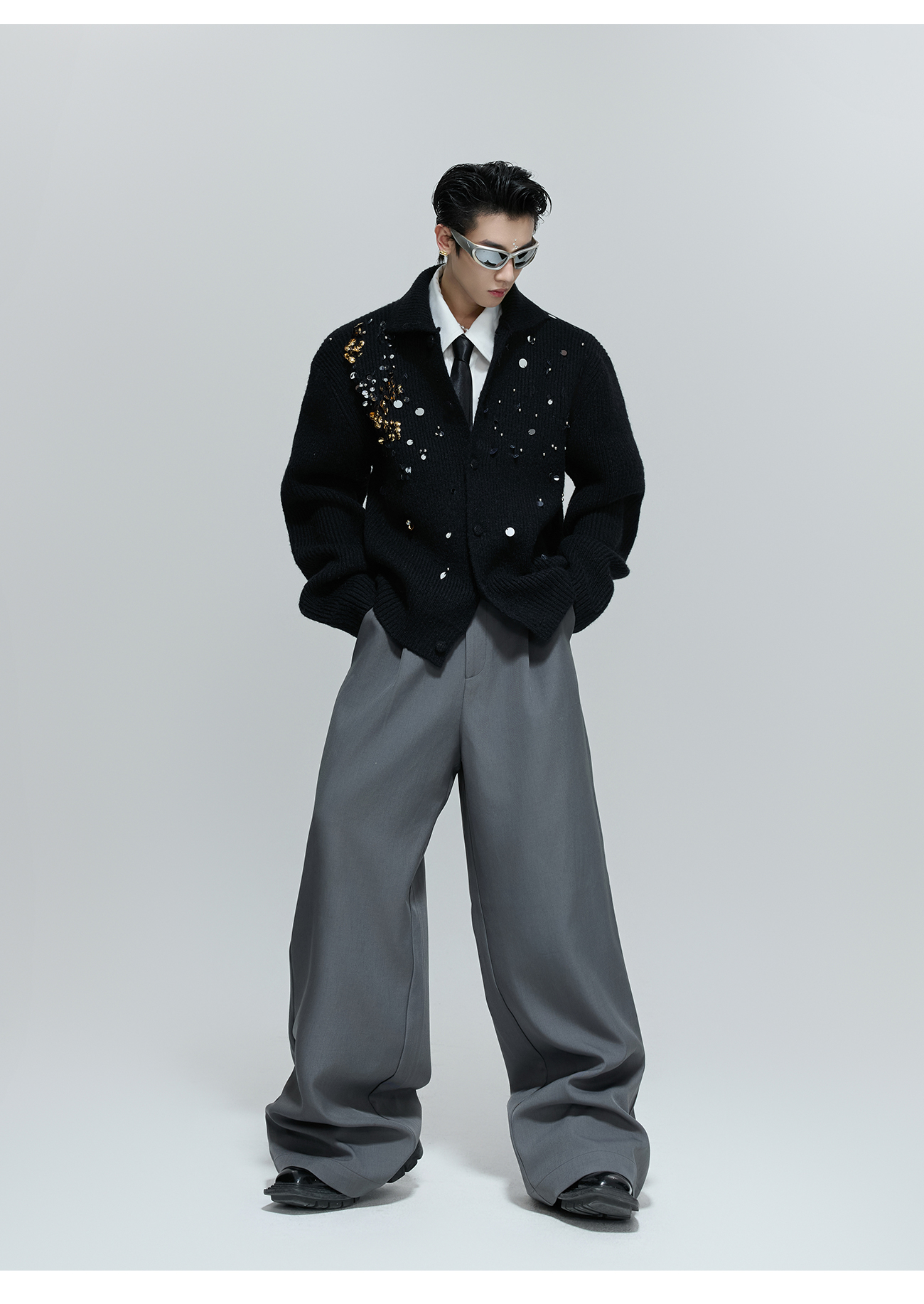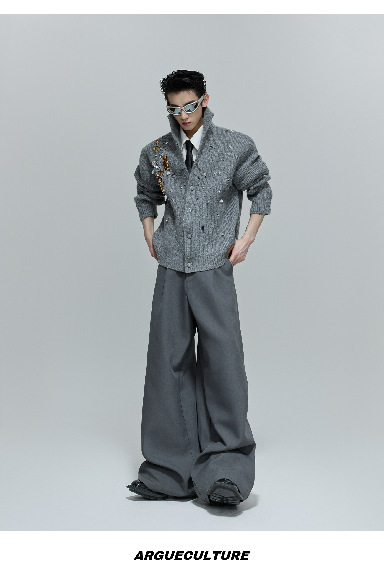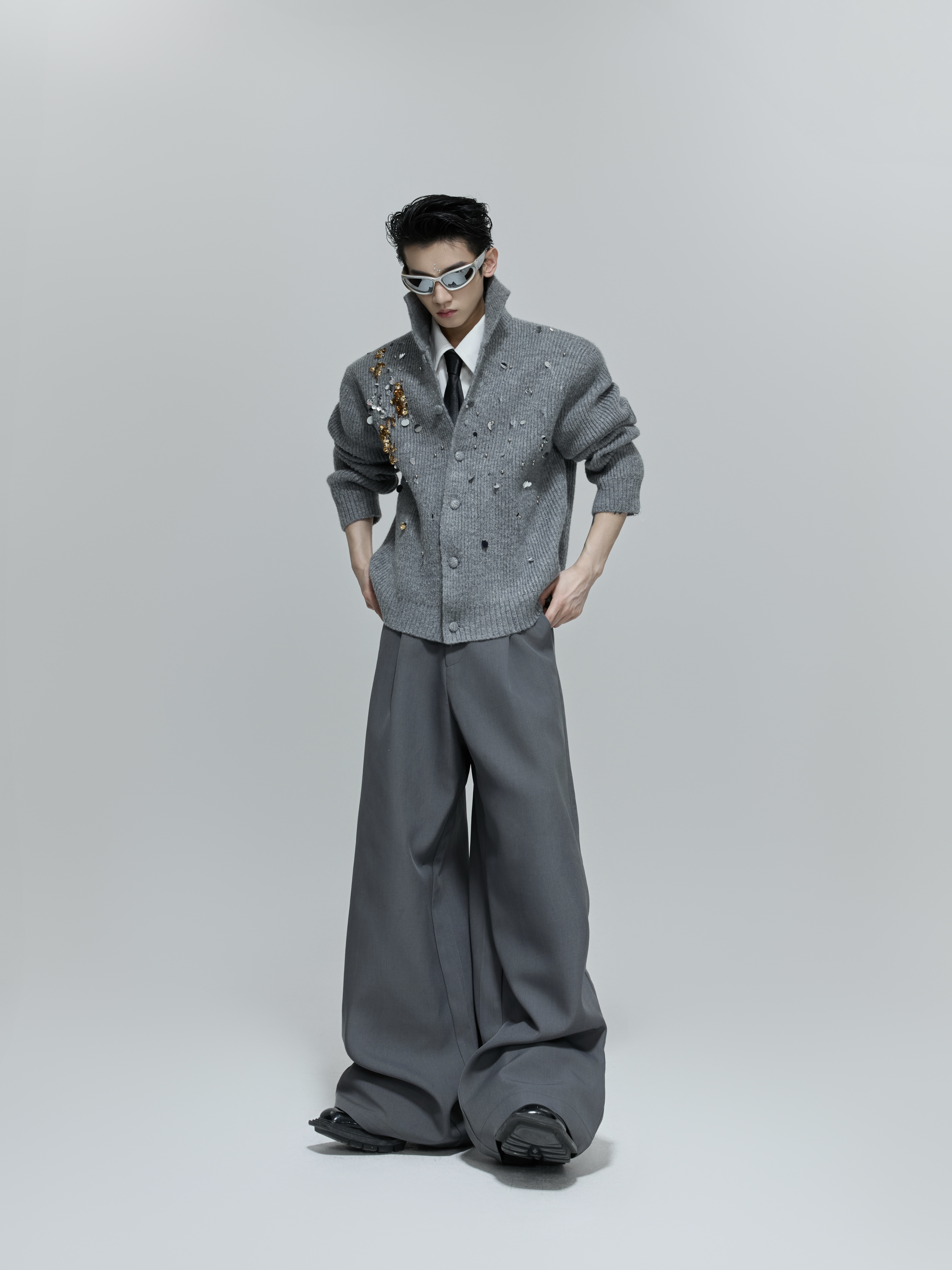 Sequin High-Neck Ribbed Knit Cardigan WN21700