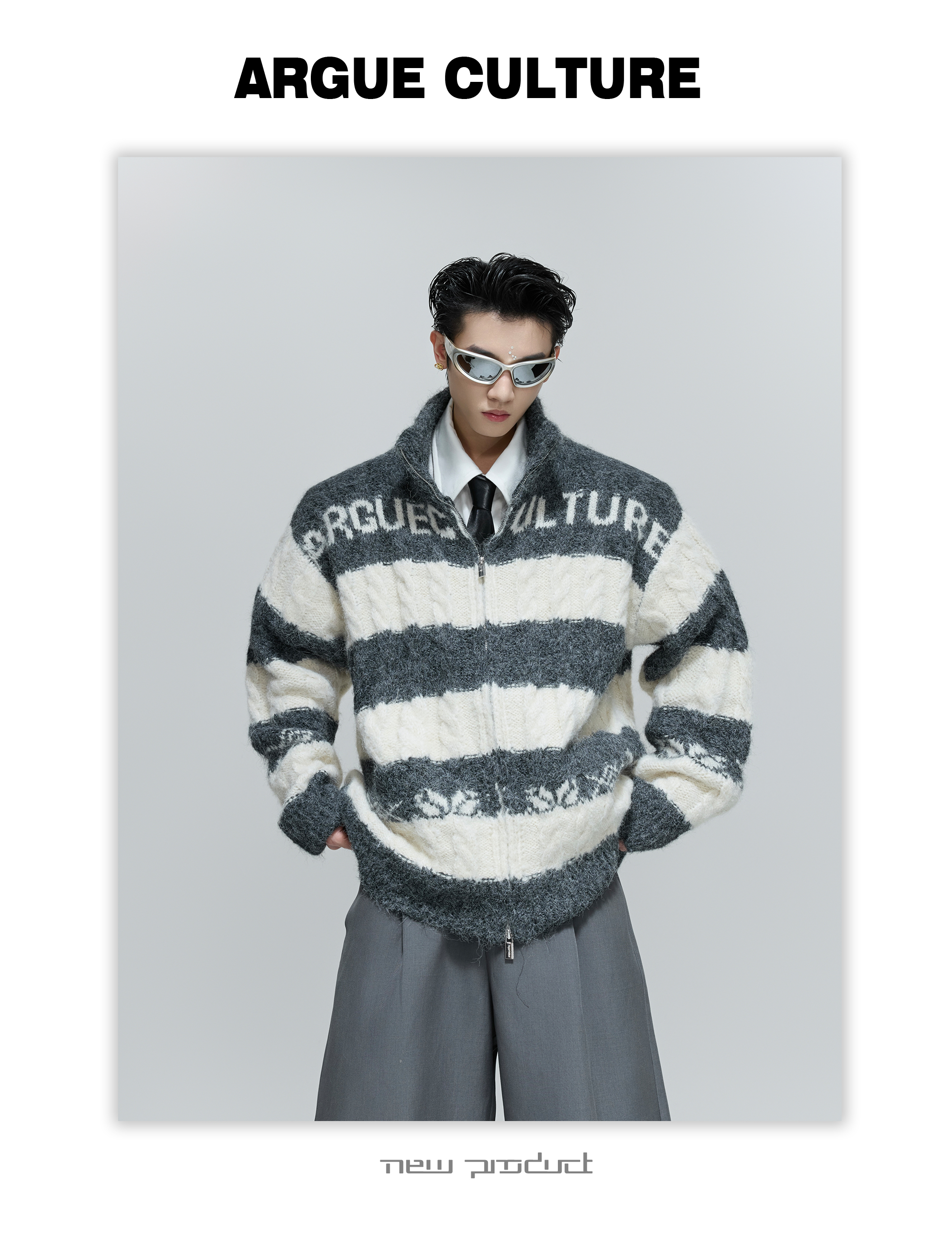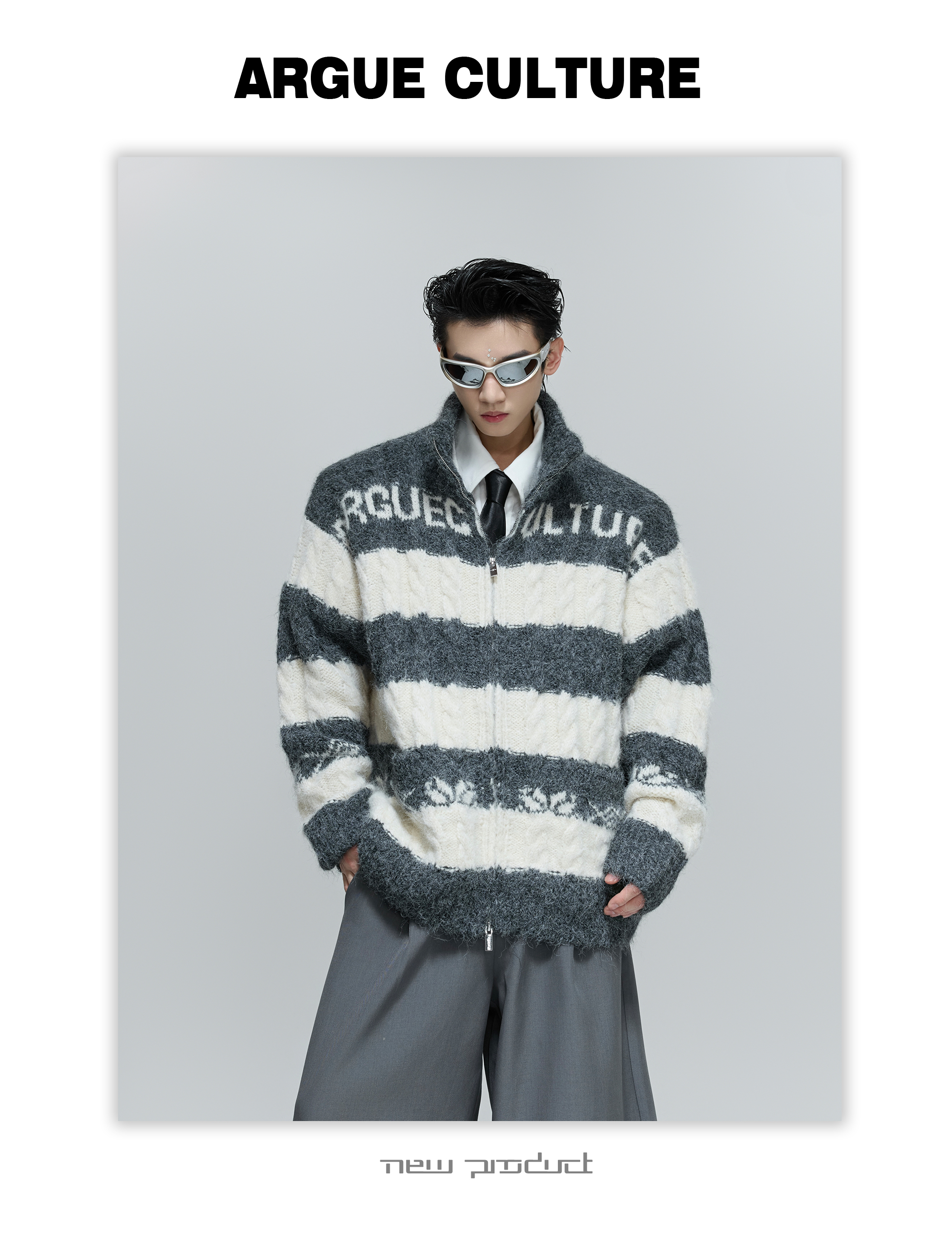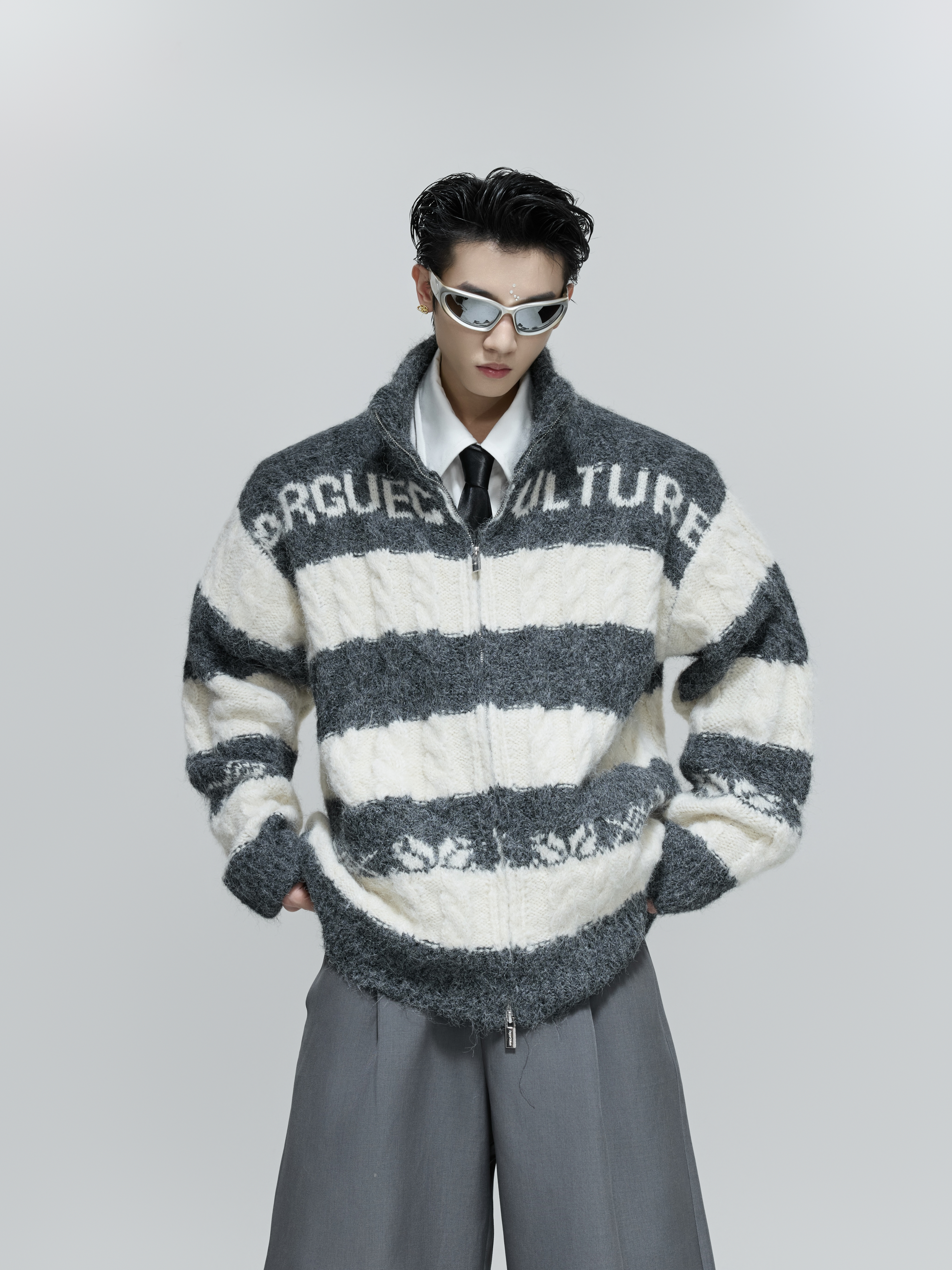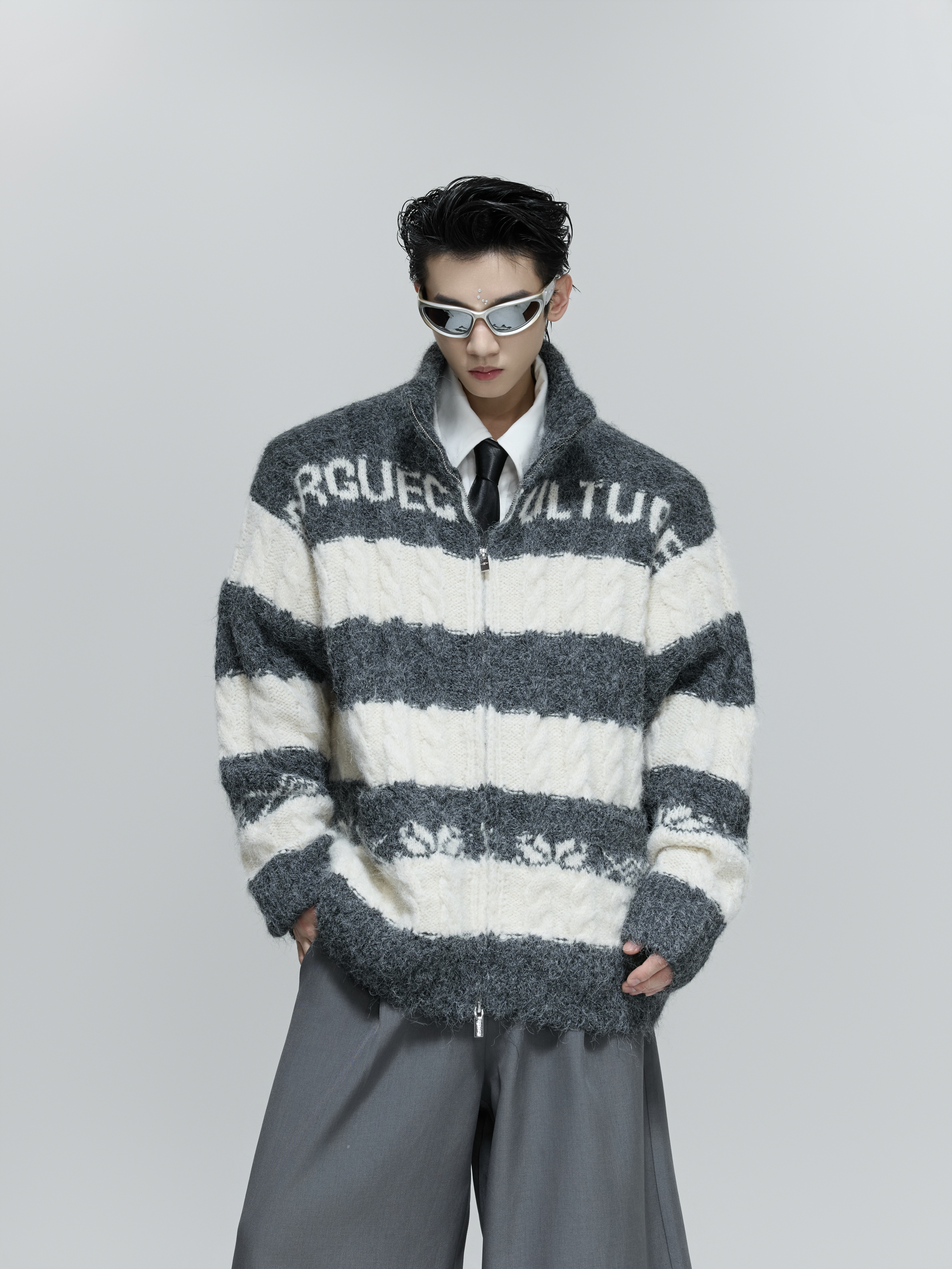 Colorblock Chunky Knit Zipper Cardigan WN21715