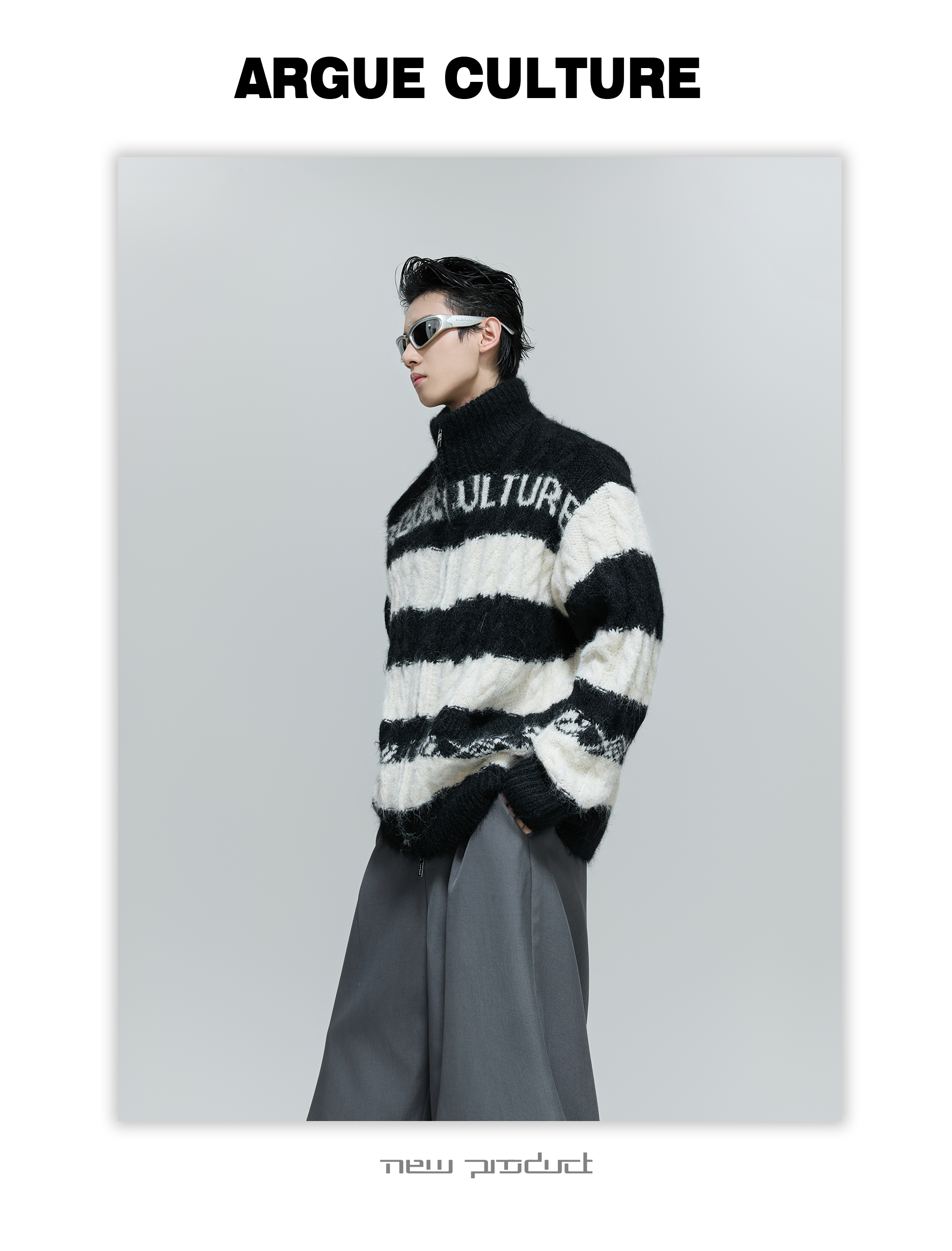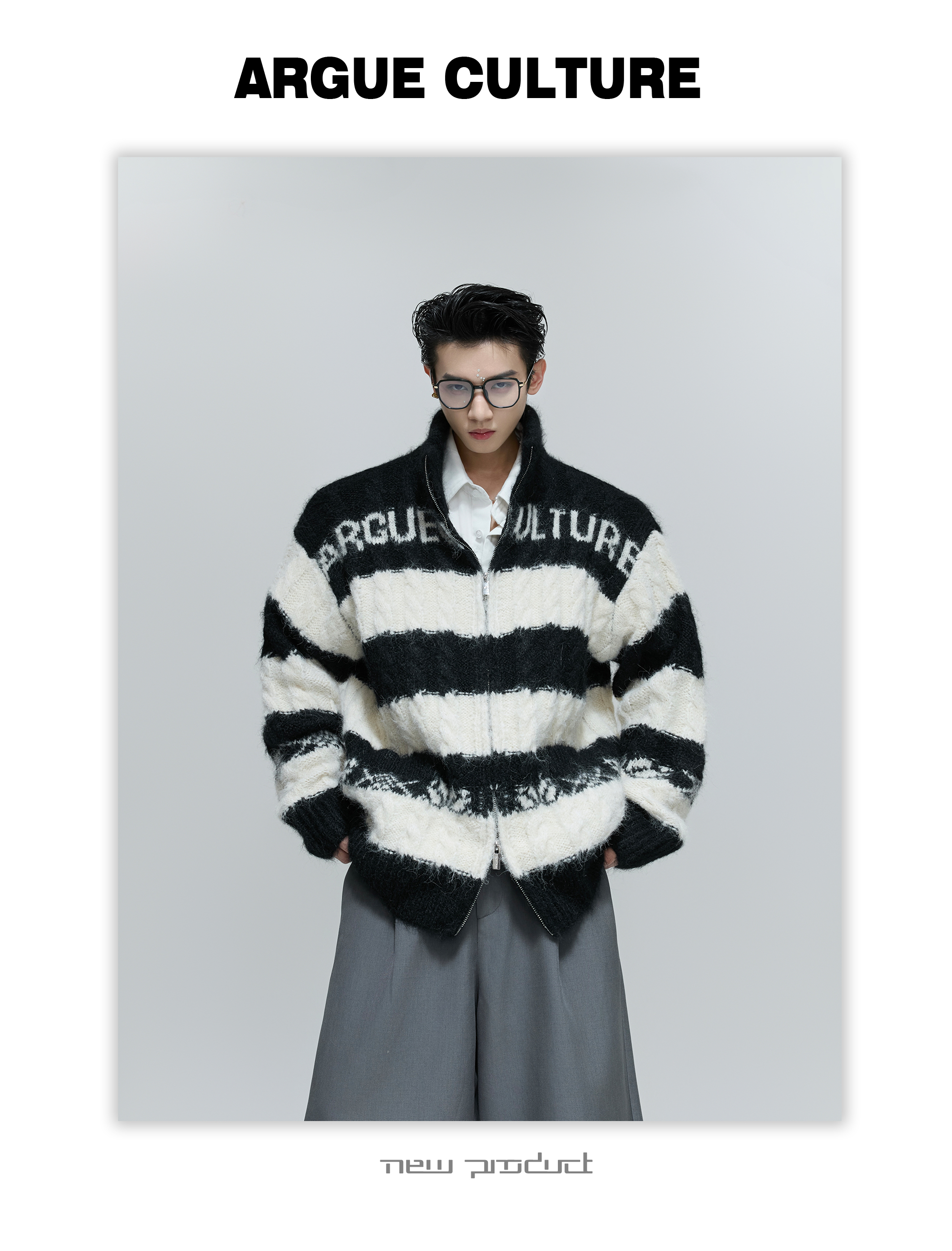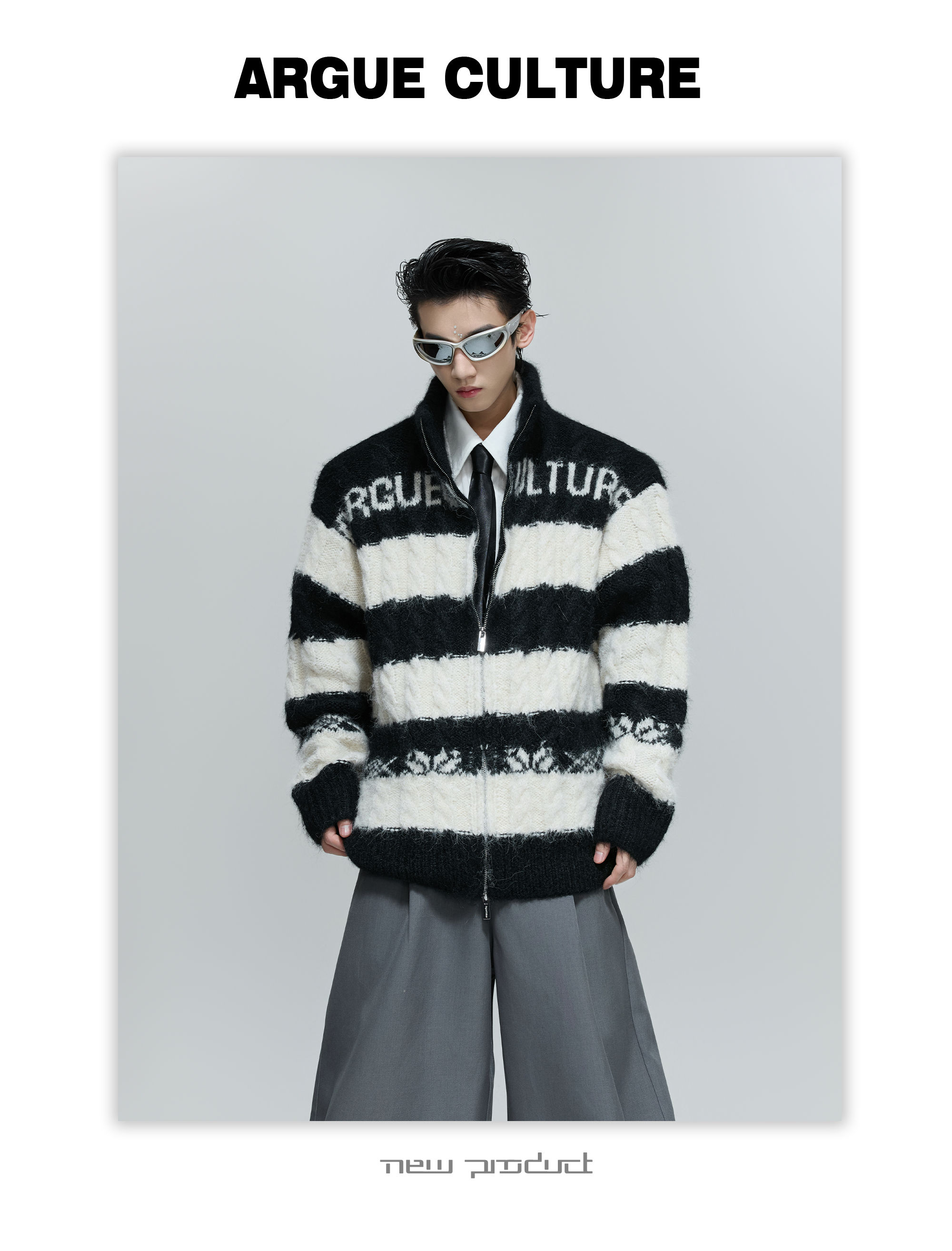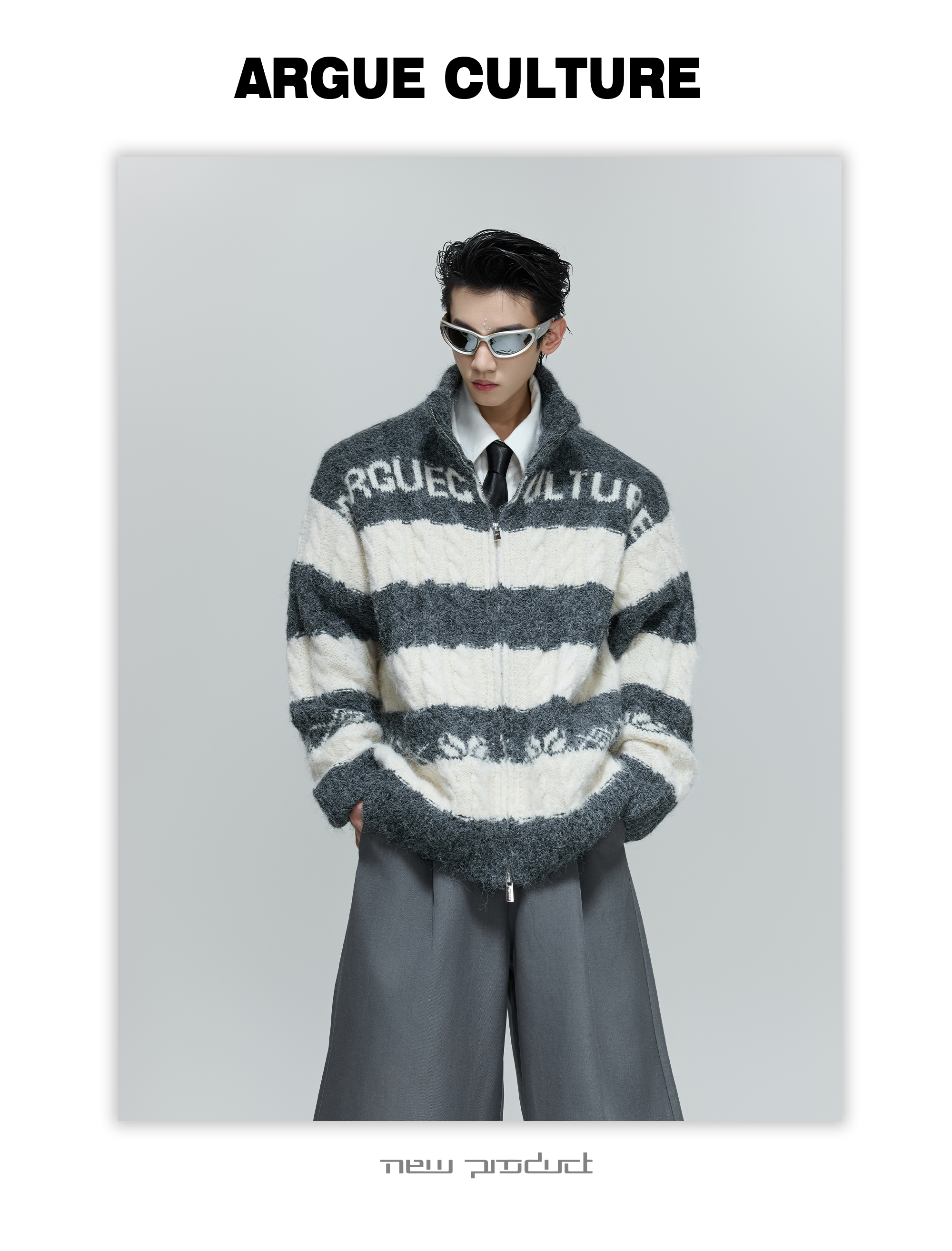 Colorblock Chunky Knit Zipper Cardigan WN21715