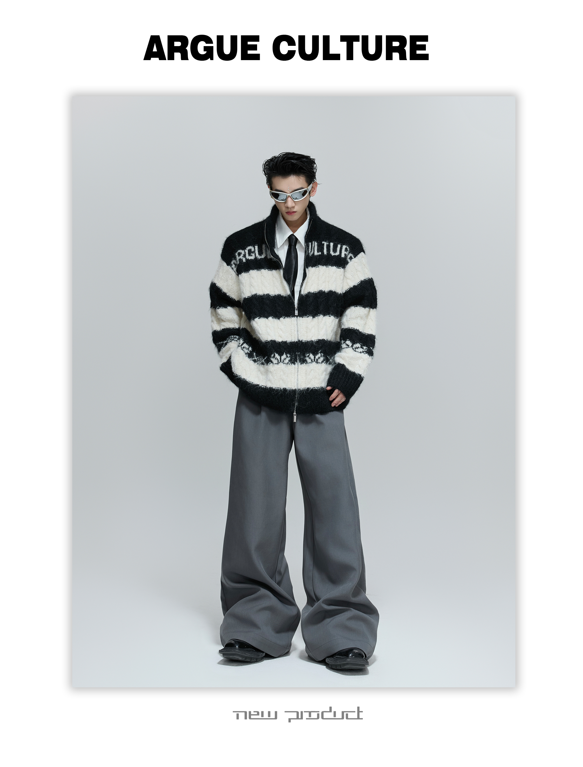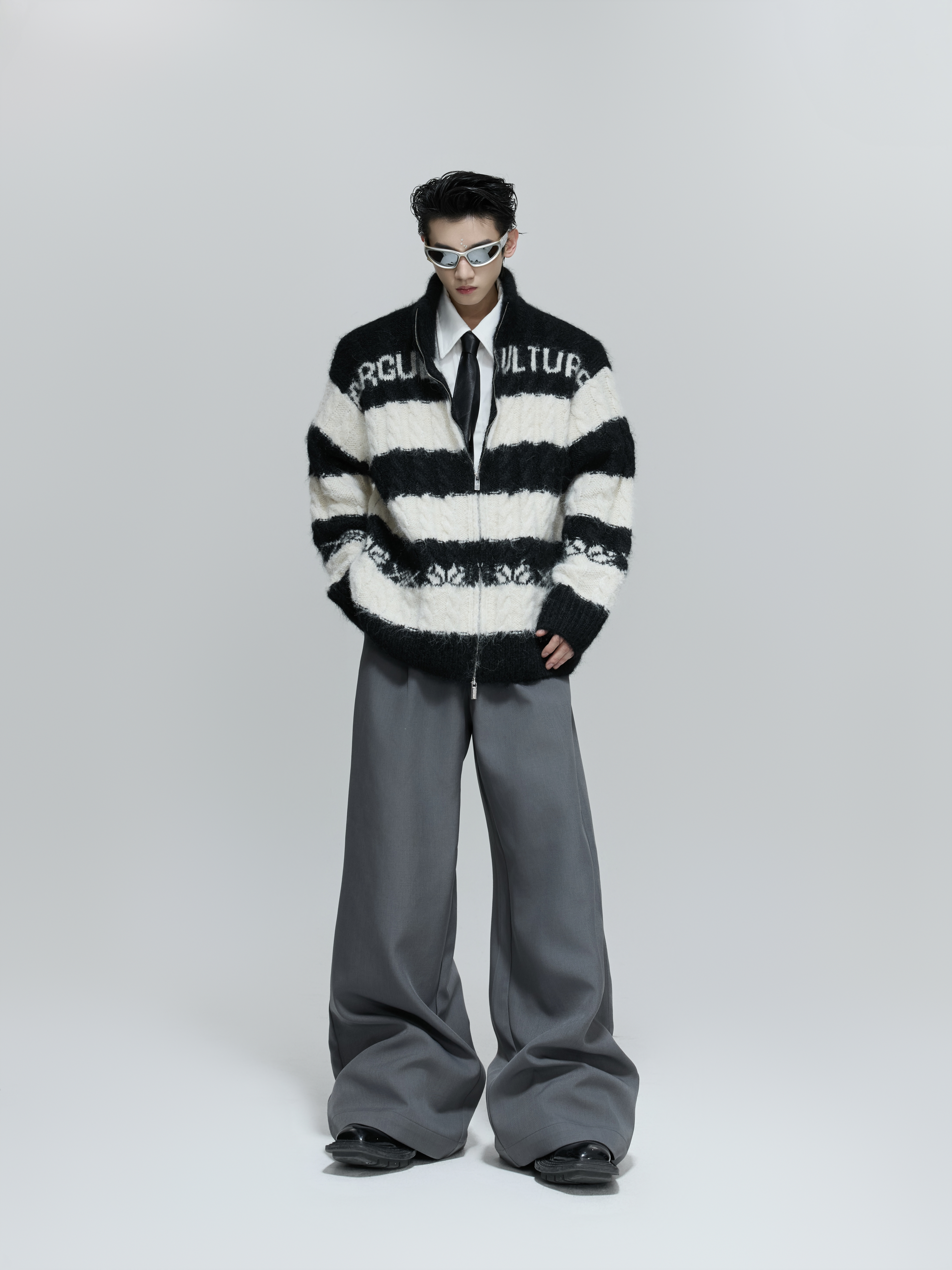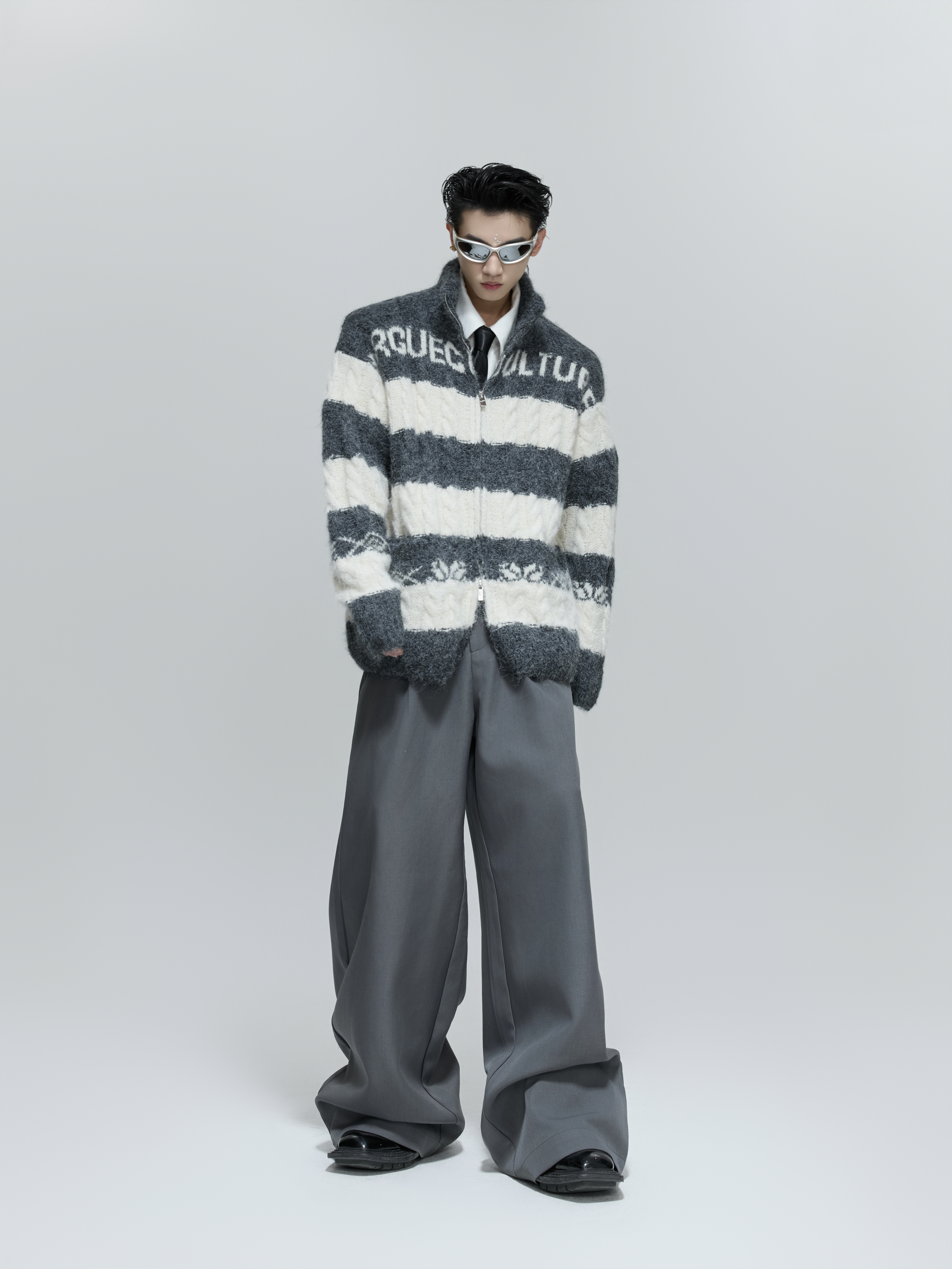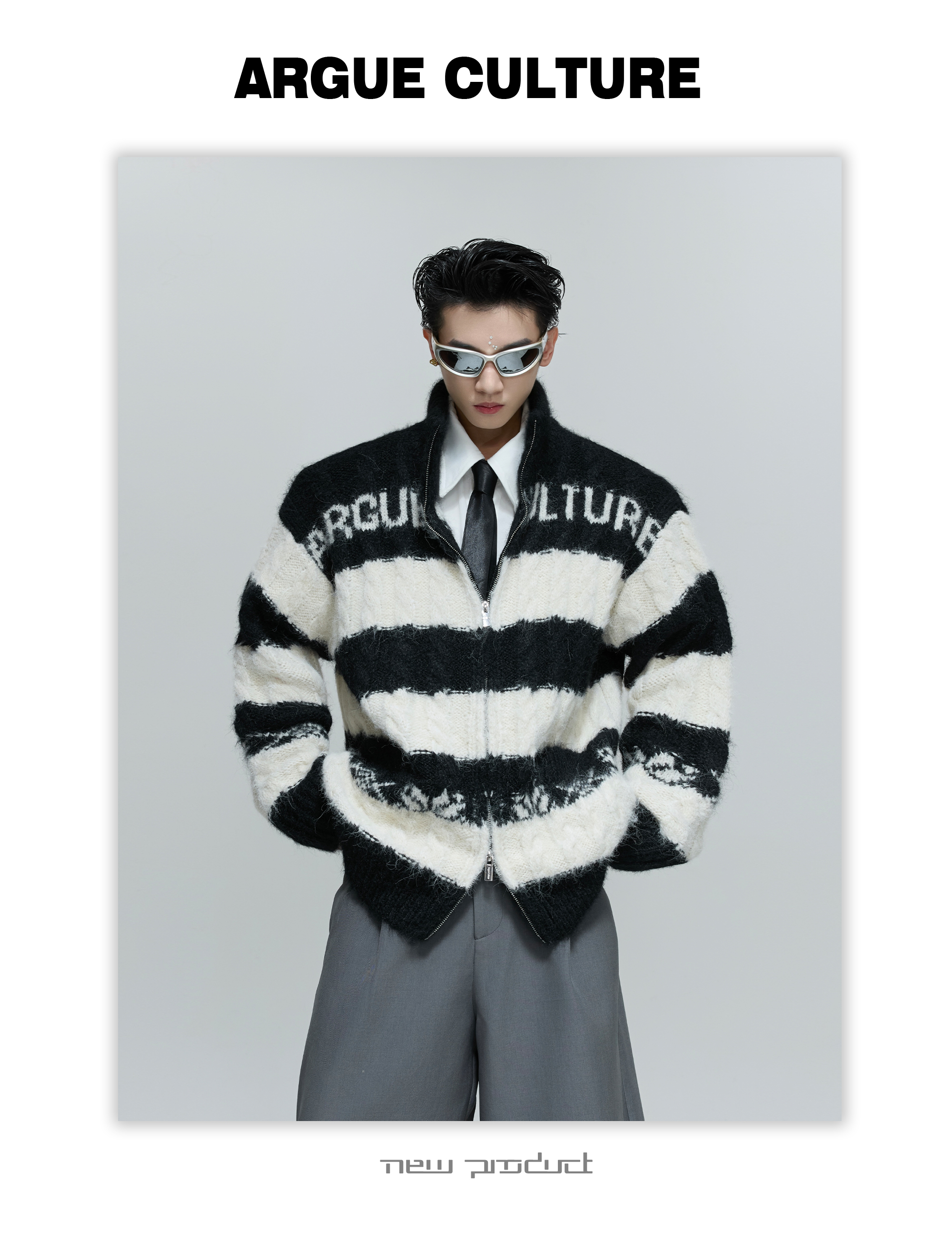 Colorblock Chunky Knit Zipper Cardigan WN21715