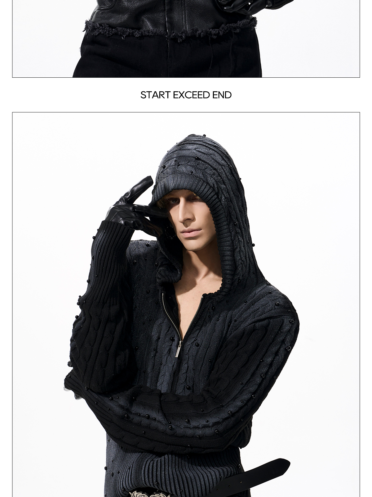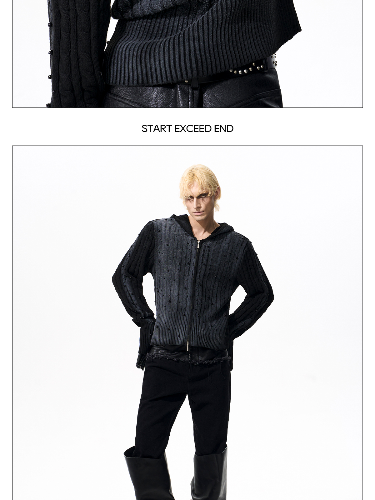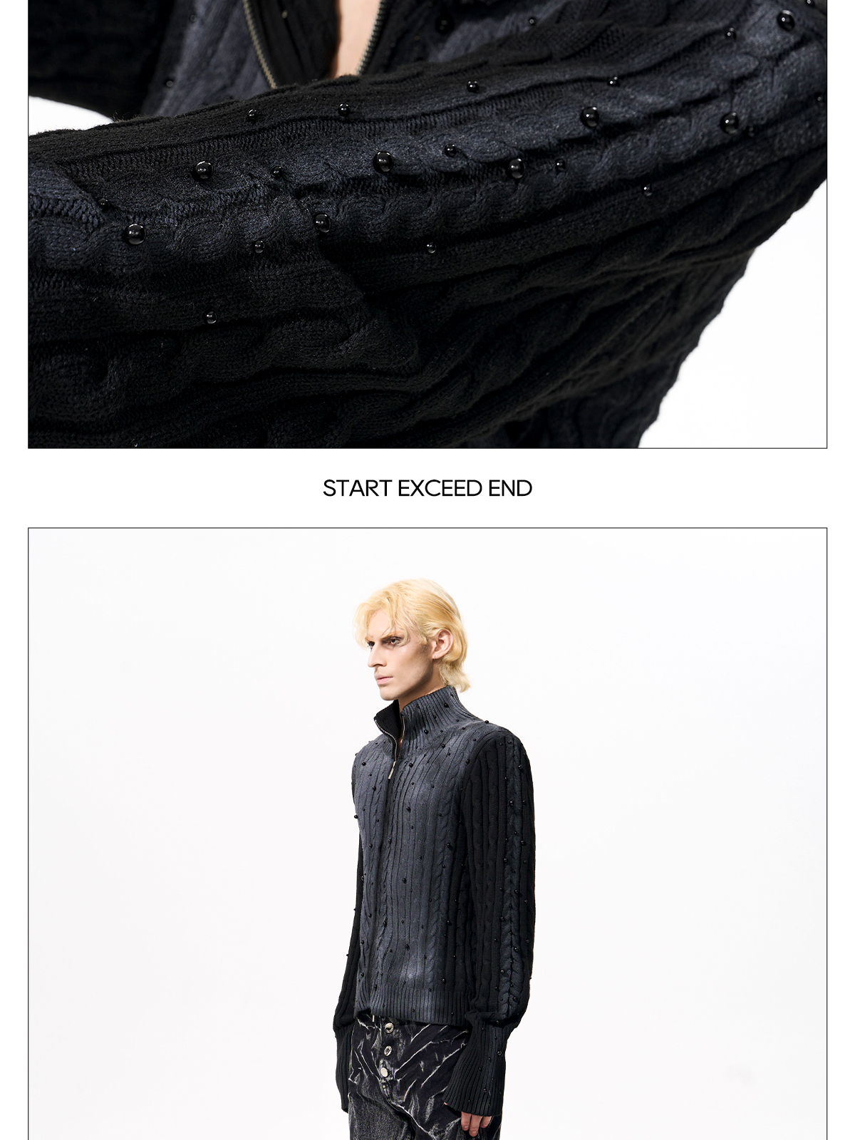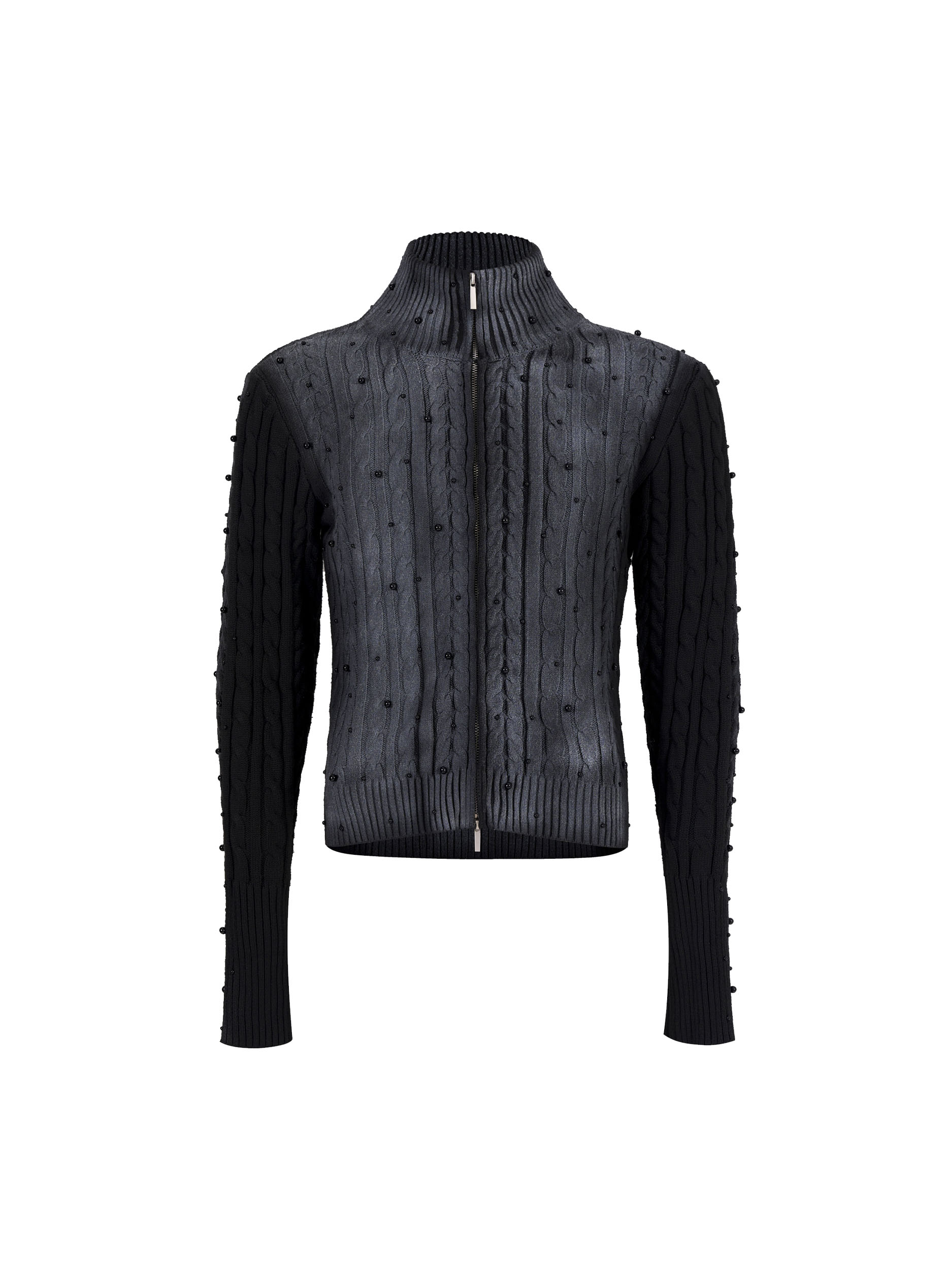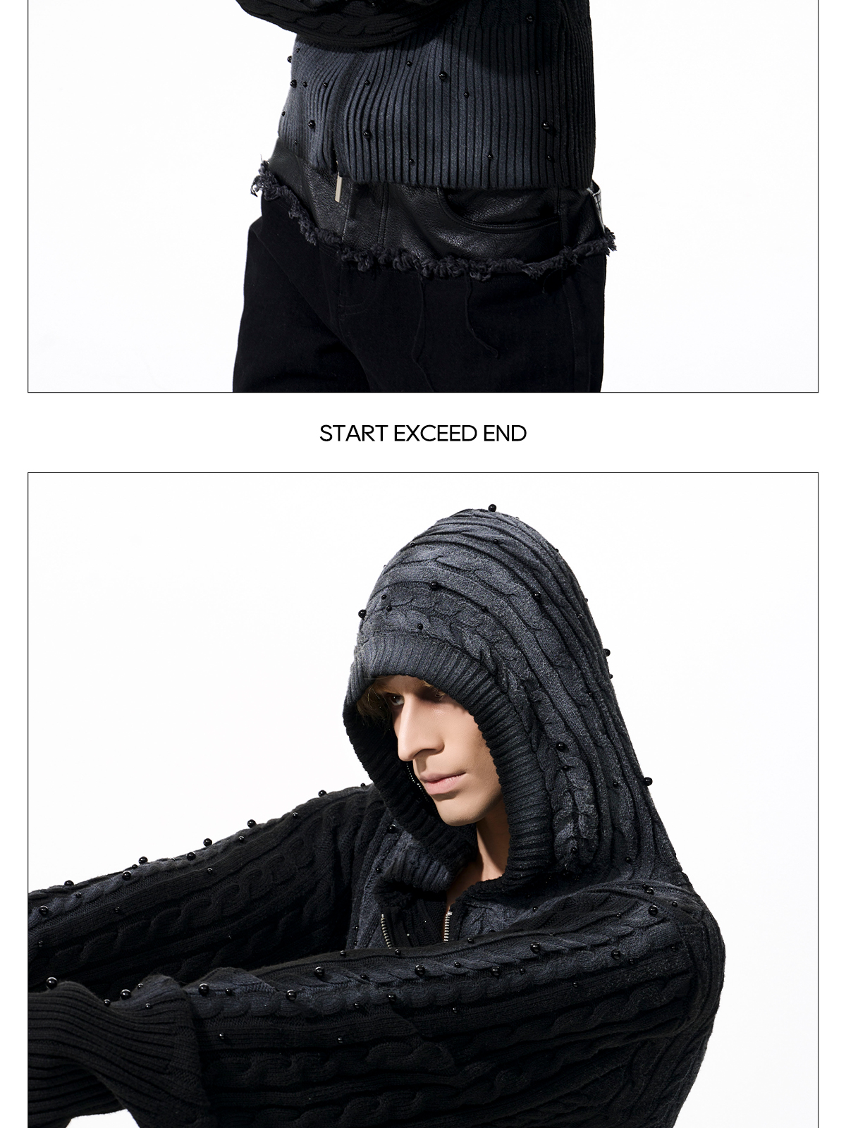Gradient Cable Knit Zippr Hoodie & Stand Collar Knit Zipper Cardigan WN21769