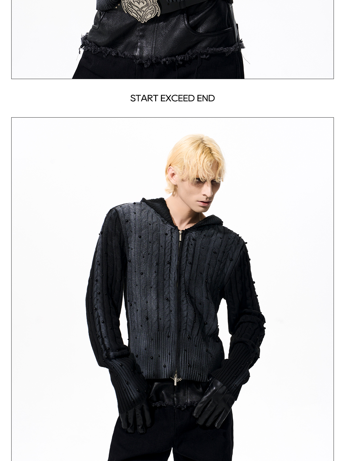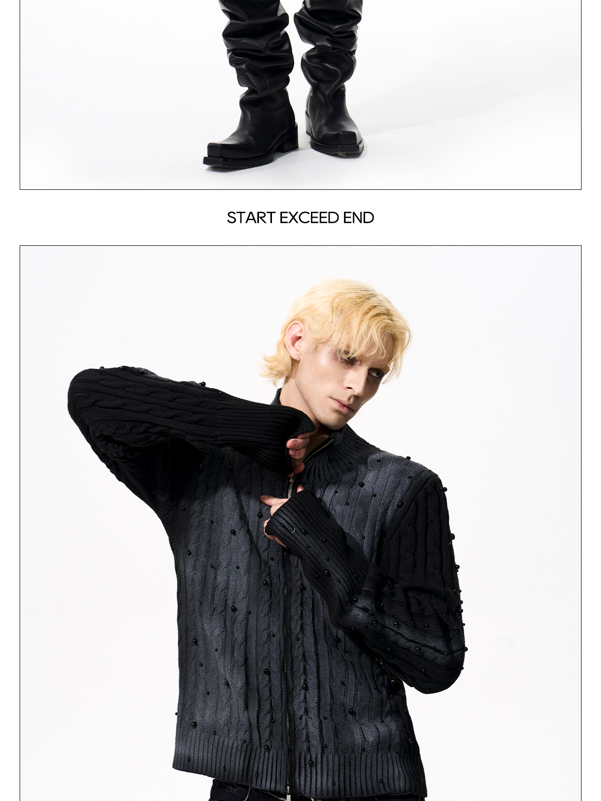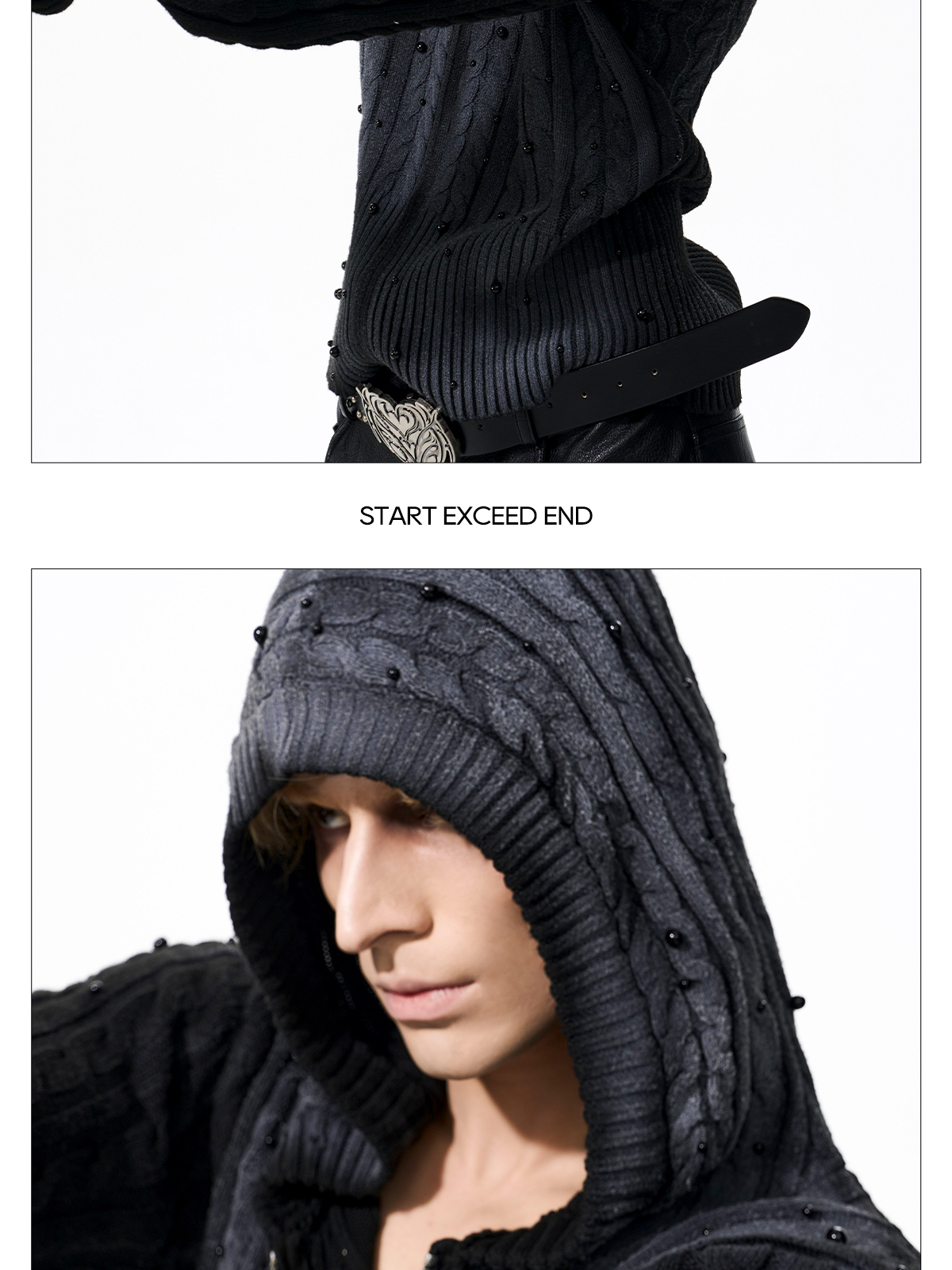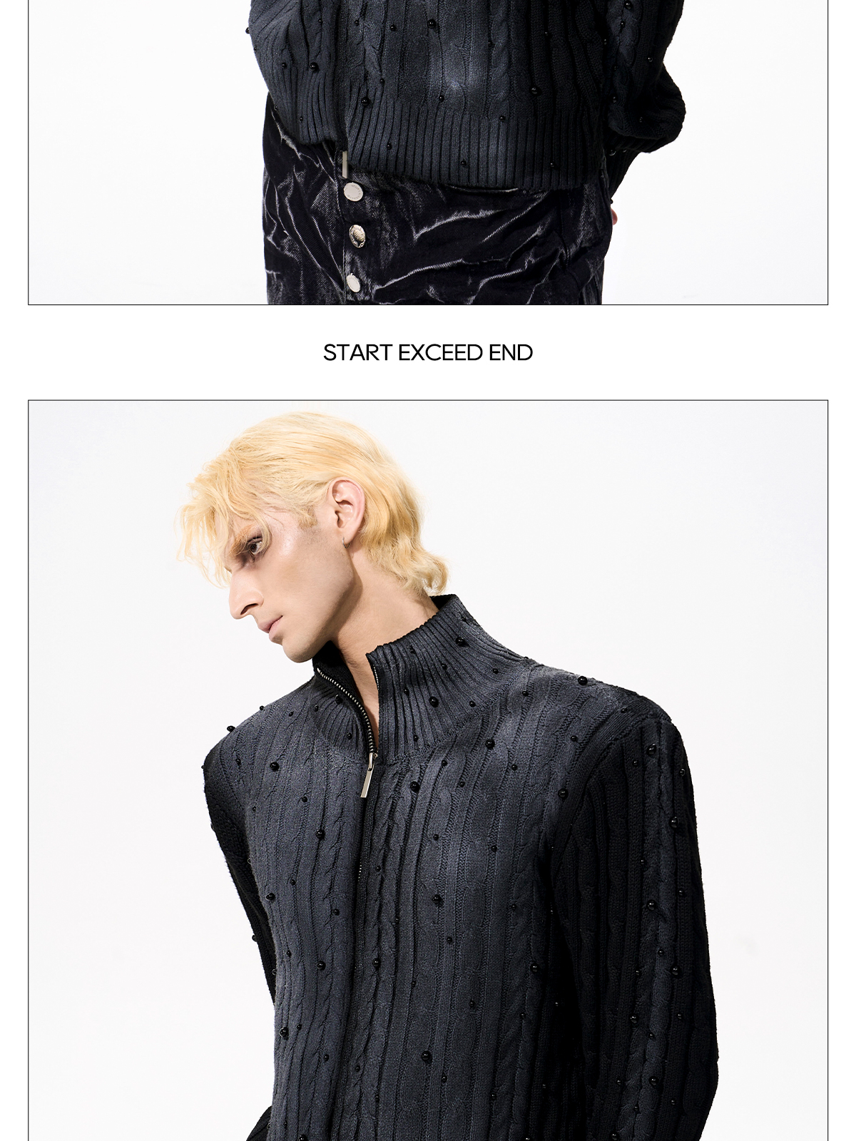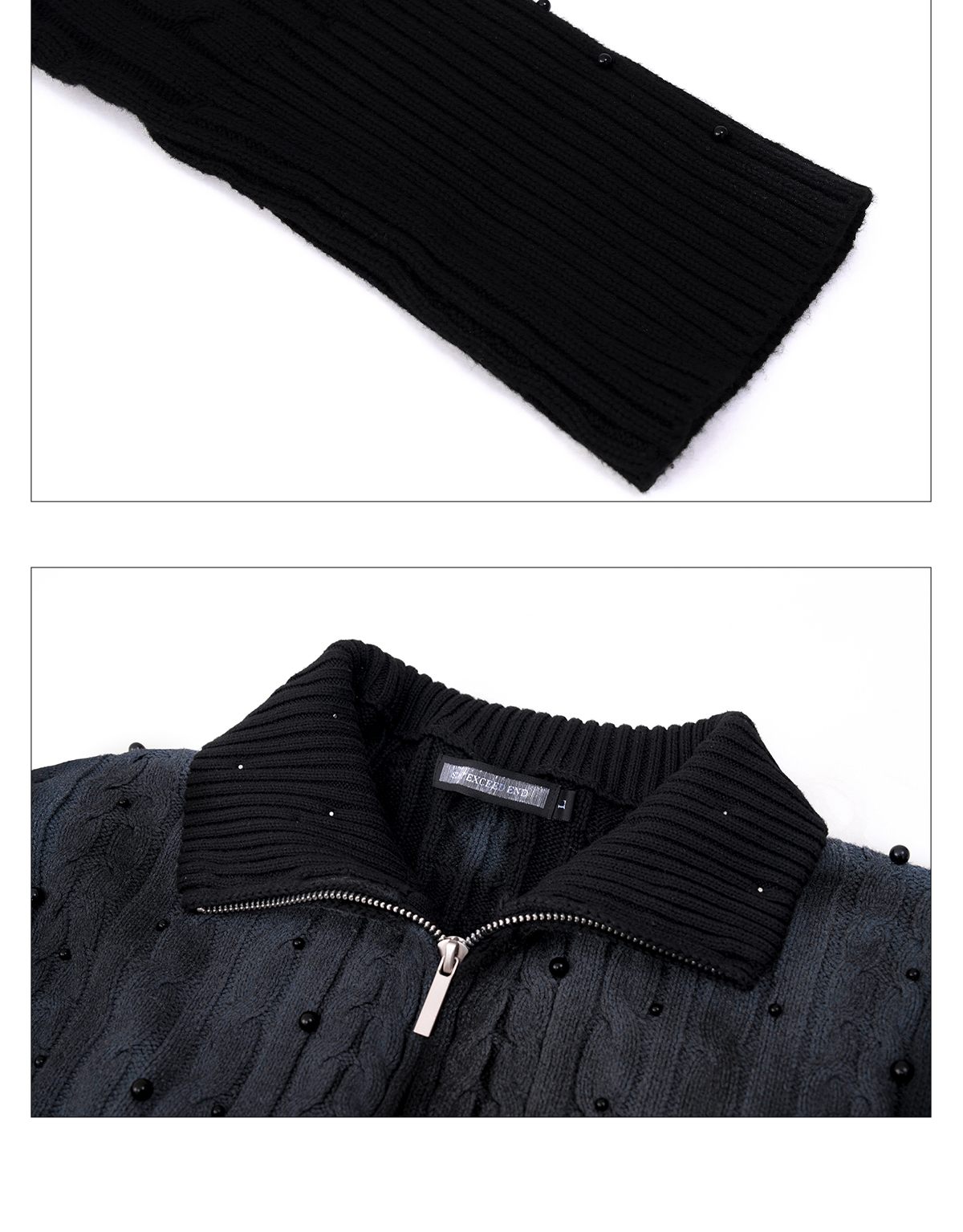 Gradient Cable Knit Zippr Hoodie & Stand Collar Knit Zipper Cardigan WN21769