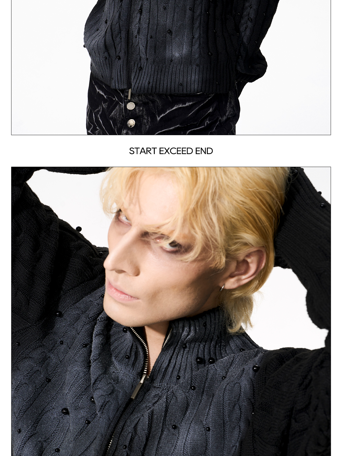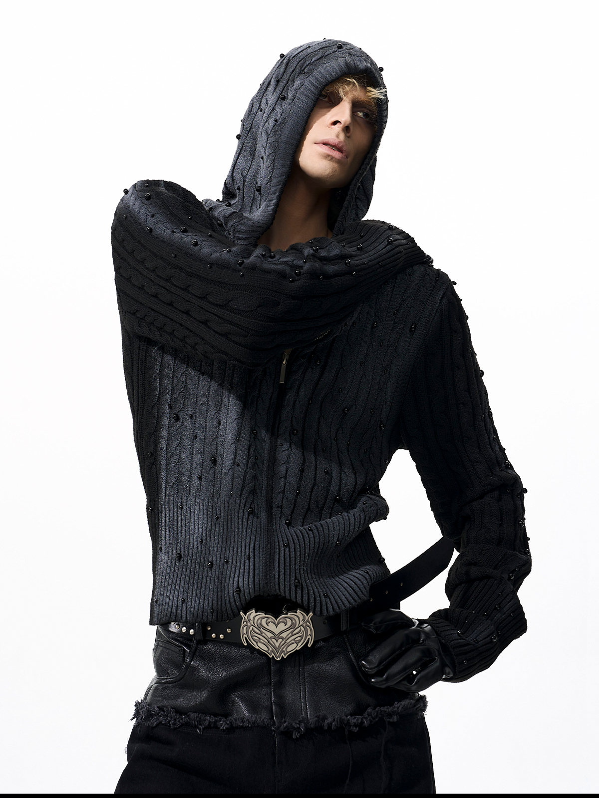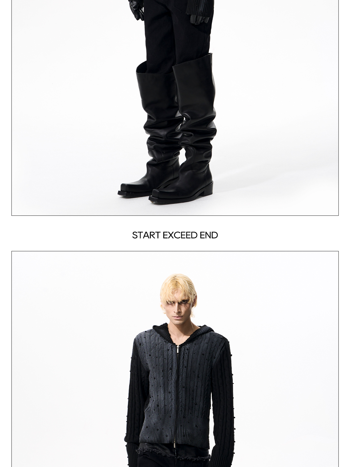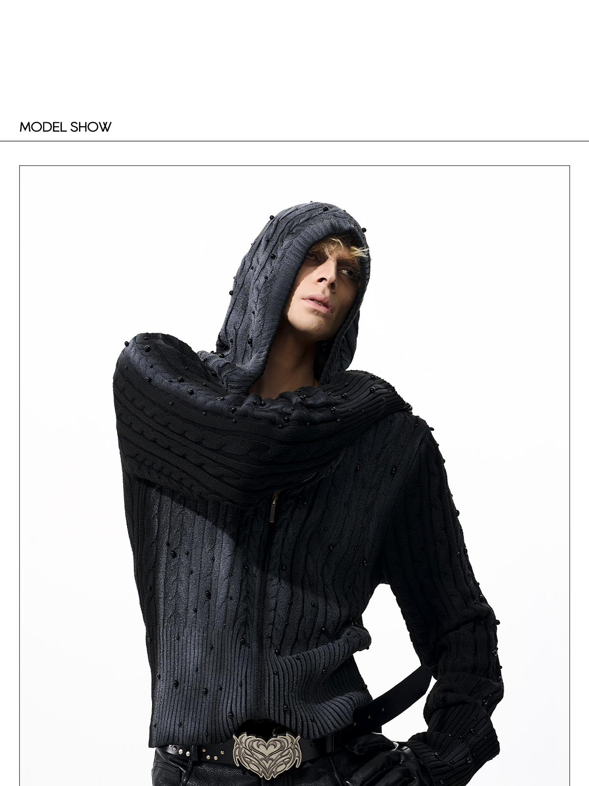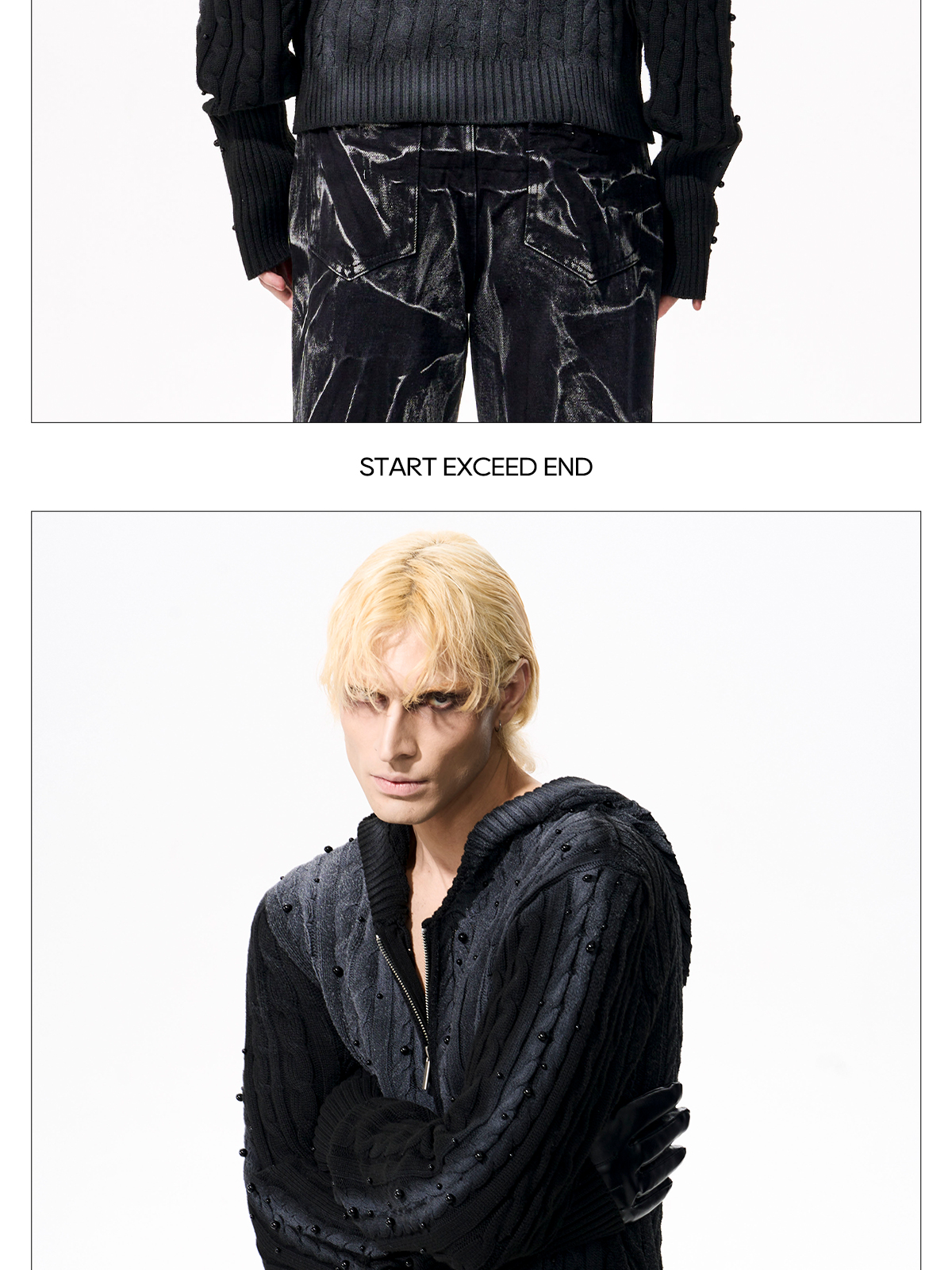 Gradient Cable Knit Zippr Hoodie & Stand Collar Knit Zipper Cardigan WN21769