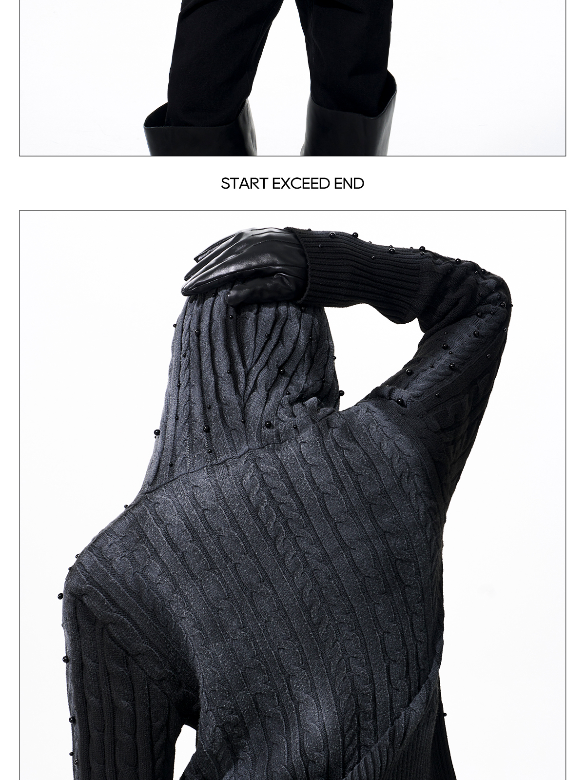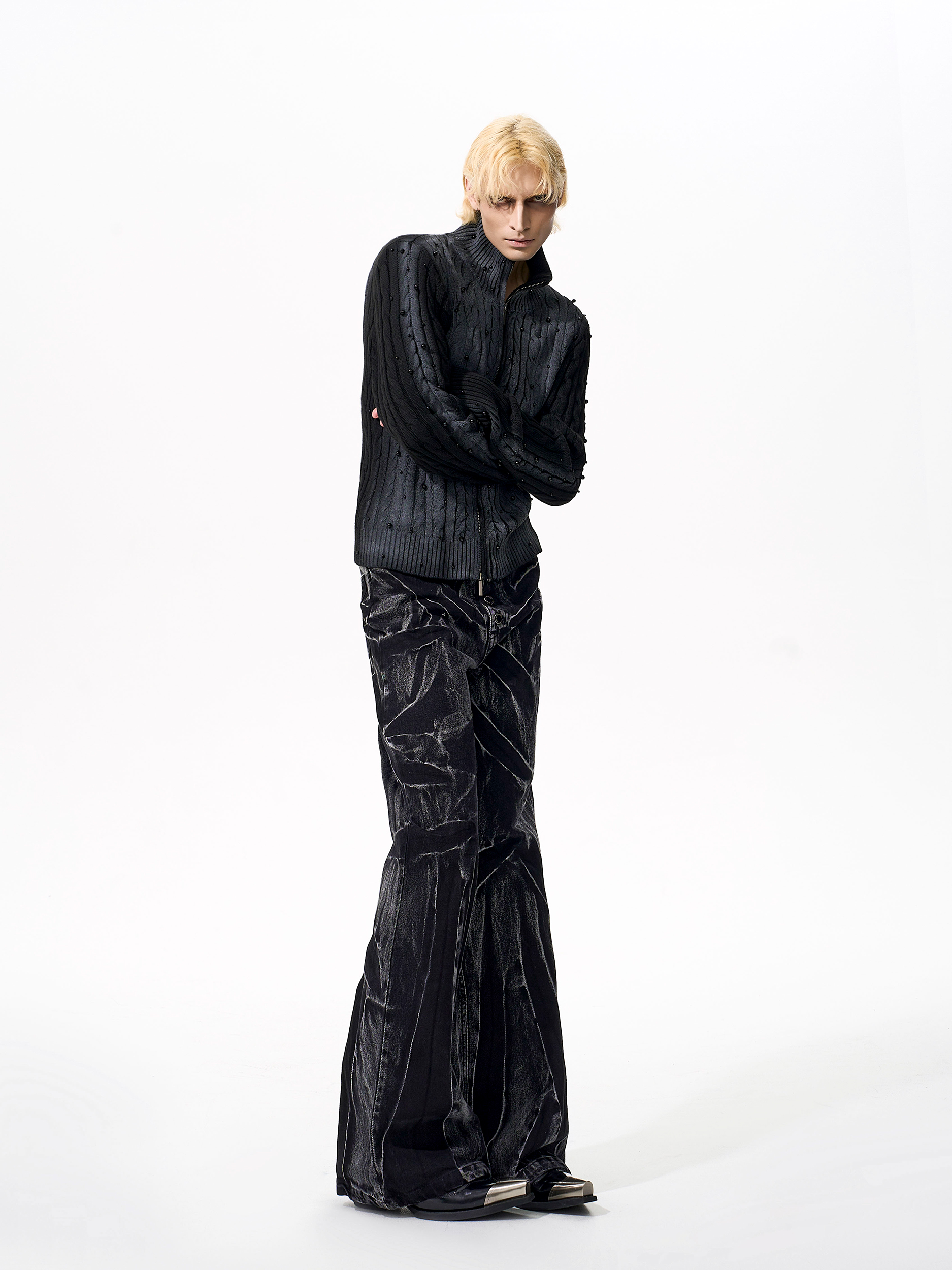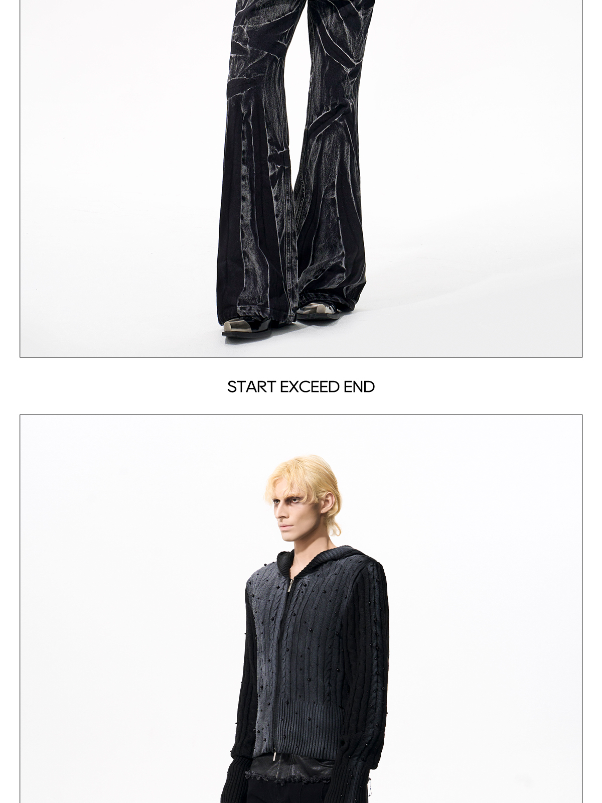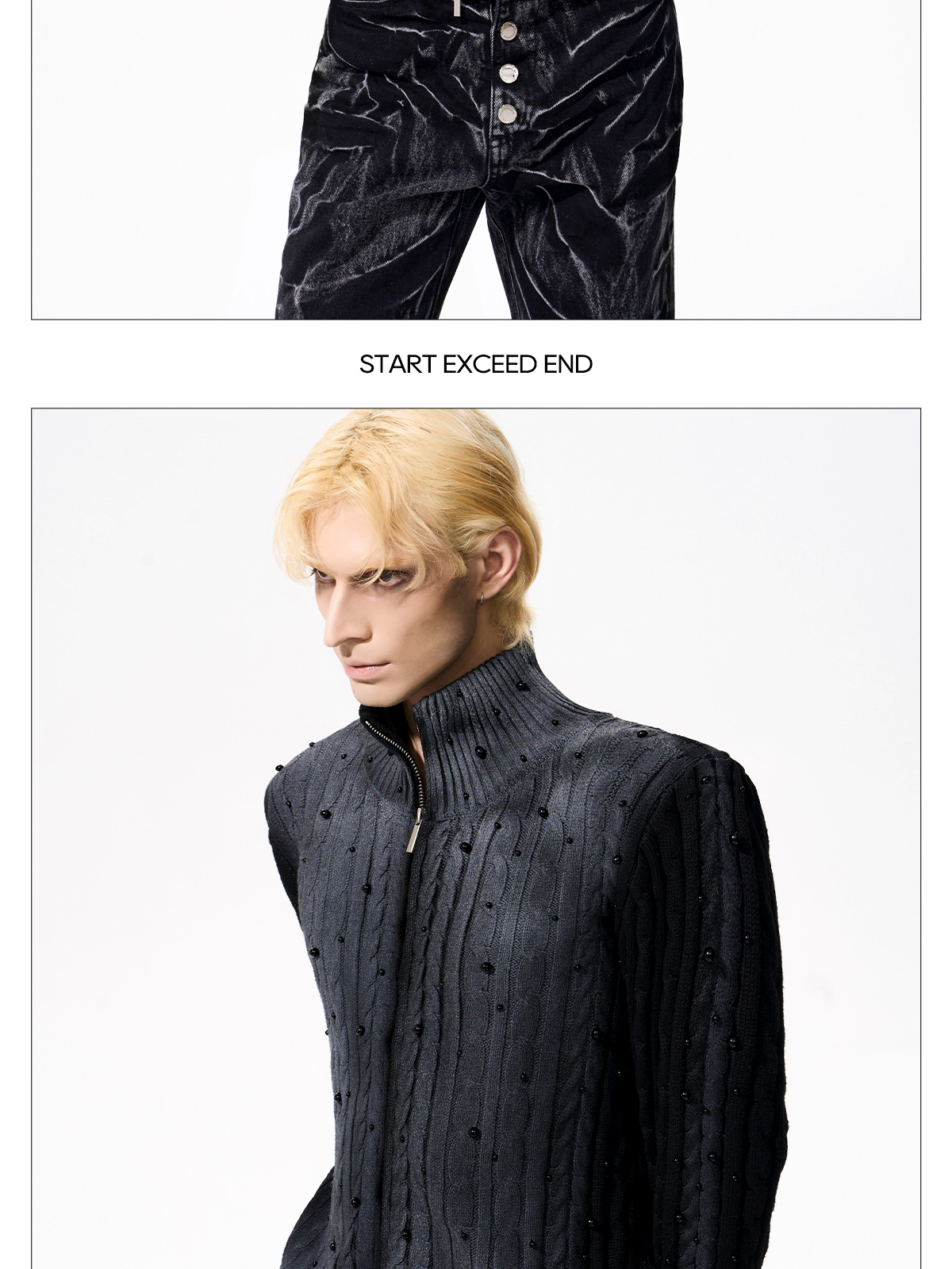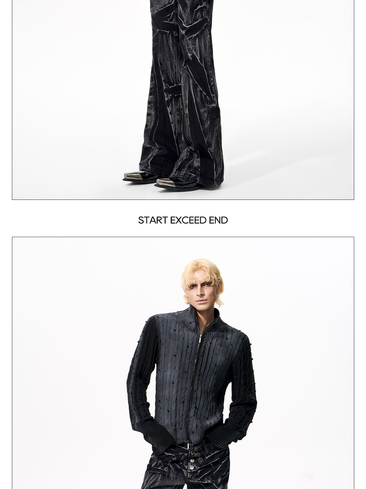Gradient Cable Knit Zippr Hoodie & Stand Collar Knit Zipper Cardigan WN21769