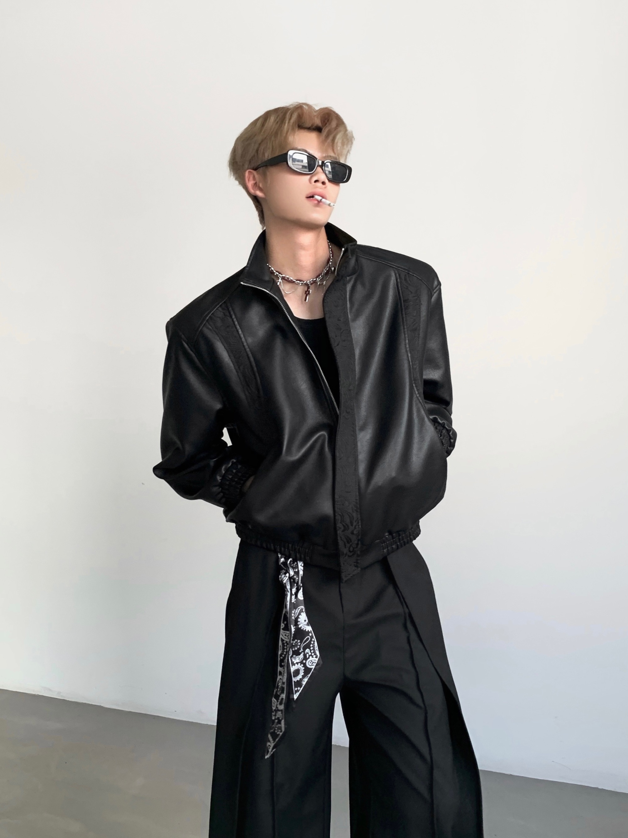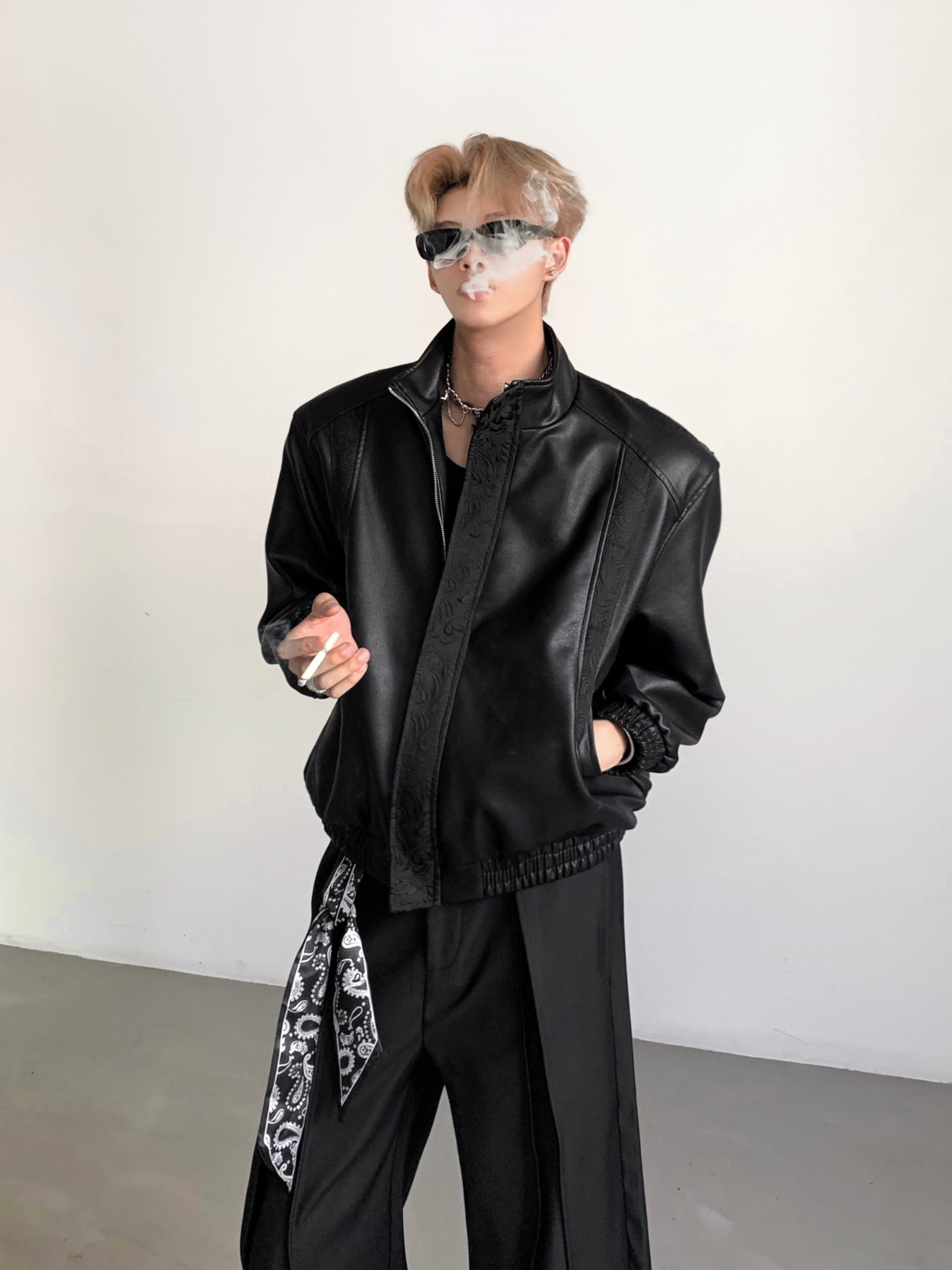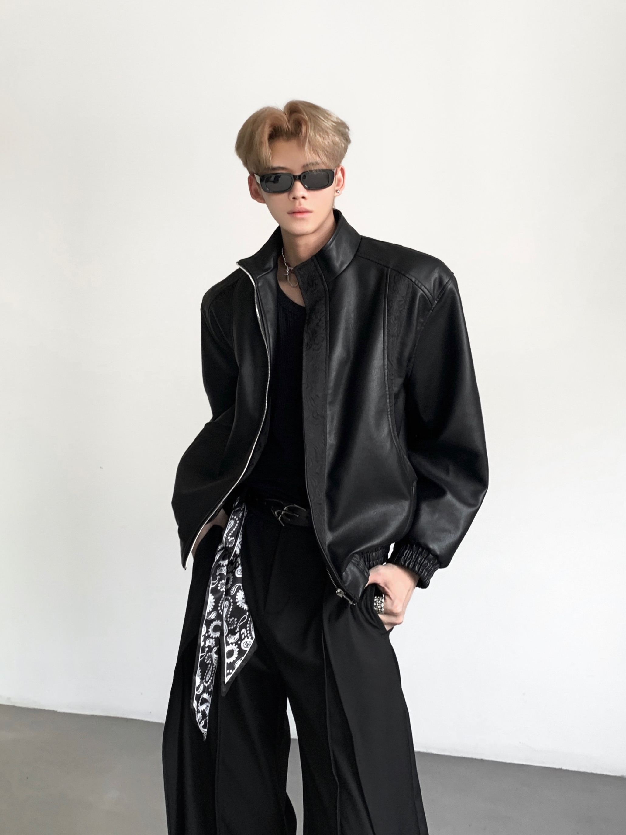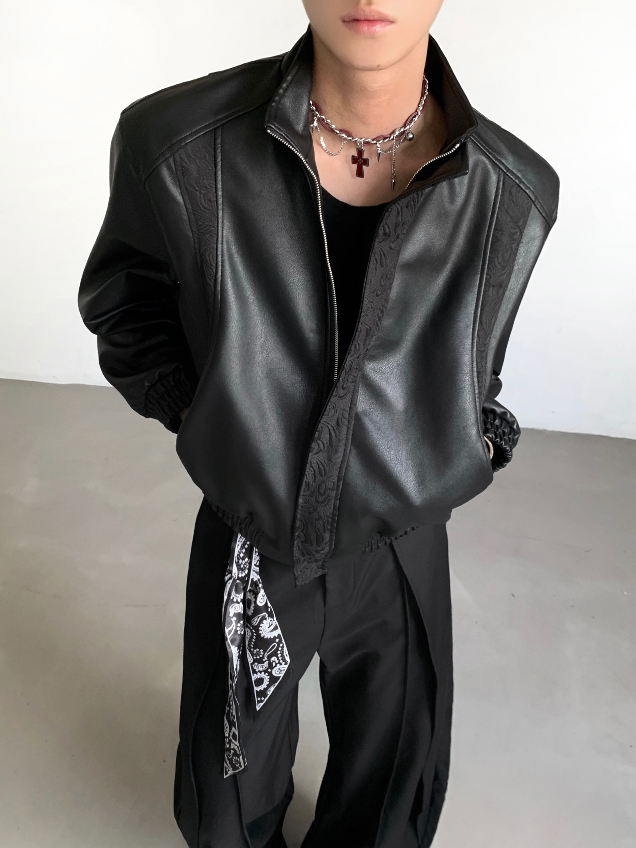 Jacquard Embroidery Short PU Leather Jacket WN21959