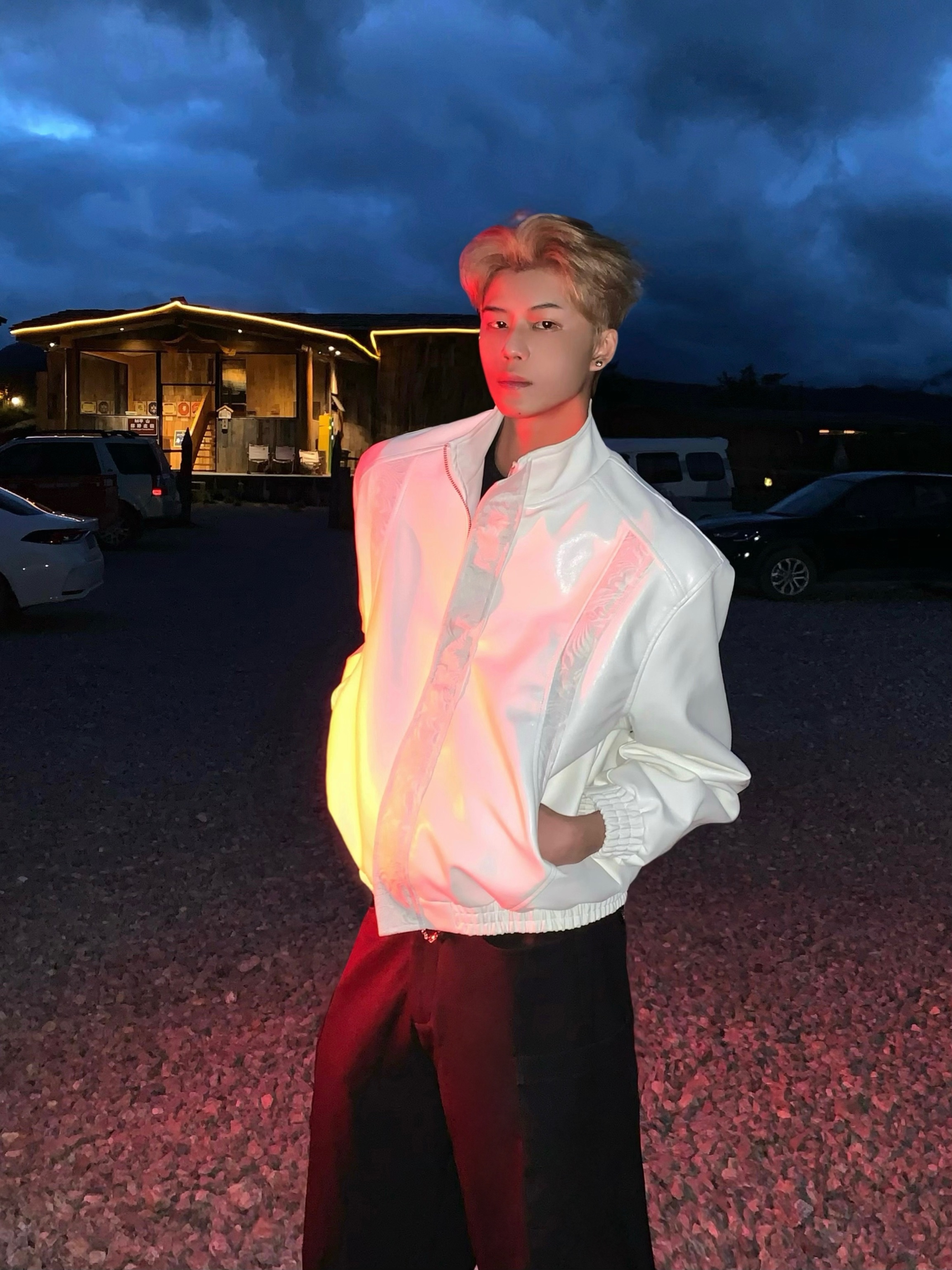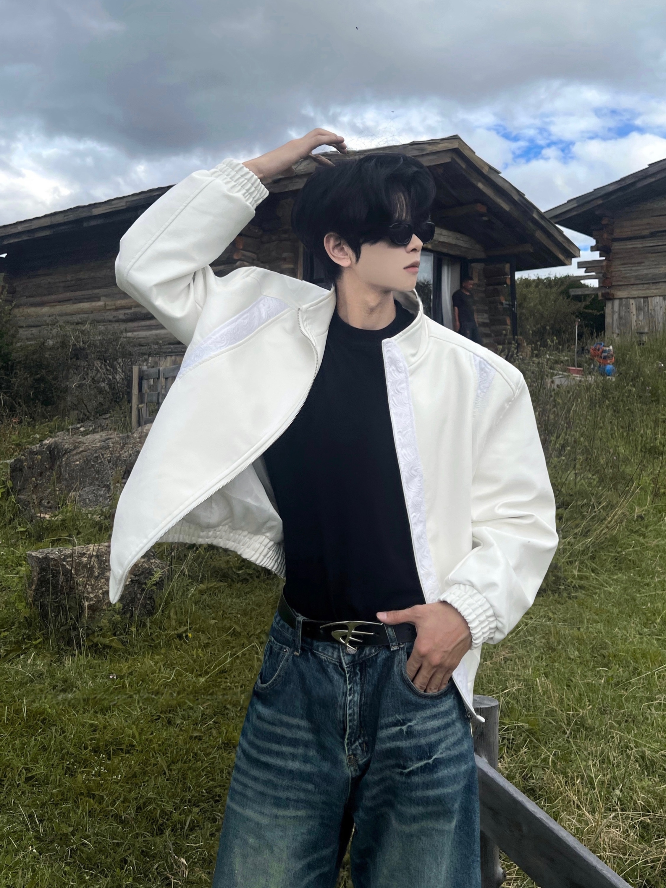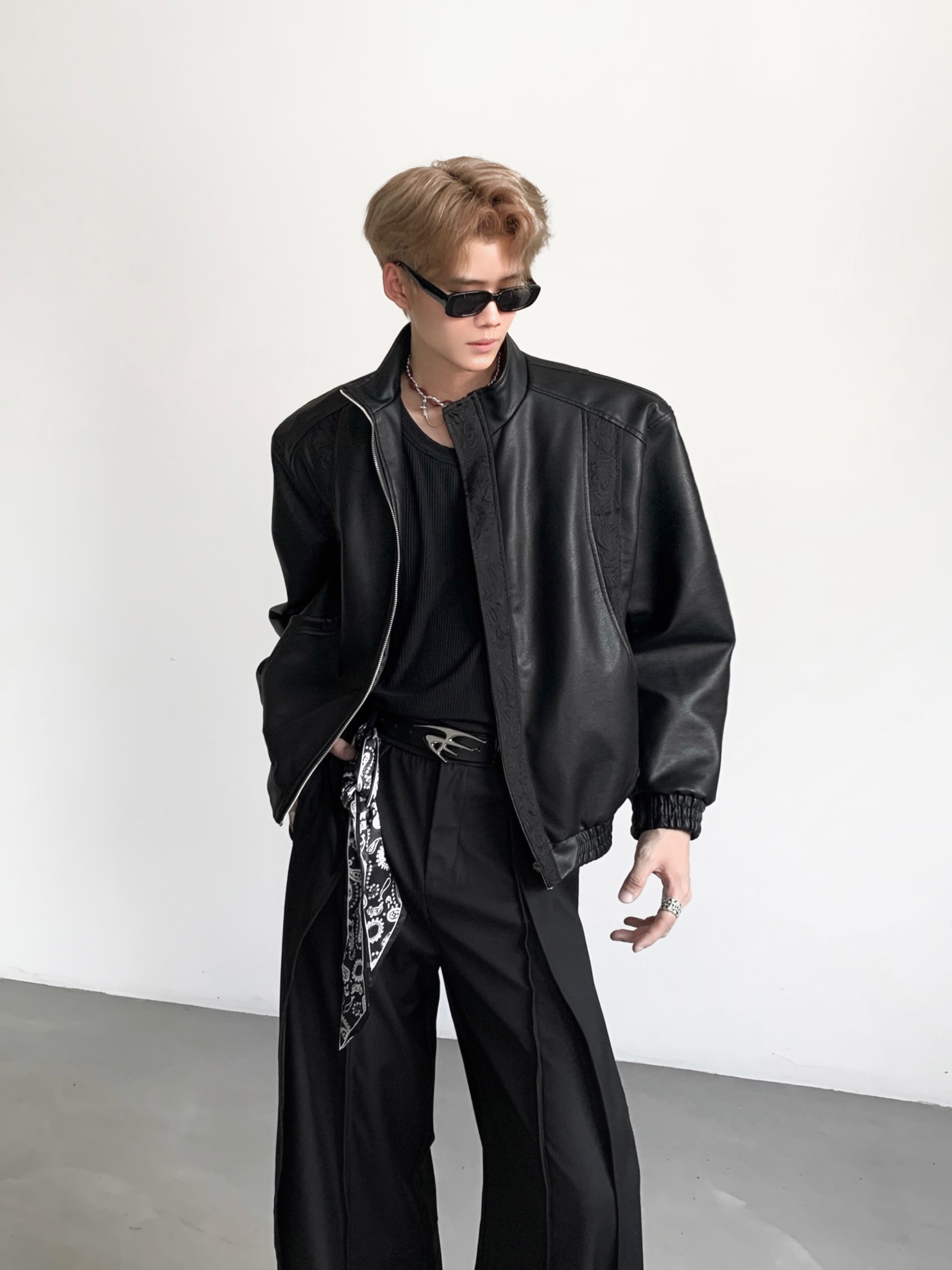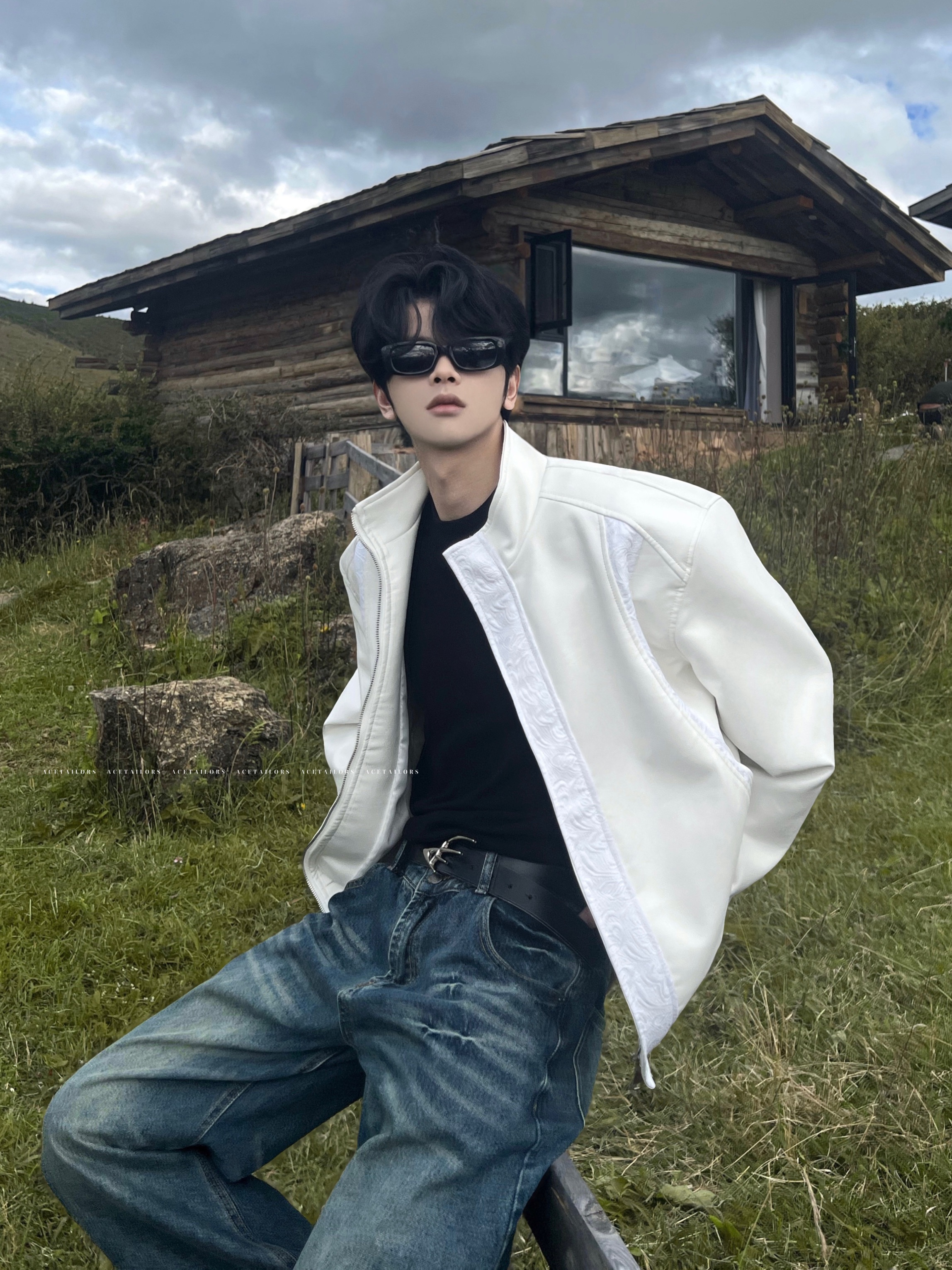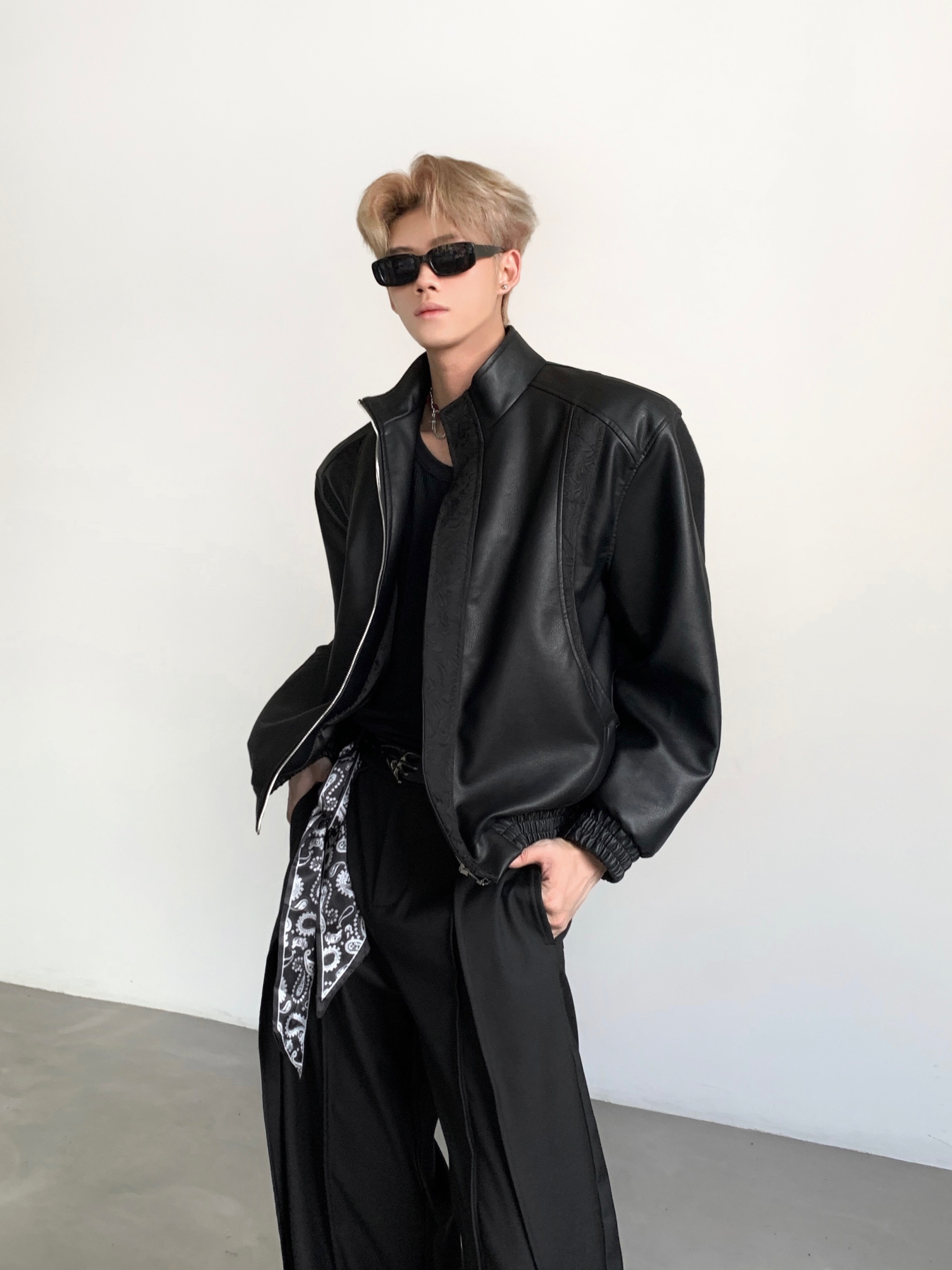 Jacquard Embroidery Short PU Leather Jacket WN21959