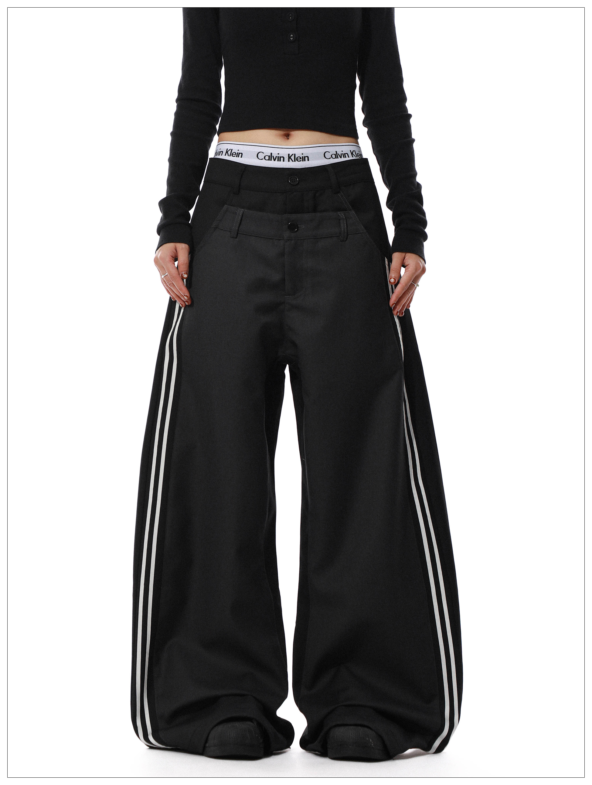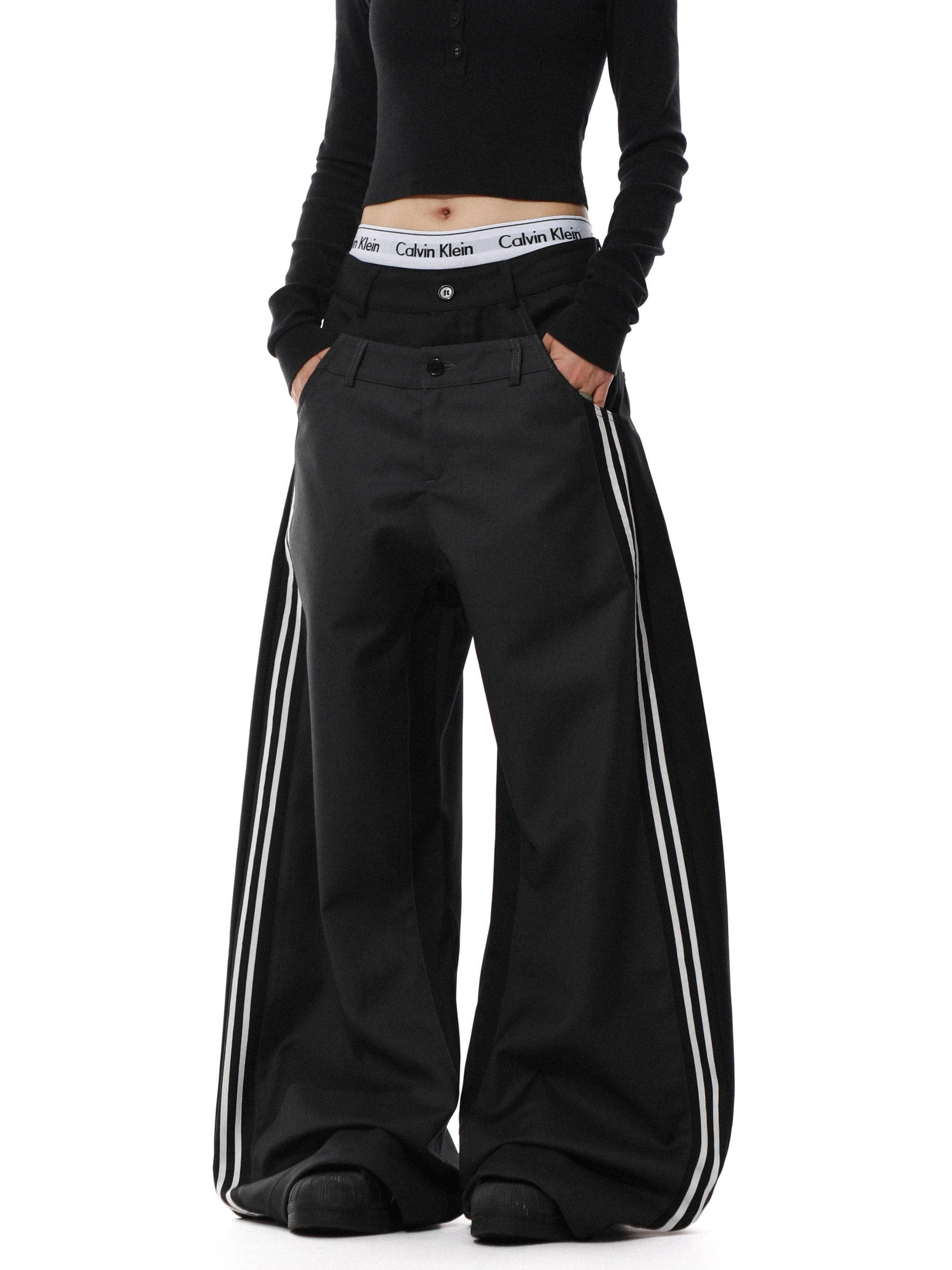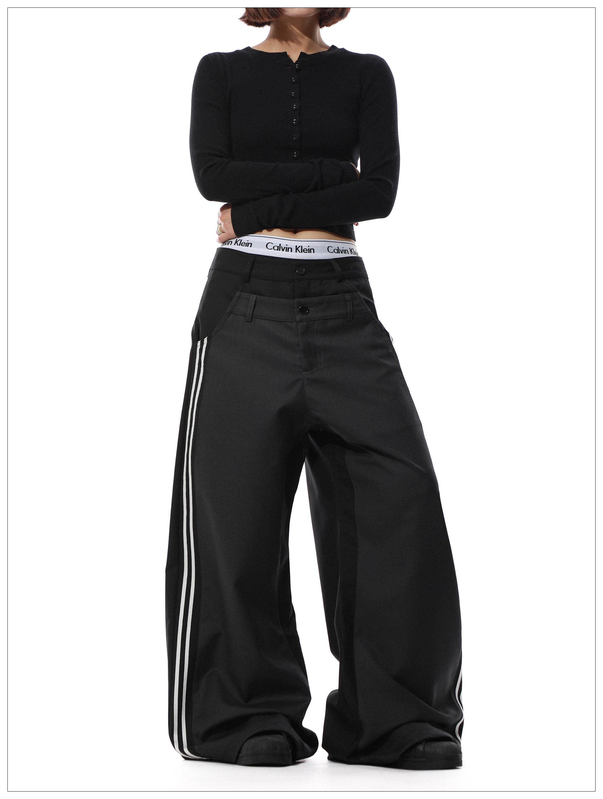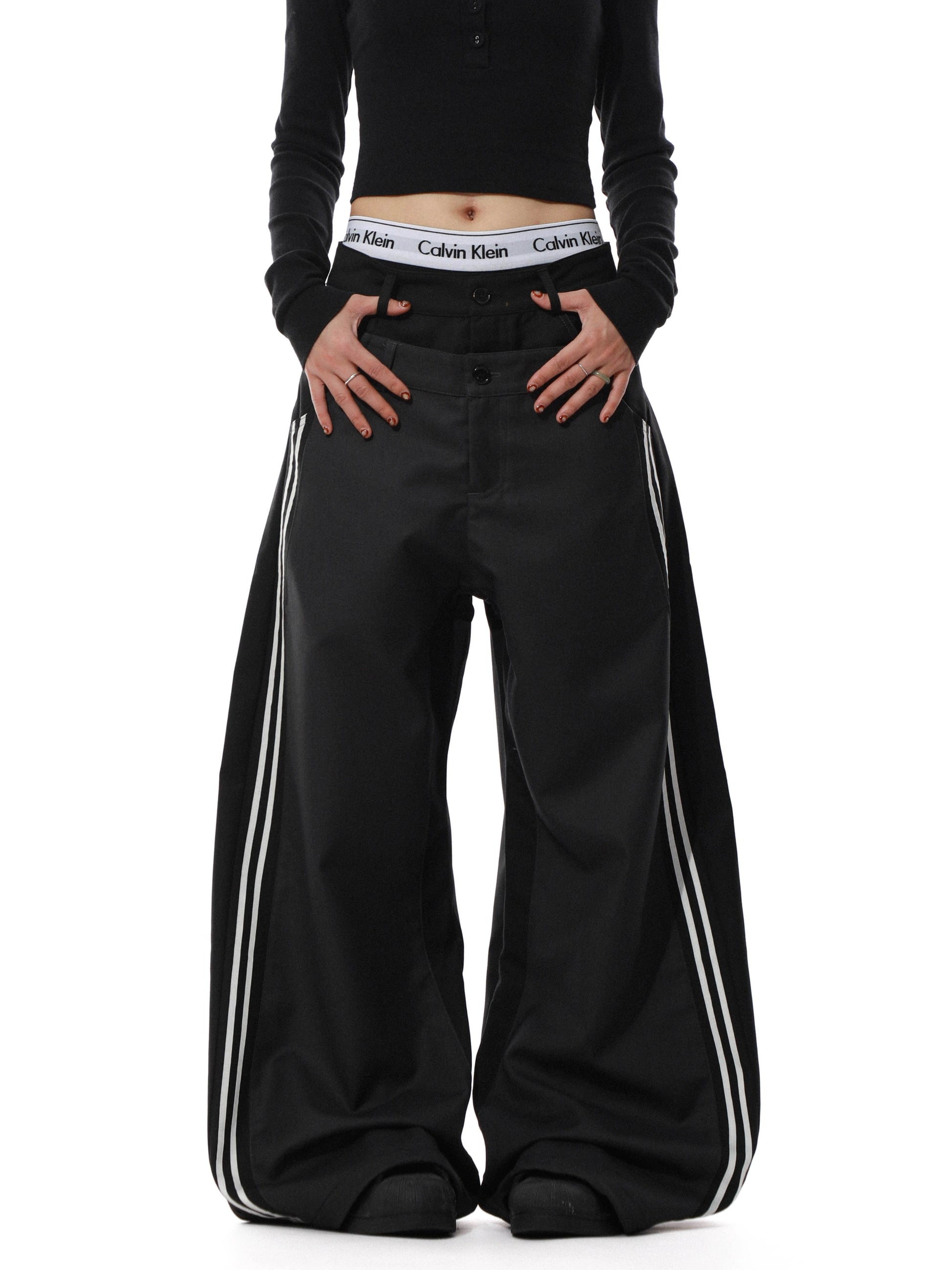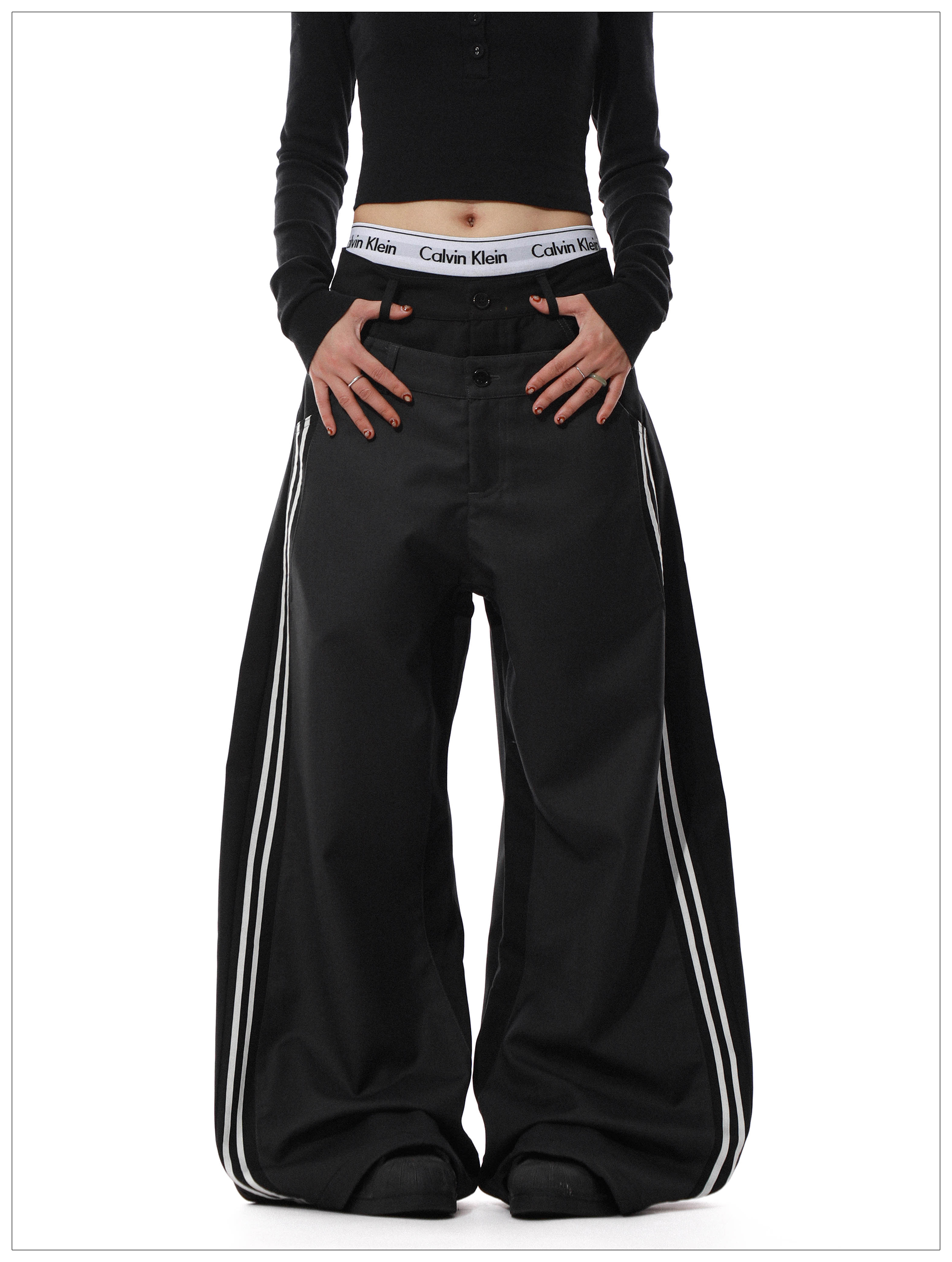 Double Waistband Stripe Patch Wide Leg Pants WN22096
