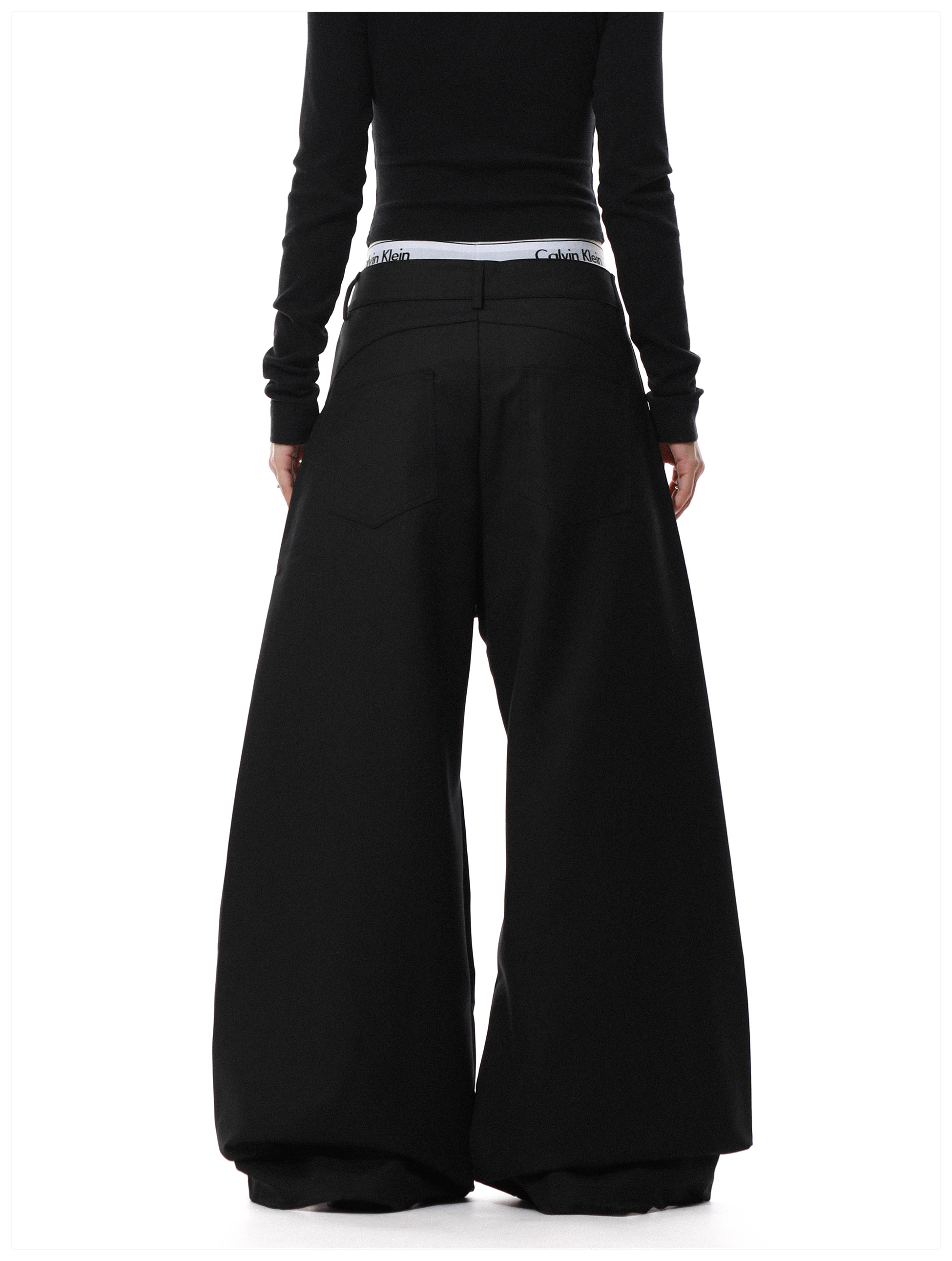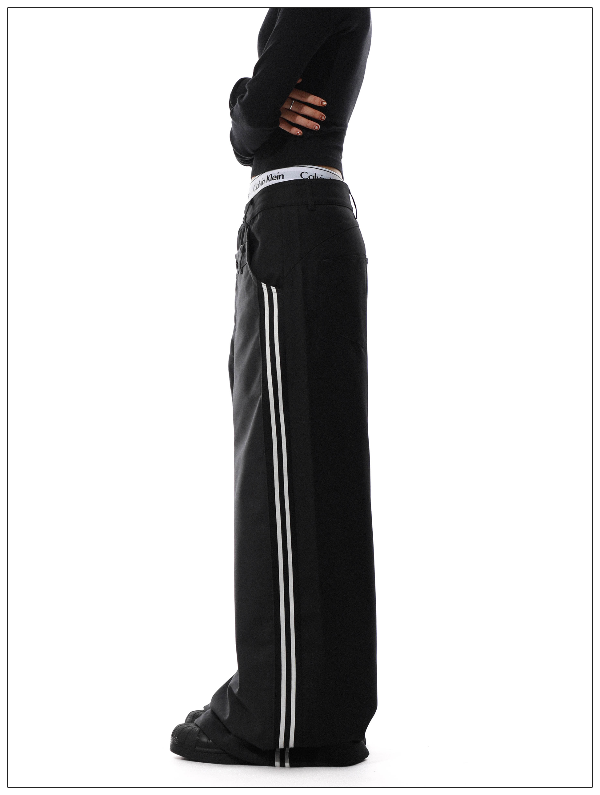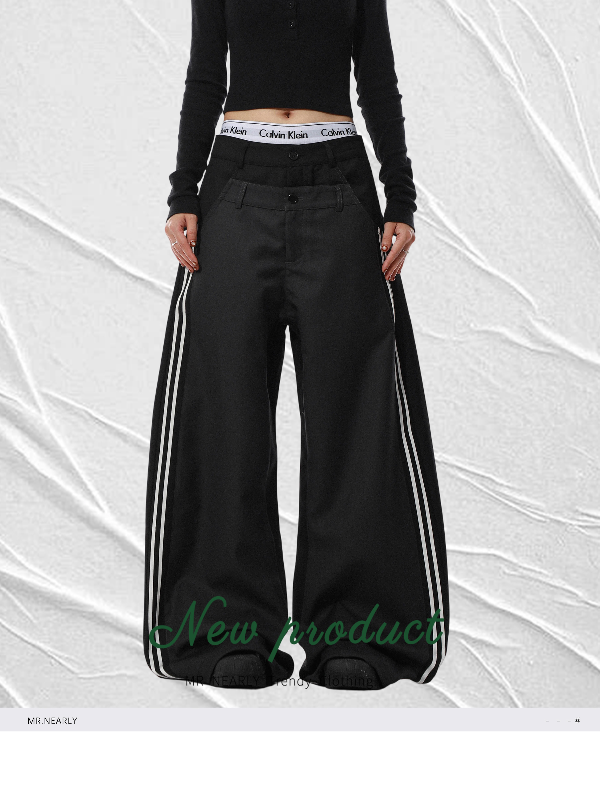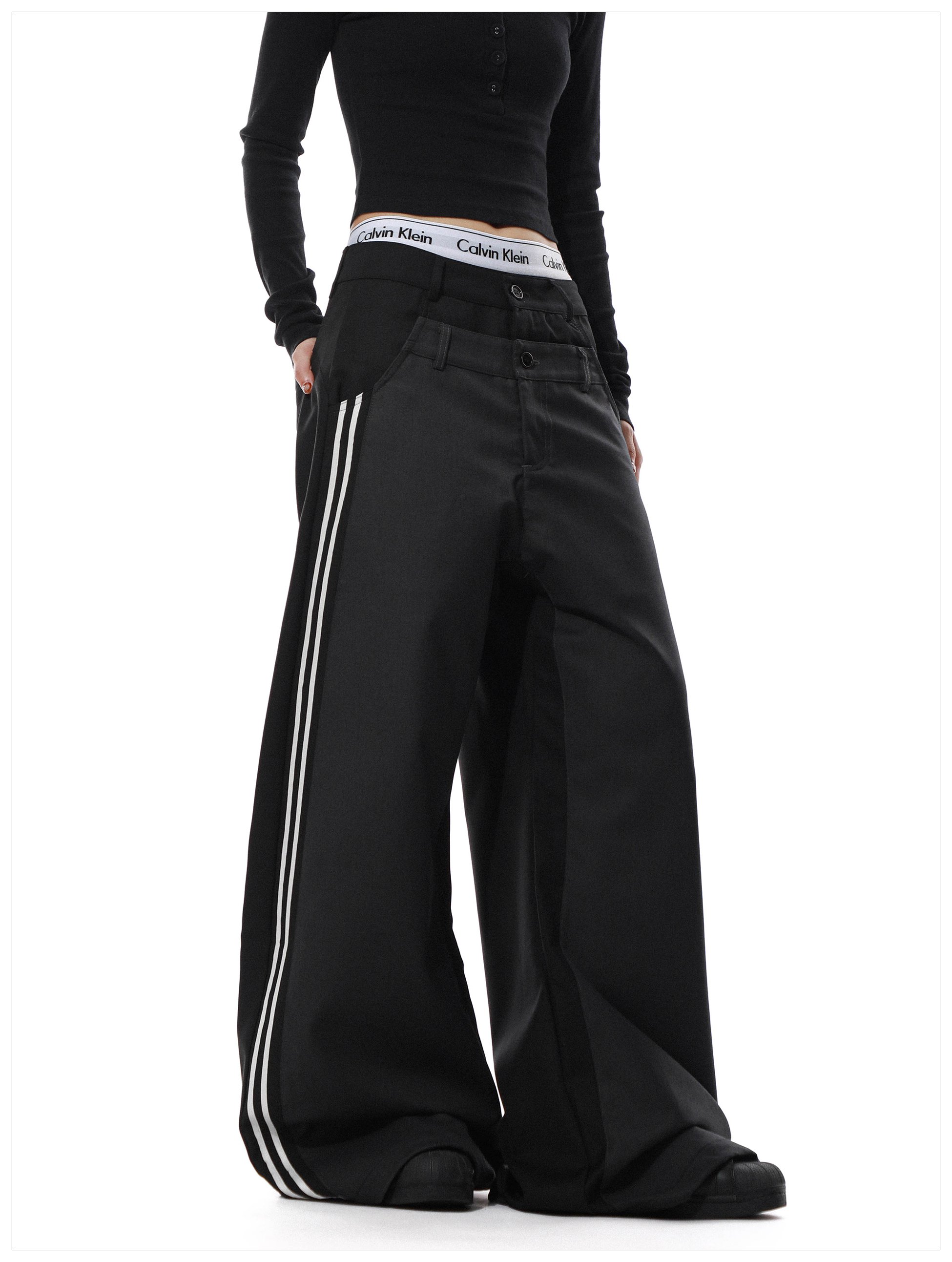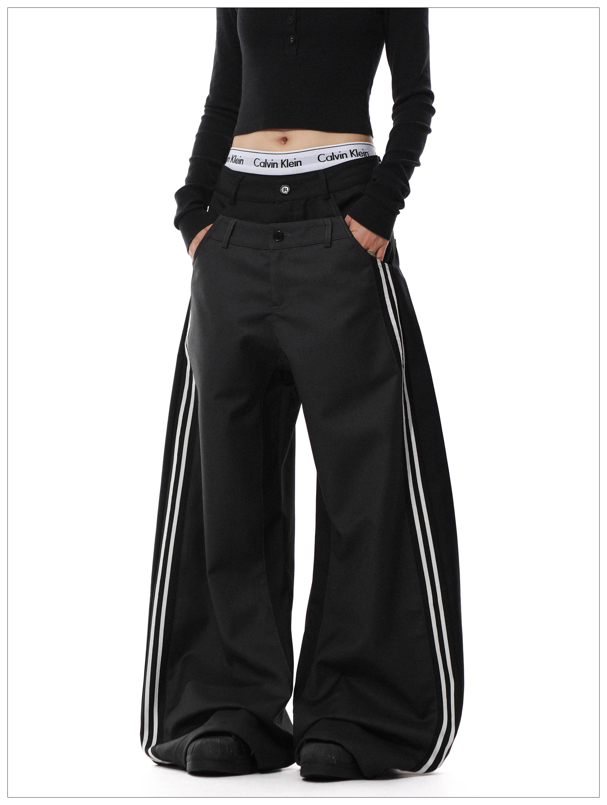 Double Waistband Stripe Patch Wide Leg Pants WN22096
