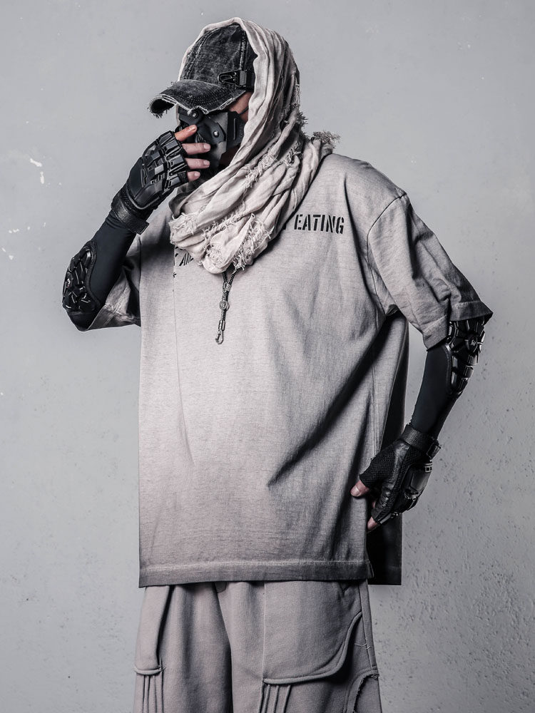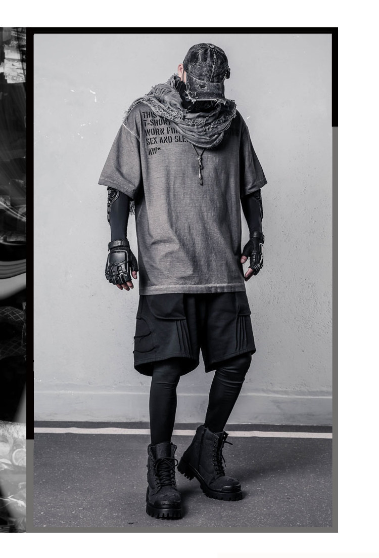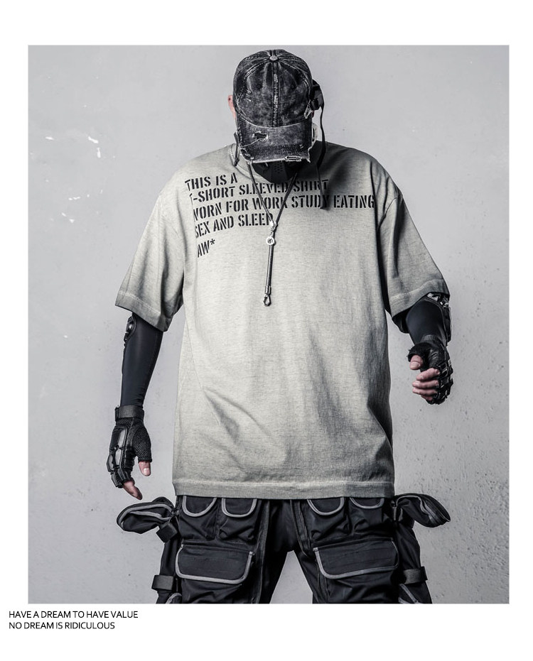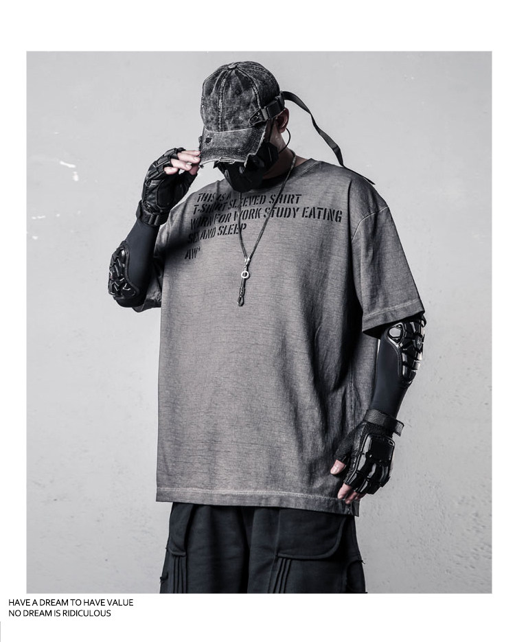 Damage Wash Letter Print Short Sleeve T-Shirt WN22485
