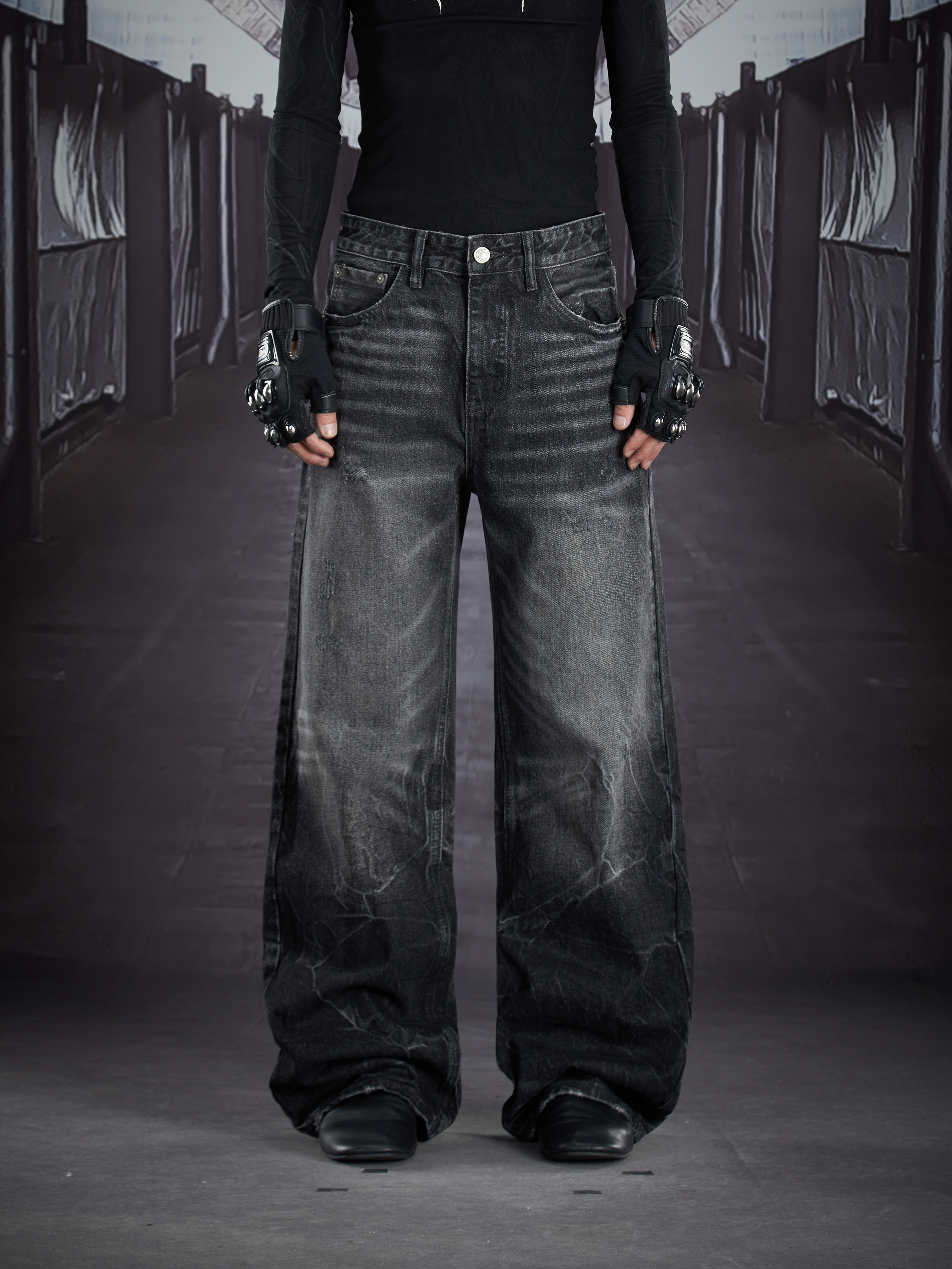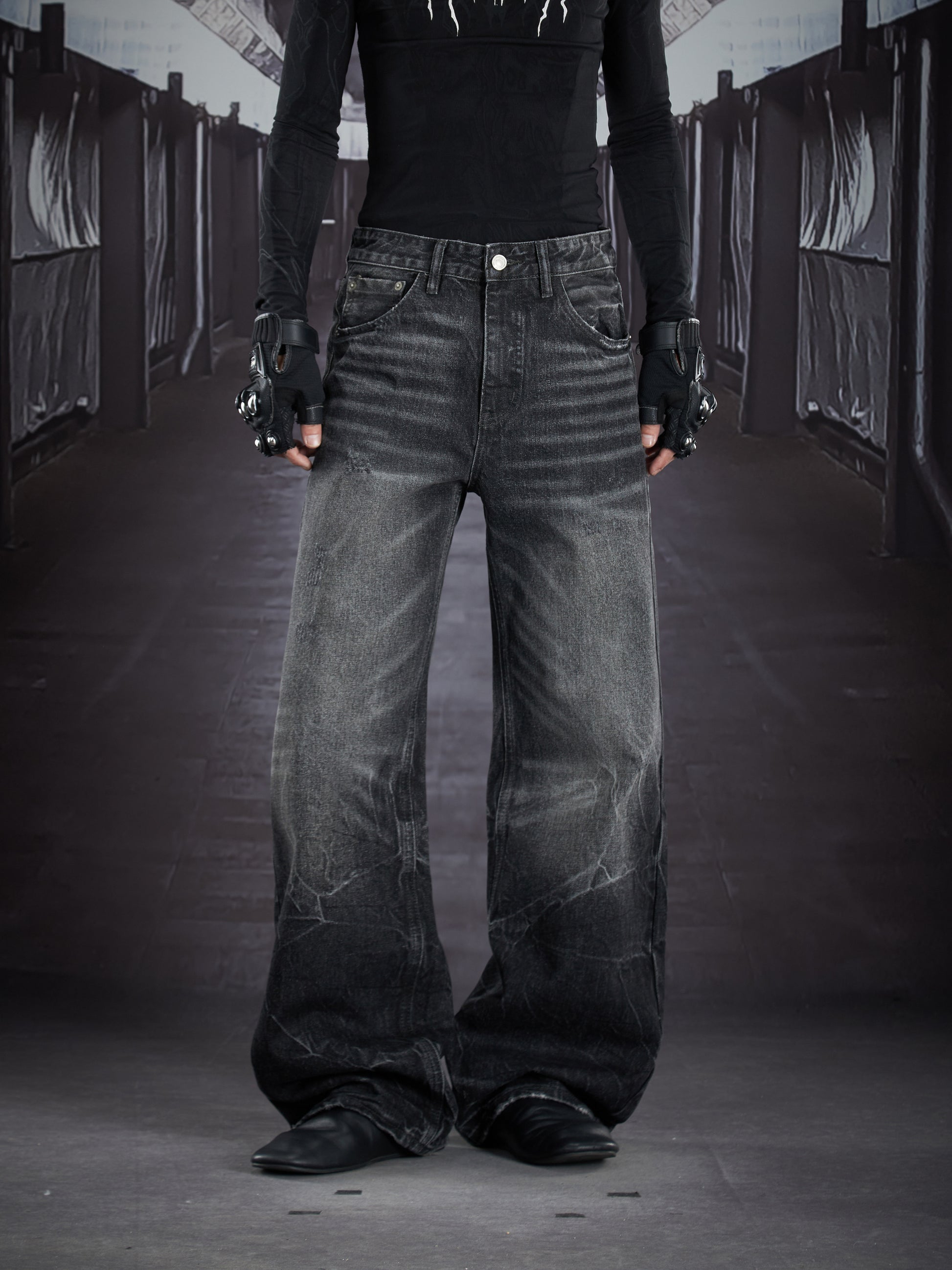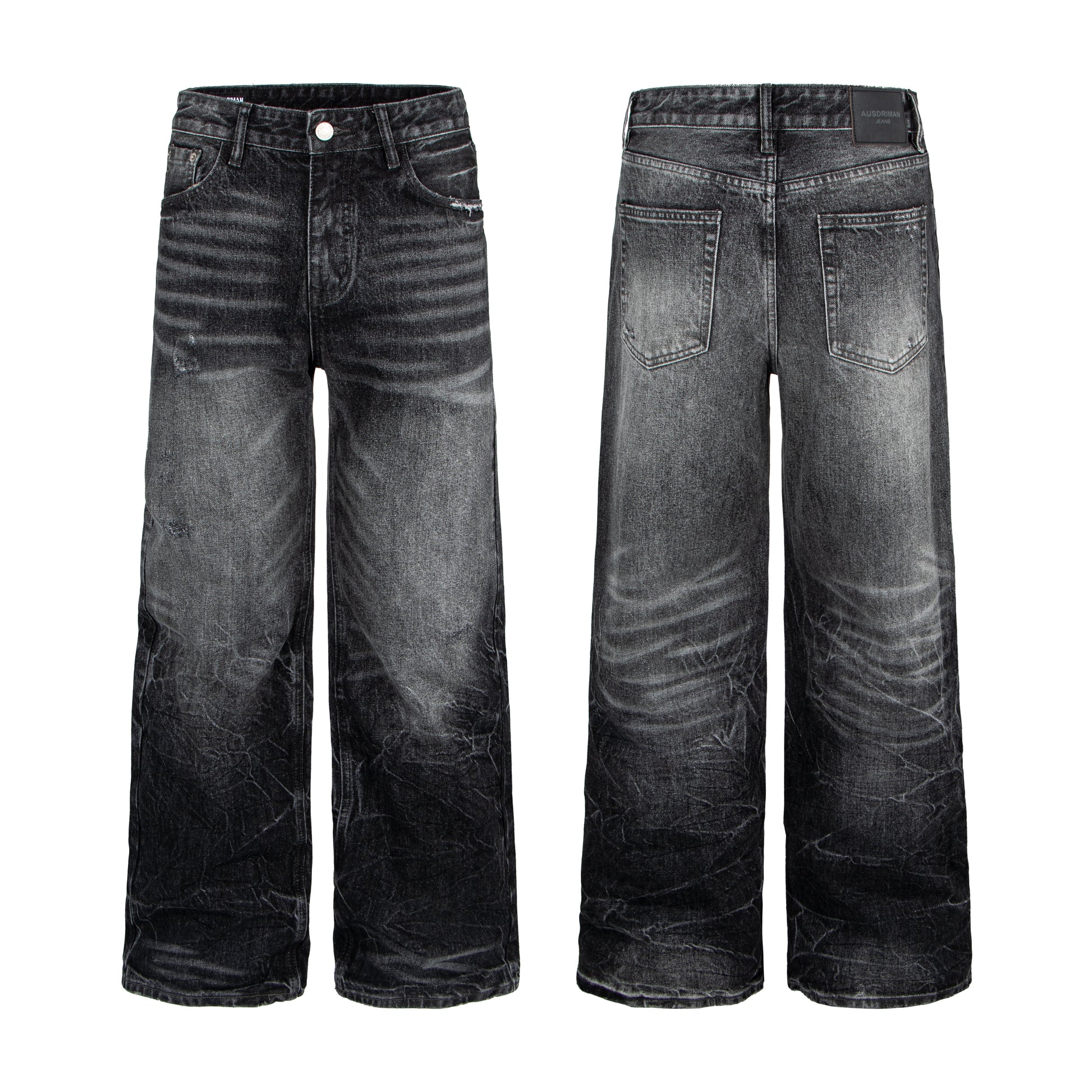 Art Whisker Honeycomb Wash Damage Straight Denim Jeans WN22902