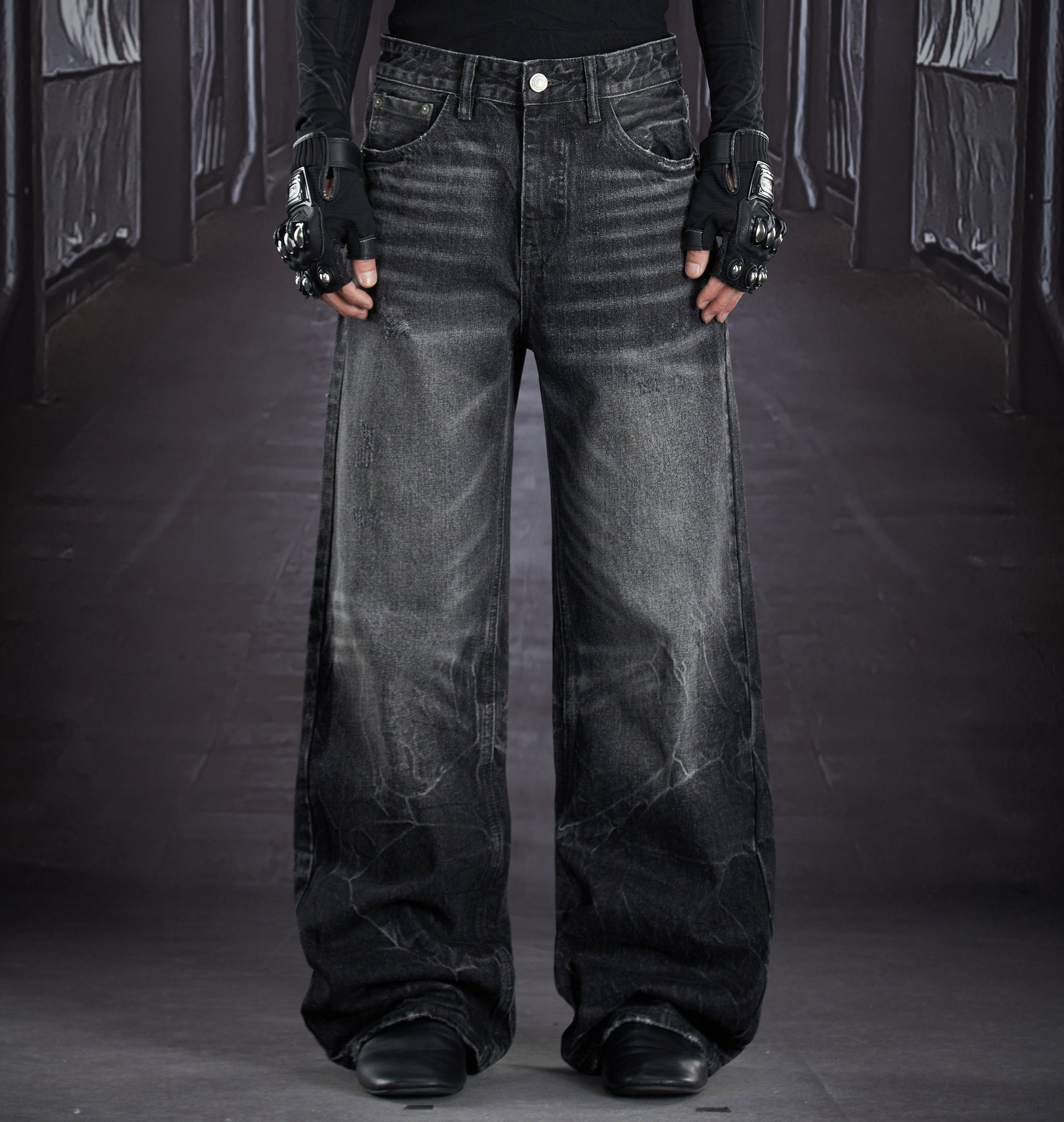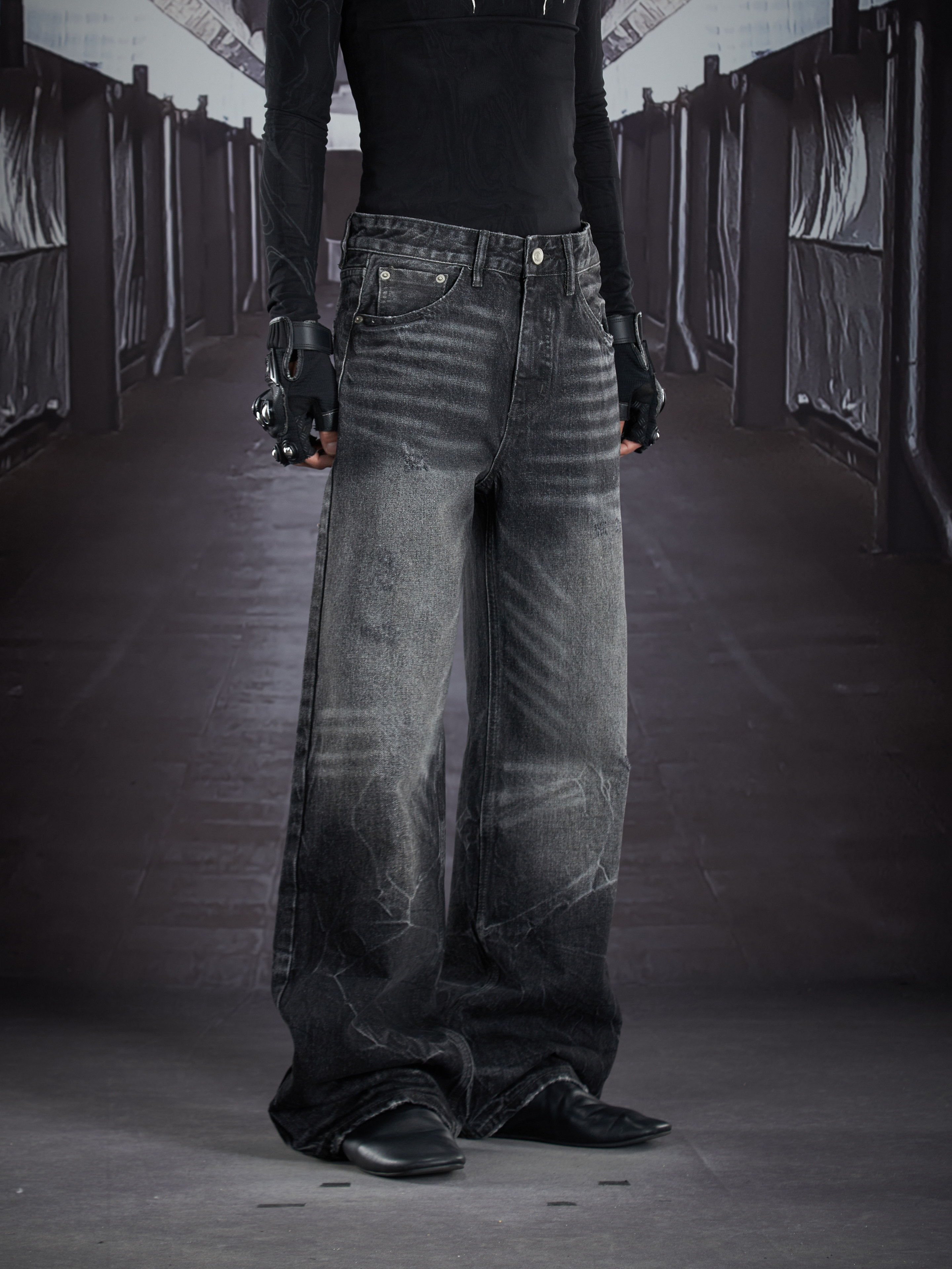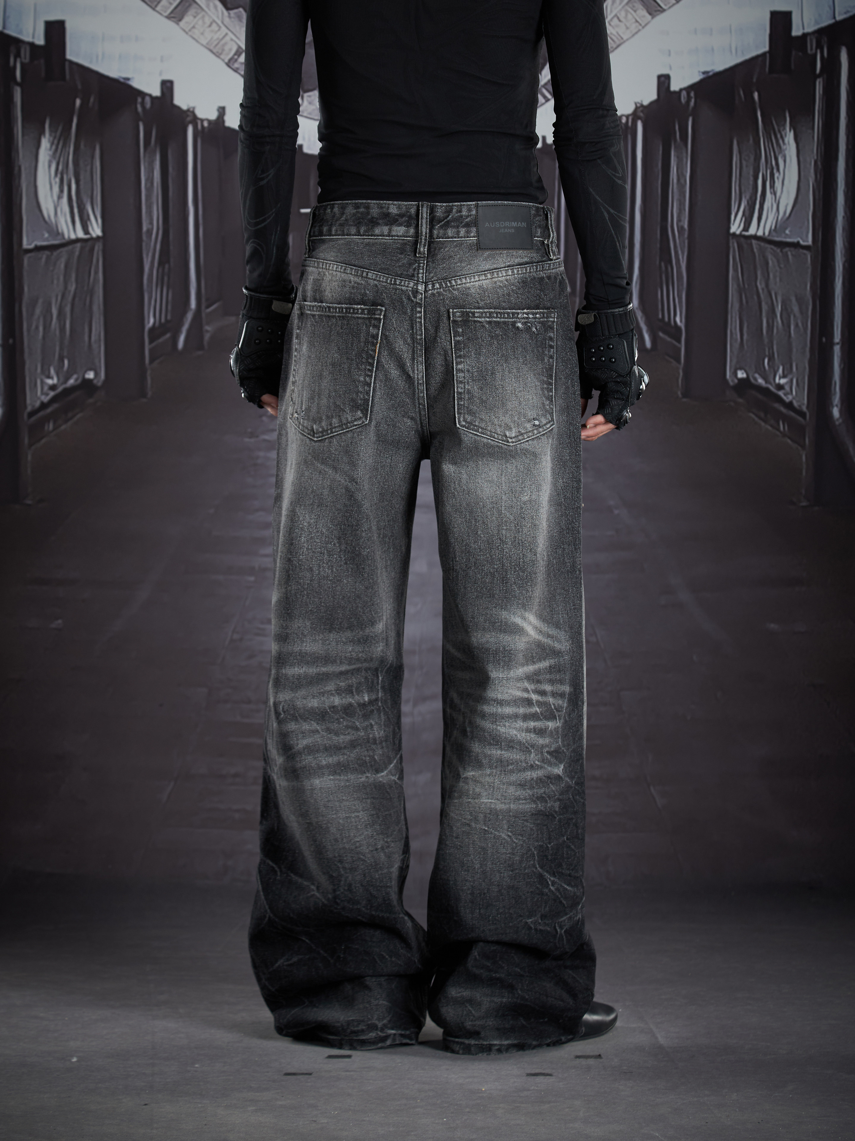 Art Whisker Honeycomb Wash Damage Straight Denim Jeans WN22902