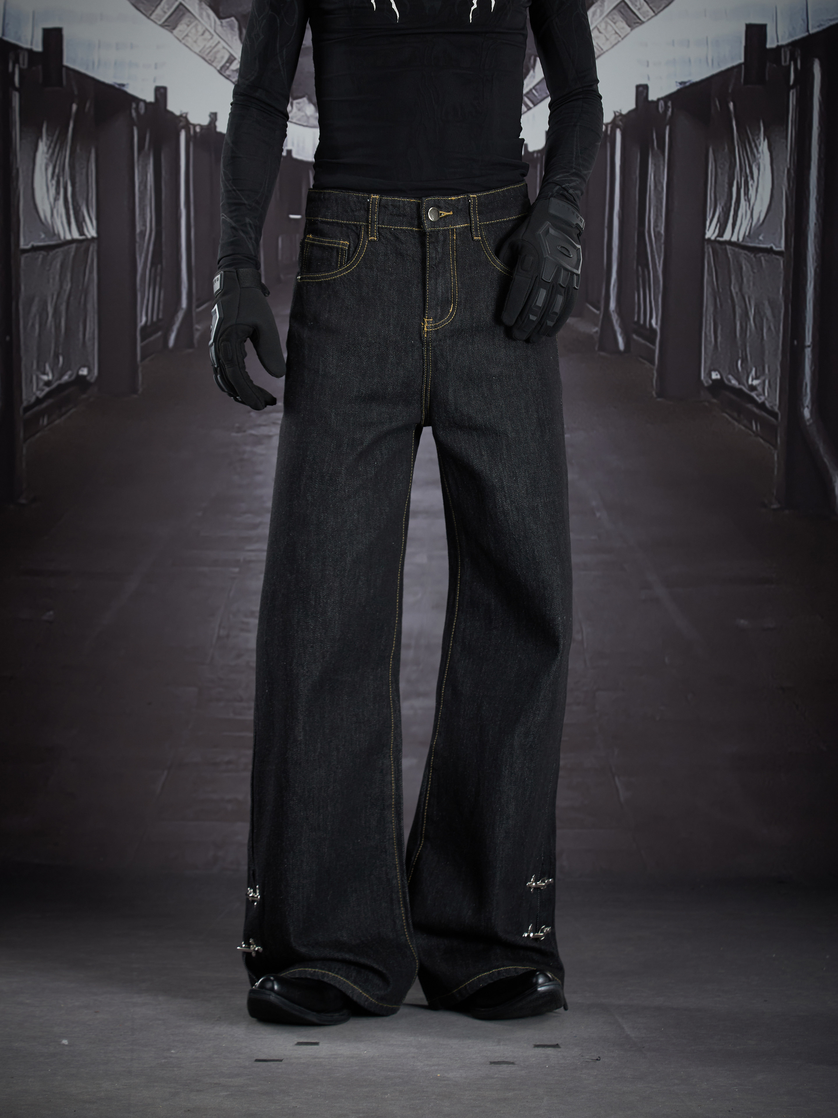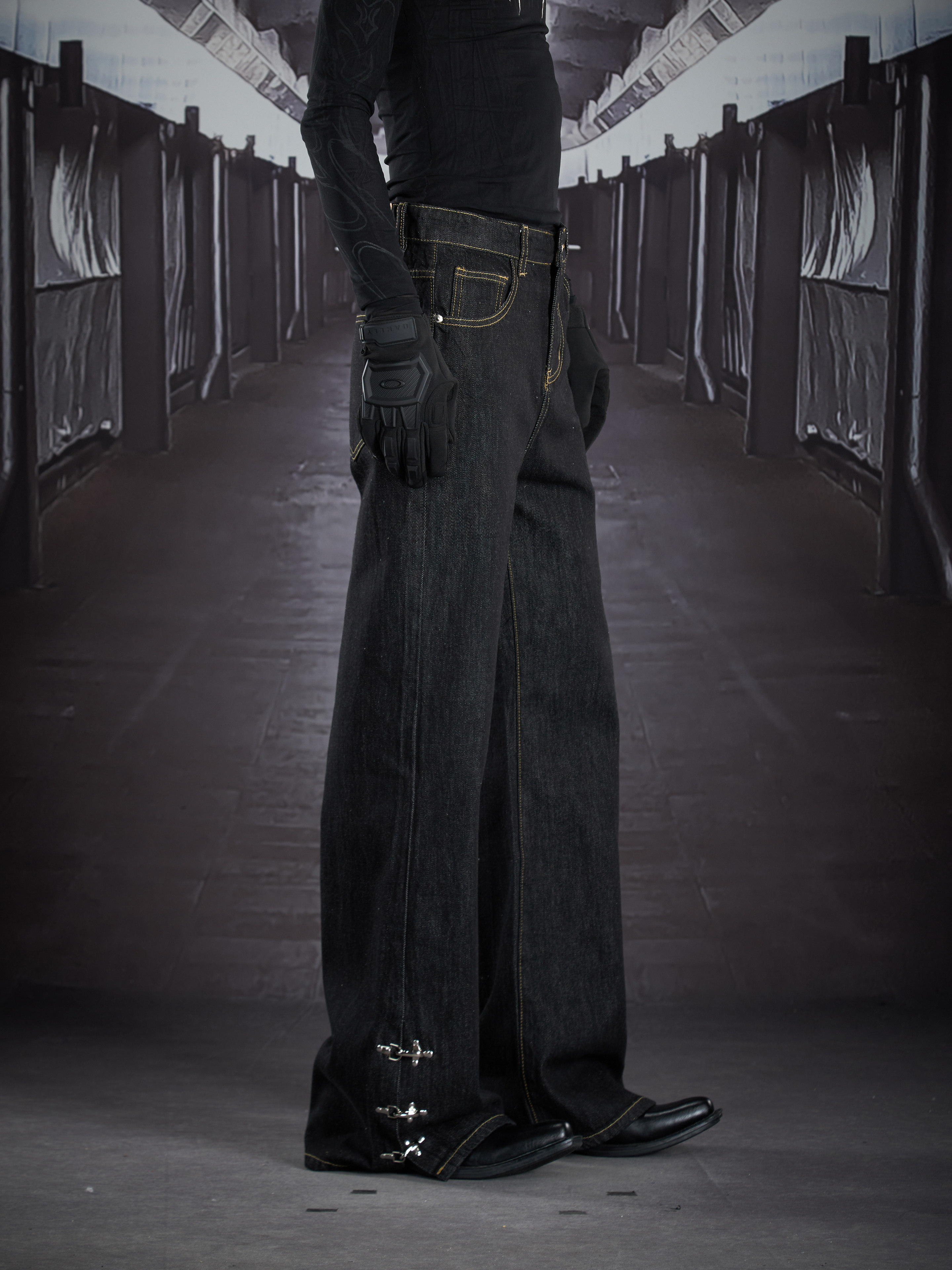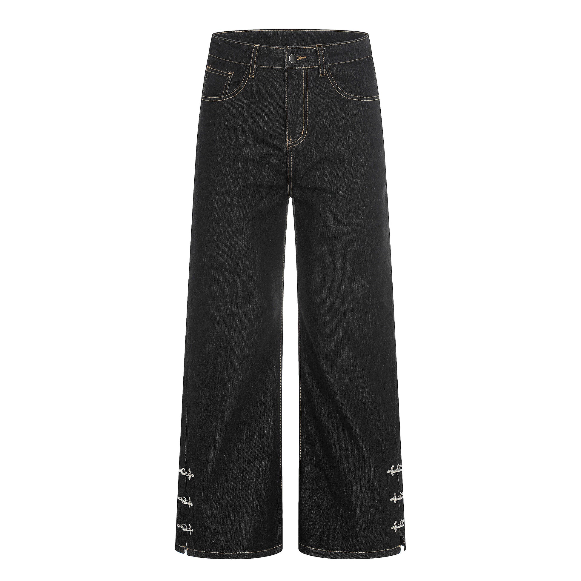 Metal Buckle Topstitch Straight Denim Jeans WN22905