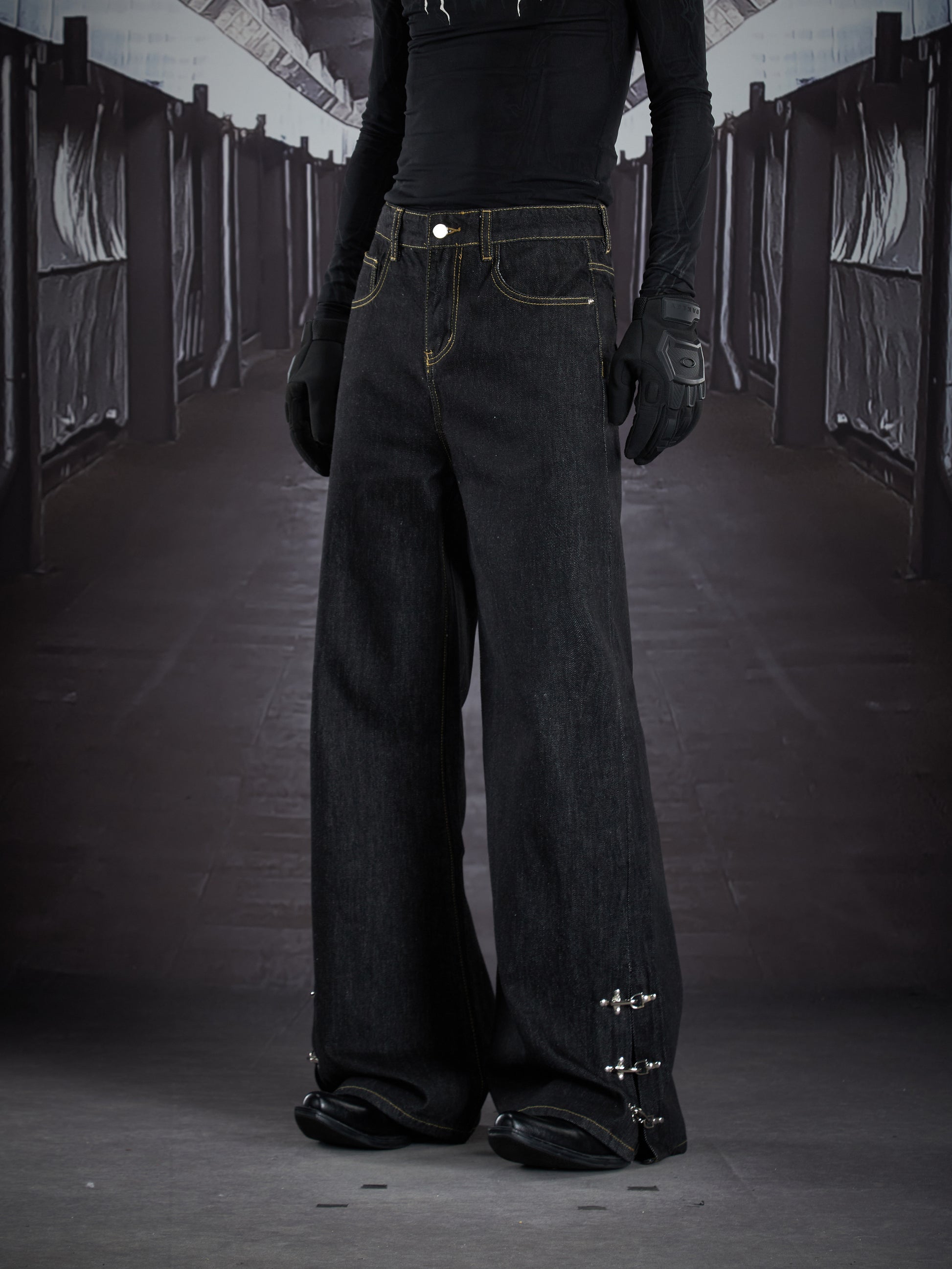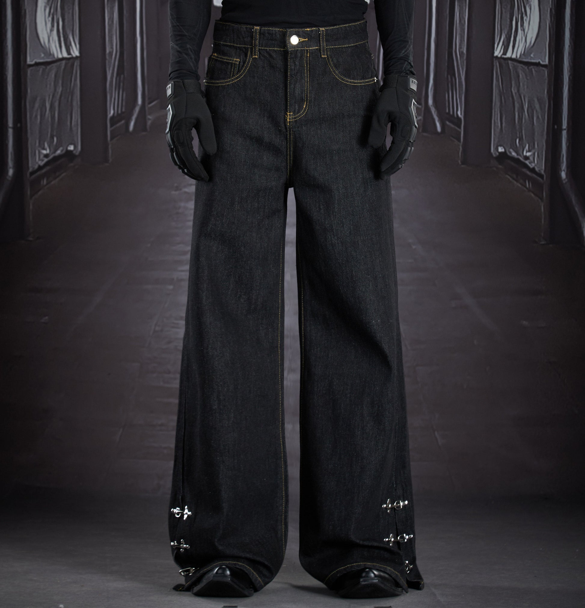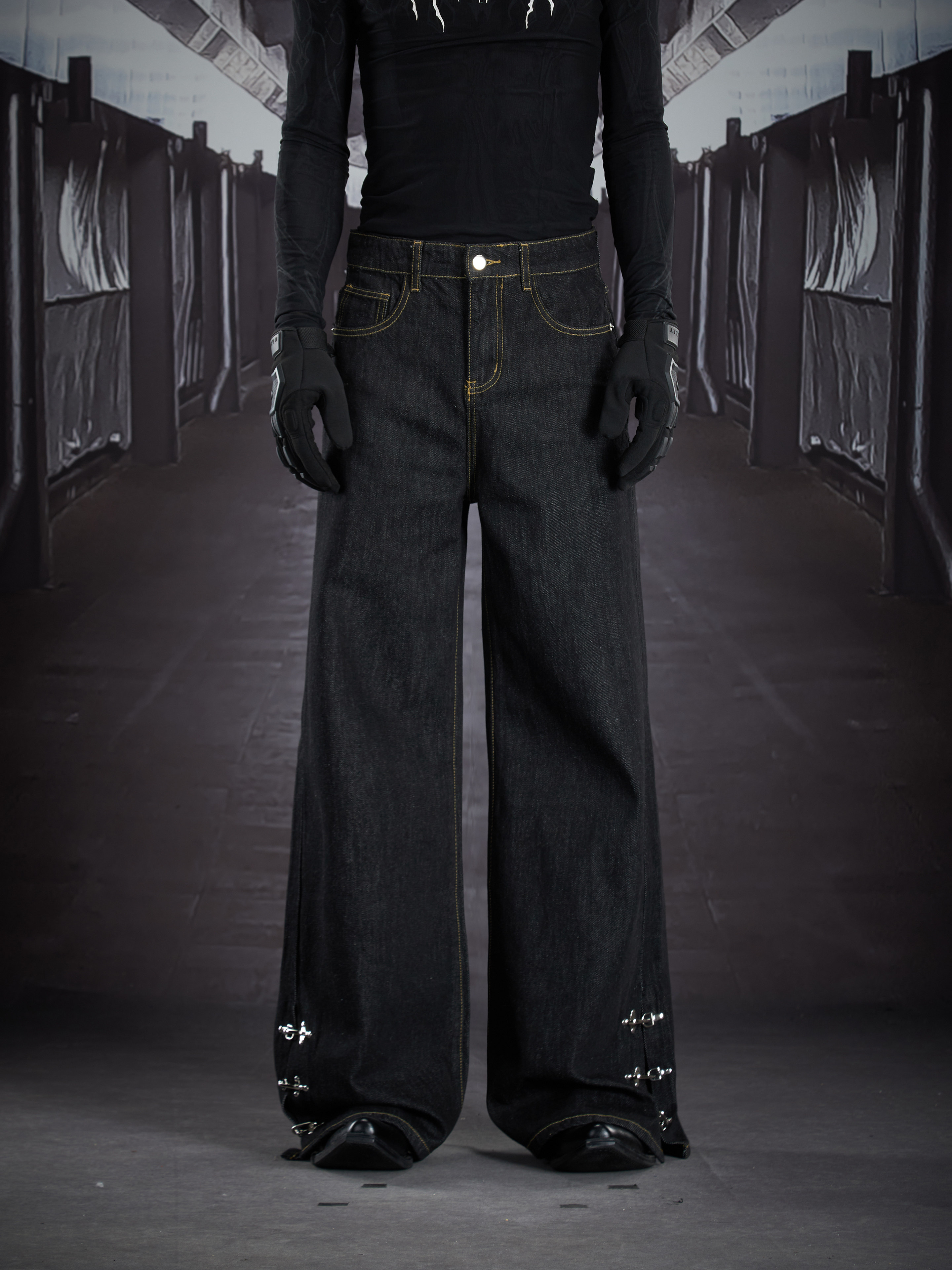 Metal Buckle Topstitch Straight Denim Jeans WN22905
