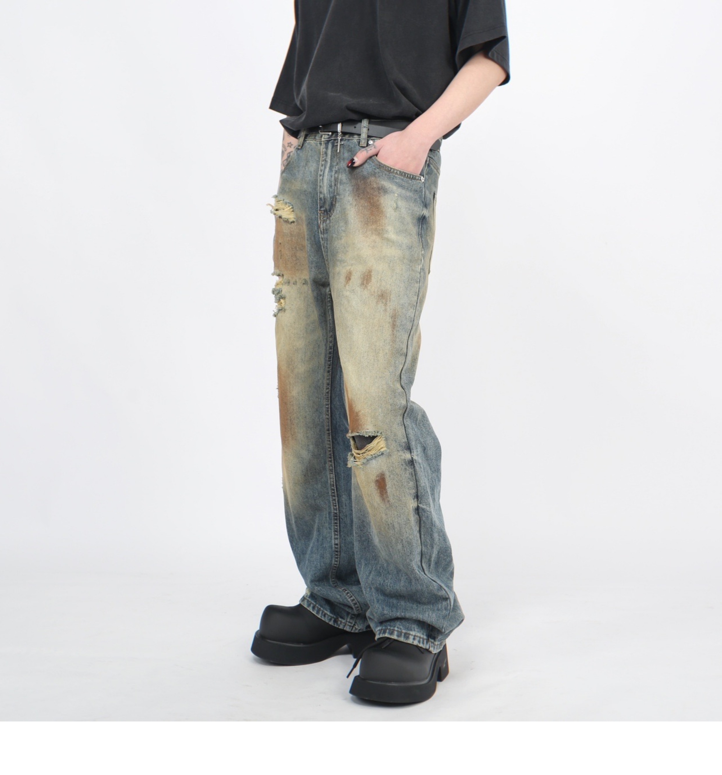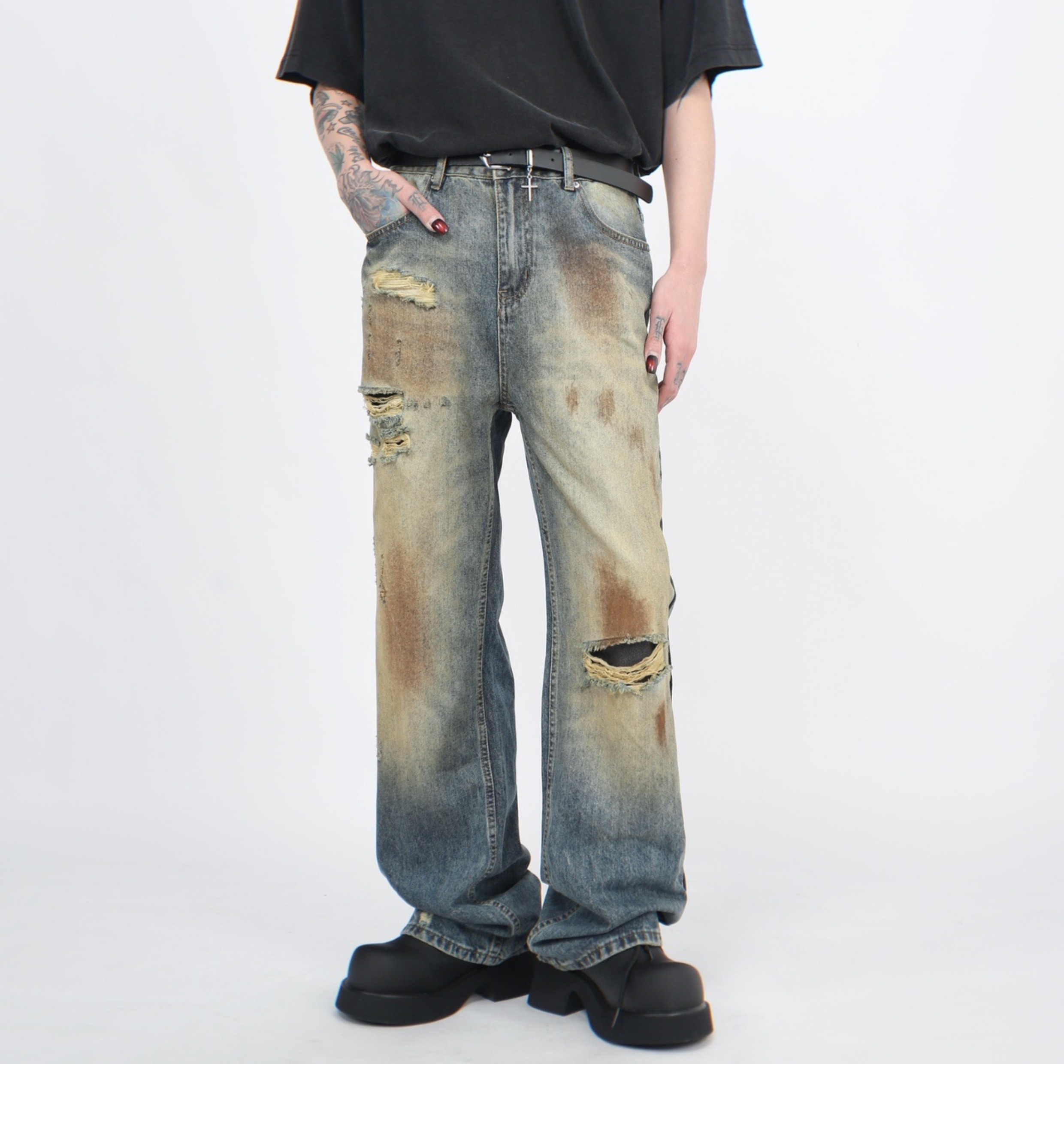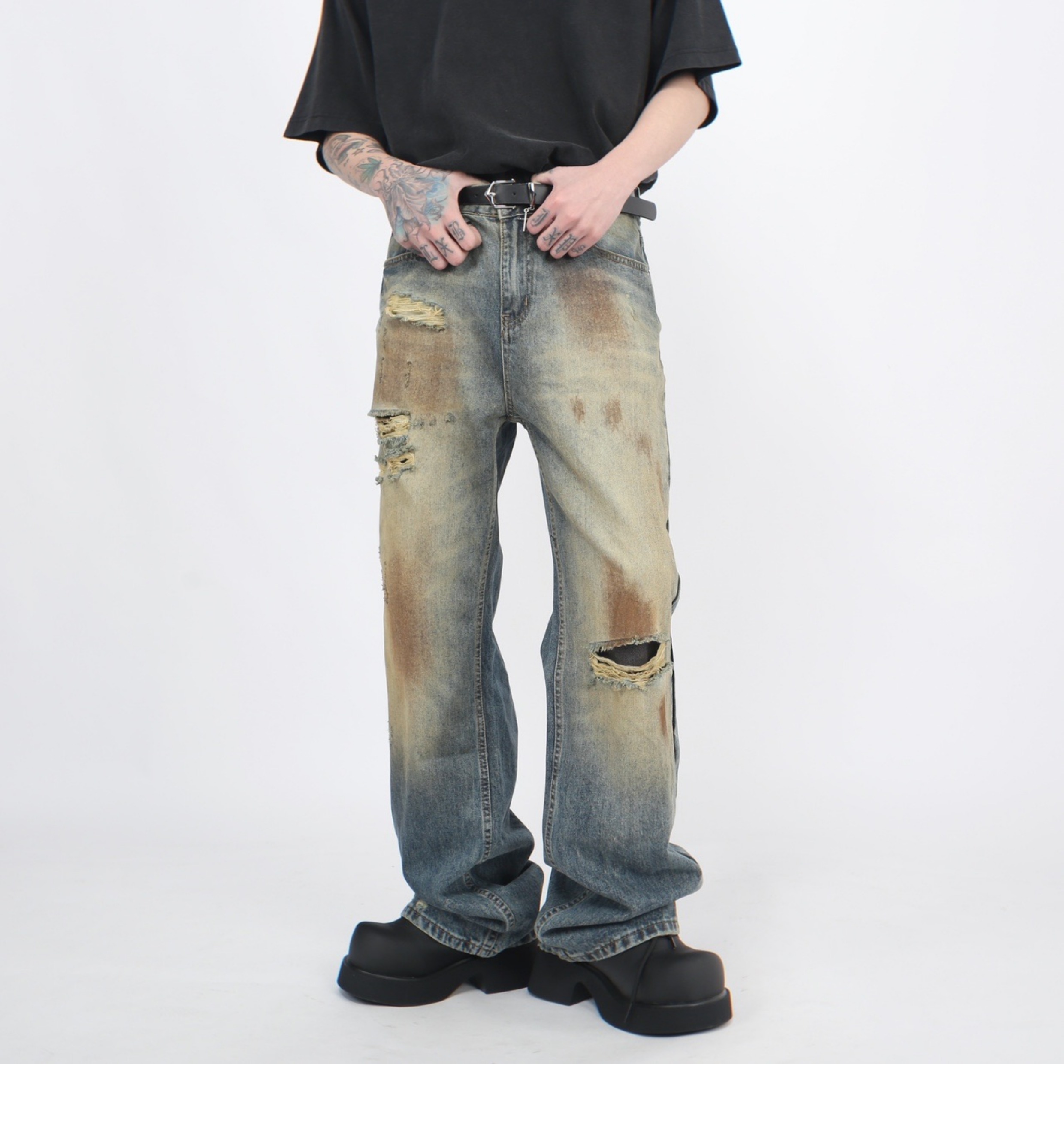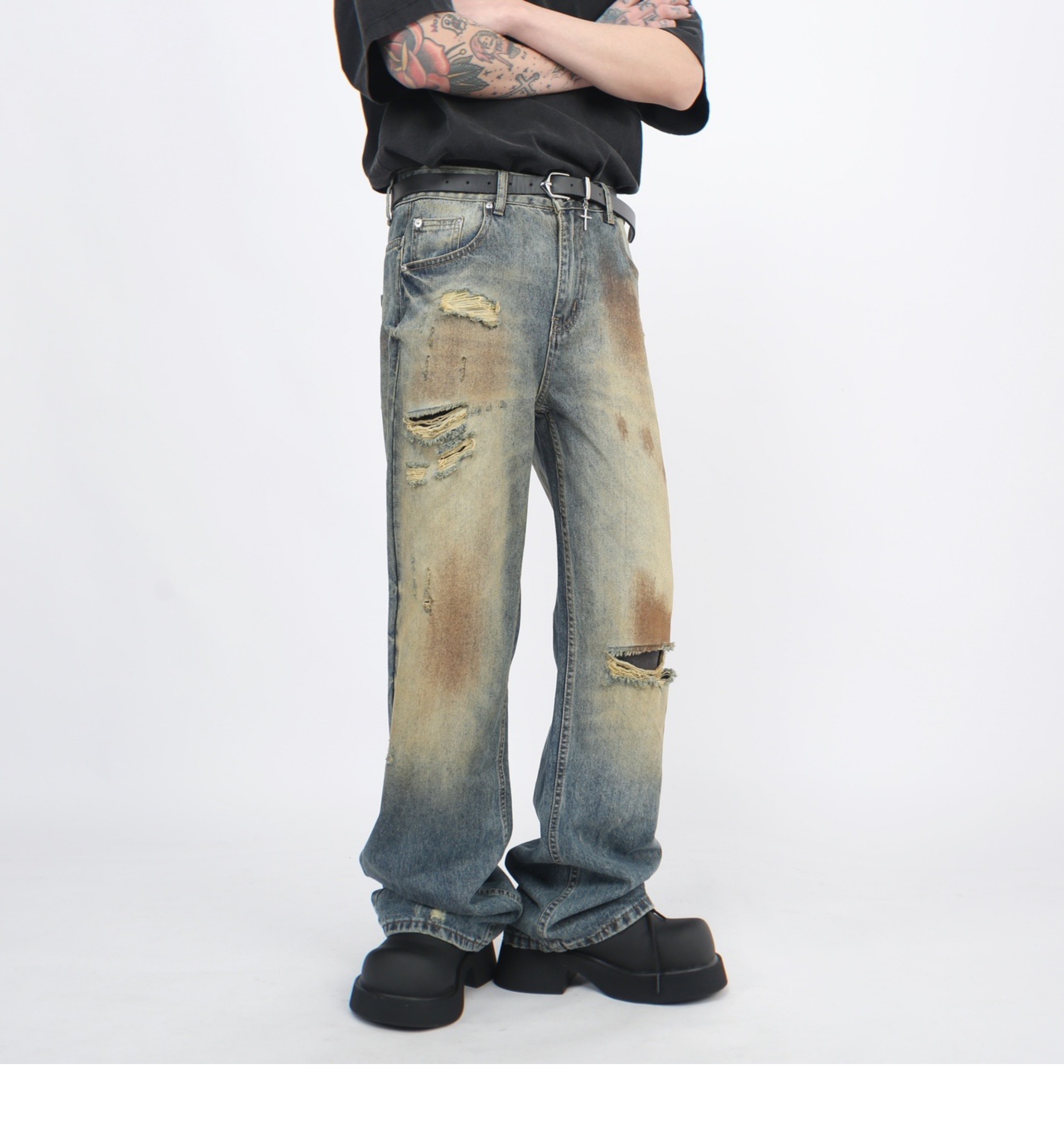 Wash Damaged Straight Denim Jeans WN5244