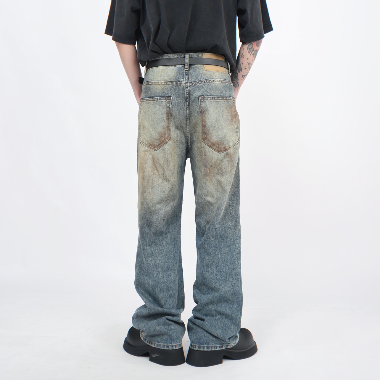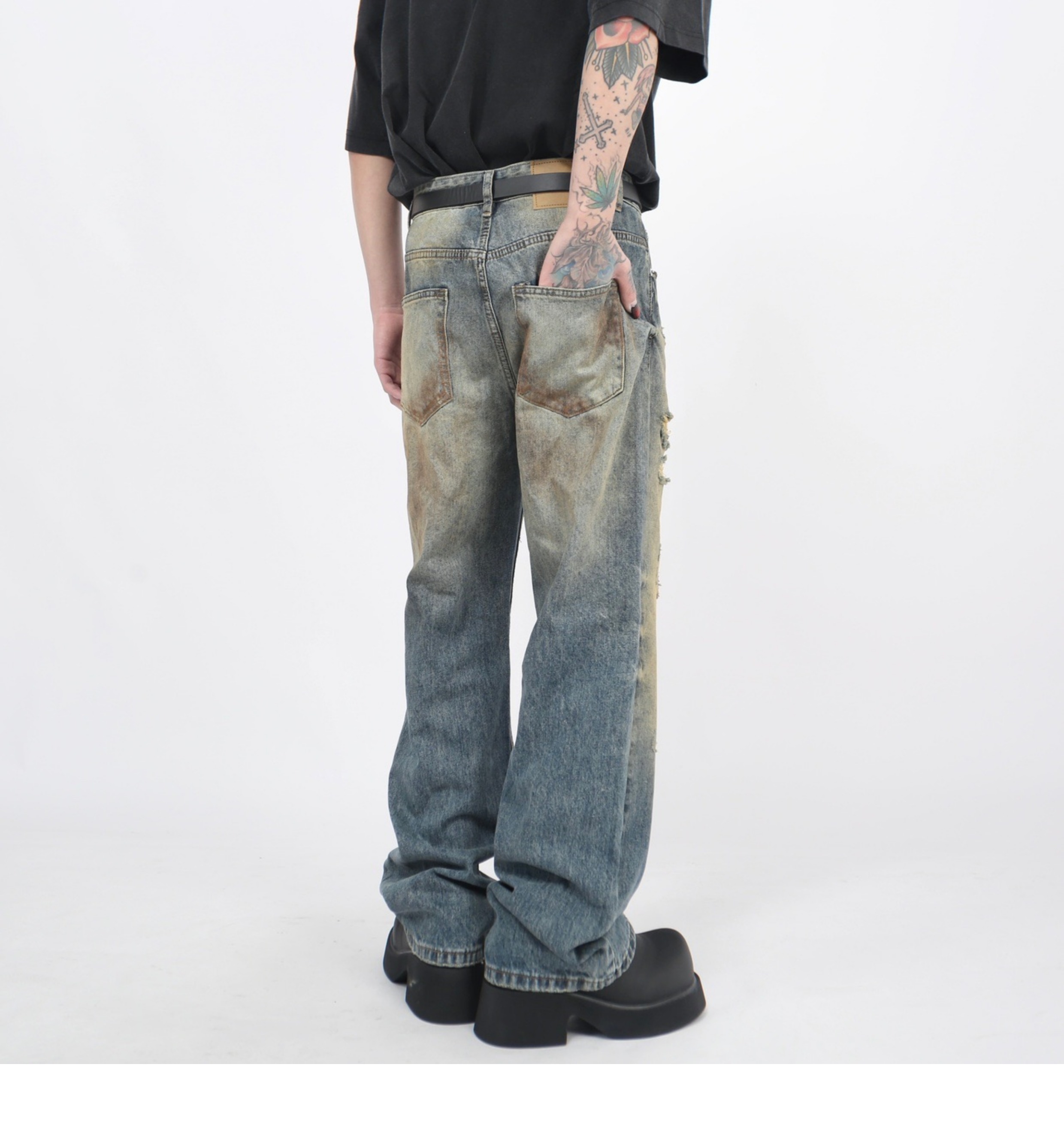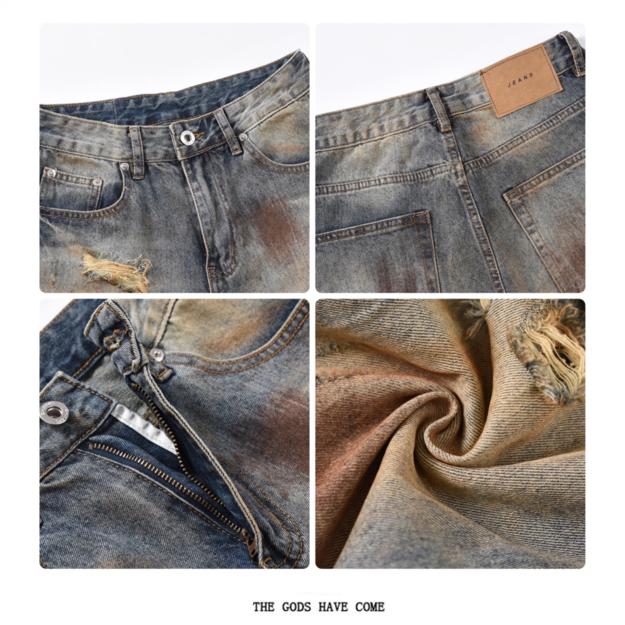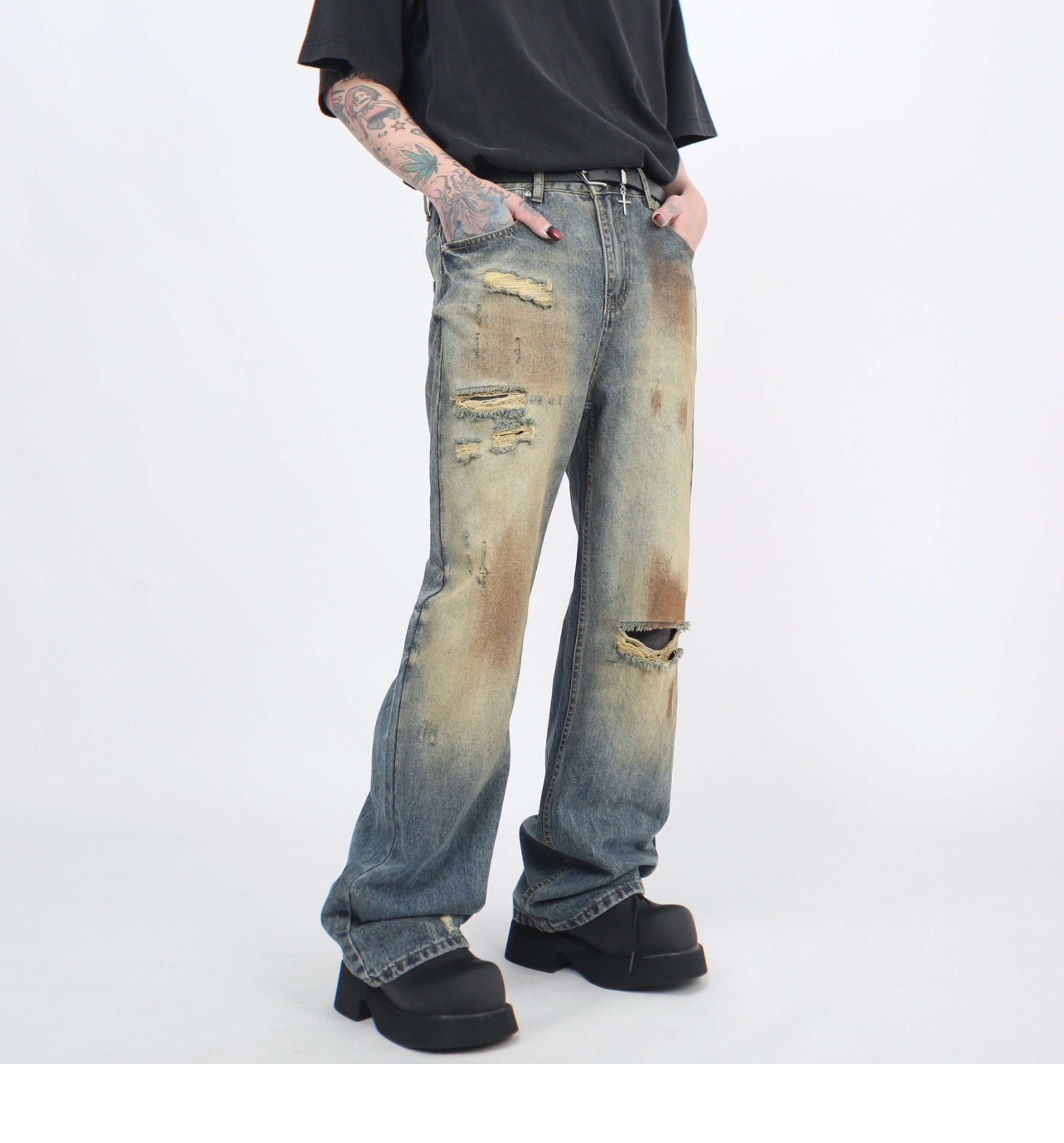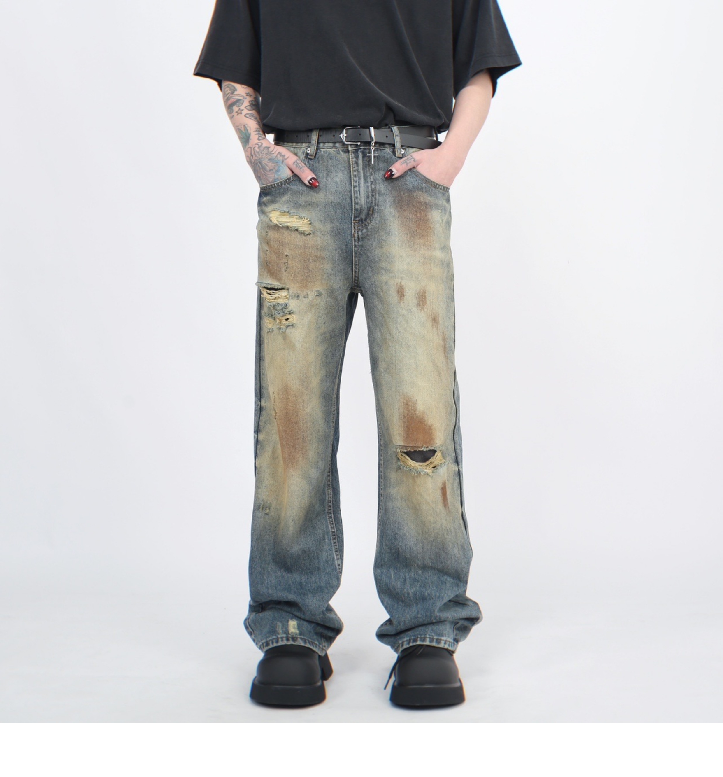 Wash Damaged Straight Denim Jeans WN5244