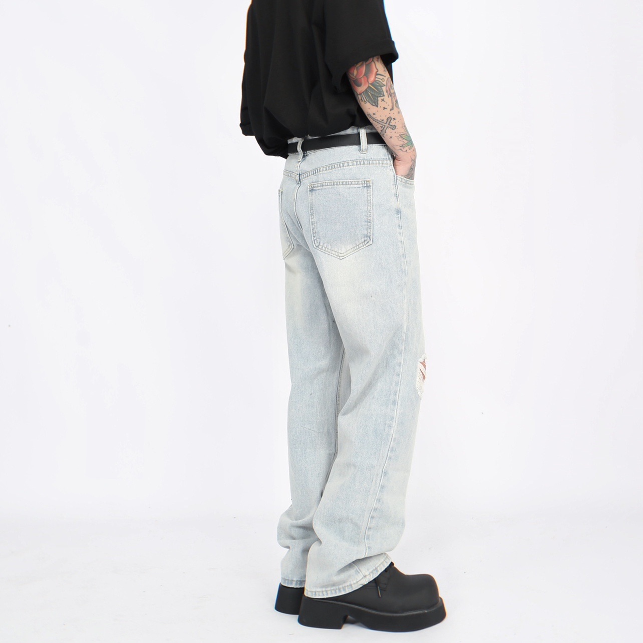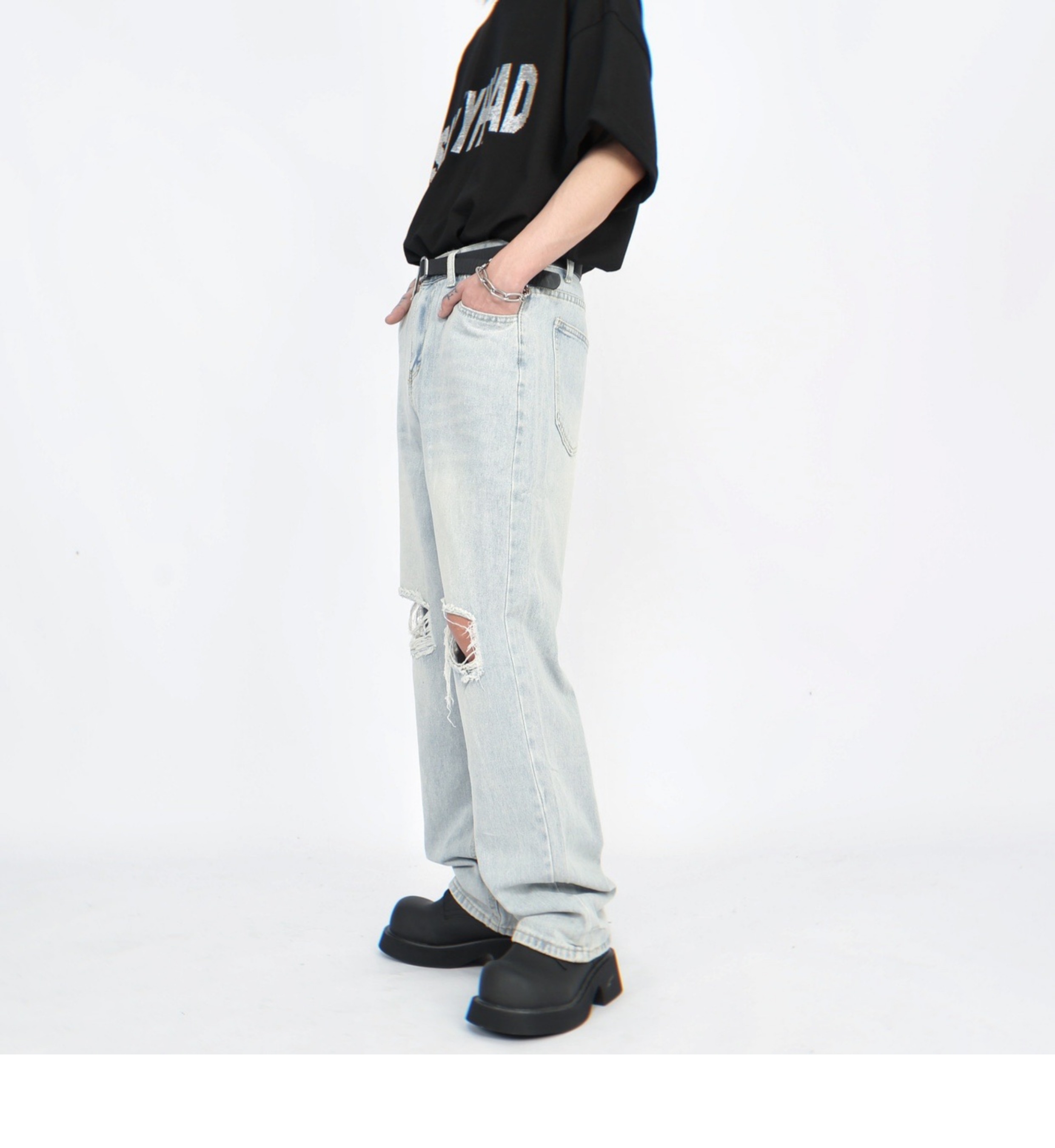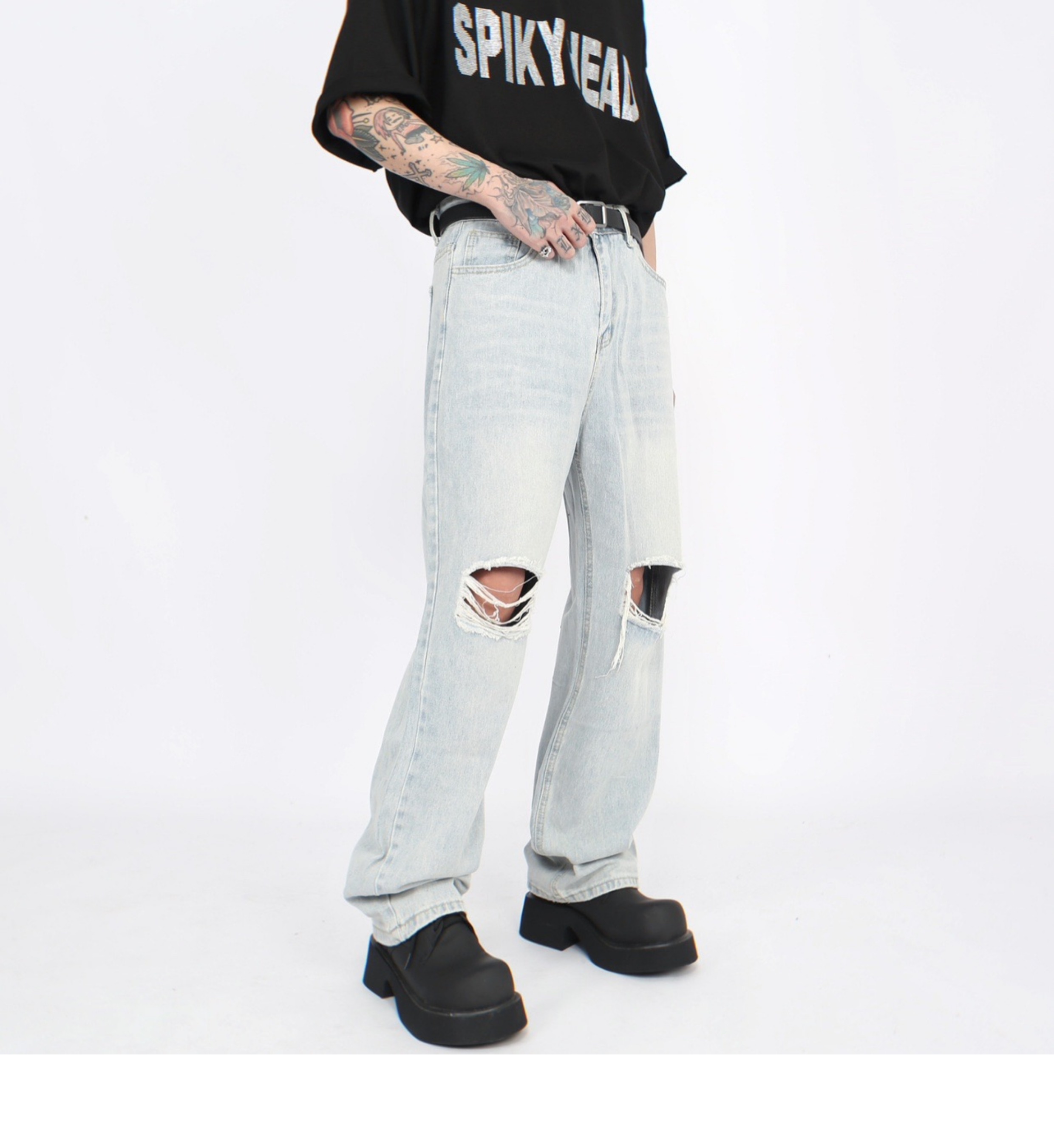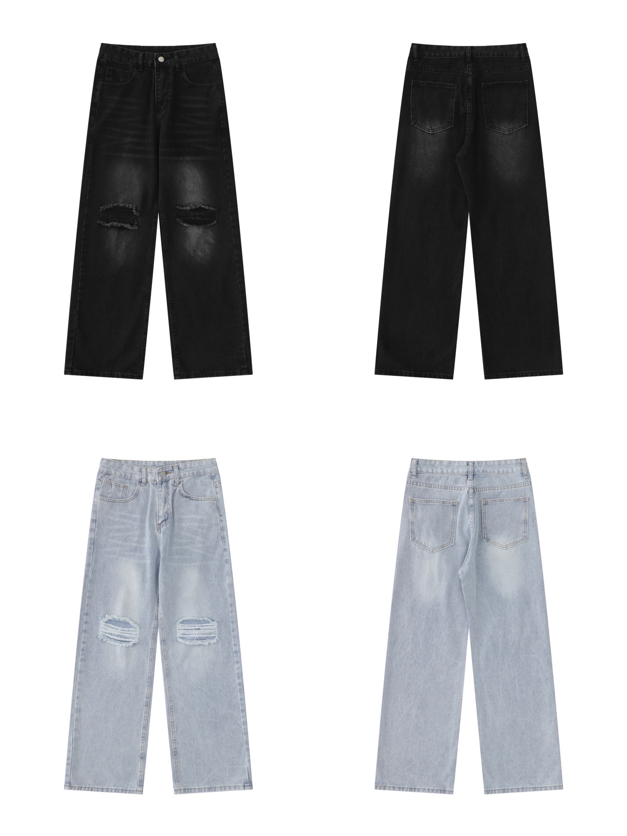 Damage Straight Denim Jeans WN5272