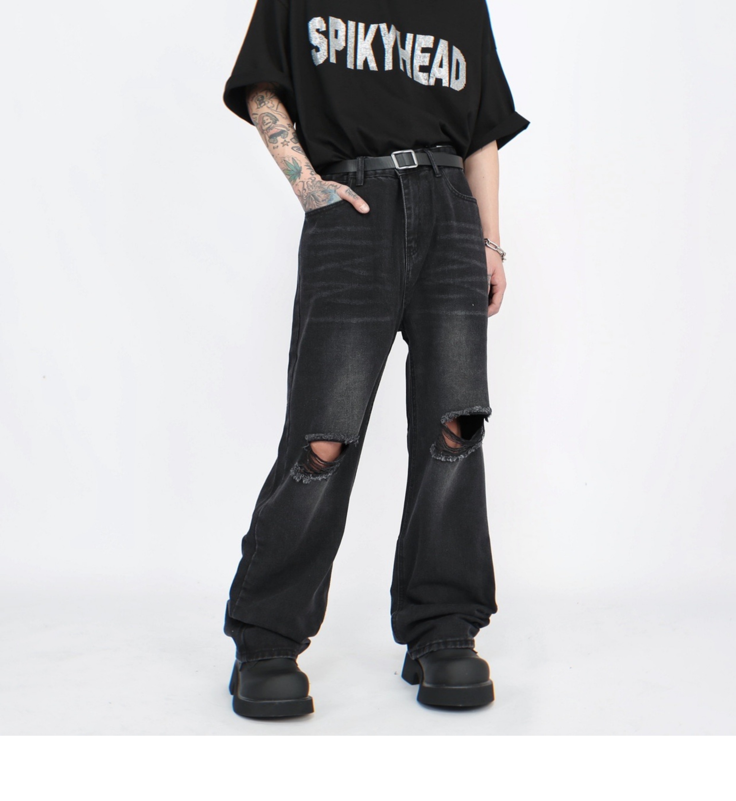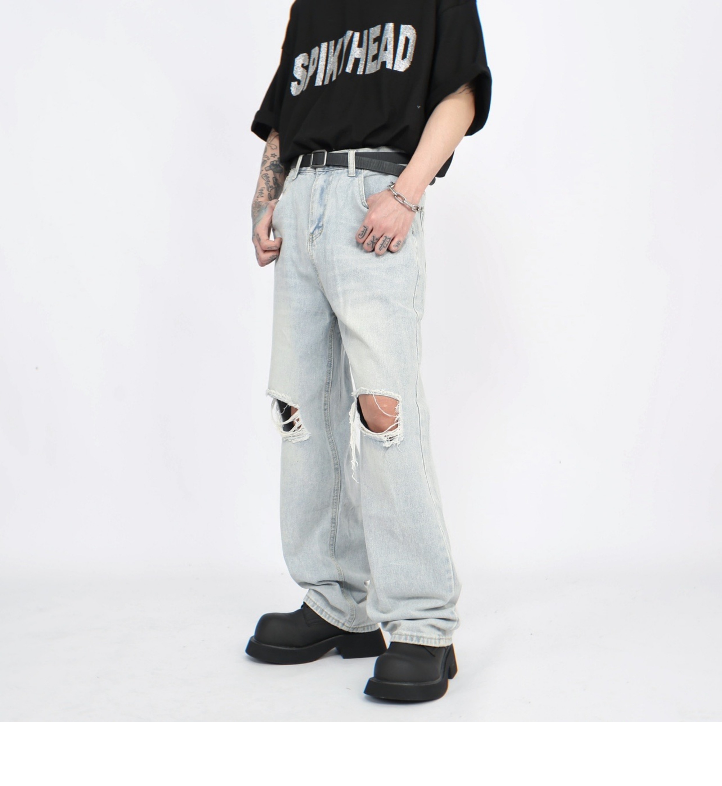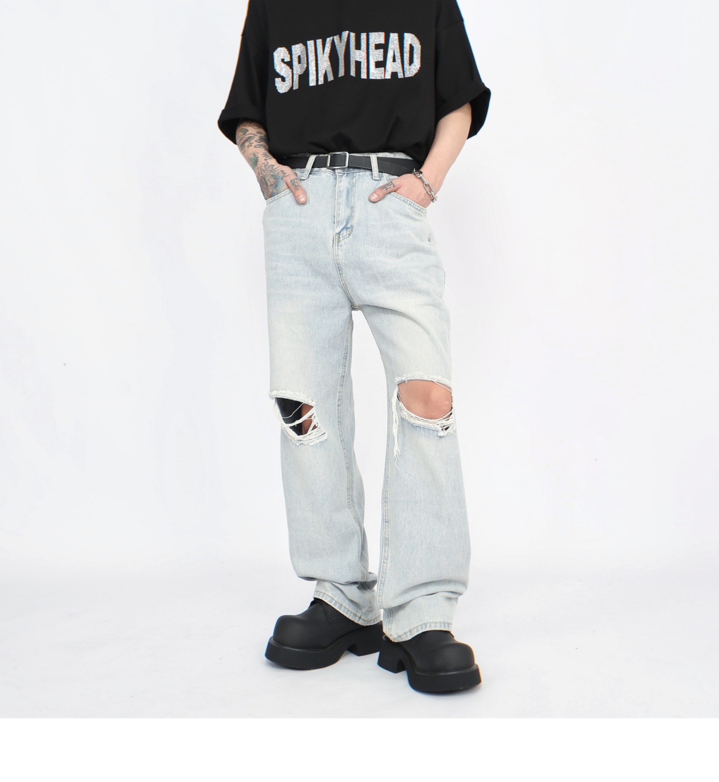 Damage Straight Denim Jeans WN5272