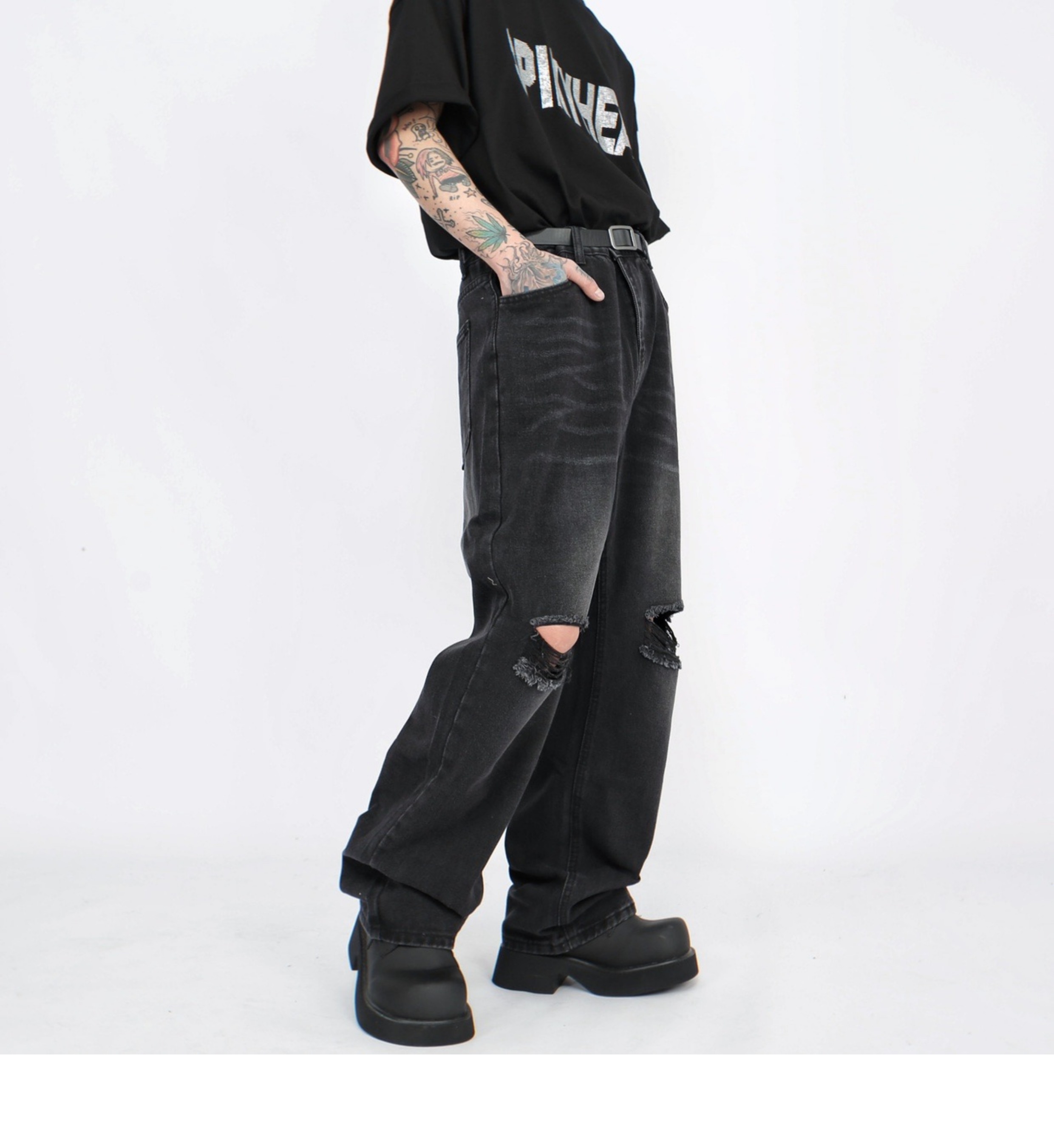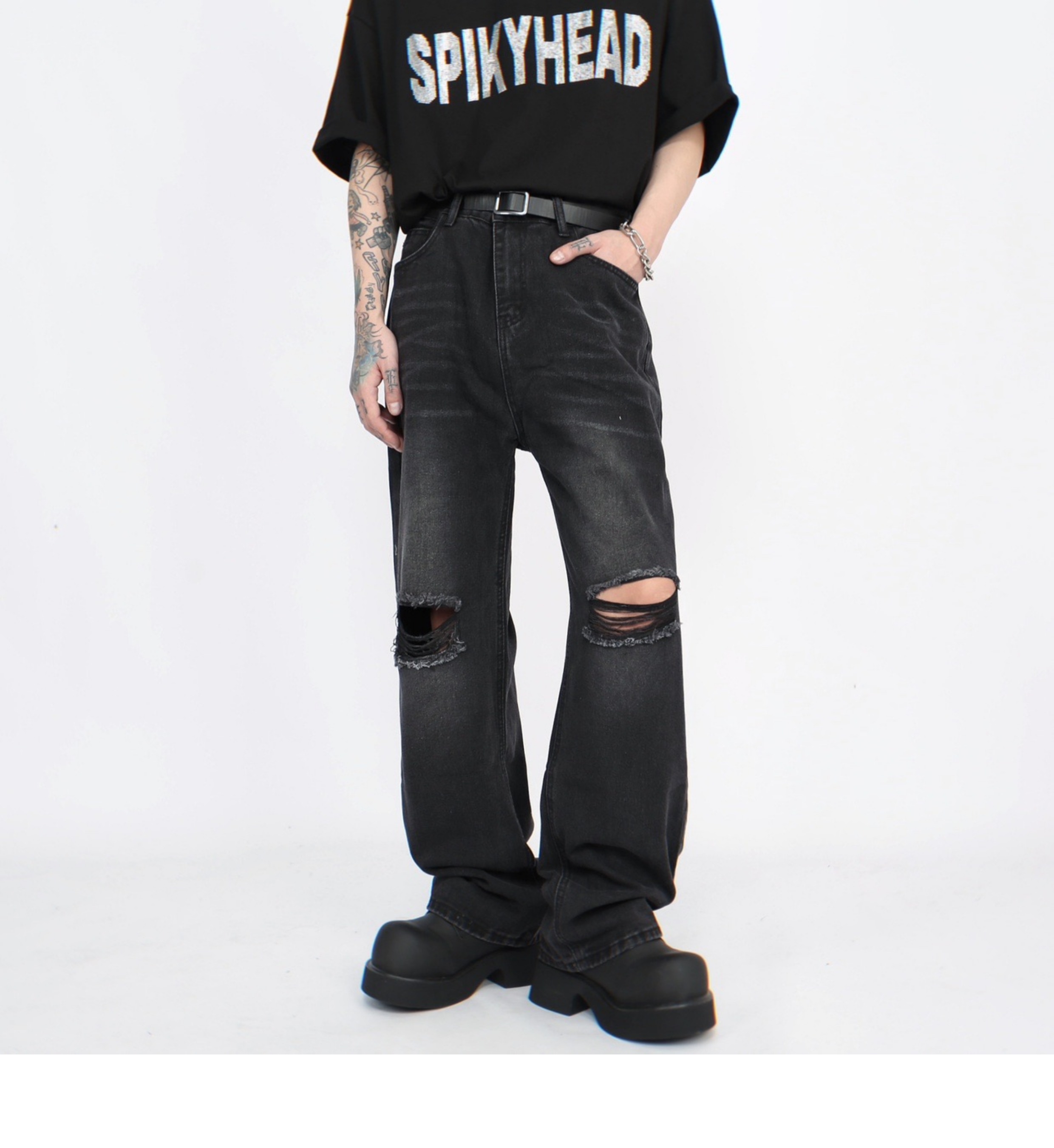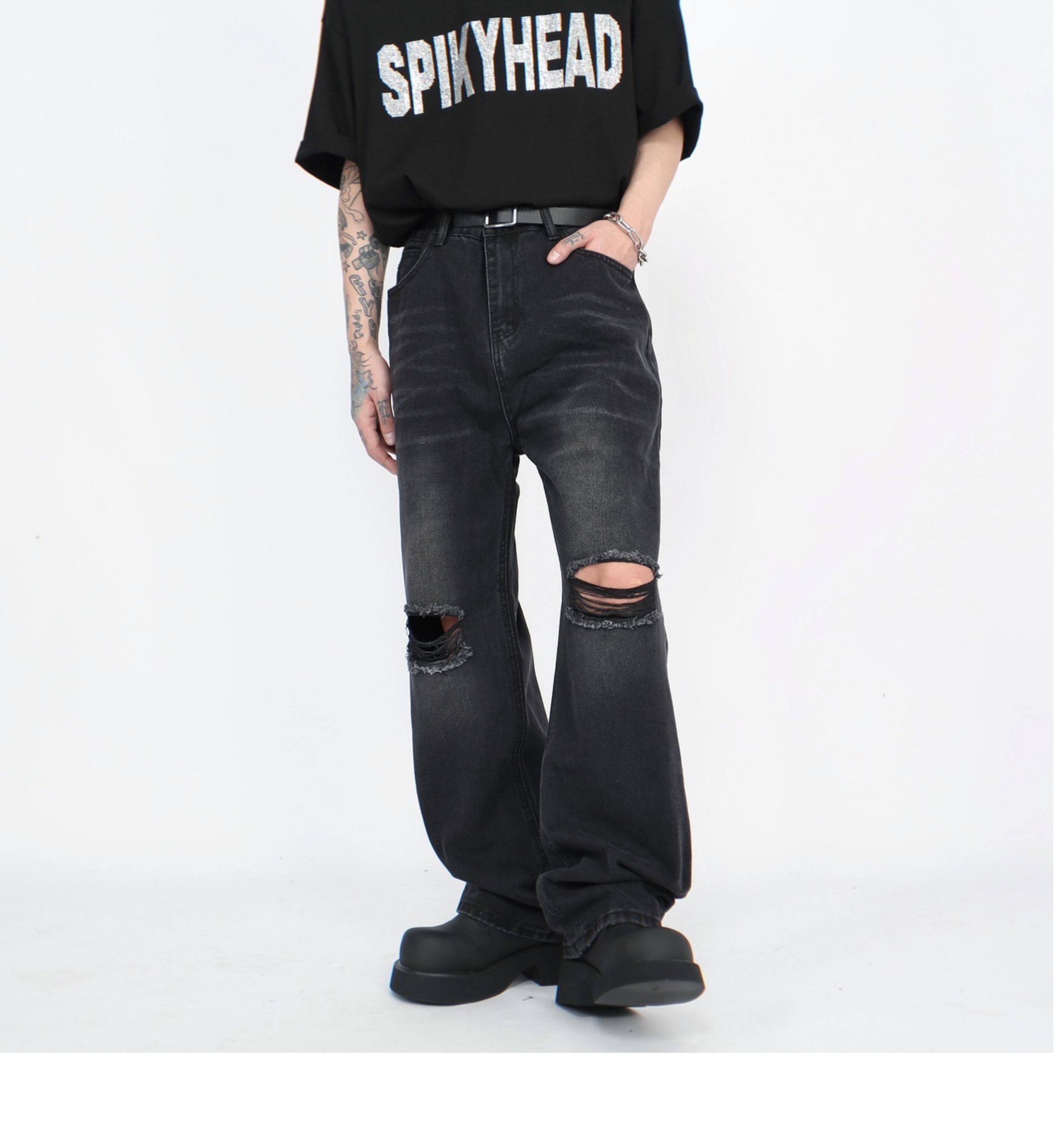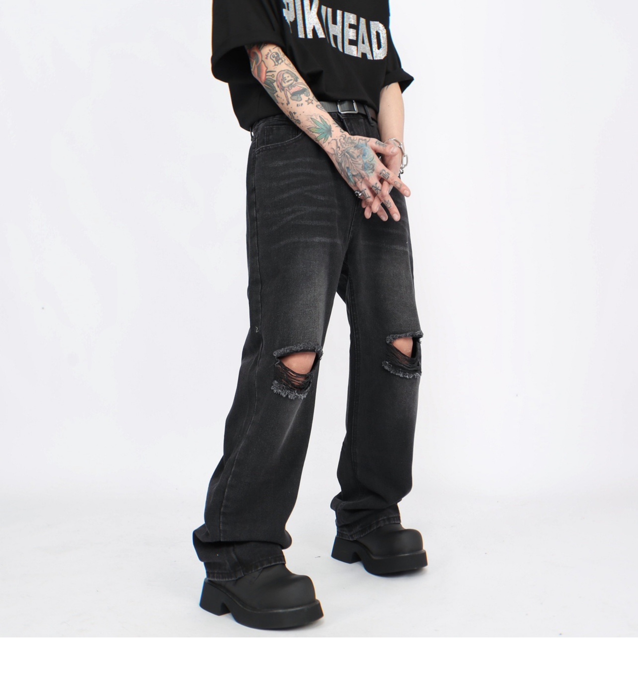 Damage Straight Denim Jeans WN5272