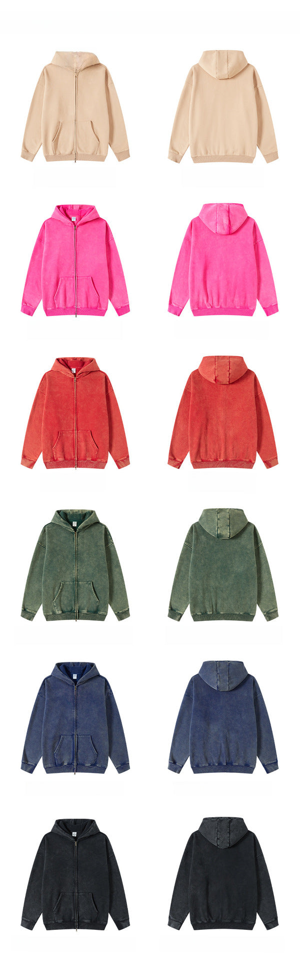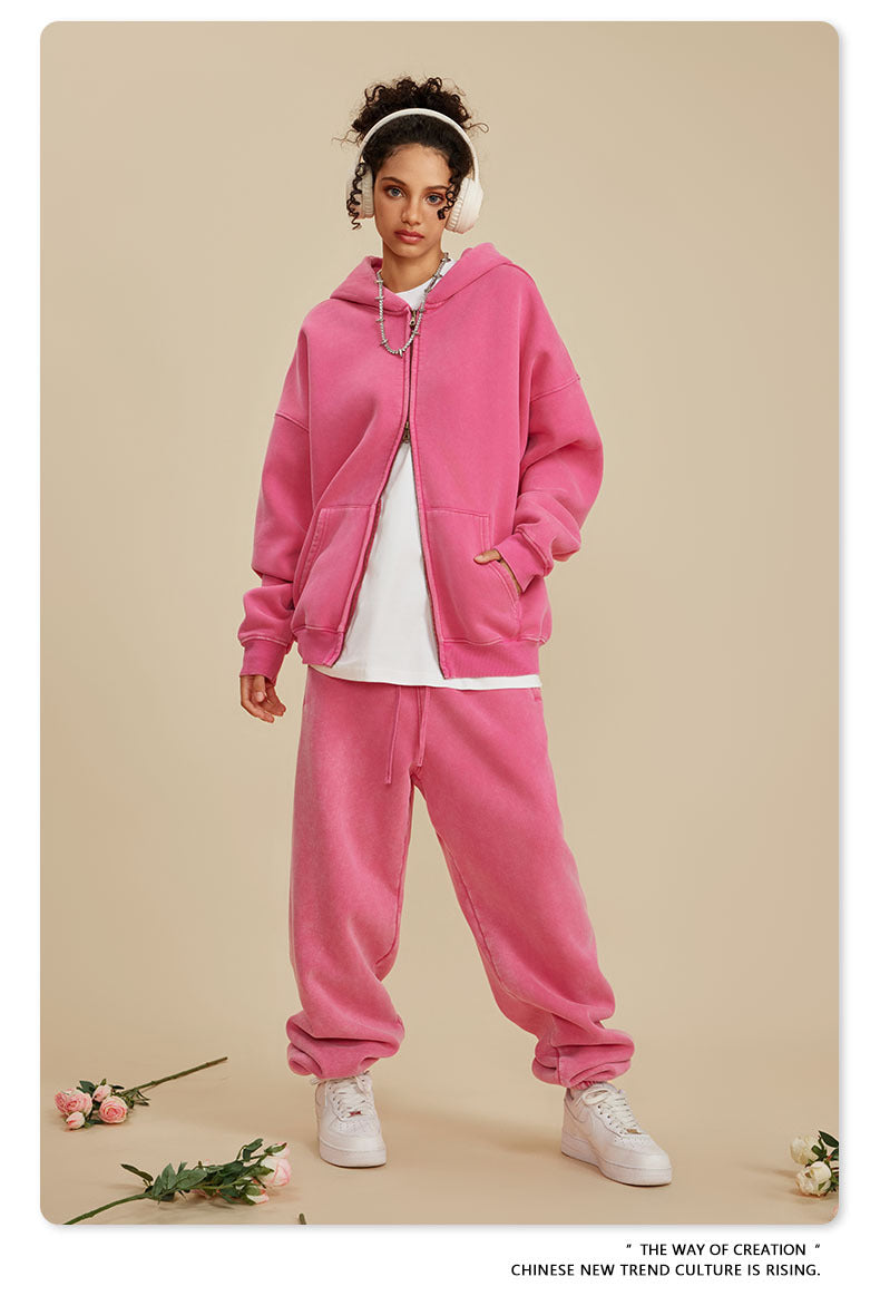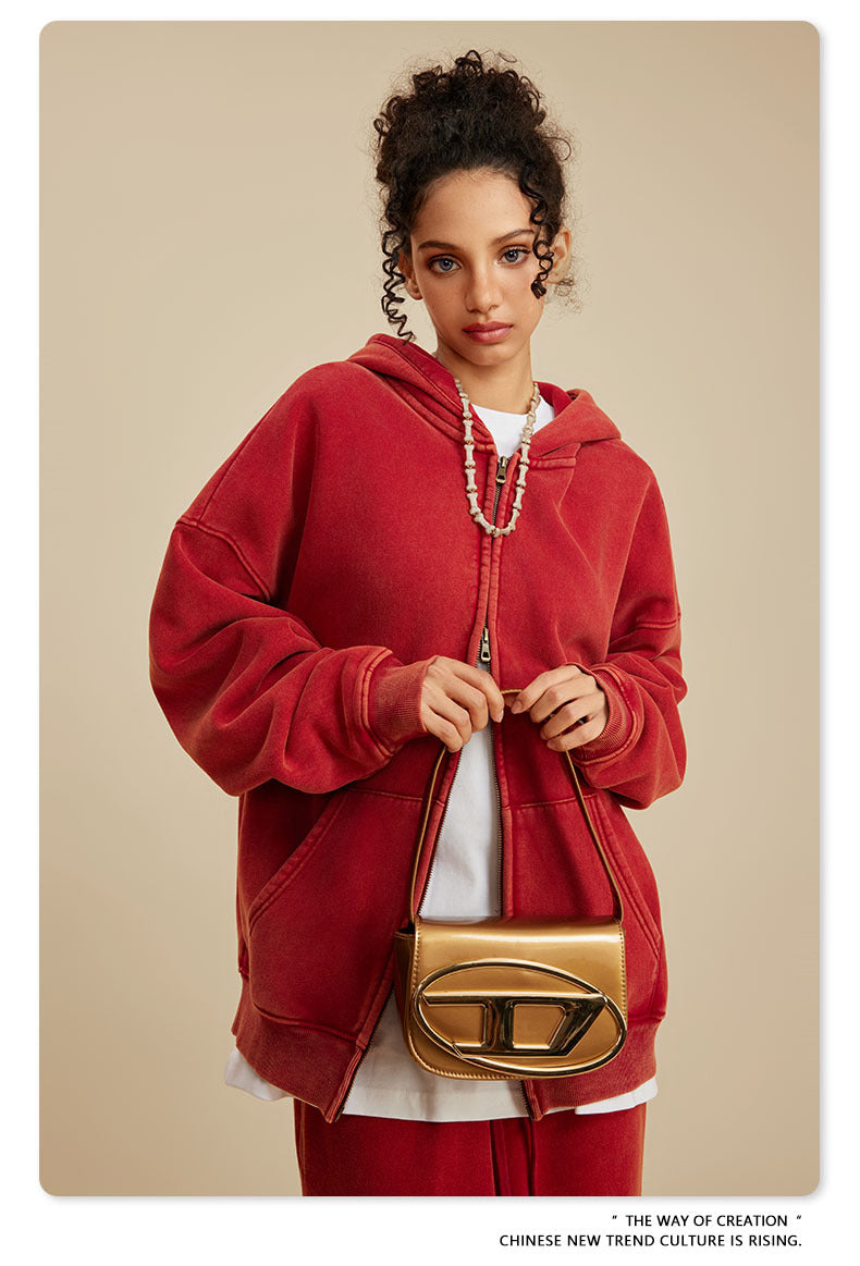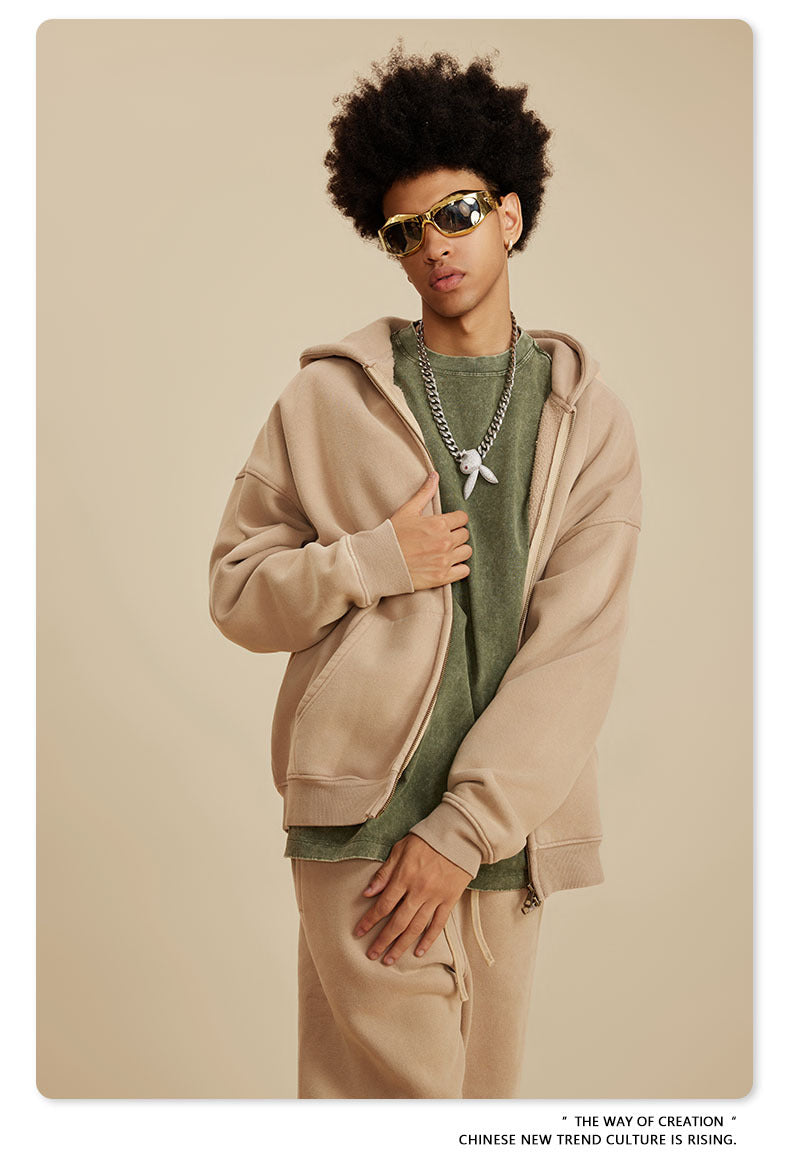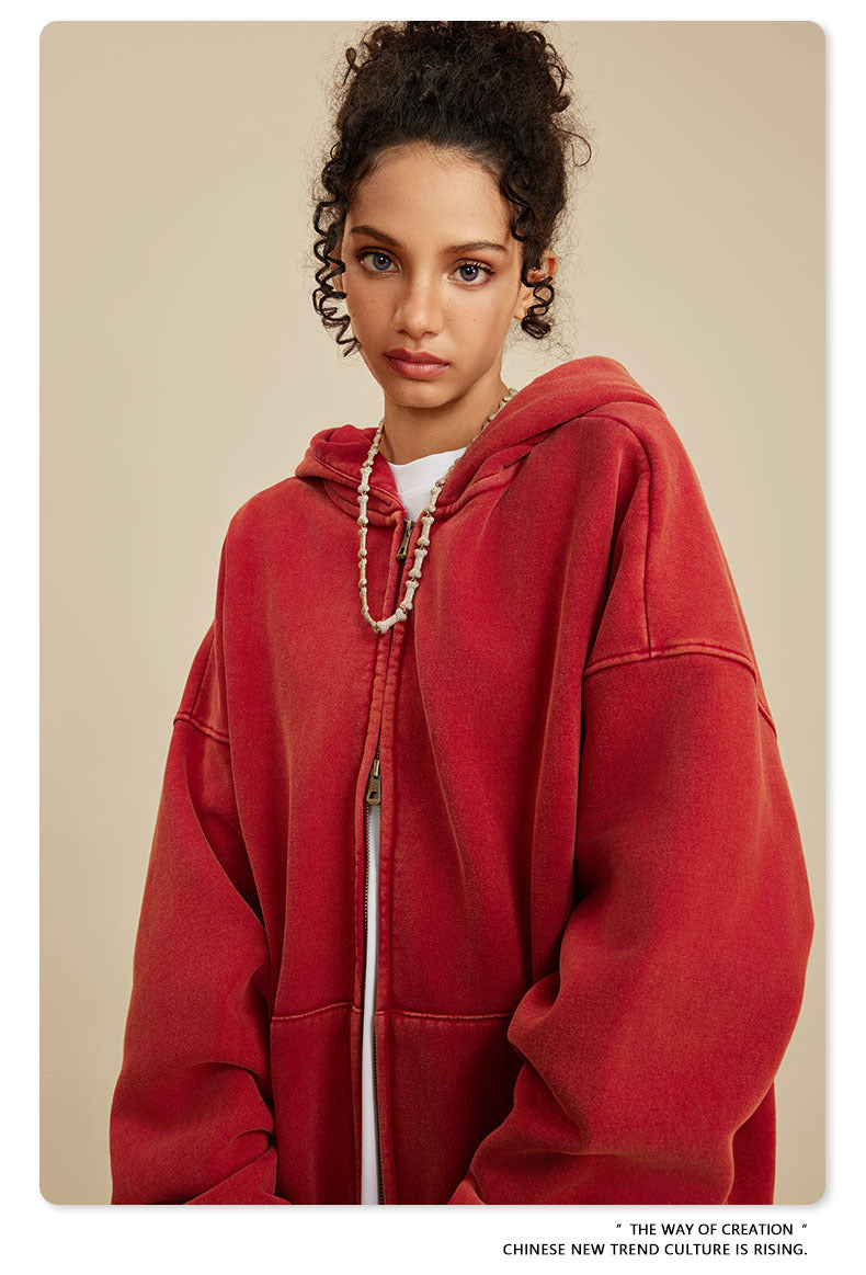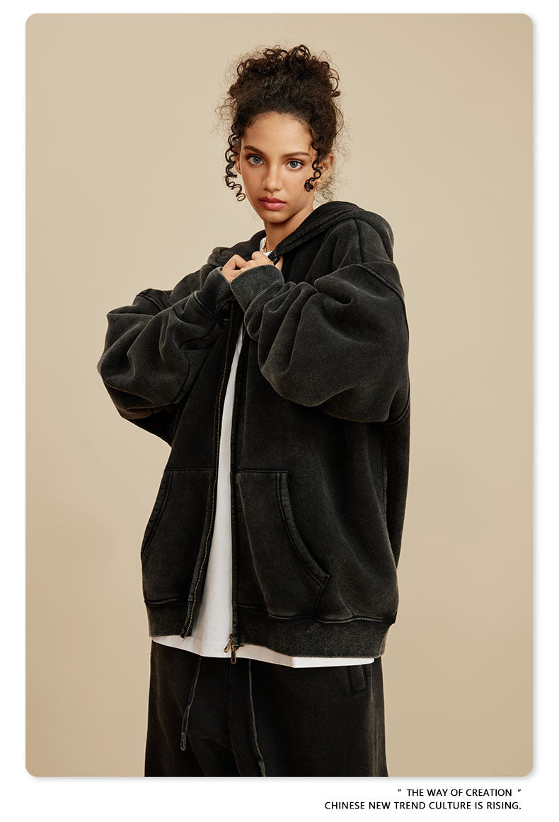 Oversize Washed Zipper Hoodie WN6461