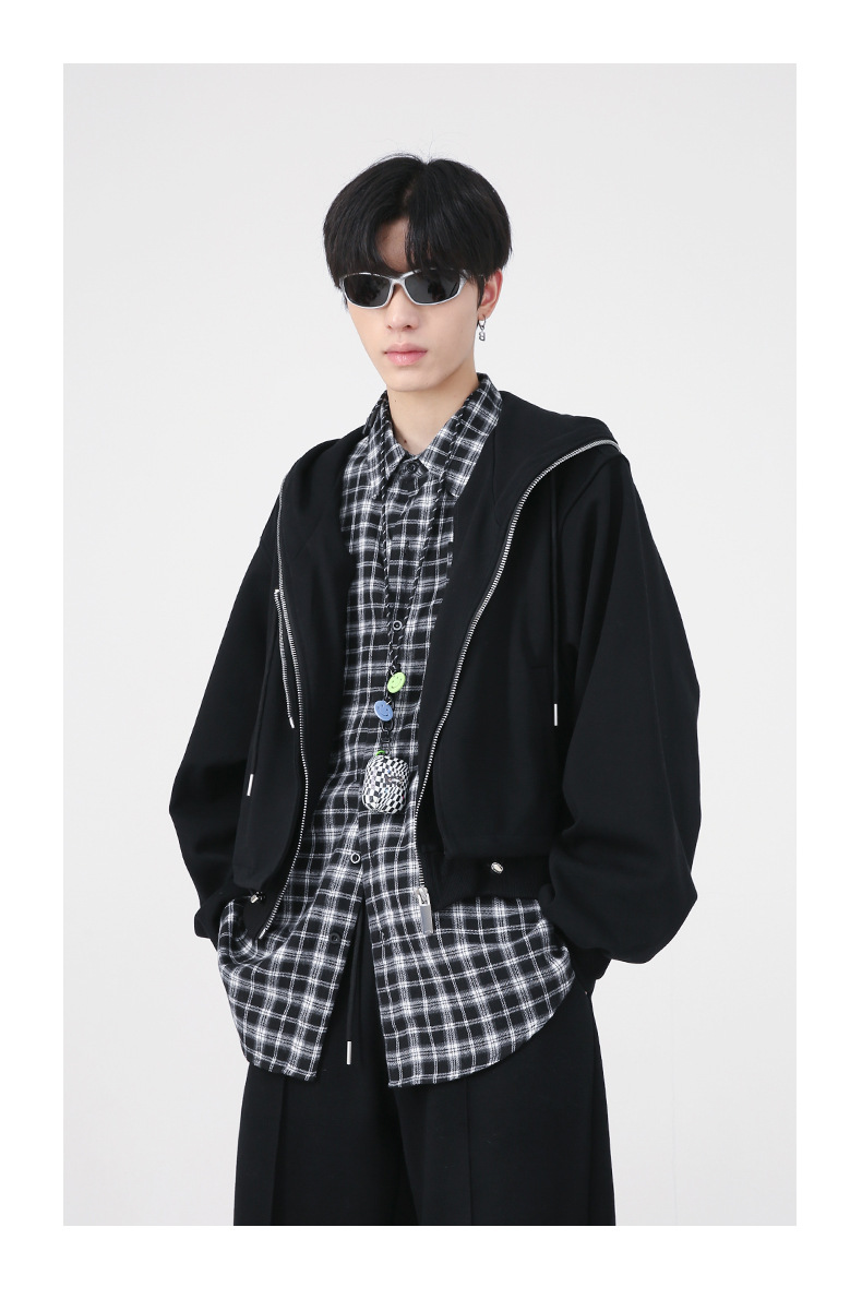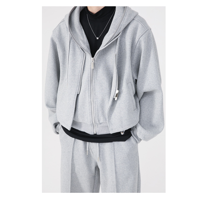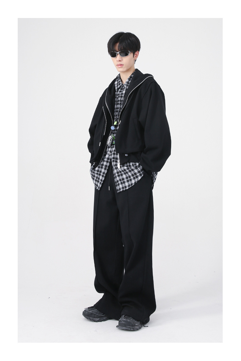 Fake Layered Short Zipper Hoodie & Tuck-in Wide-Leg Sweatpants Setup WN9378