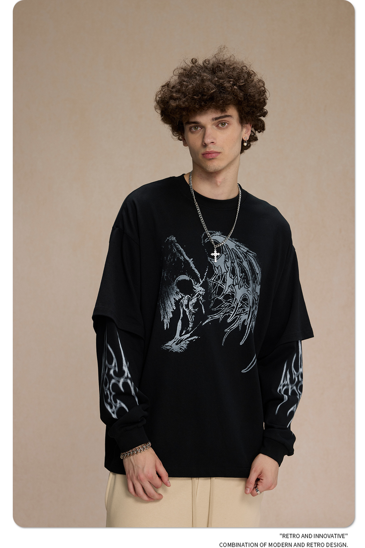 Fake Layered Print Oversize Long Sleeve T-Shirt WN9994