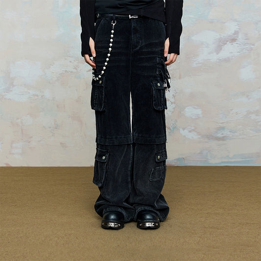 Large Pocket Wash Wide Leg Cargo Pants WN22353