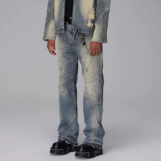 Multi Pocket Wash Damage Denim Jeans WN22308