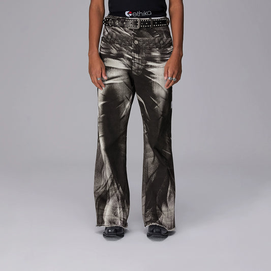 Leopard Wash Multi Pocket Wide Leg Denim Jeans WN22389