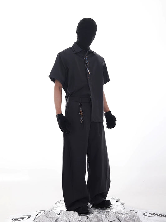 Metal Deconstruction Shoulder-Pad Zipper Short Sleeve Shirt WN20334