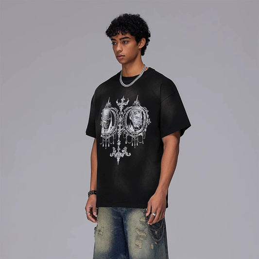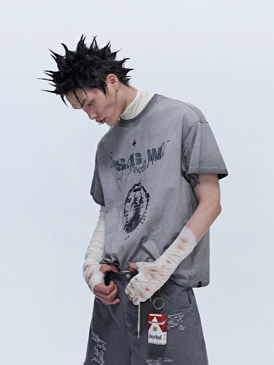Crack Print Washed Short Sleeve T-Shirt WN20995