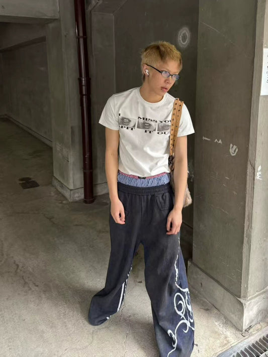 Applique Ink Print Short Sleeve T-Shirt WN20983